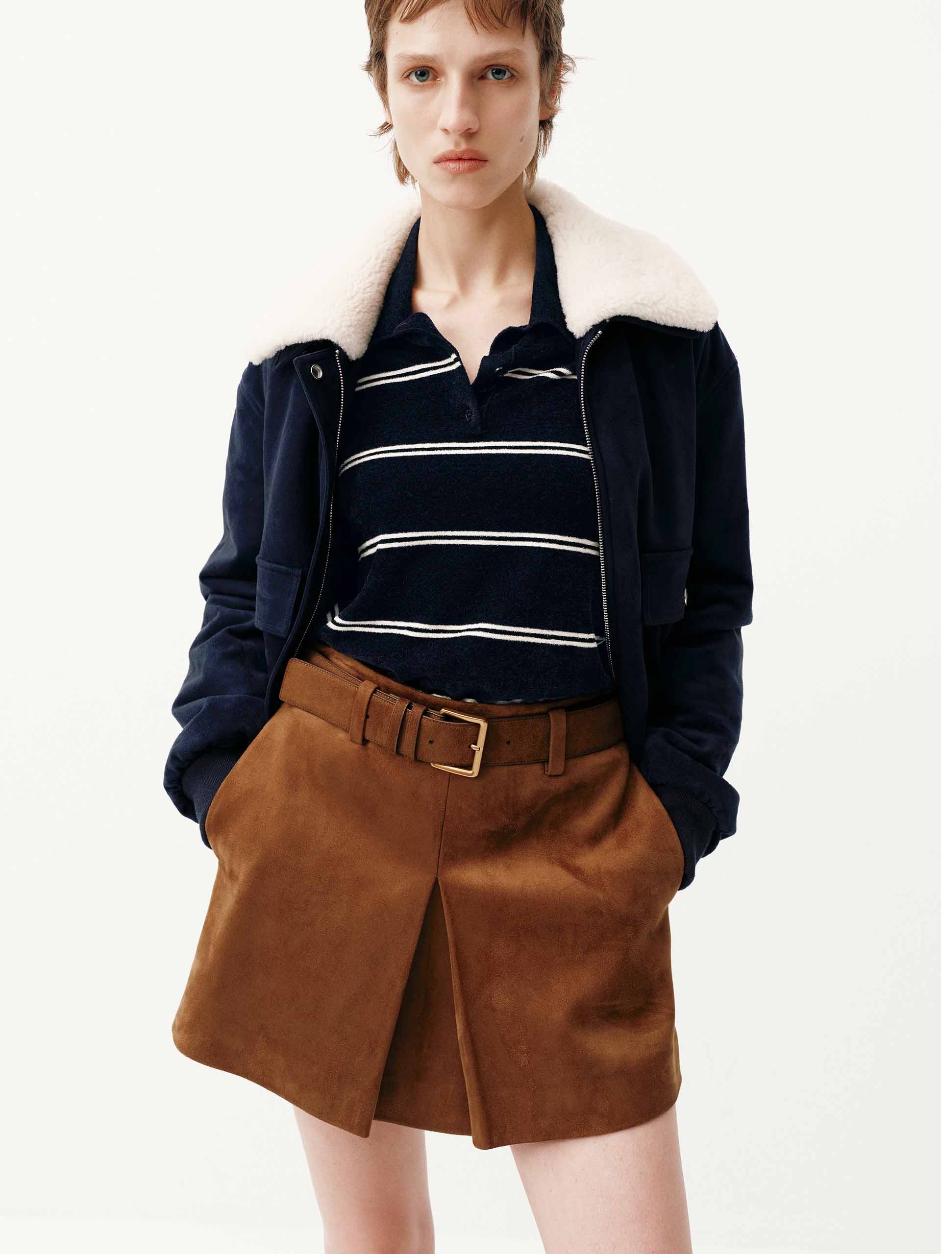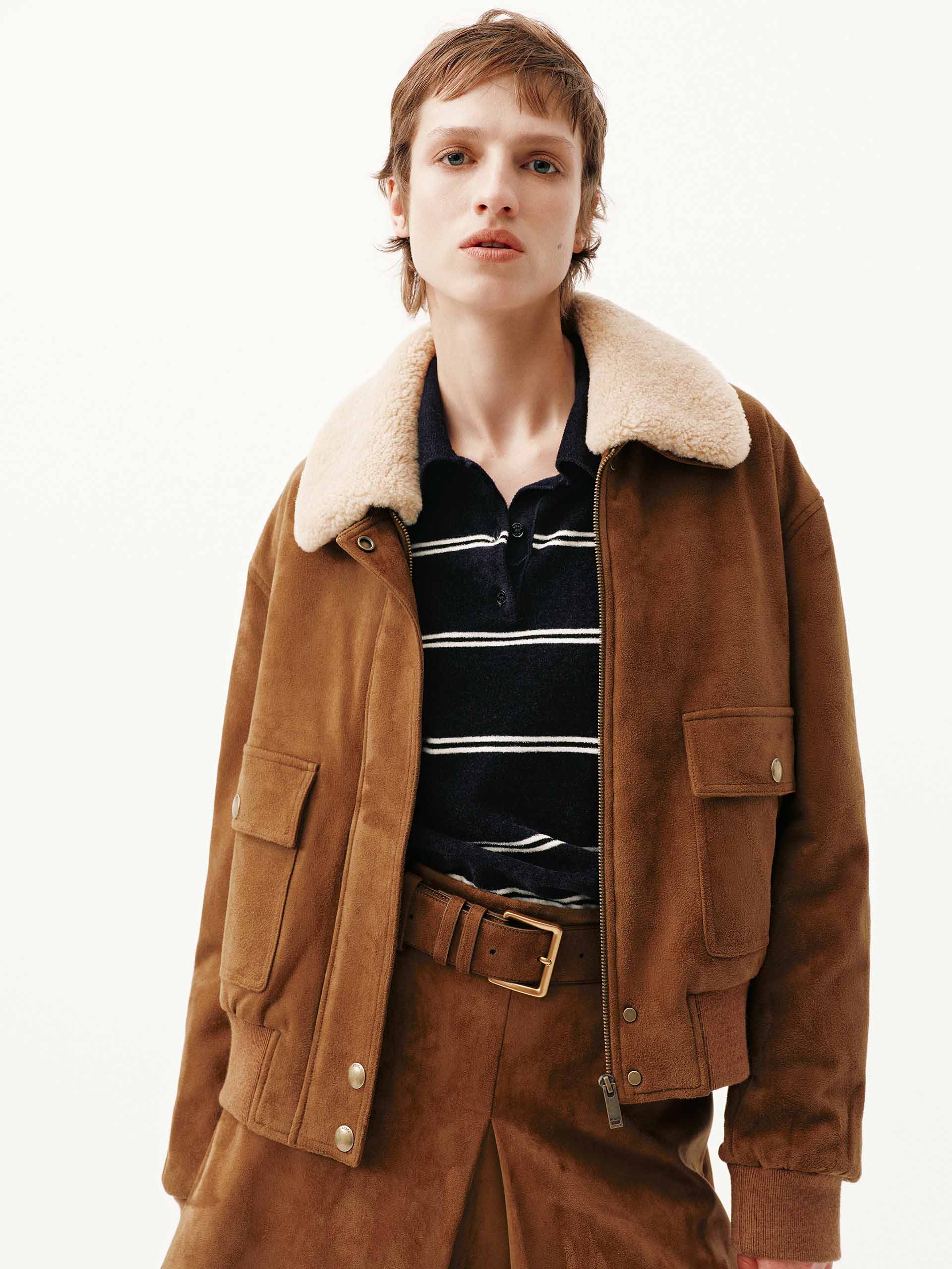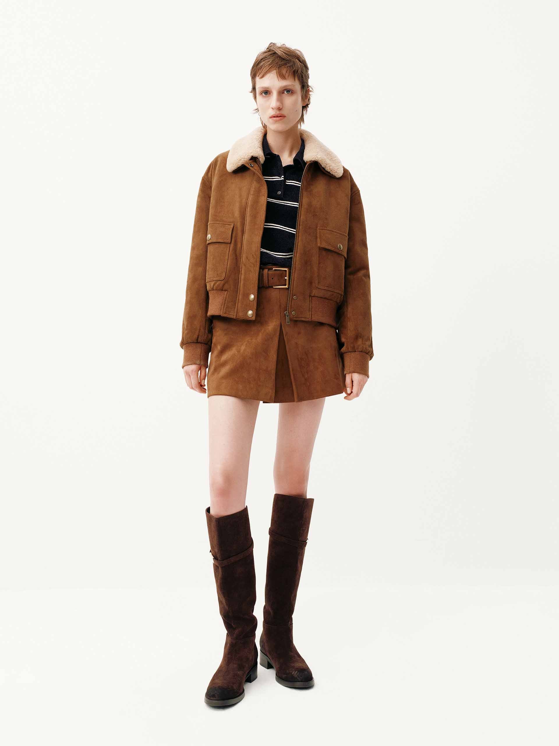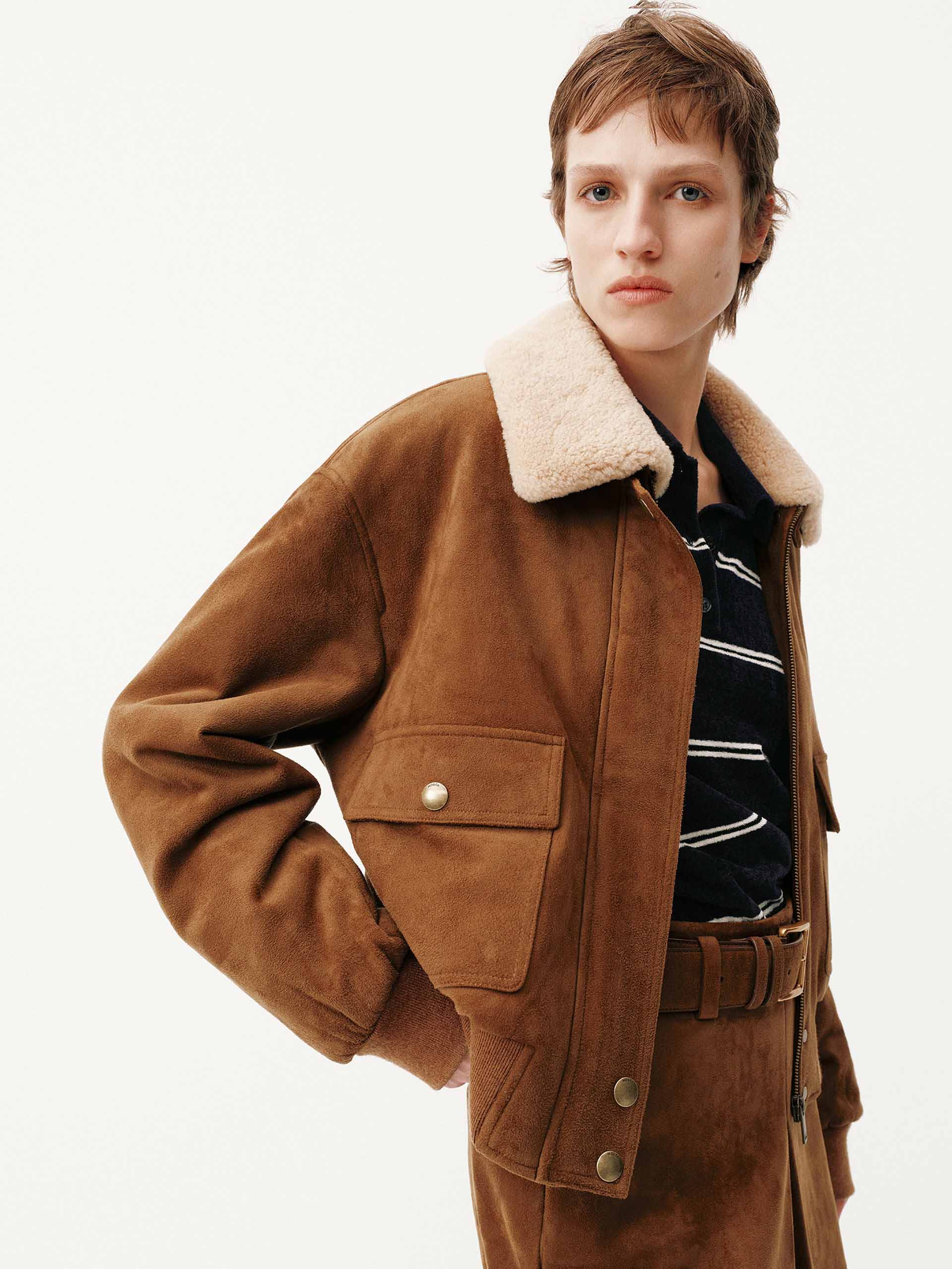 Crafted from exceptionally soft faux suede fabric, this coat delivers the look and feel of luxury in a timeless, statement-making outerwear piece. Practical side pockets provide a casual touch, while the luxurious removable fur collar adds versatility and opulence. Secured with a combination zip-snap button closure, it ensures a customizable fit.
