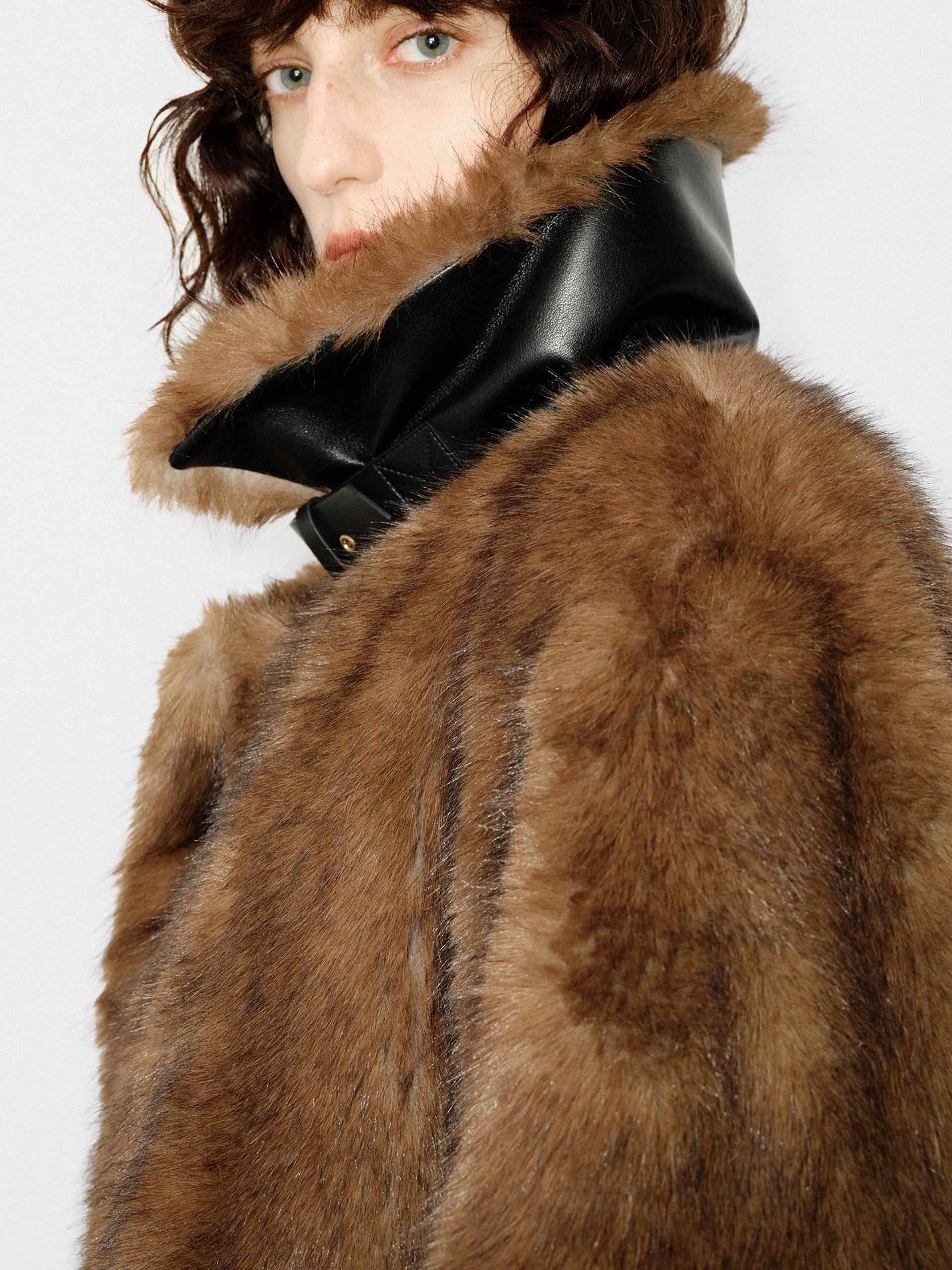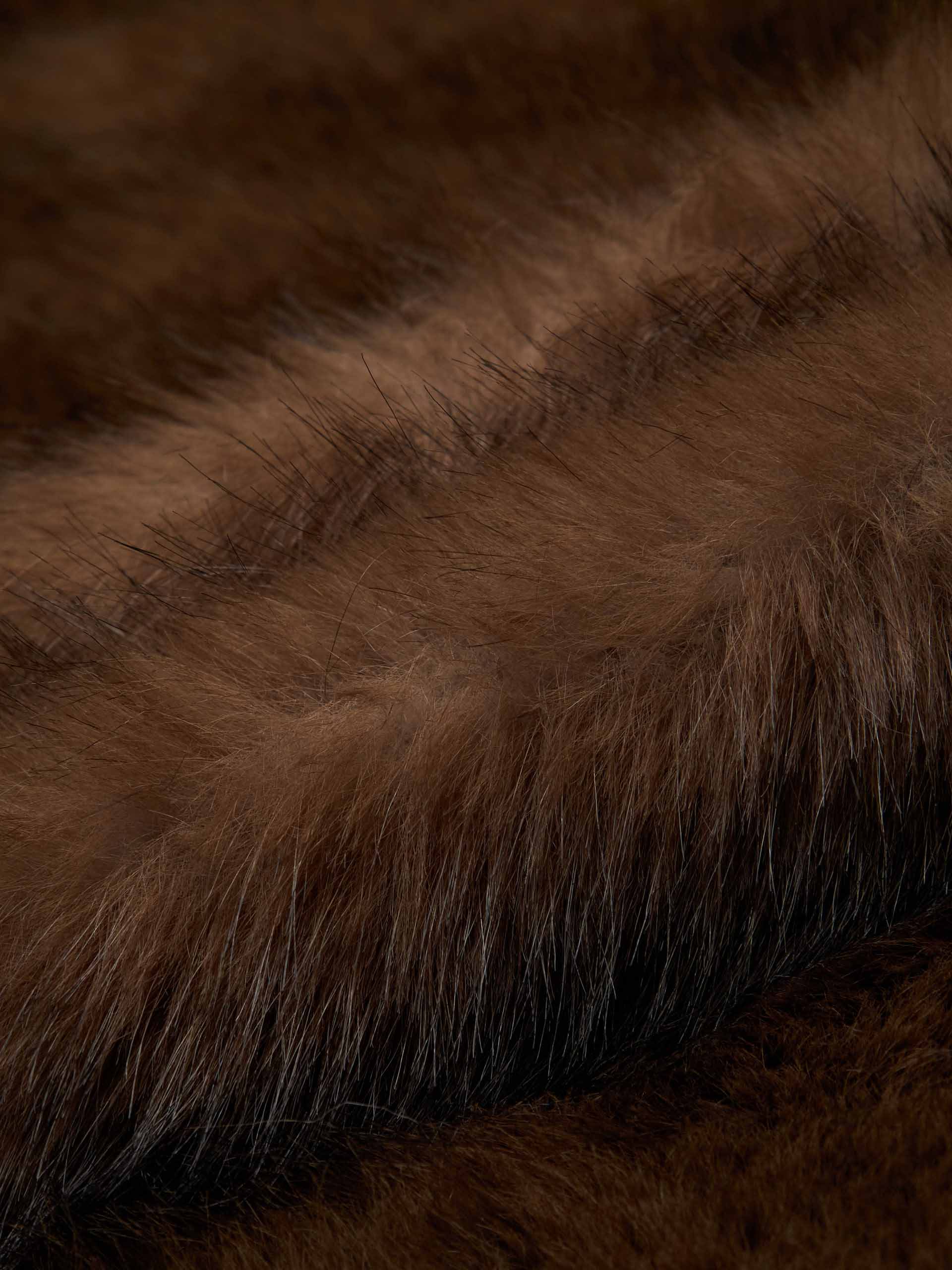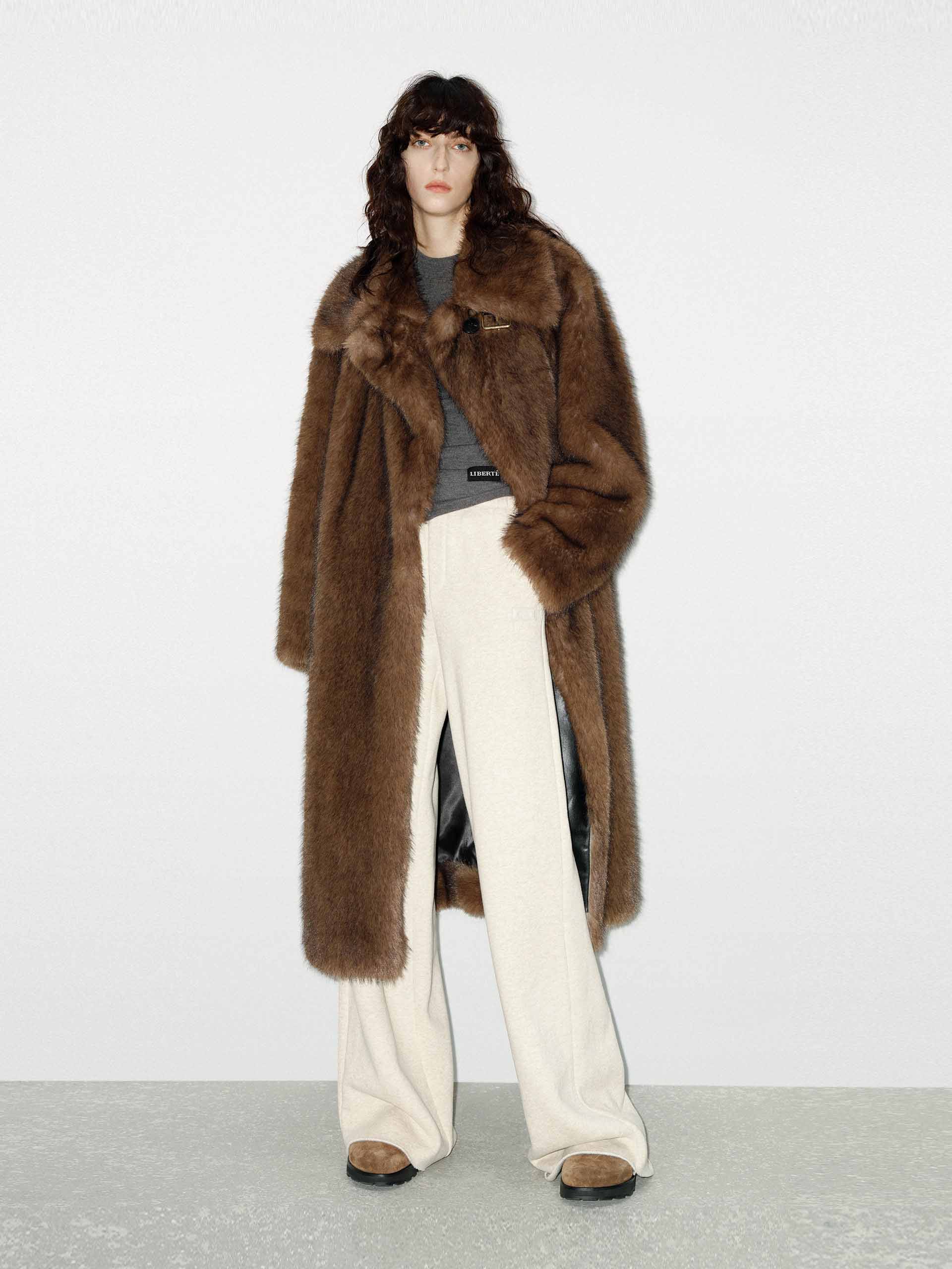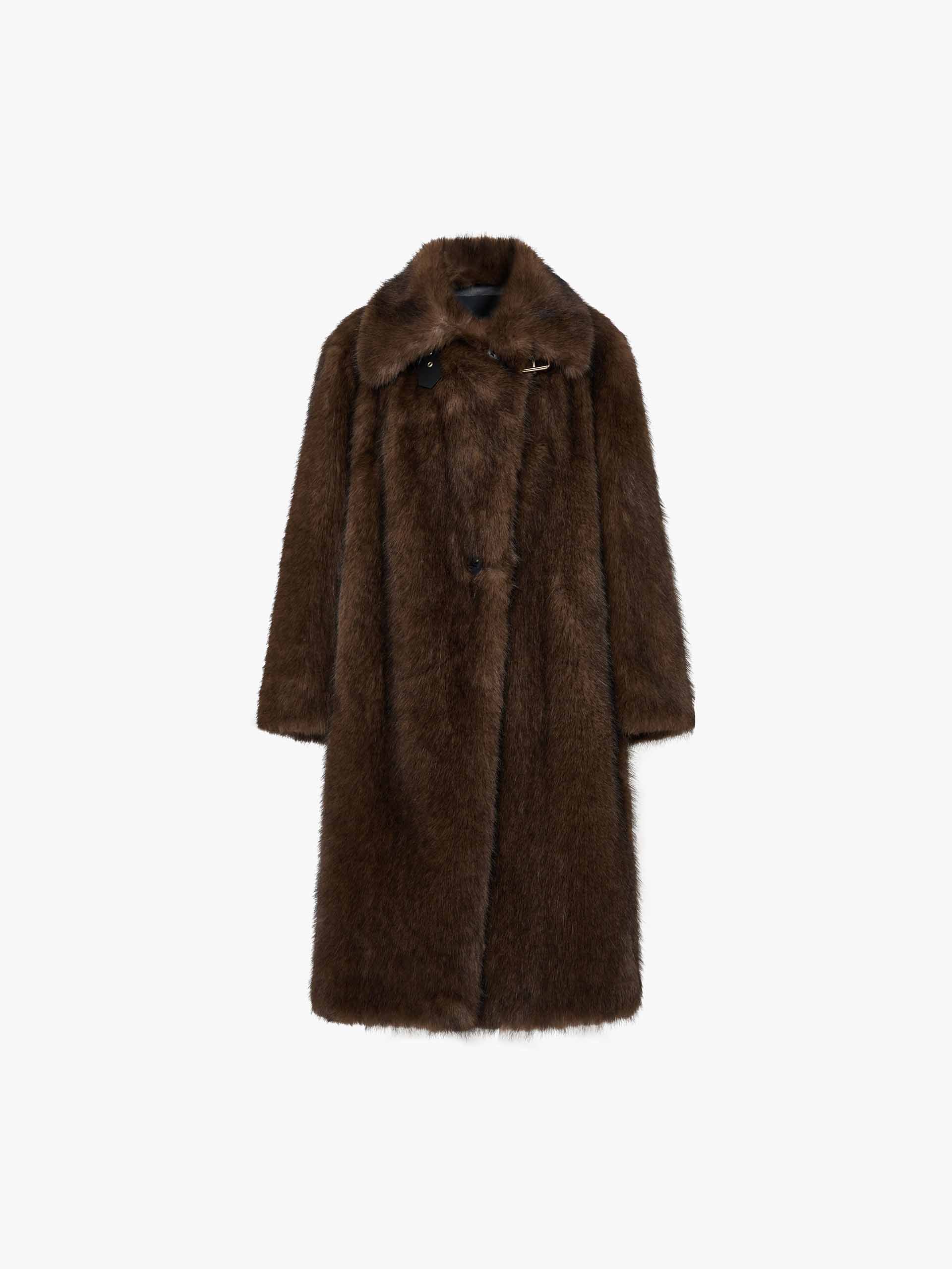 Discover the perfect blend of coziness and refinement with this coat. It's crafted from faux shearling and offers a rich brown hue that will provide warmth in the winter months. Features a longline silhouette, lapel, and smooth lining for a stylish look.