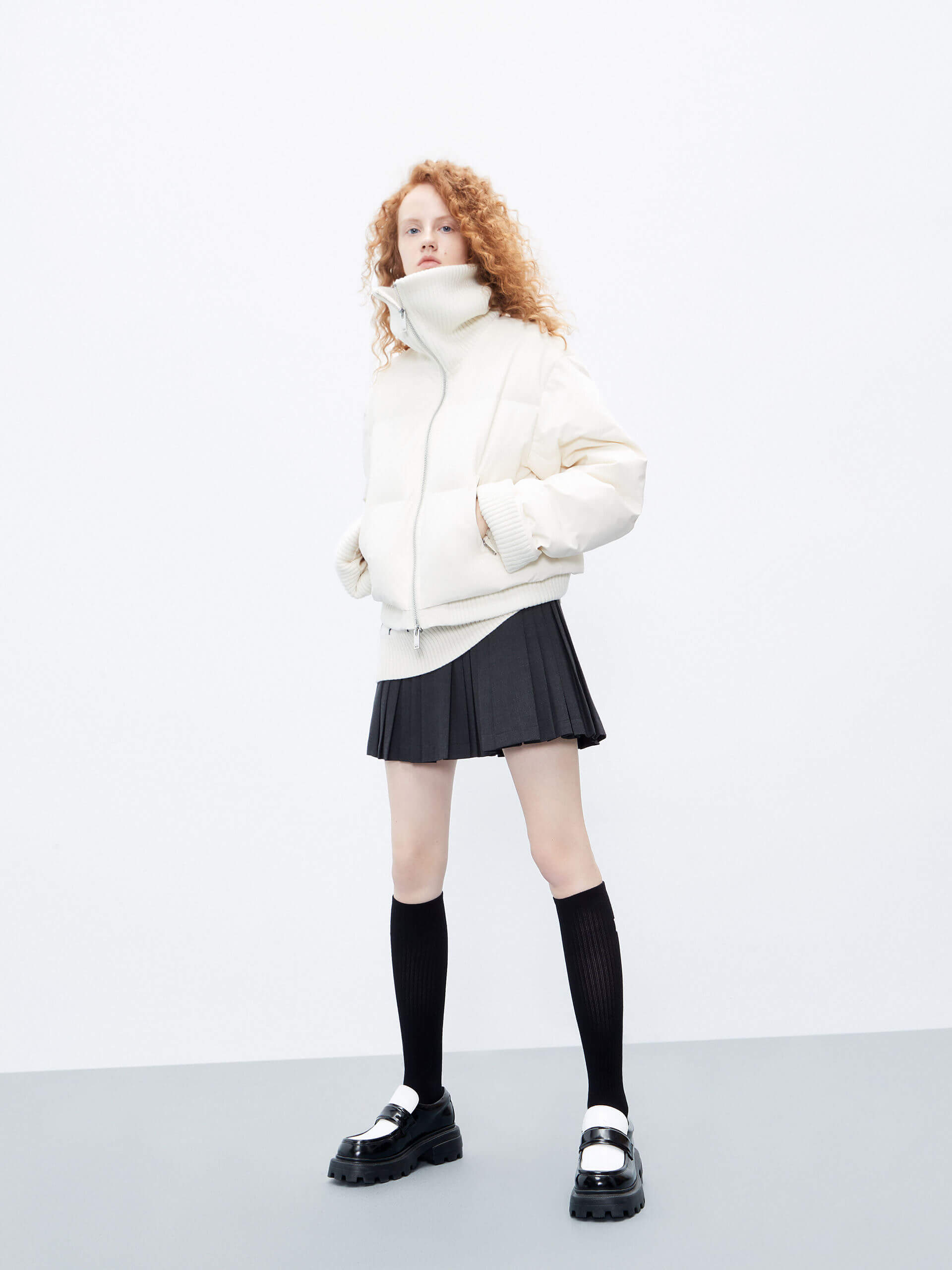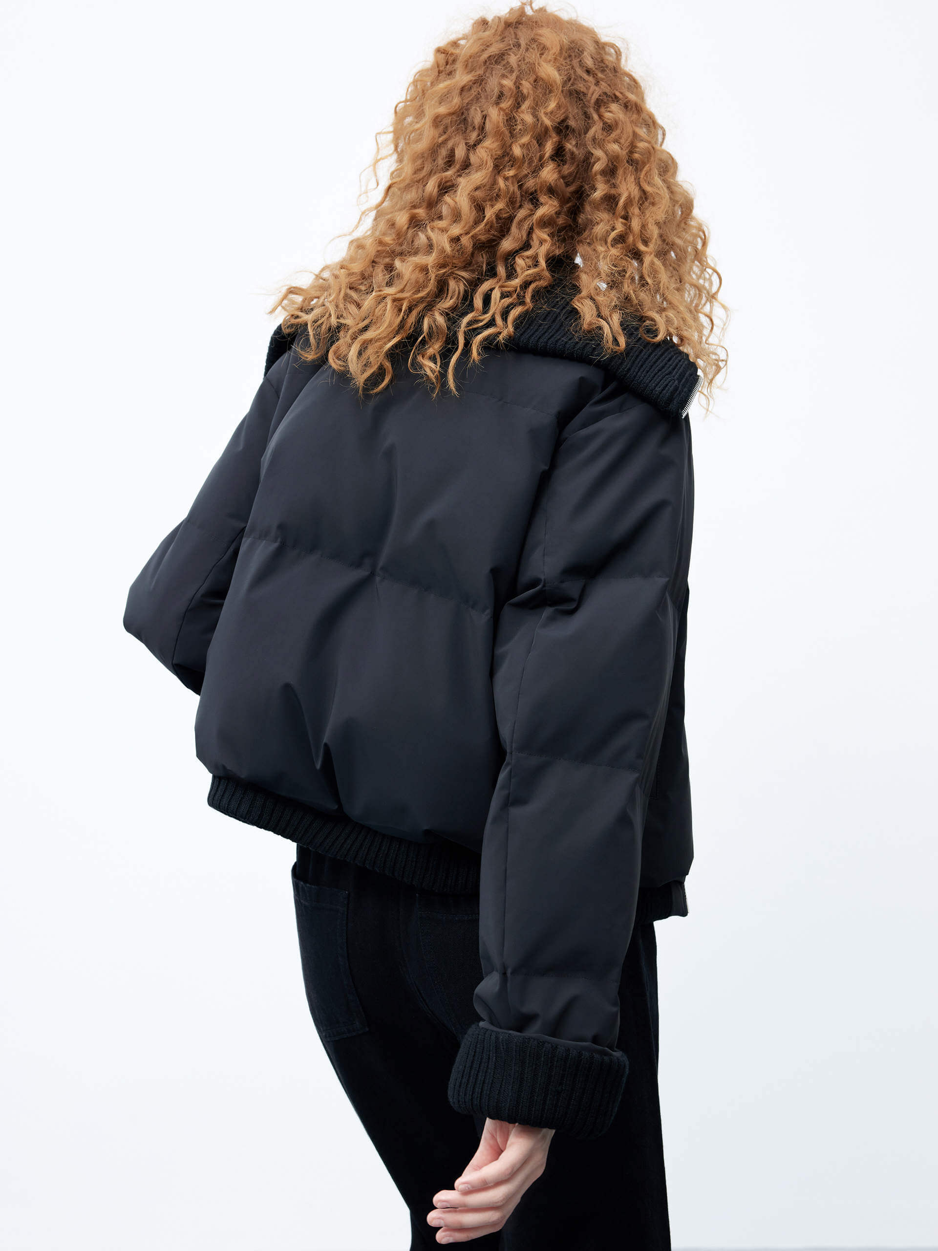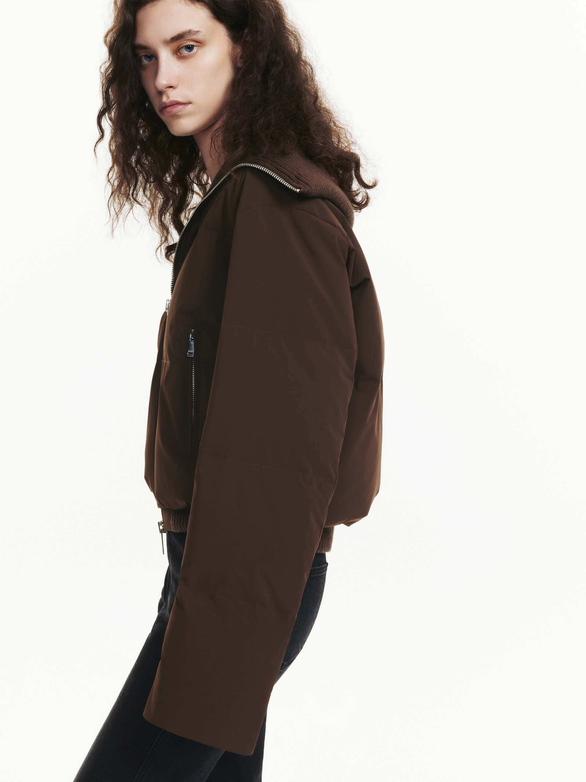 Introducing the shell down jacket – filled with 90% duck down for luxurious warmth. A zip-up collar ensures a snug fit, while ribbed trims at the hem, cuffs and collar add a unique detail to this short-cut style. You'll be toasty warm and look stylishly chic. Enjoy warmth and quality all winter long.