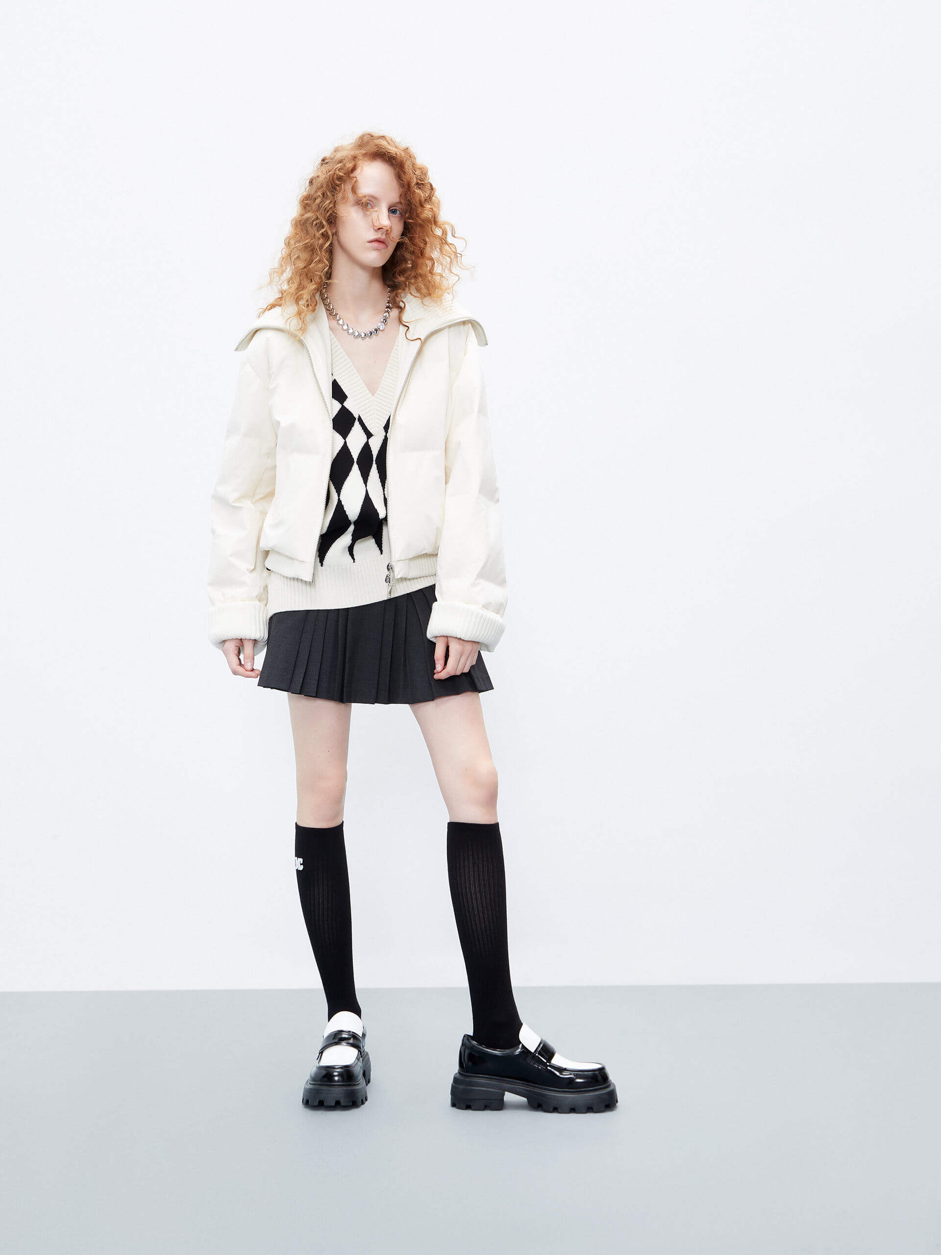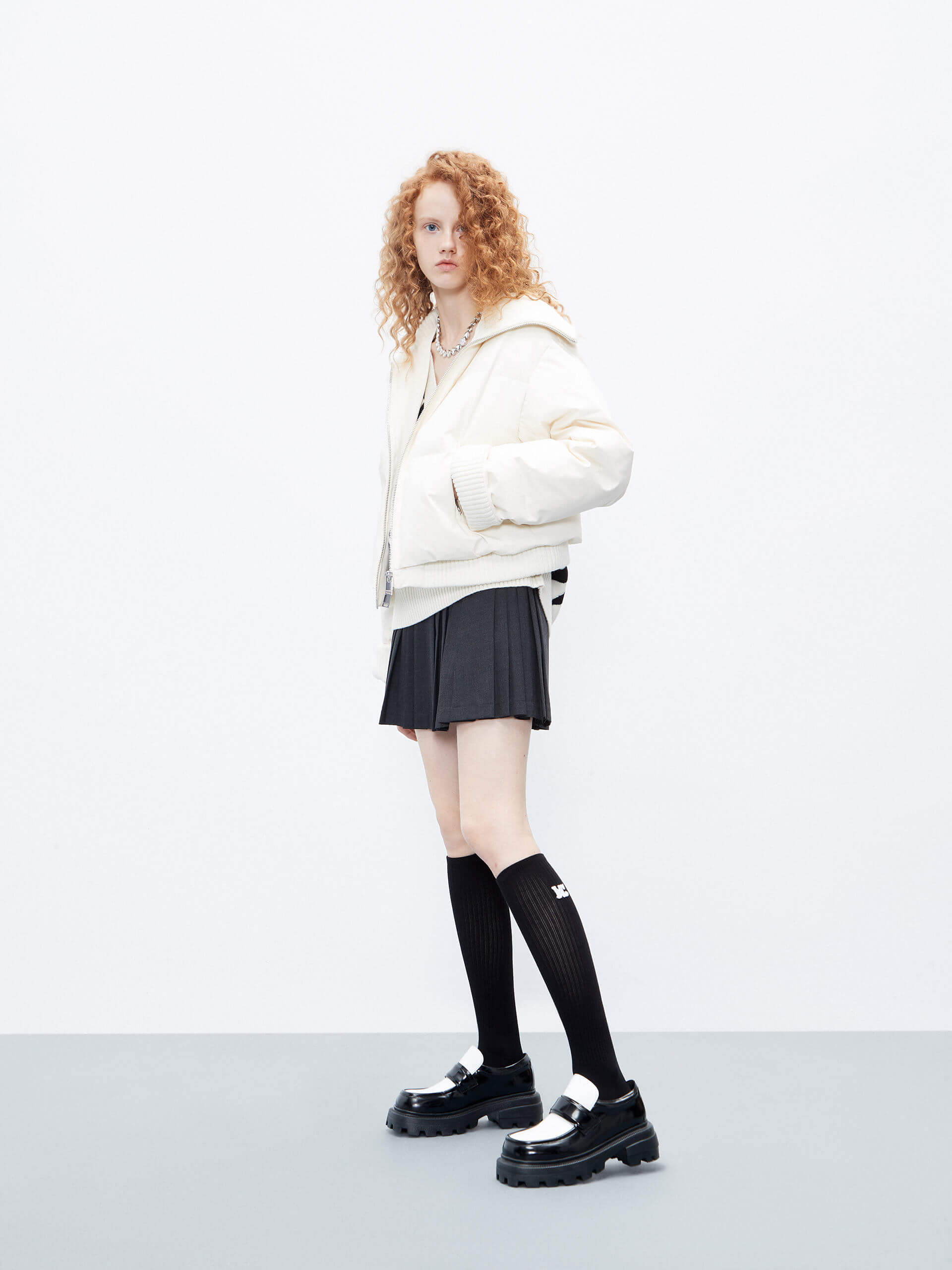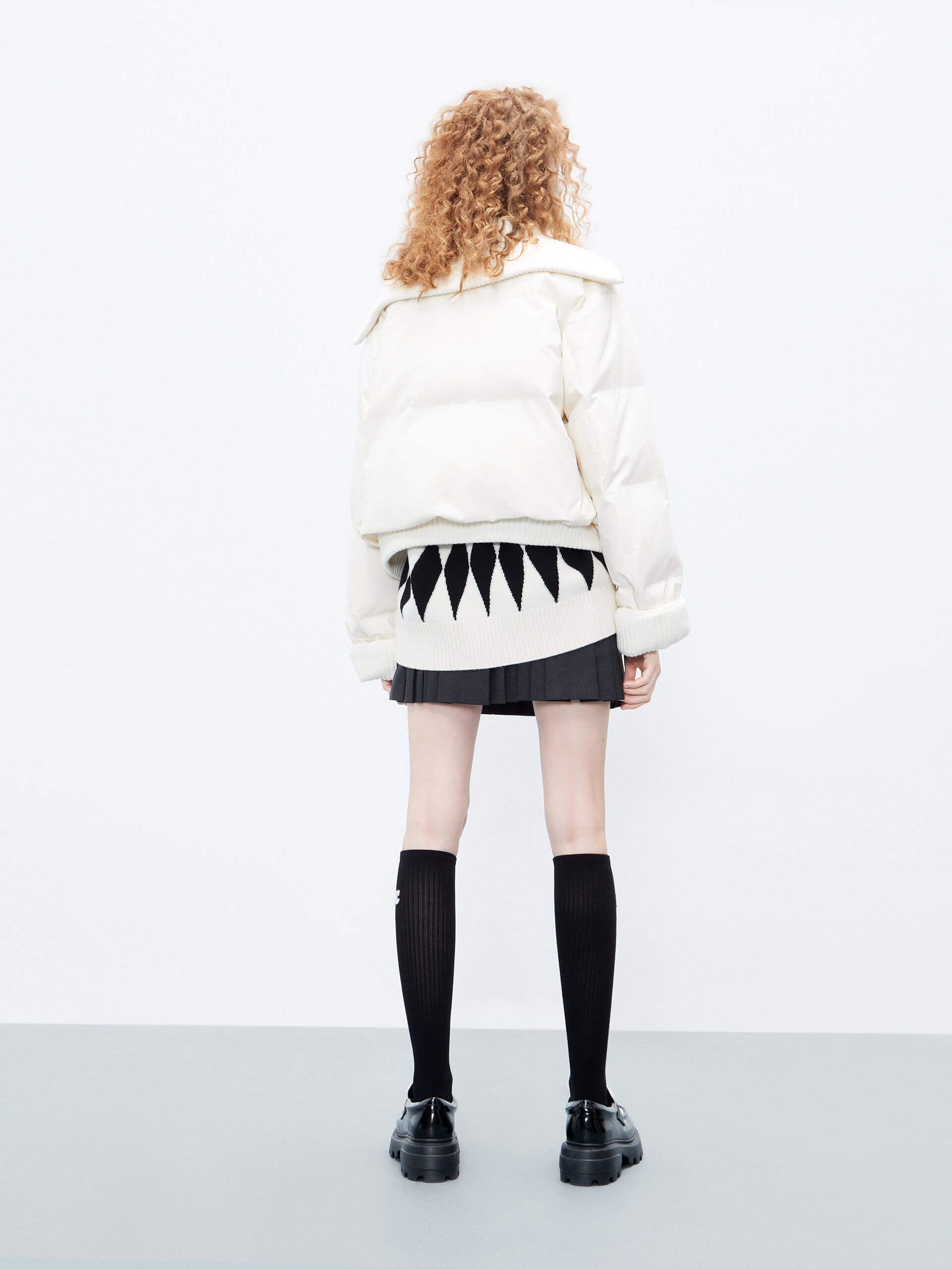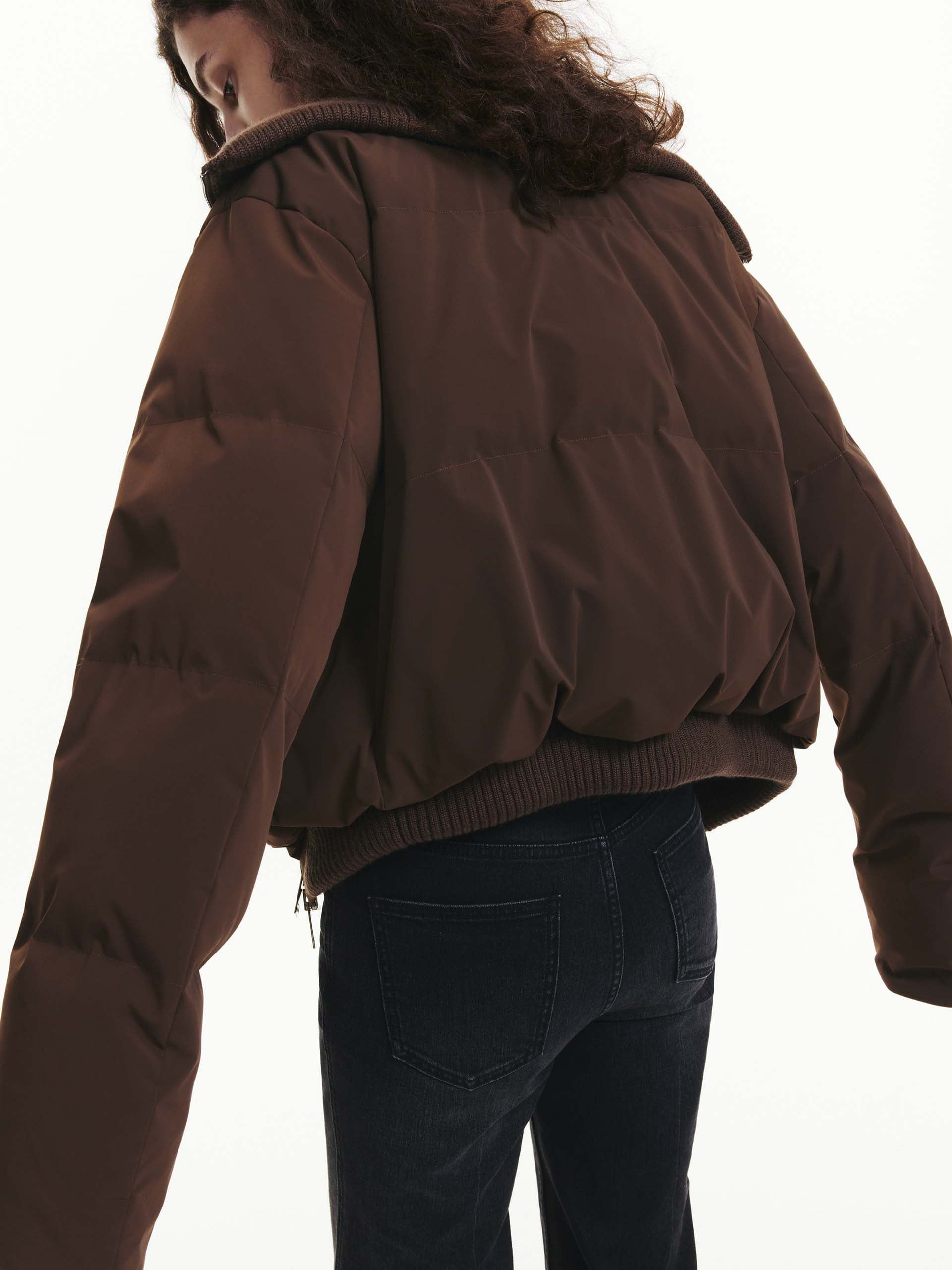 Introducing the shell down jacket – filled with 90% duck down for luxurious warmth. A zip-up collar ensures a snug fit, while ribbed trims at the hem, cuffs and collar add a unique detail to this short-cut style. You'll be toasty warm and look stylishly chic. Enjoy warmth and quality all winter long.