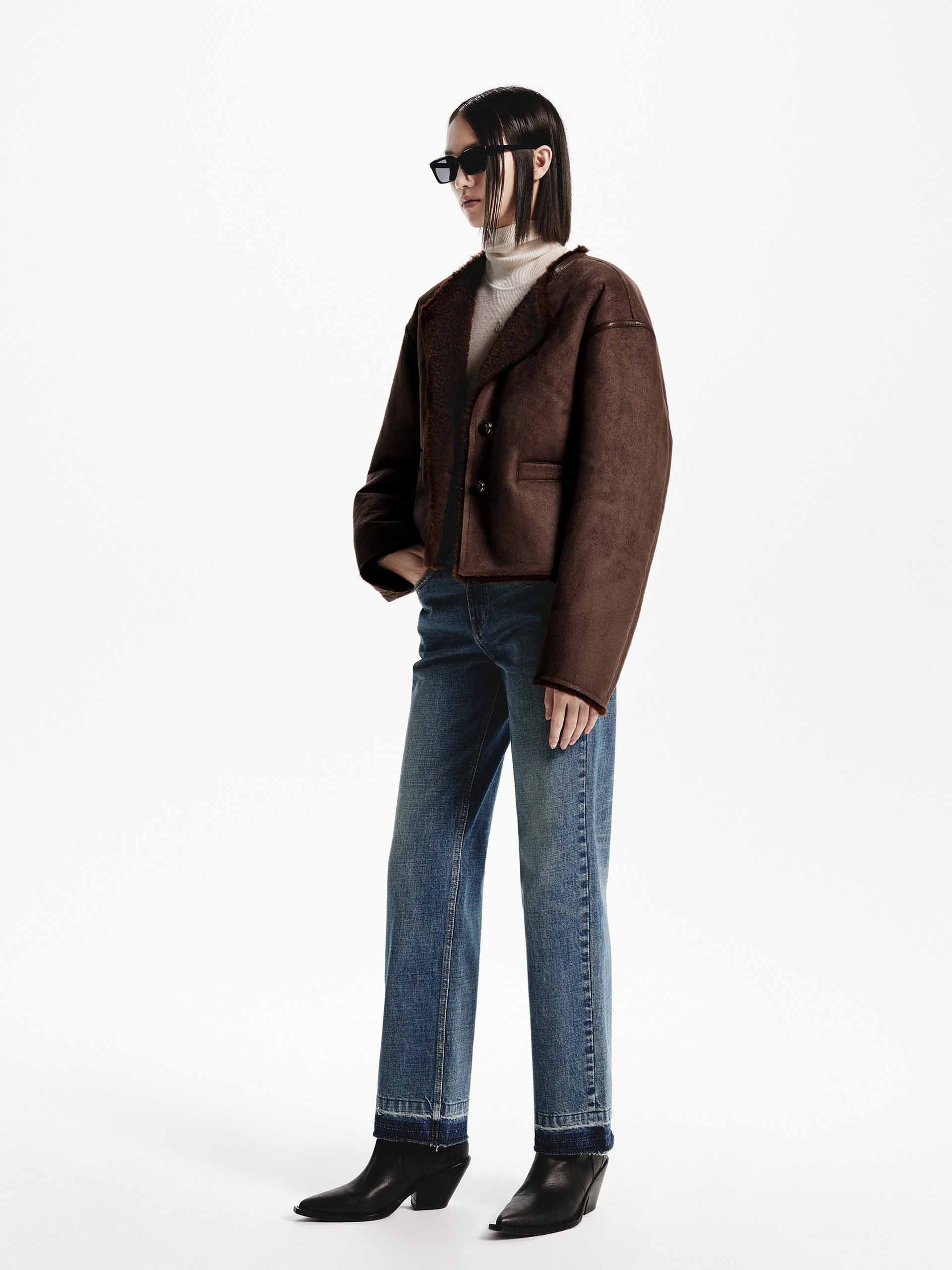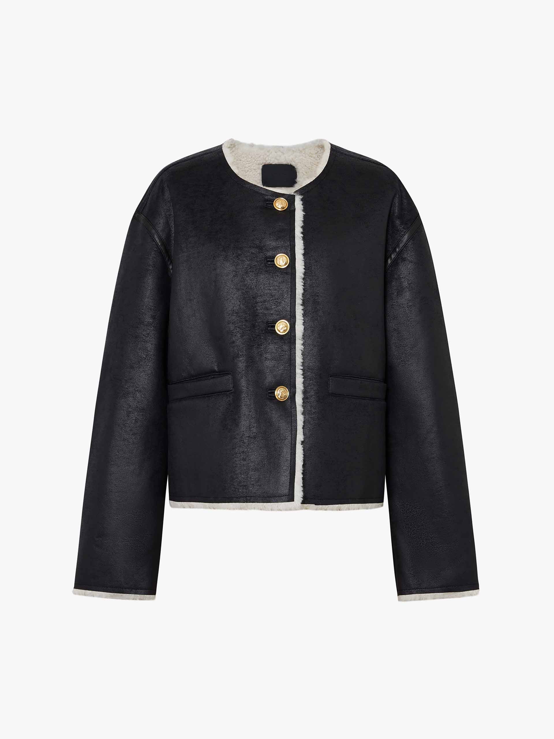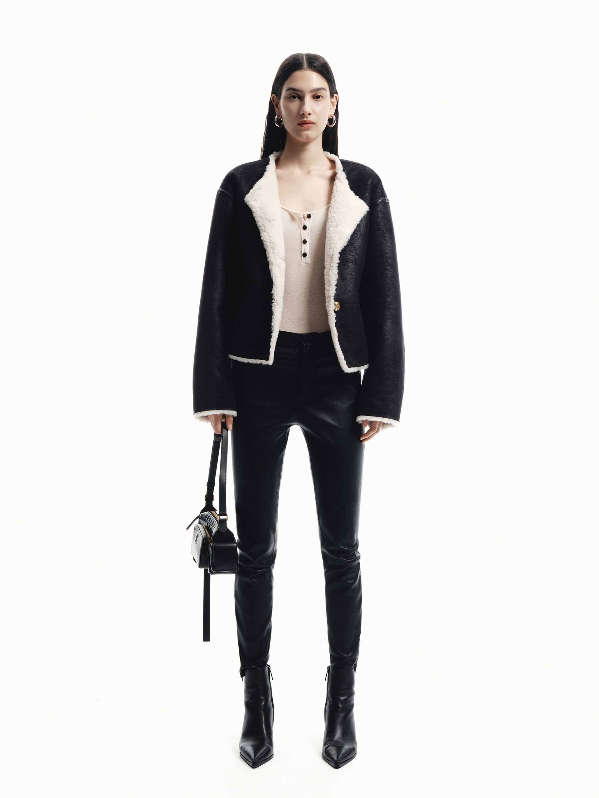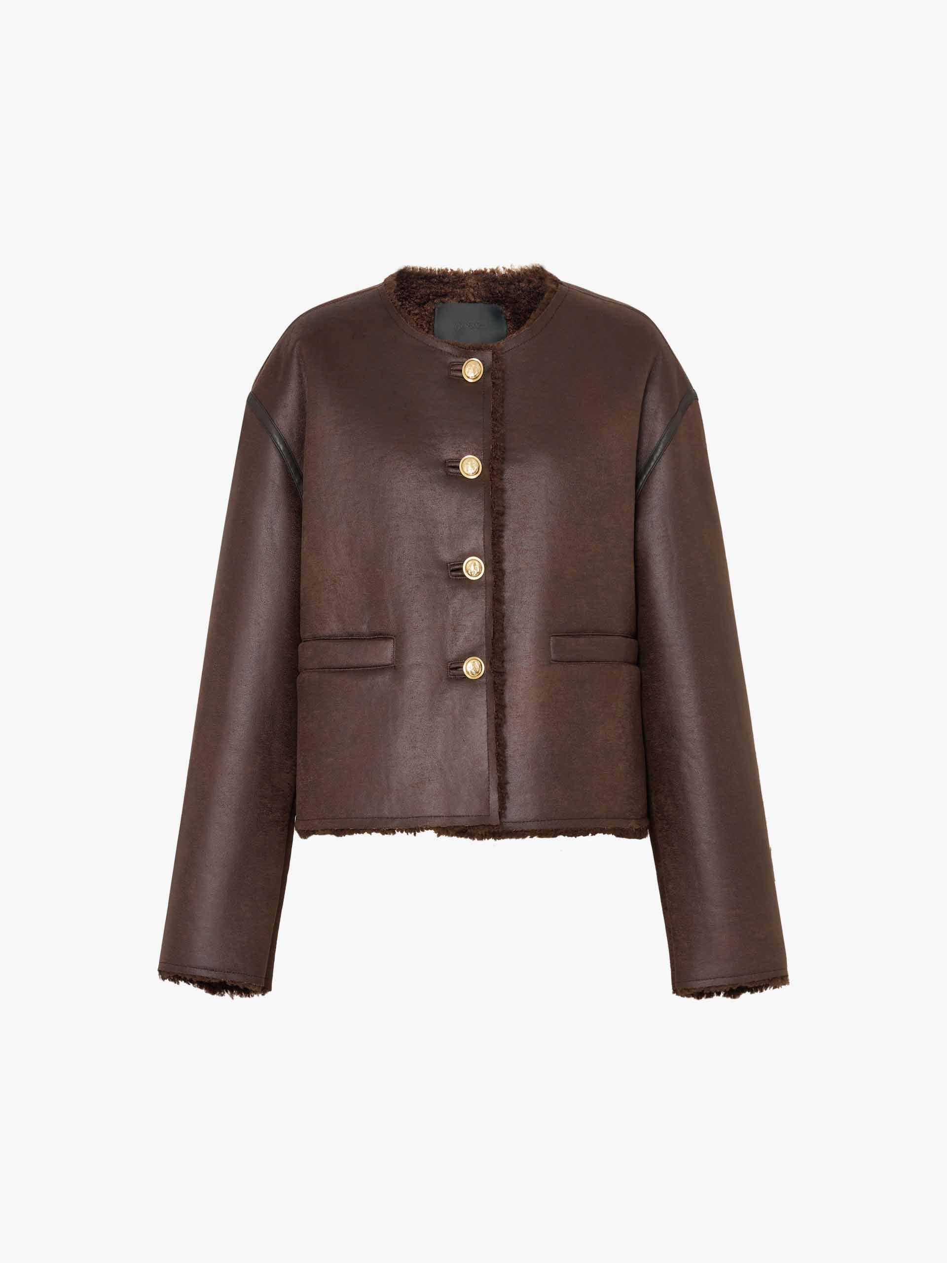 Crafted from soft leather, this jacket has a luxuriously soft shearling interior, collarless and patch pocket design. It's cut in a regular, cropped fit that allows it to be layered over knitwear.