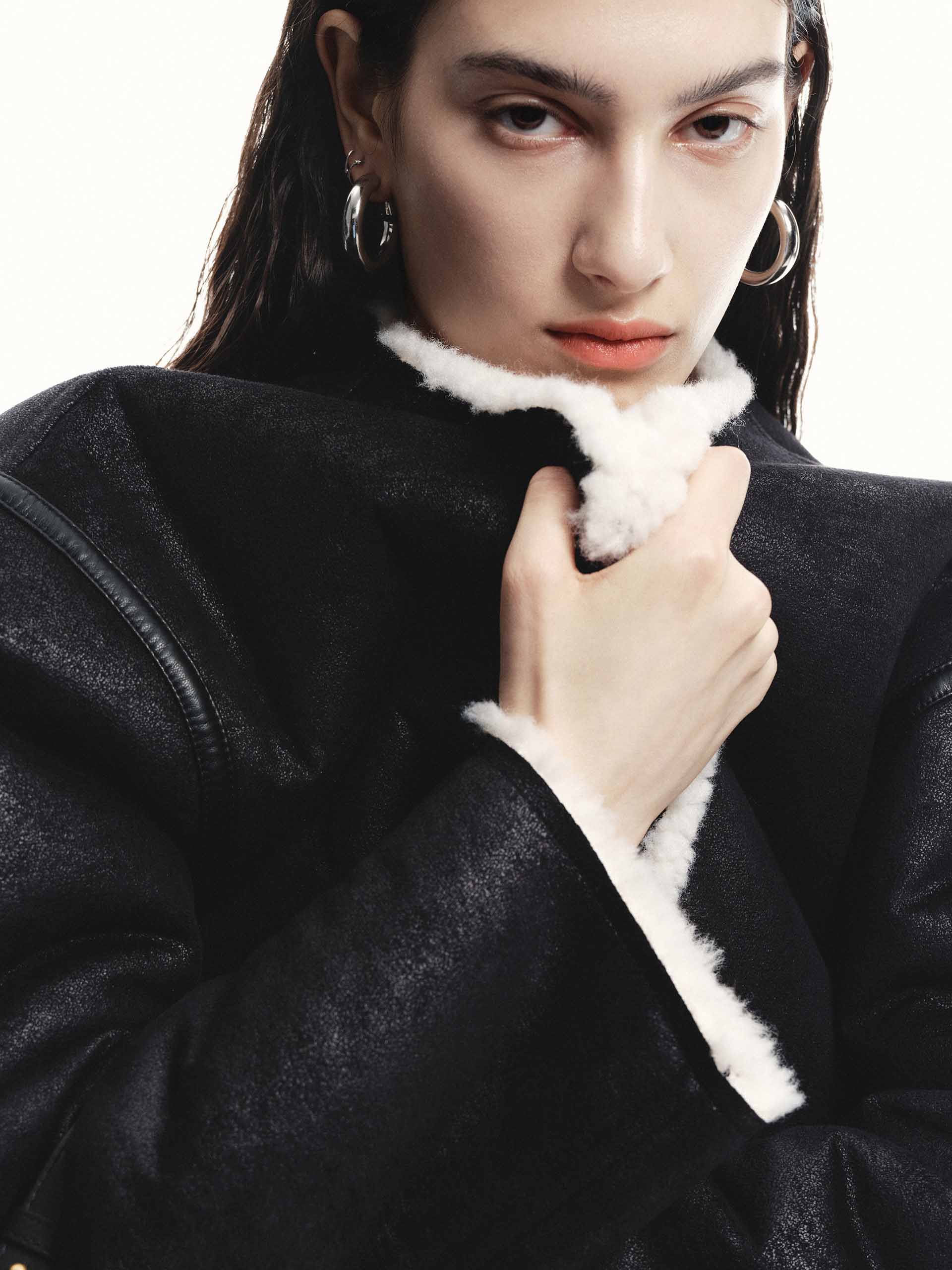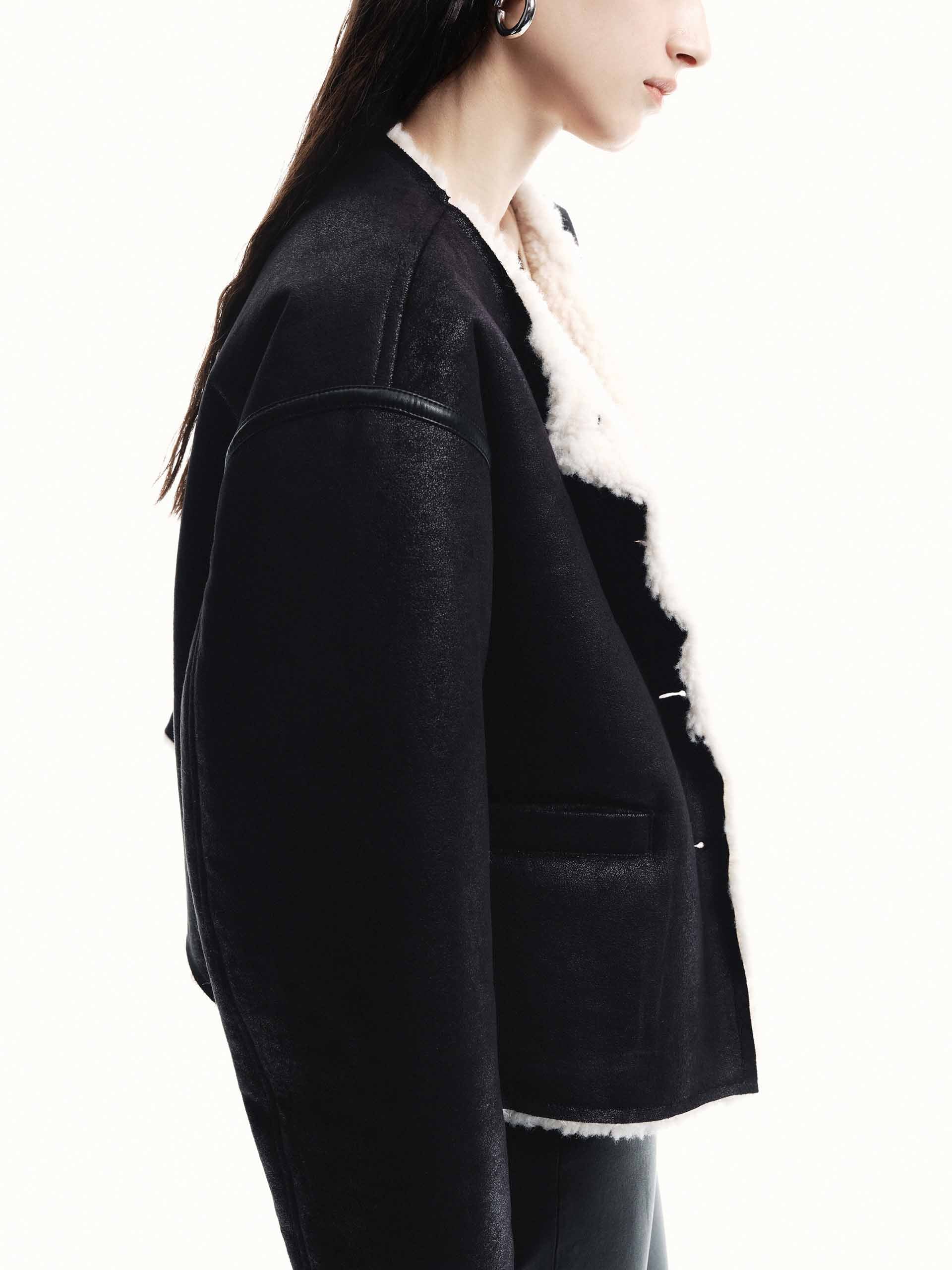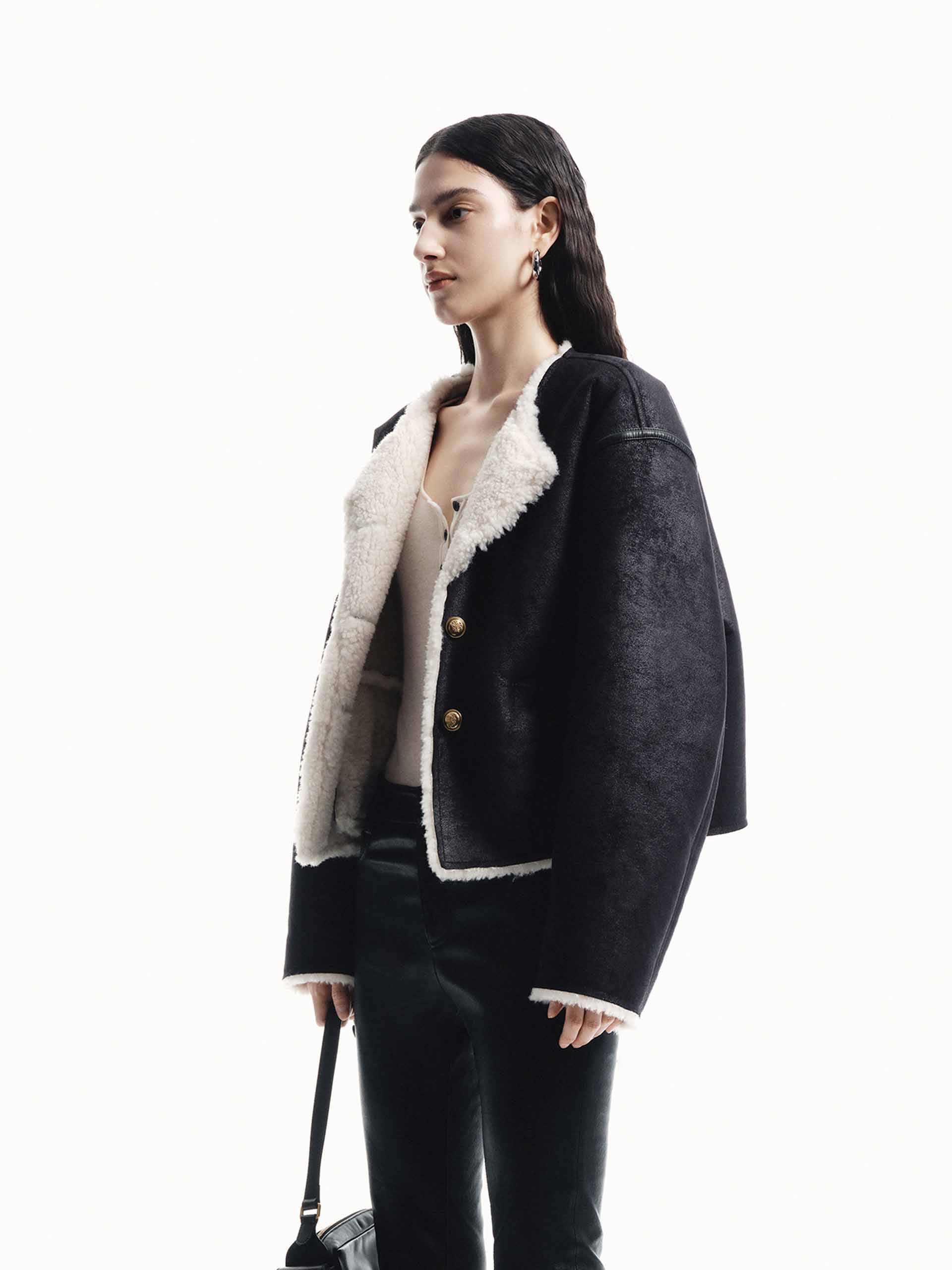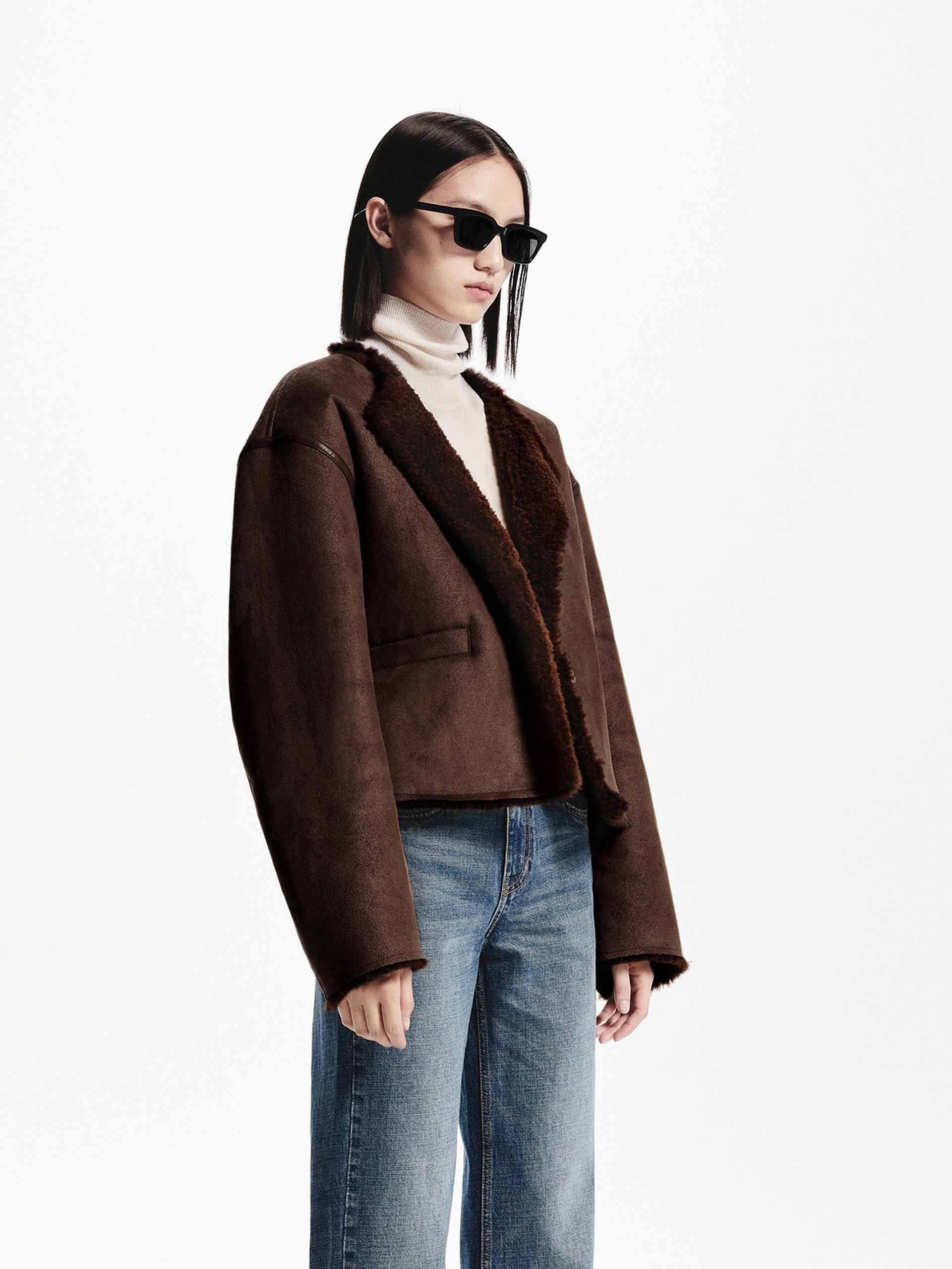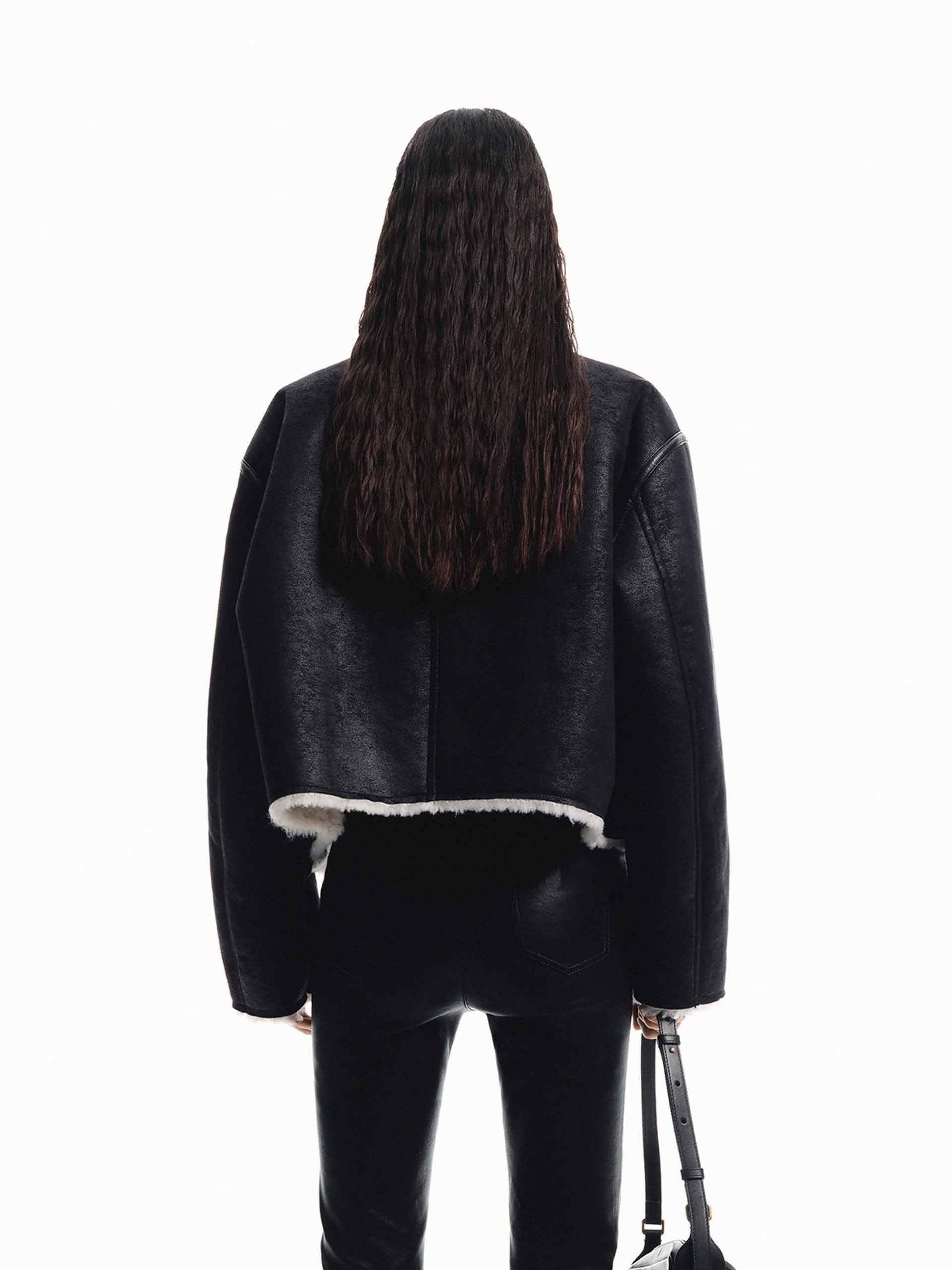 Crafted from soft leather, this jacket has a luxuriously soft shearling interior, collarless and patch pocket design. It's cut in a regular, cropped fit that allows it to be layered over knitwear.