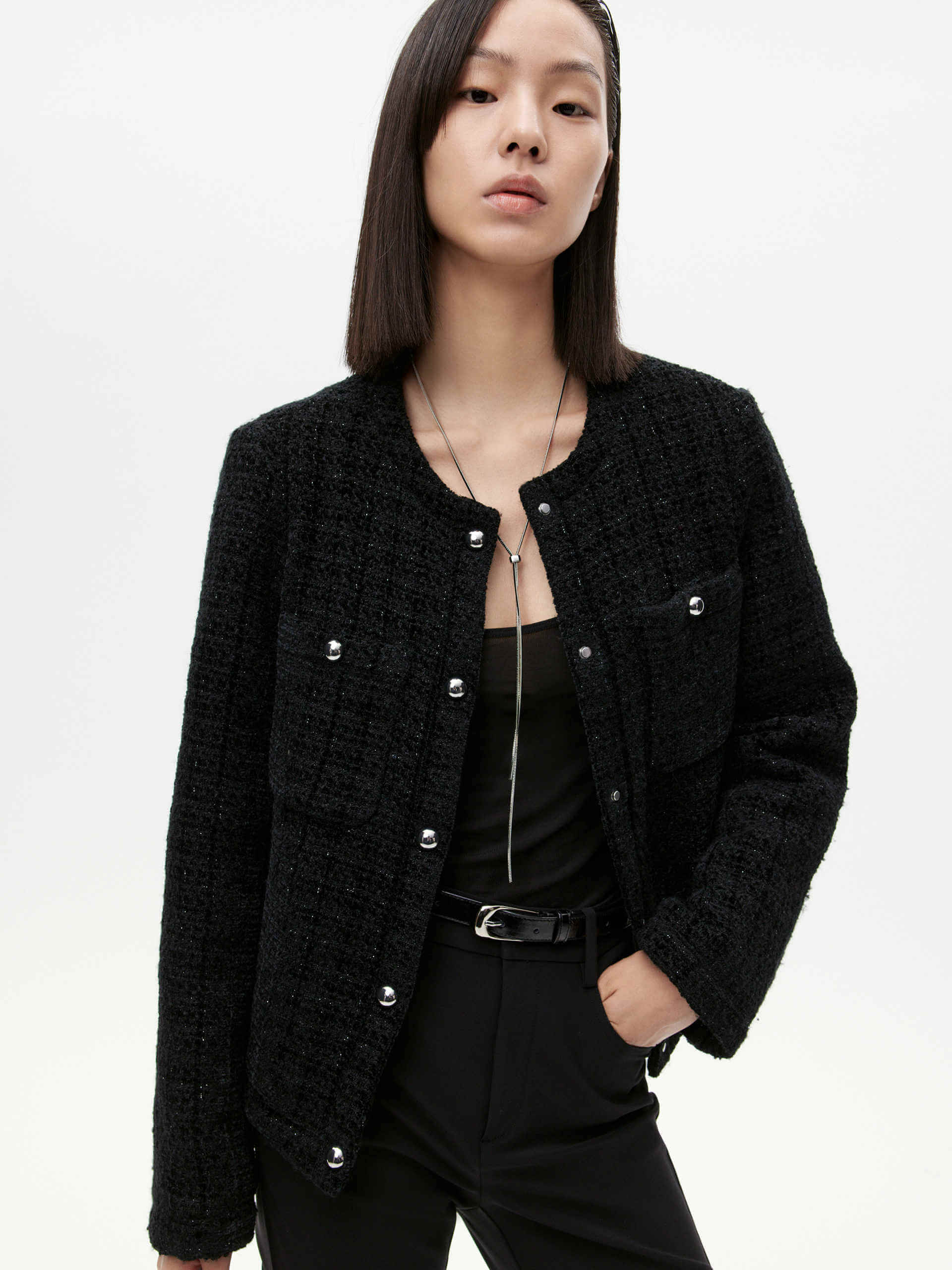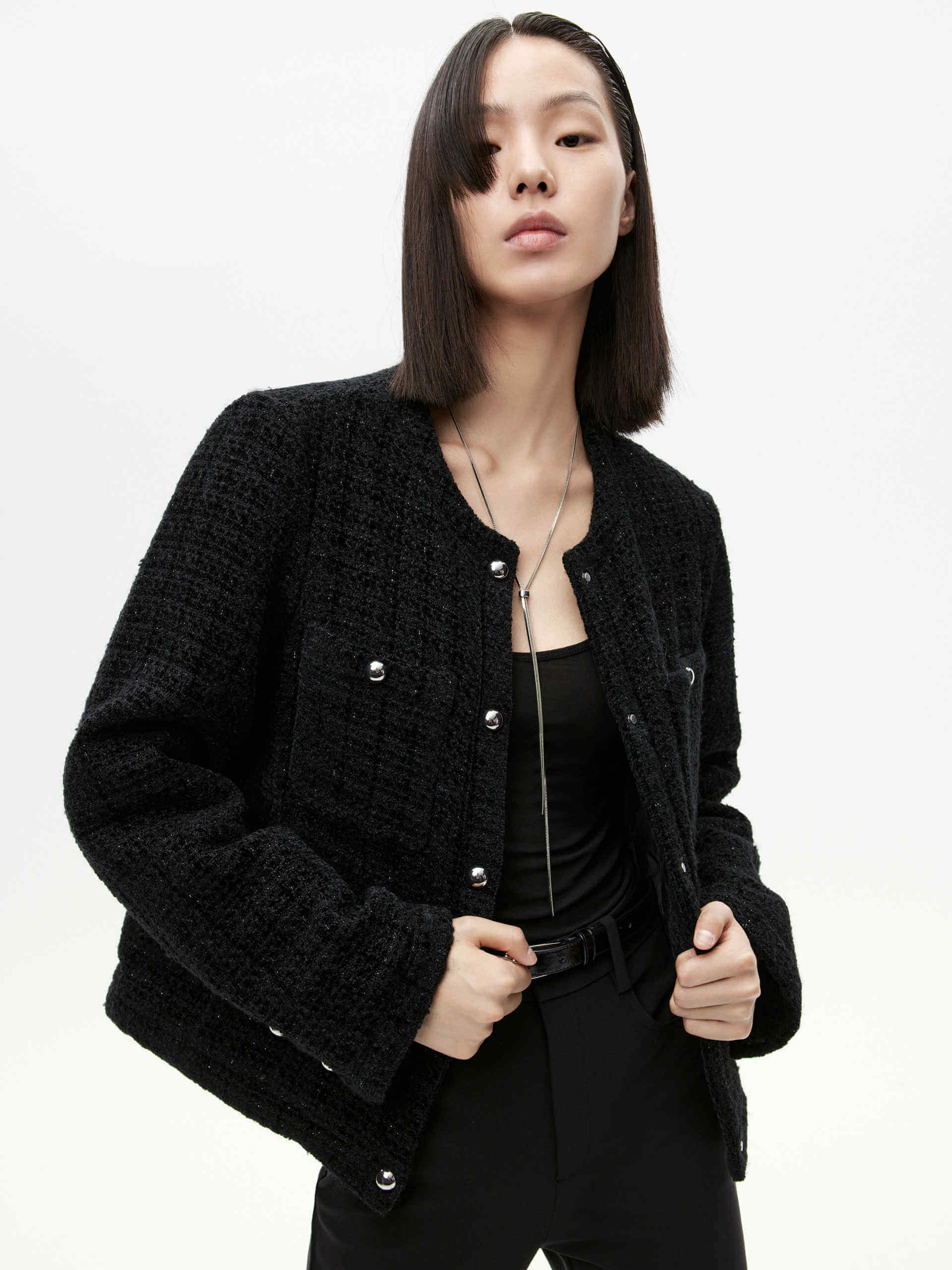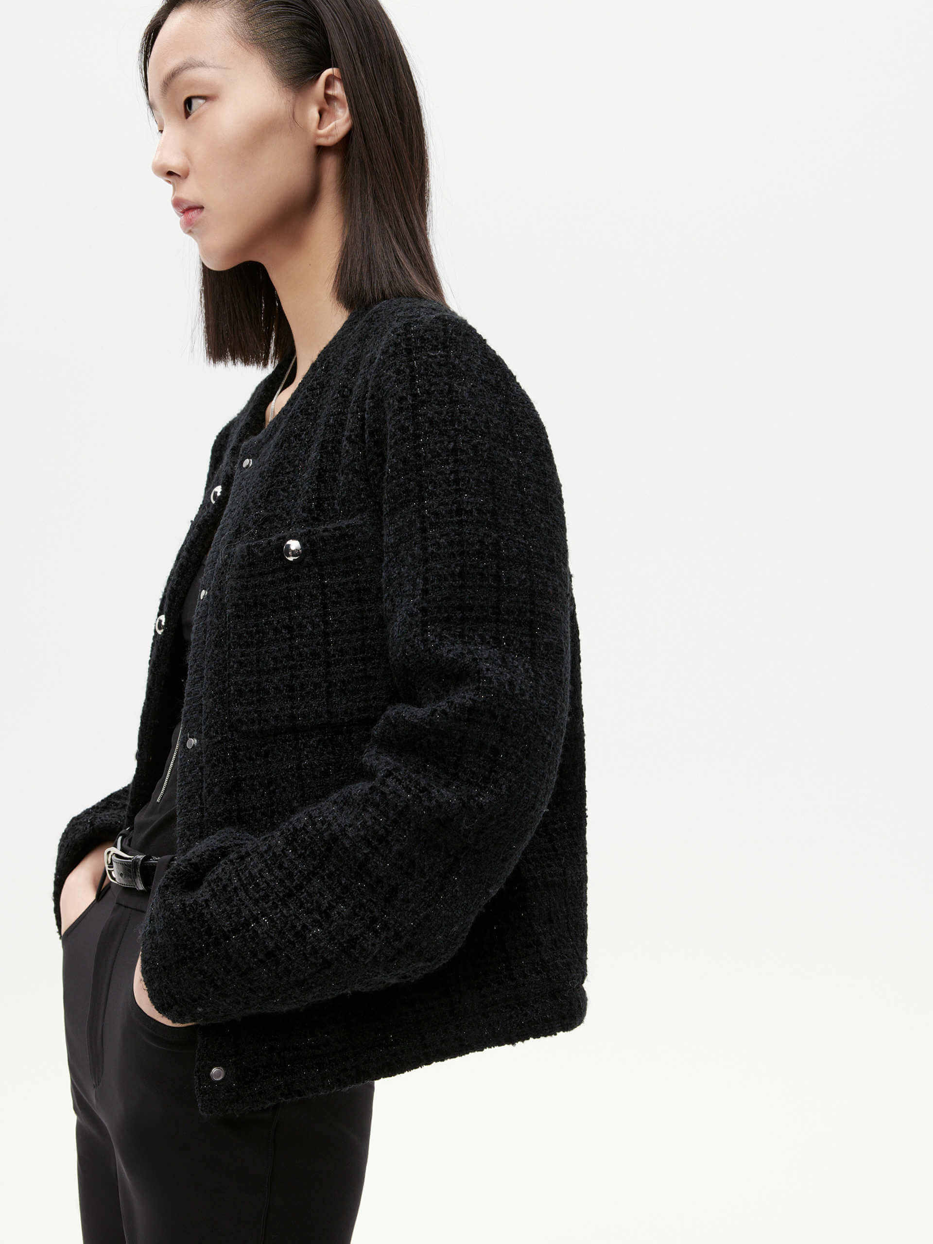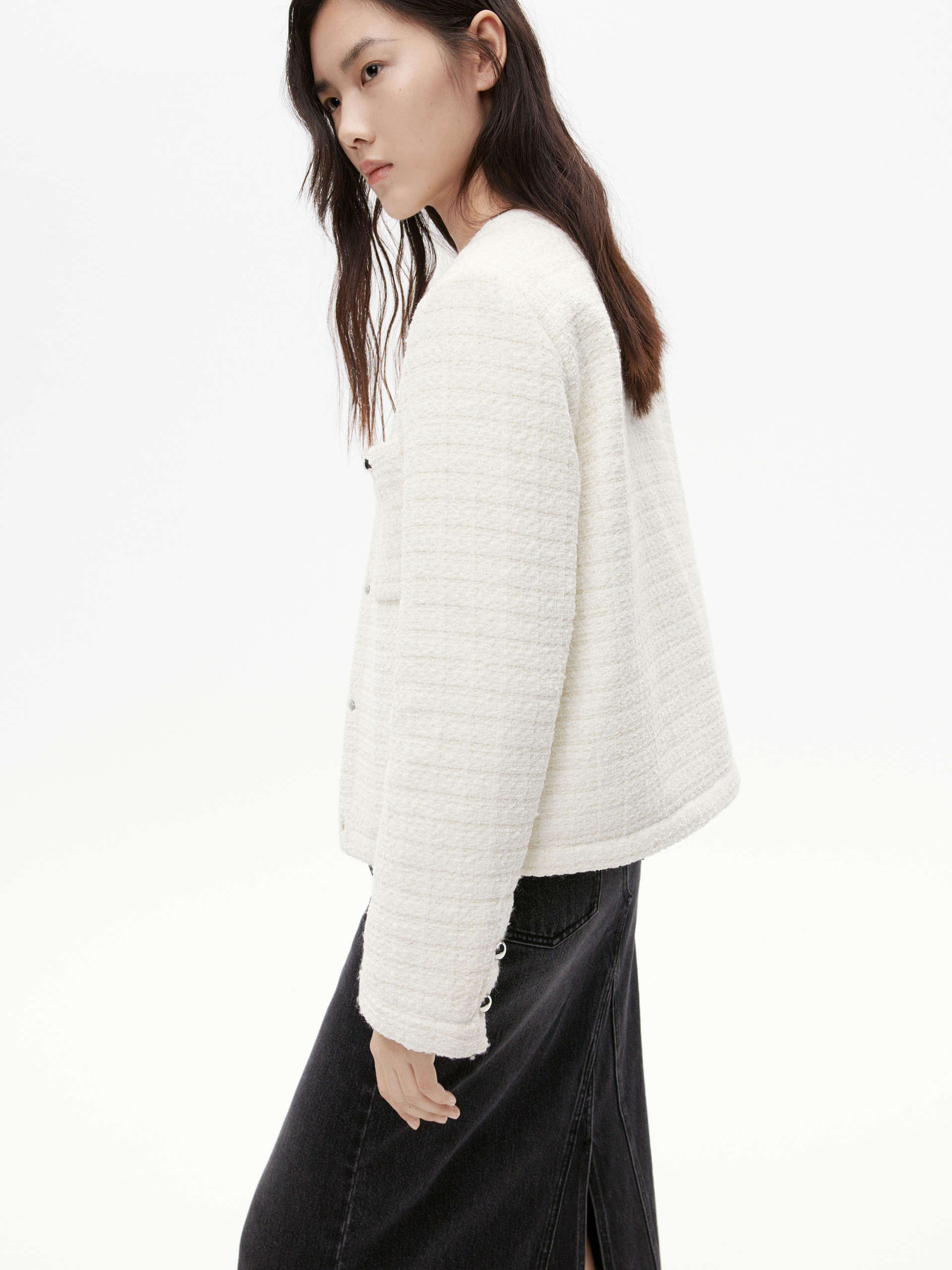 Crafted from a tweed textured finish with 90% down fill, this jacket offers a classic quilted design with a perfect boxy fit silhouette. The plush warmth will keep you comfortable all season long, while the stylish tweed detailing will elevate any look.