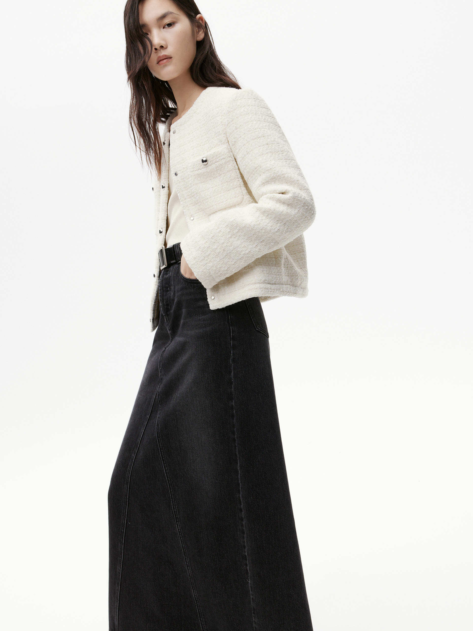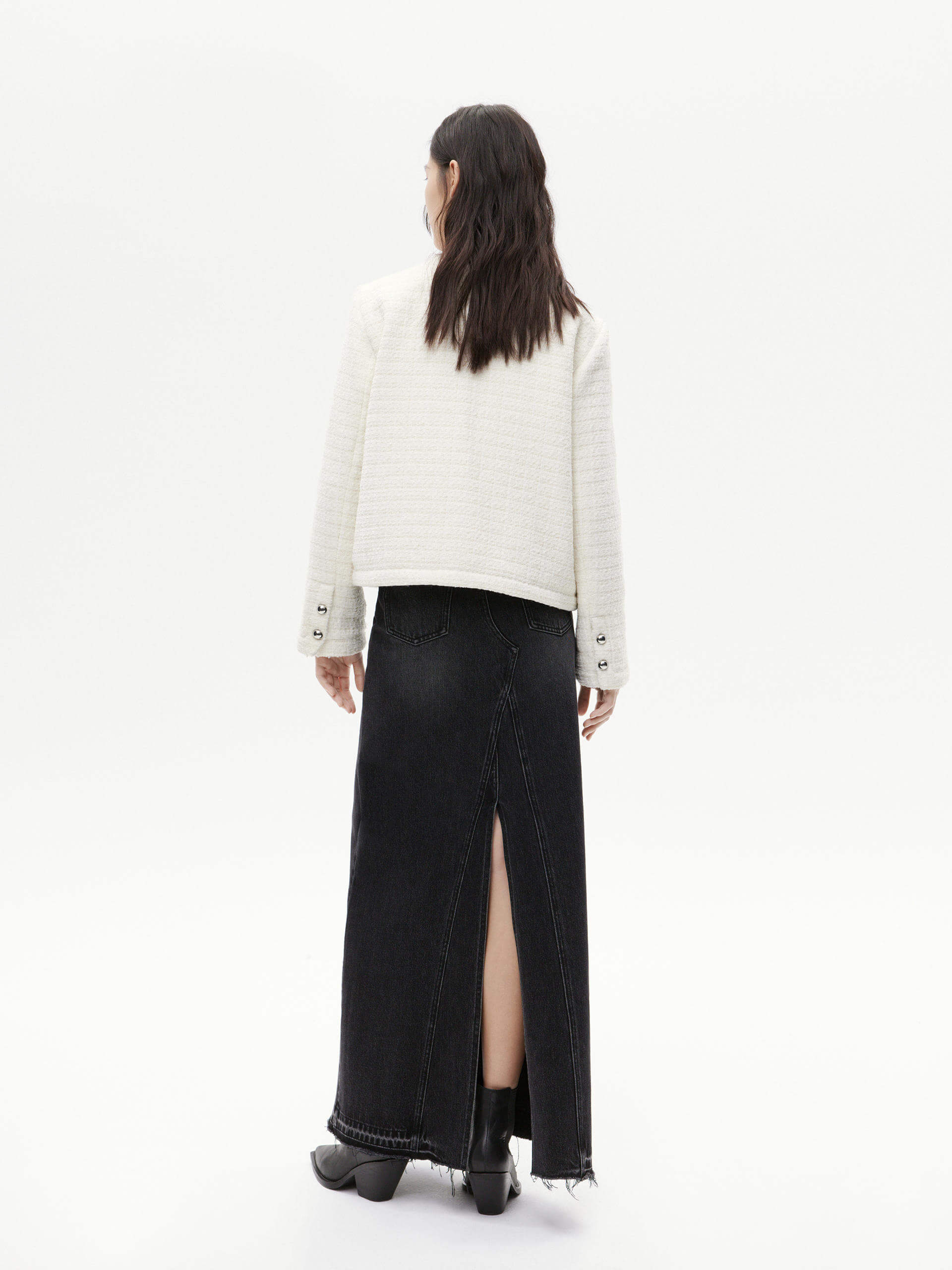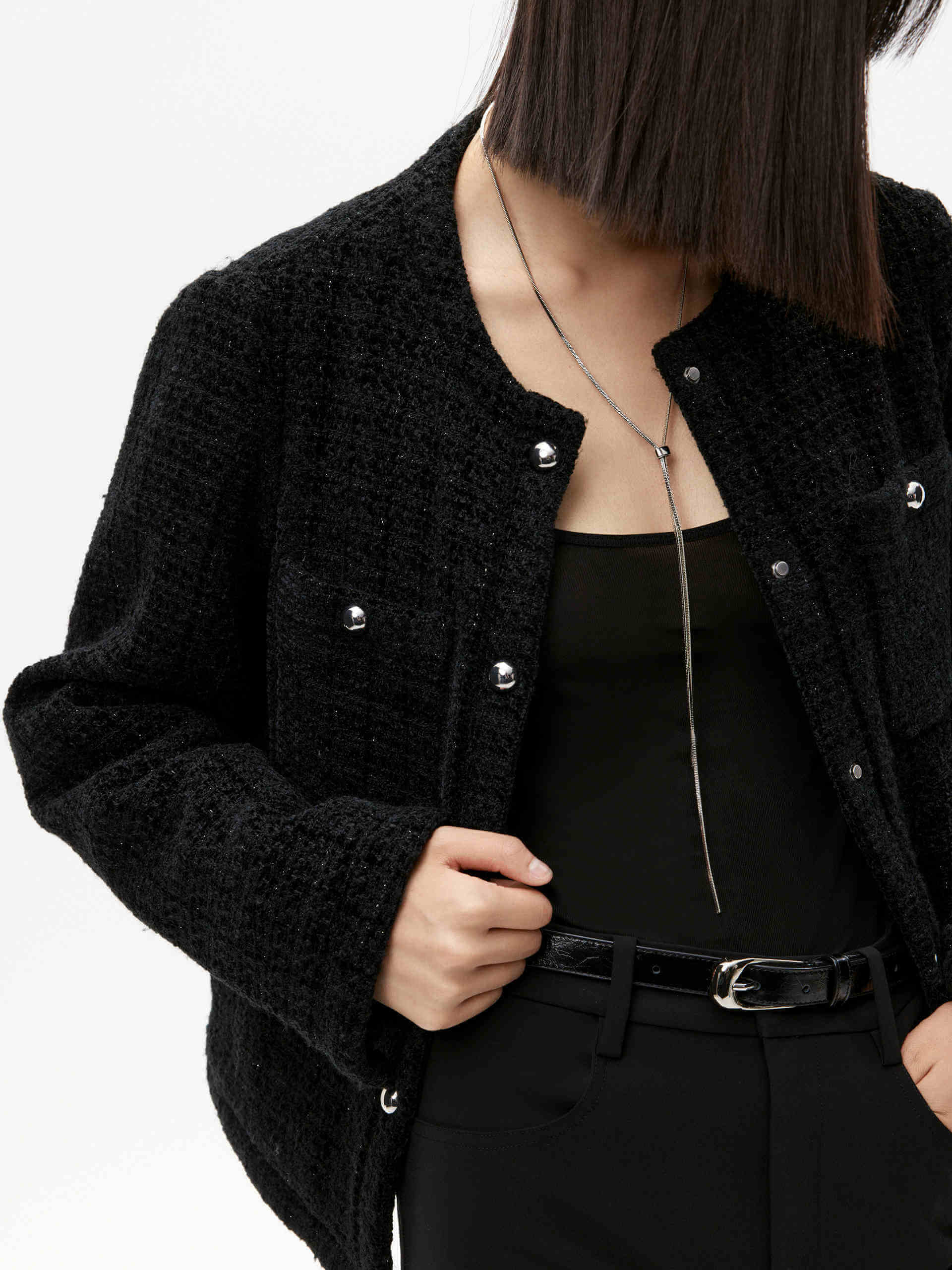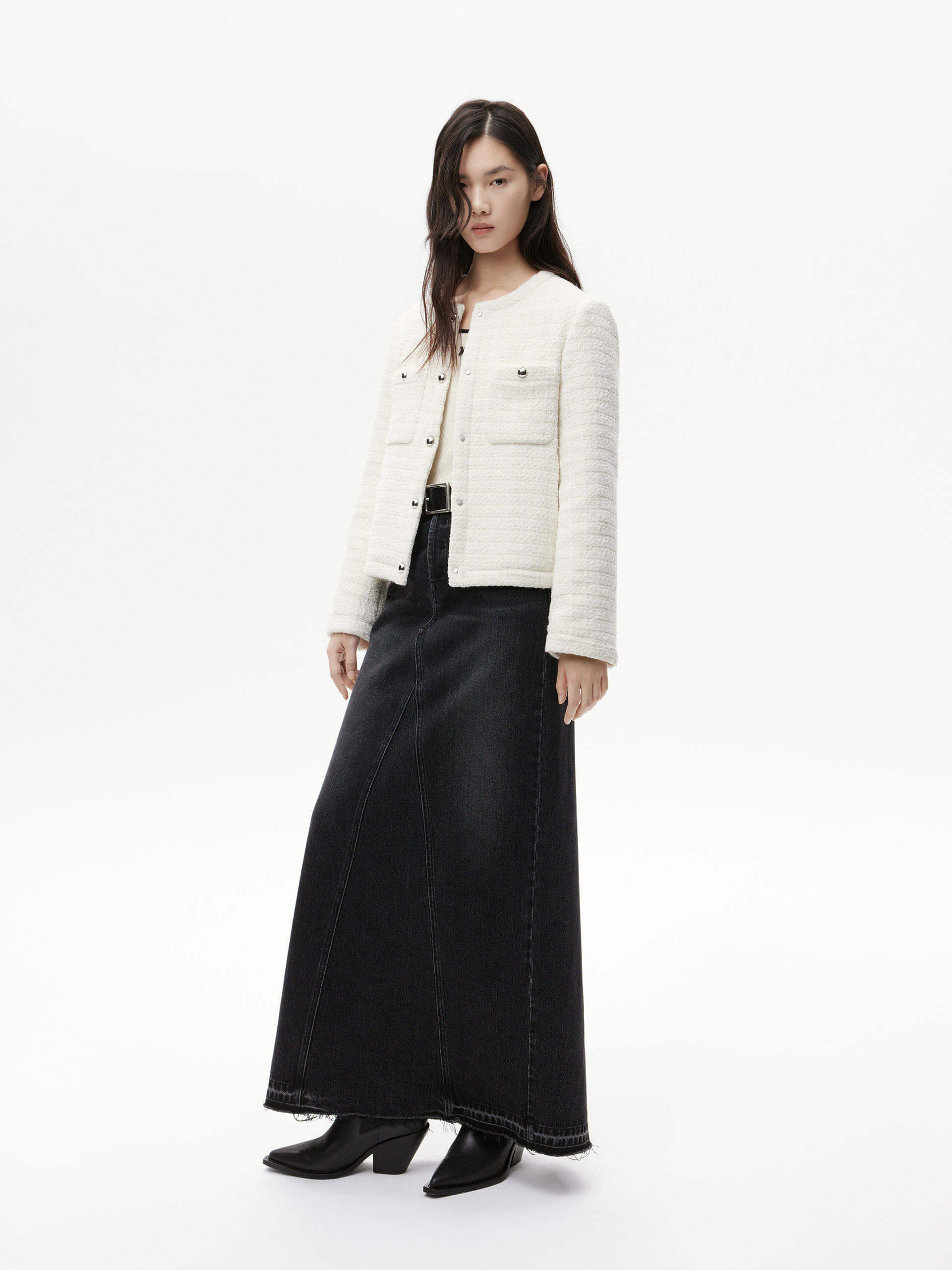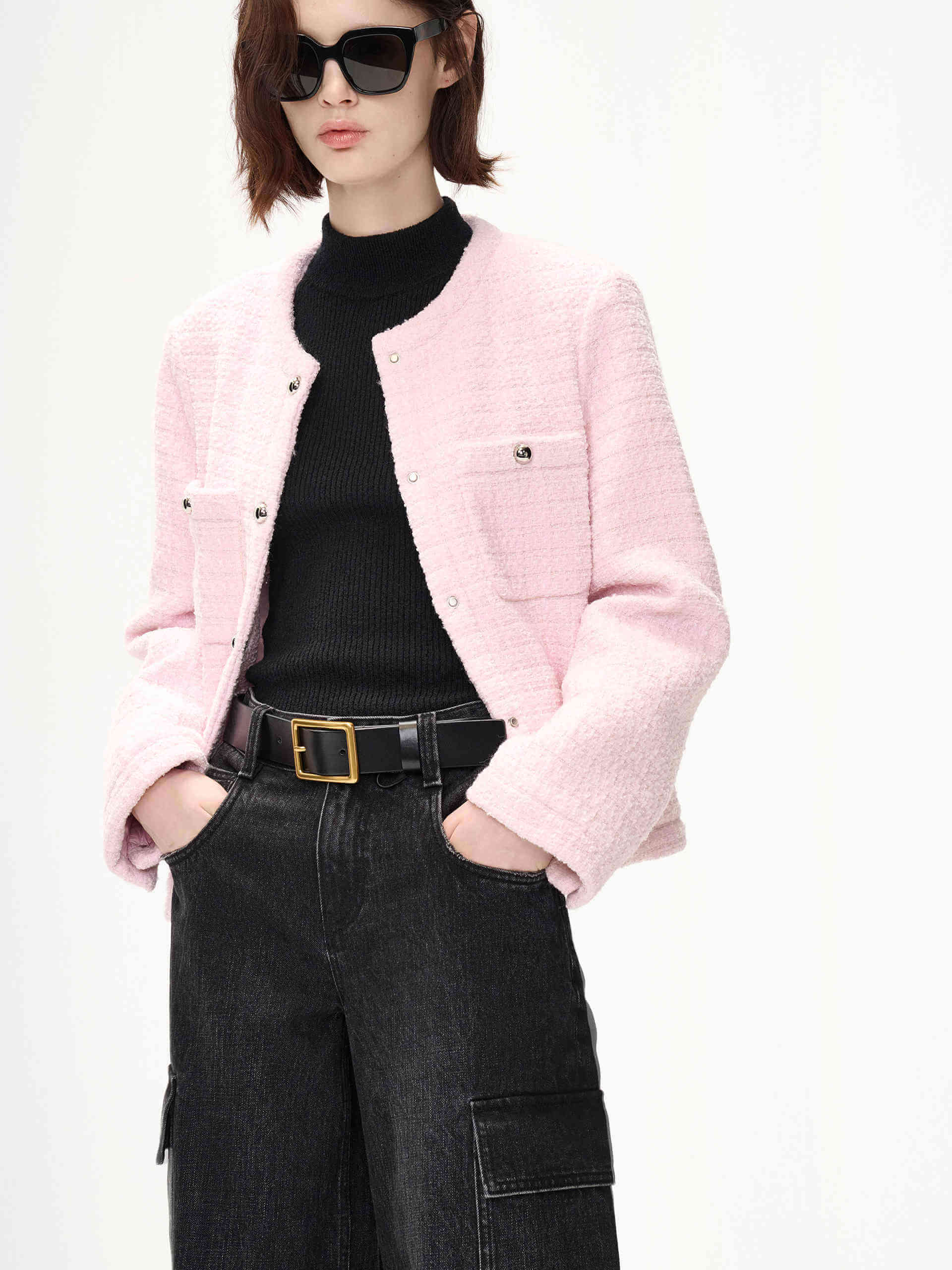 Crafted from a tweed textured finish with 90% down fill, this jacket offers a classic quilted design with a perfect boxy fit silhouette. The plush warmth will keep you comfortable all season long, while the stylish tweed detailing will elevate any look.