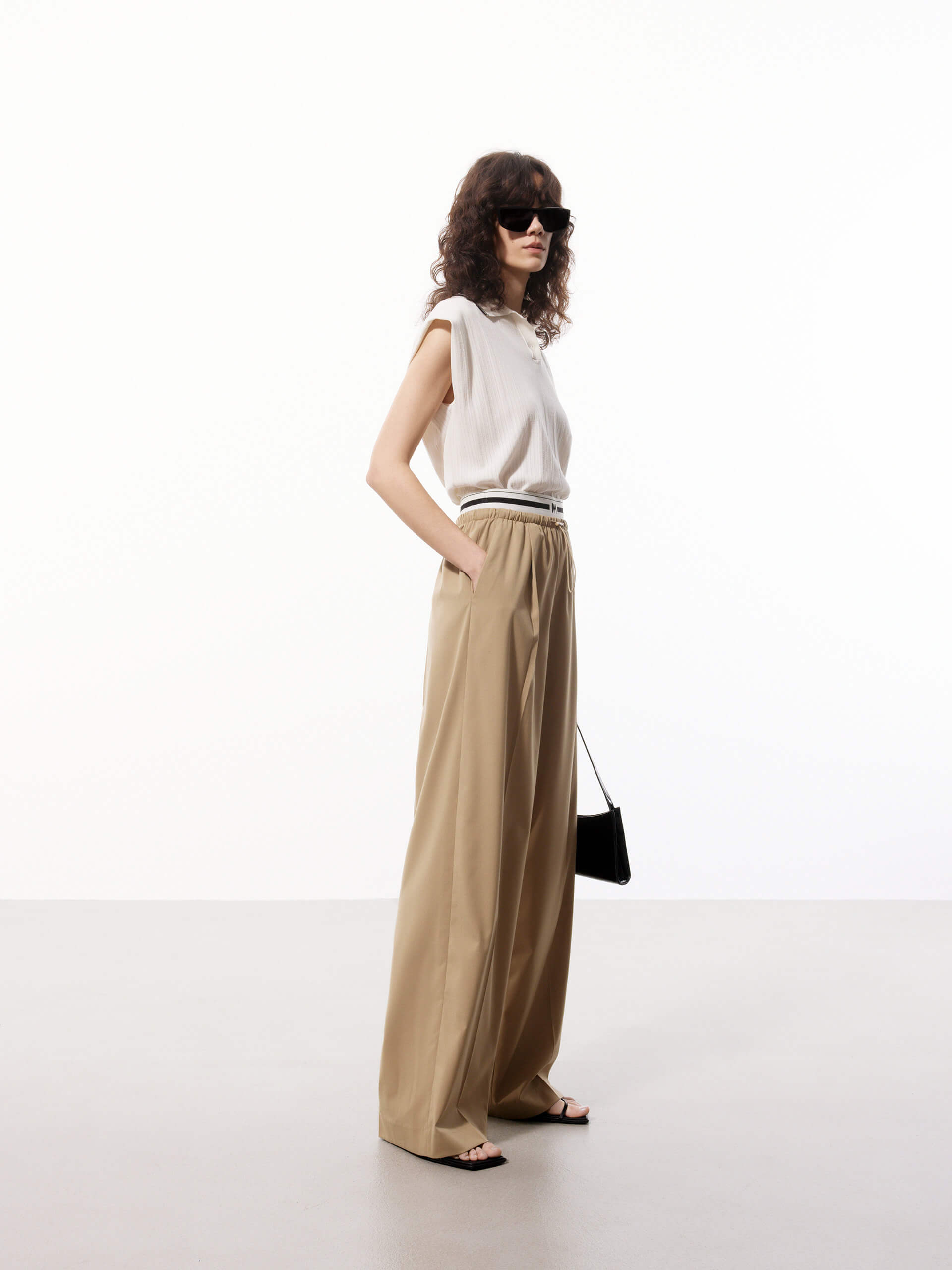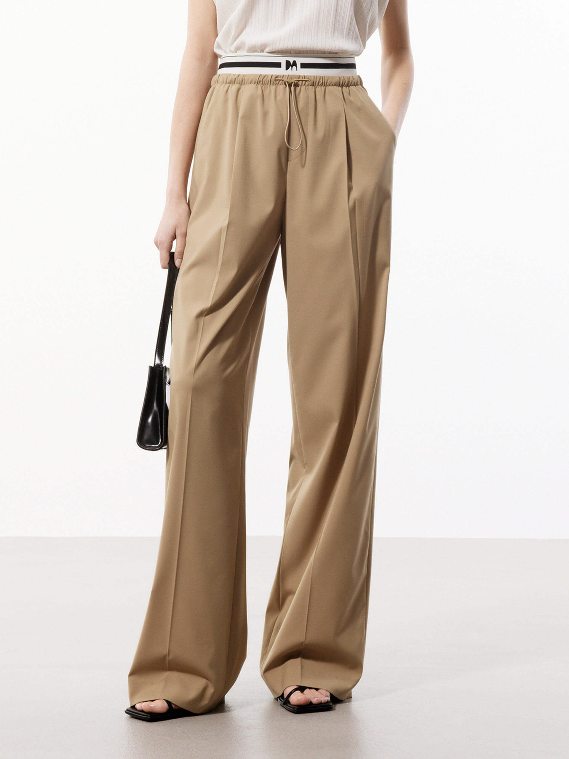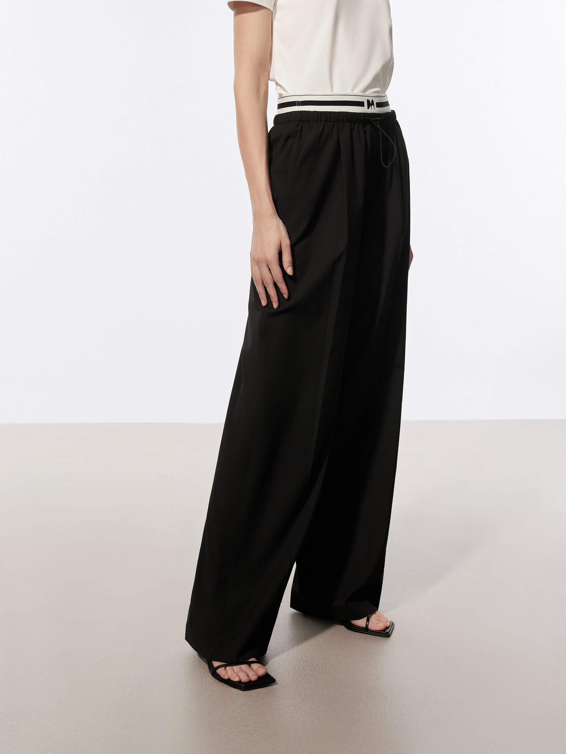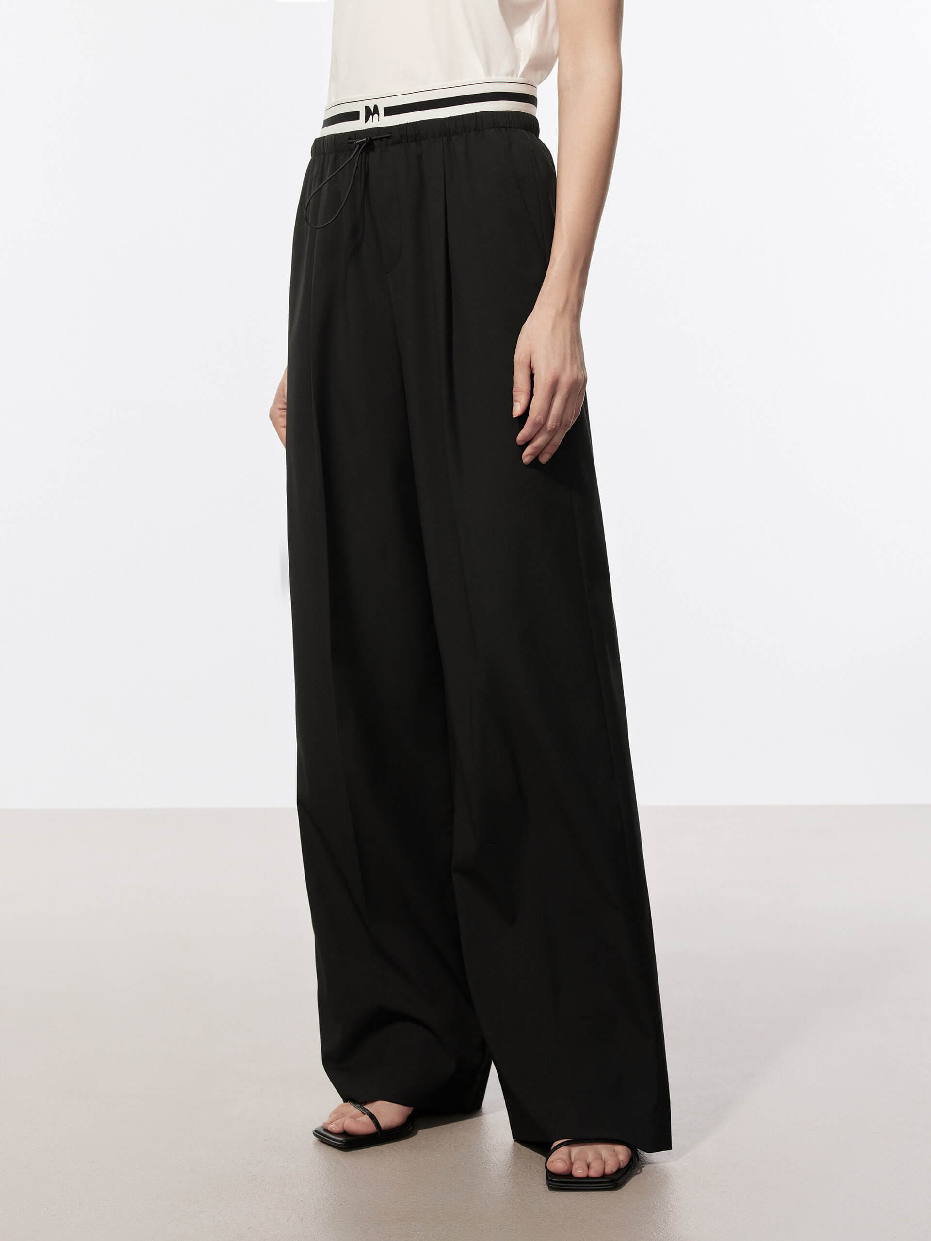 Contrast Waist Pleated Pants