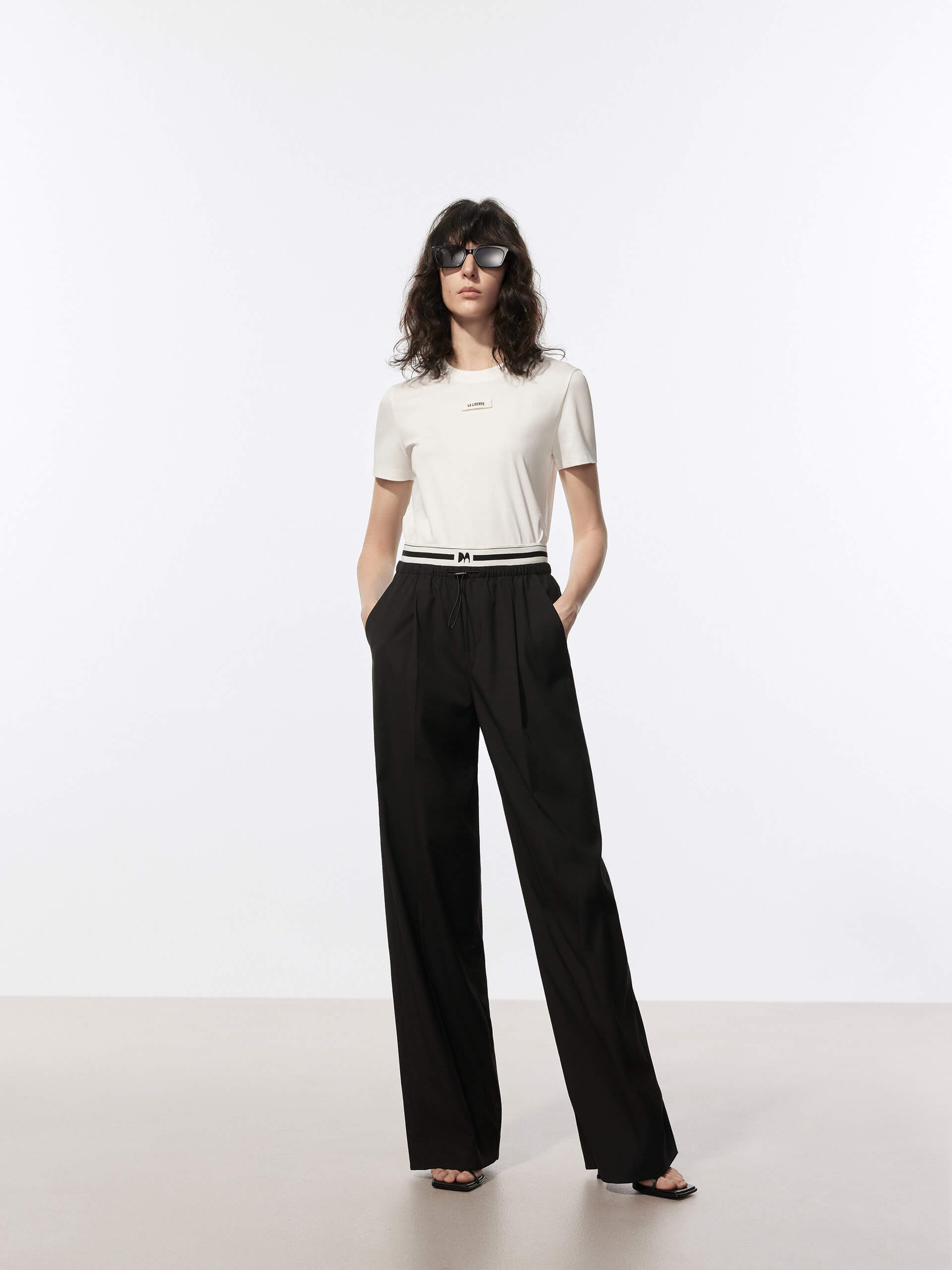 Effortlessly stylish, these pants are made with comfortable fabric that will keep you comfortable all day. The wide-leg design is both flattering and comfortable, and the contrast waist with drawstring adds a touch of style. With convenient pockets, these pants are both practical and fashionable.