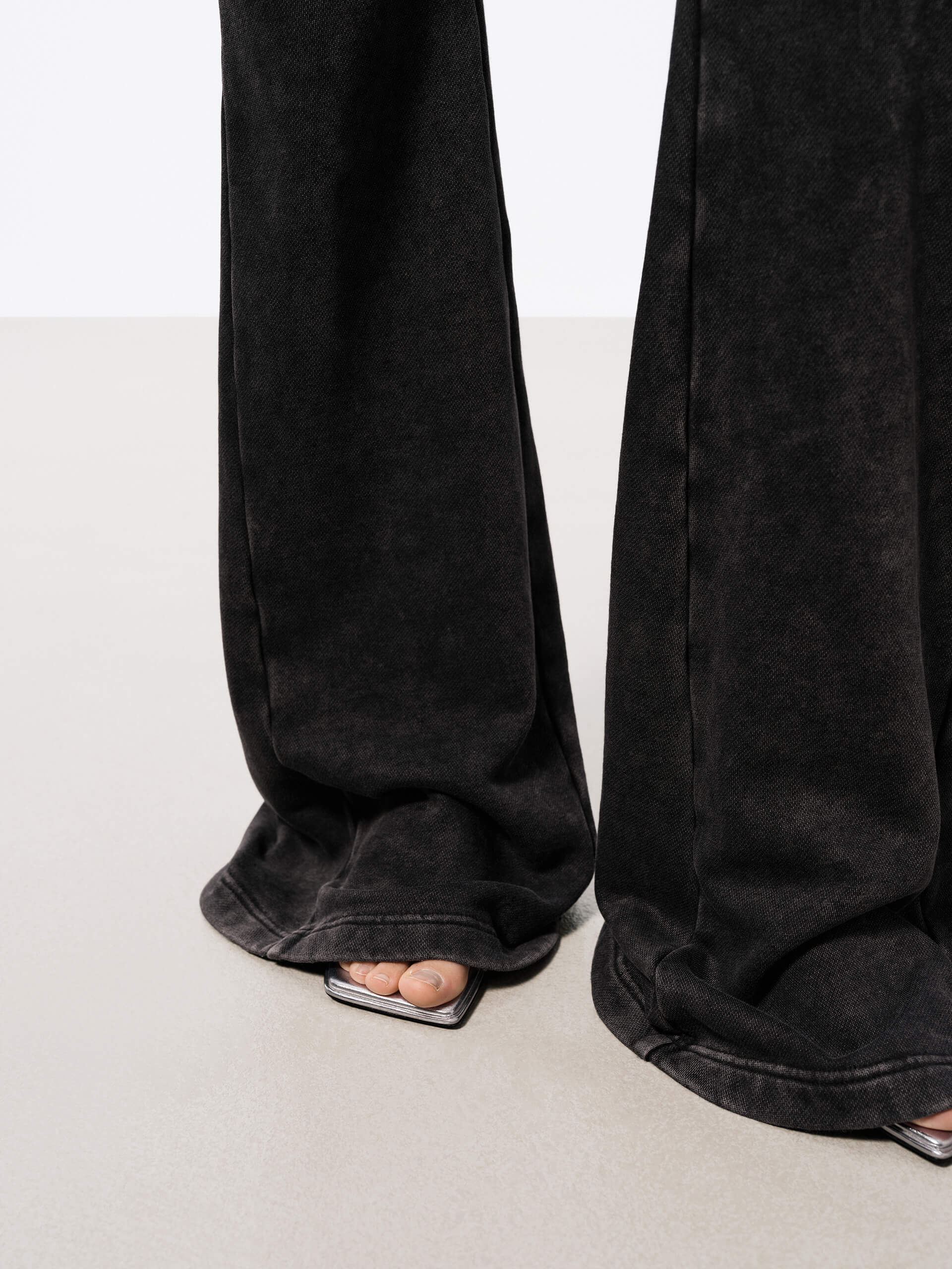 - Straight leg with flared hem