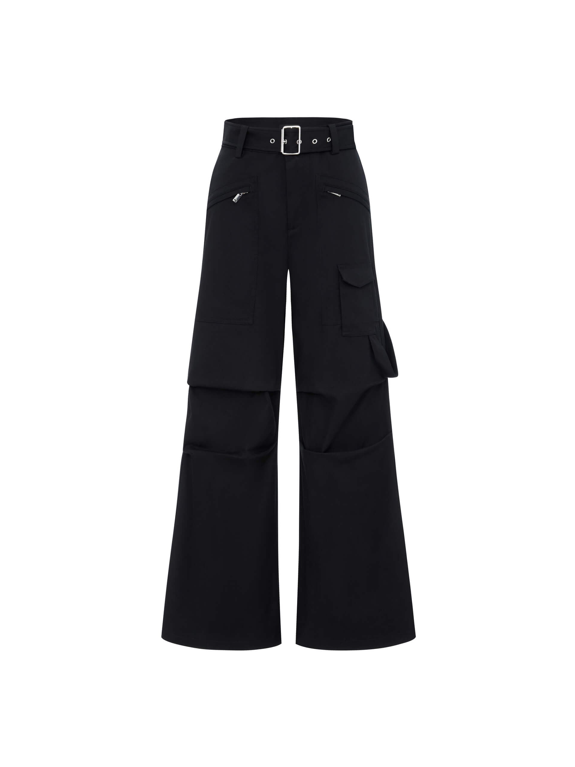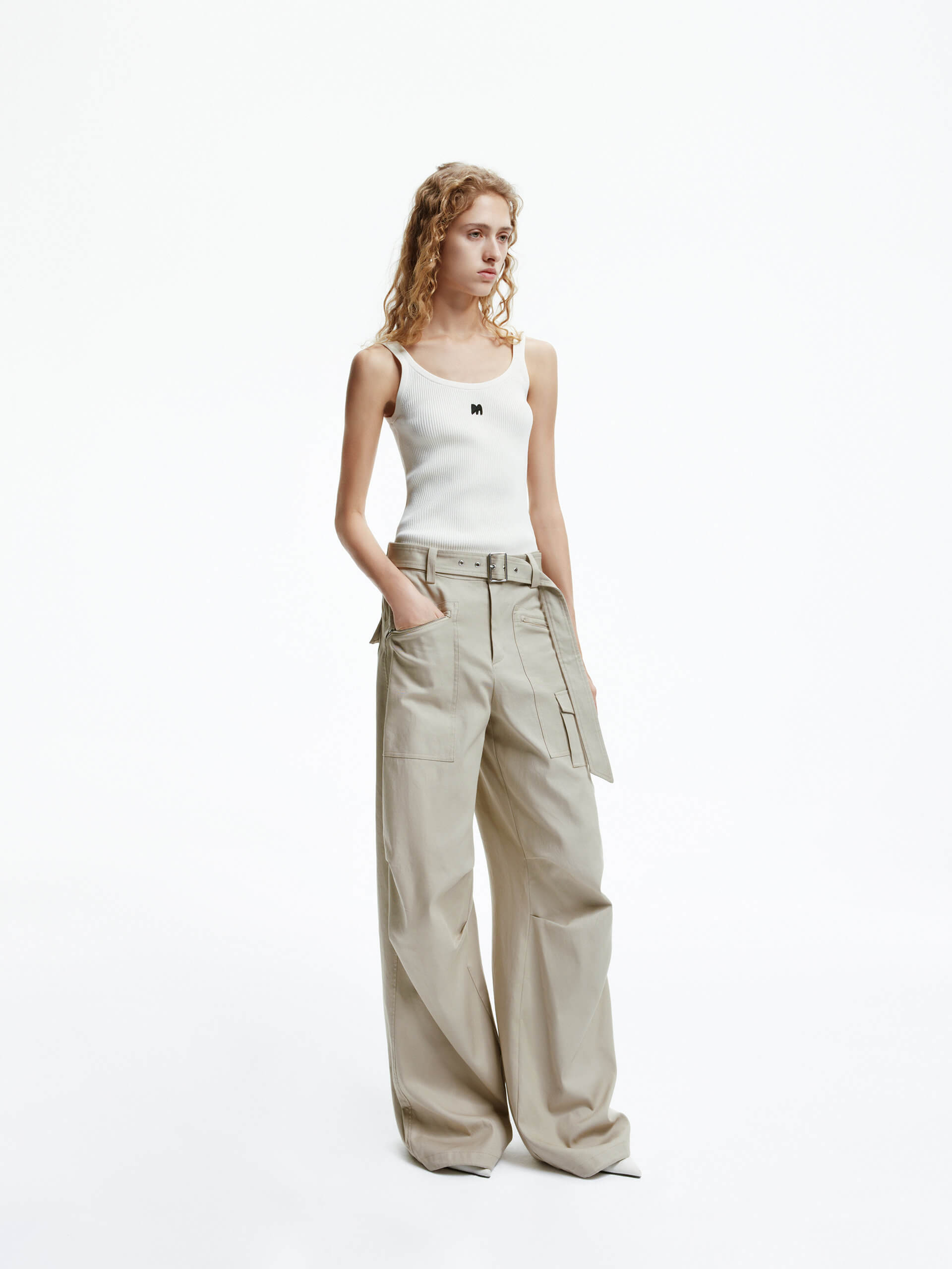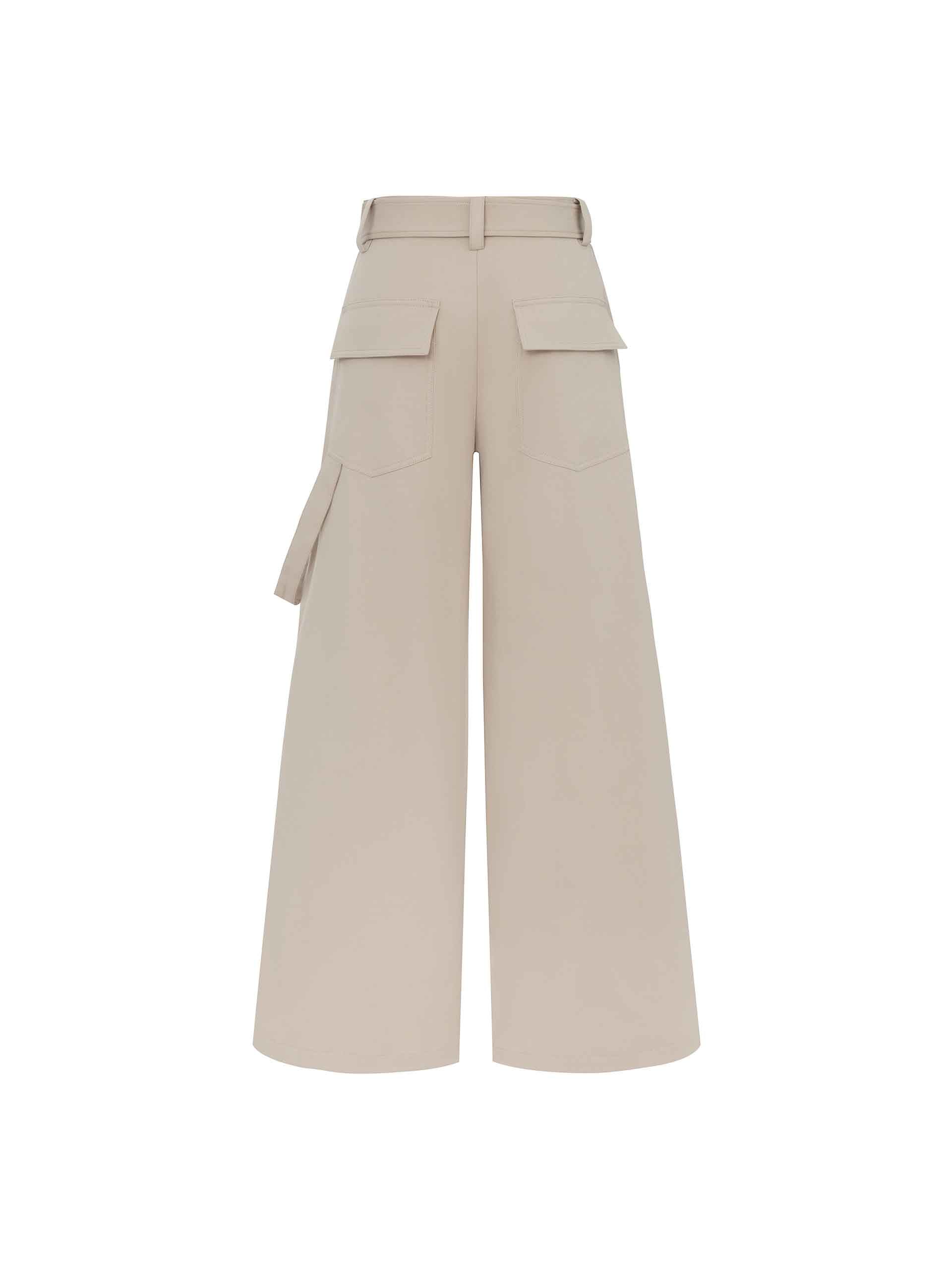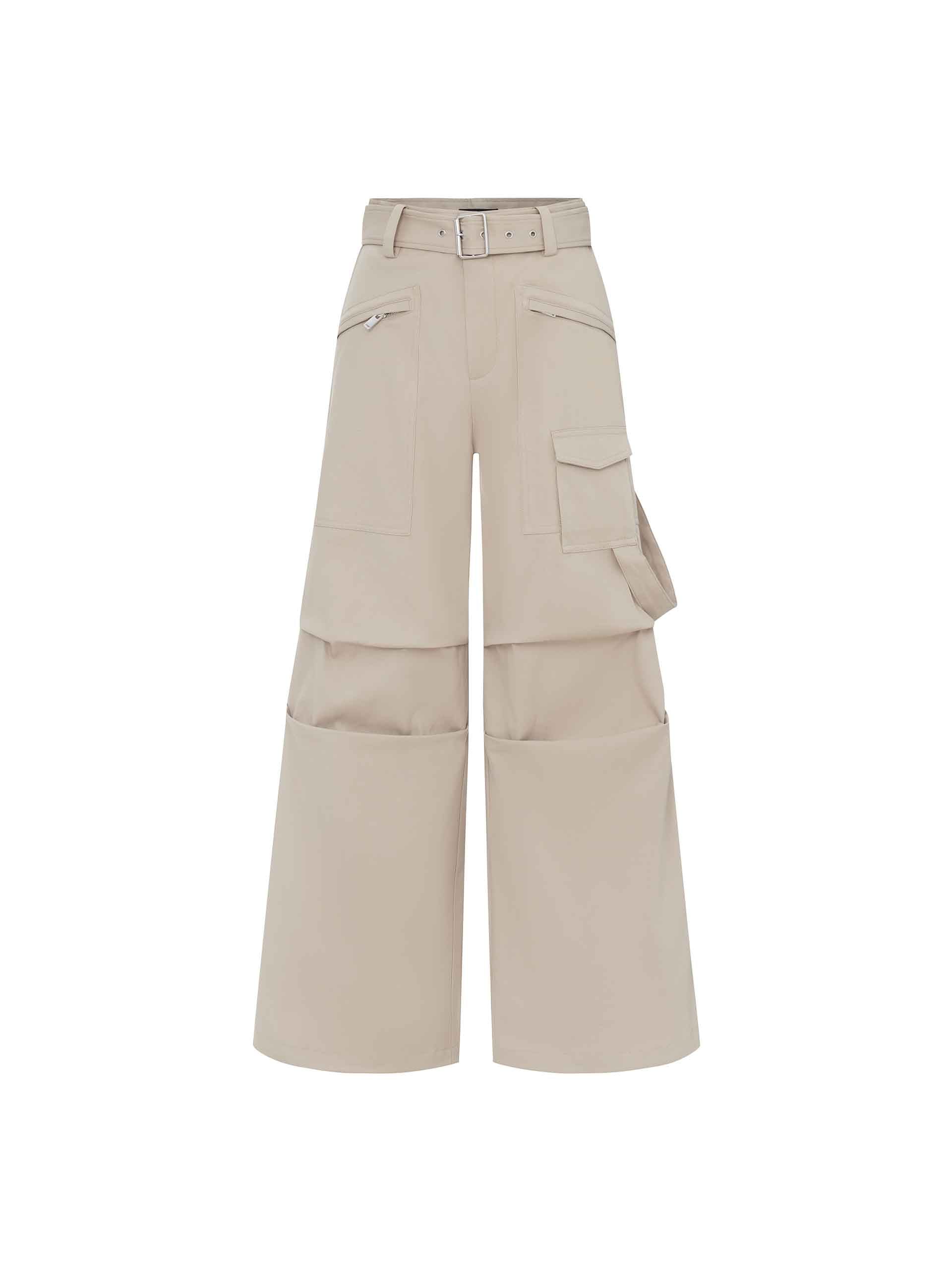Elevate your casual style with our pants. Crafted from a comfy cotton blend, these pants offer a relaxed fit and wide legs that will pool effortlessly over your shoes. The folded details at the knee add a touch of industrial chic. Perfectly pairs with a fitted top for a laid-back yet trendy look.