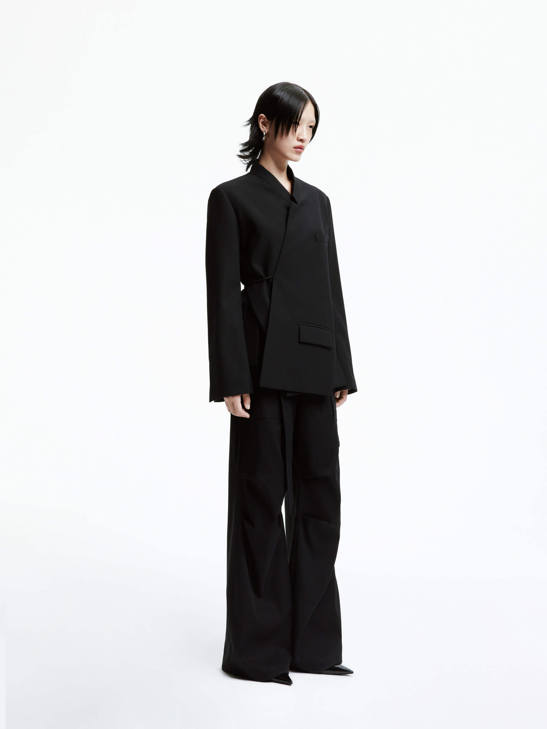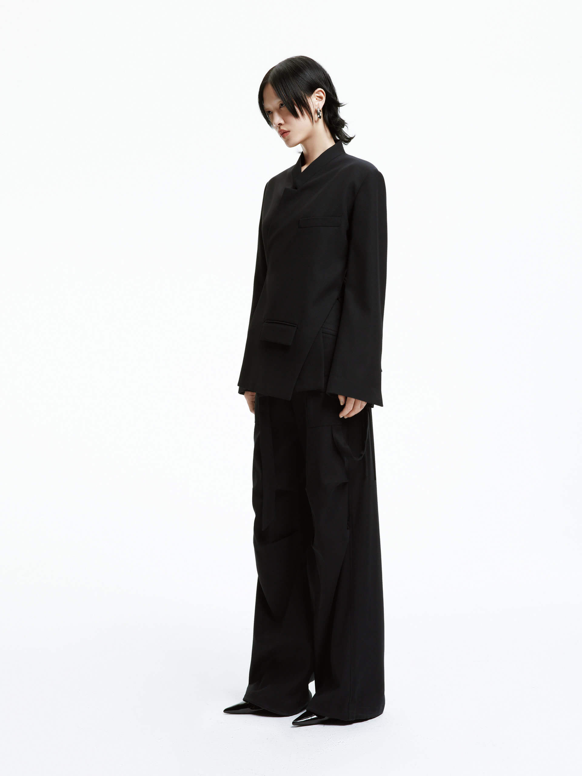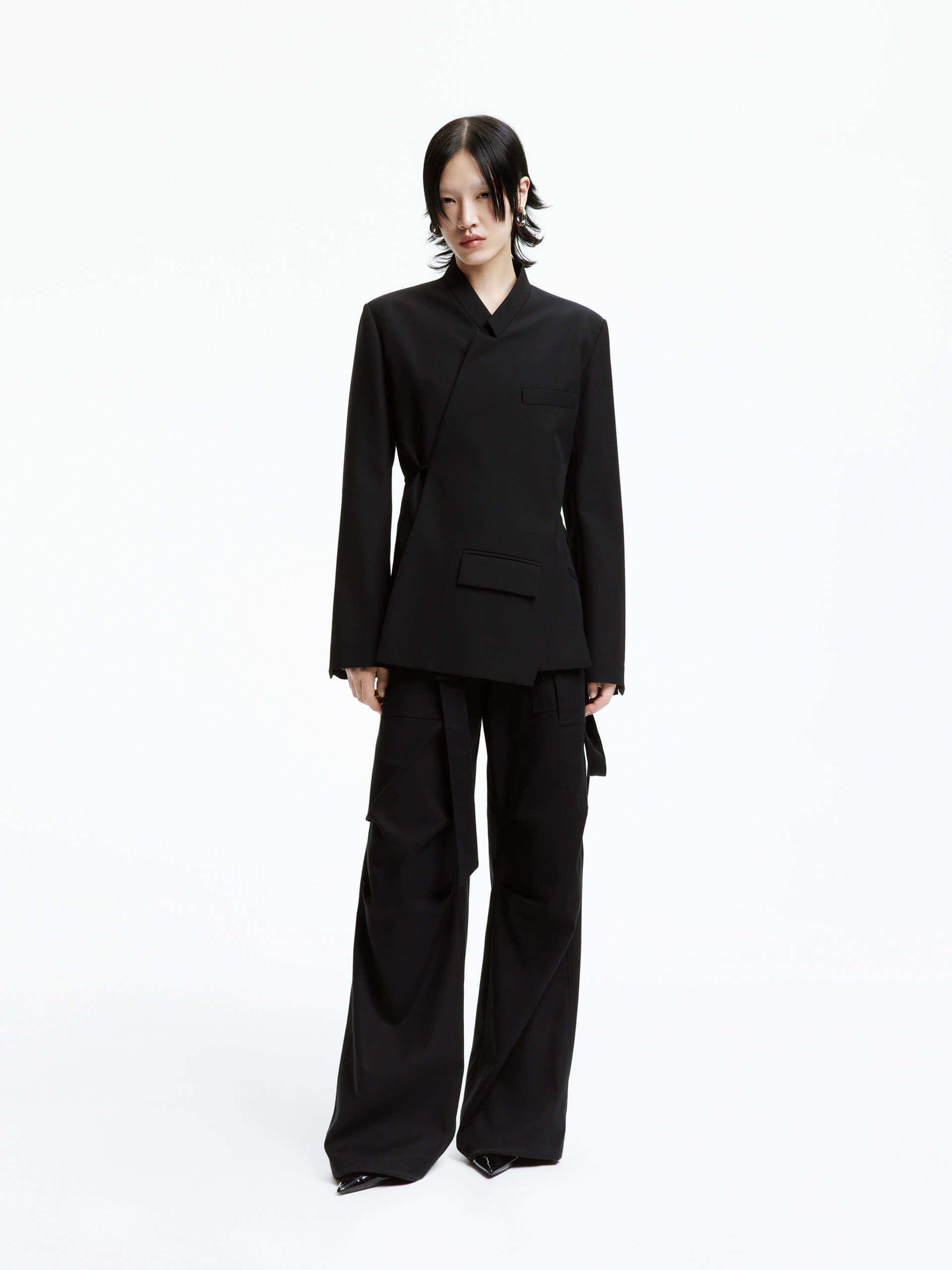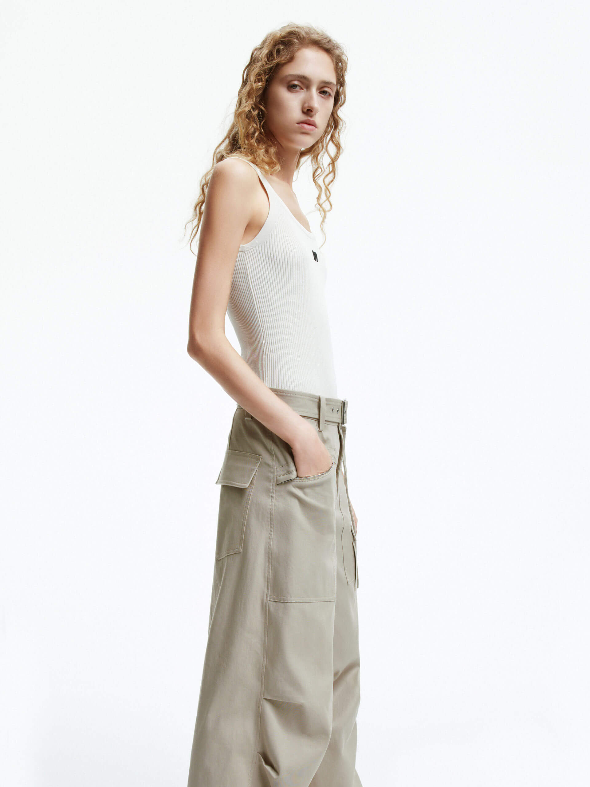 Elevate your casual style with our pants. Crafted from a comfy cotton blend, these pants offer a relaxed fit and wide legs that will pool effortlessly over your shoes. The folded details at the knee add a touch of industrial chic. Perfectly pairs with a fitted top for a laid-back yet trendy look.
