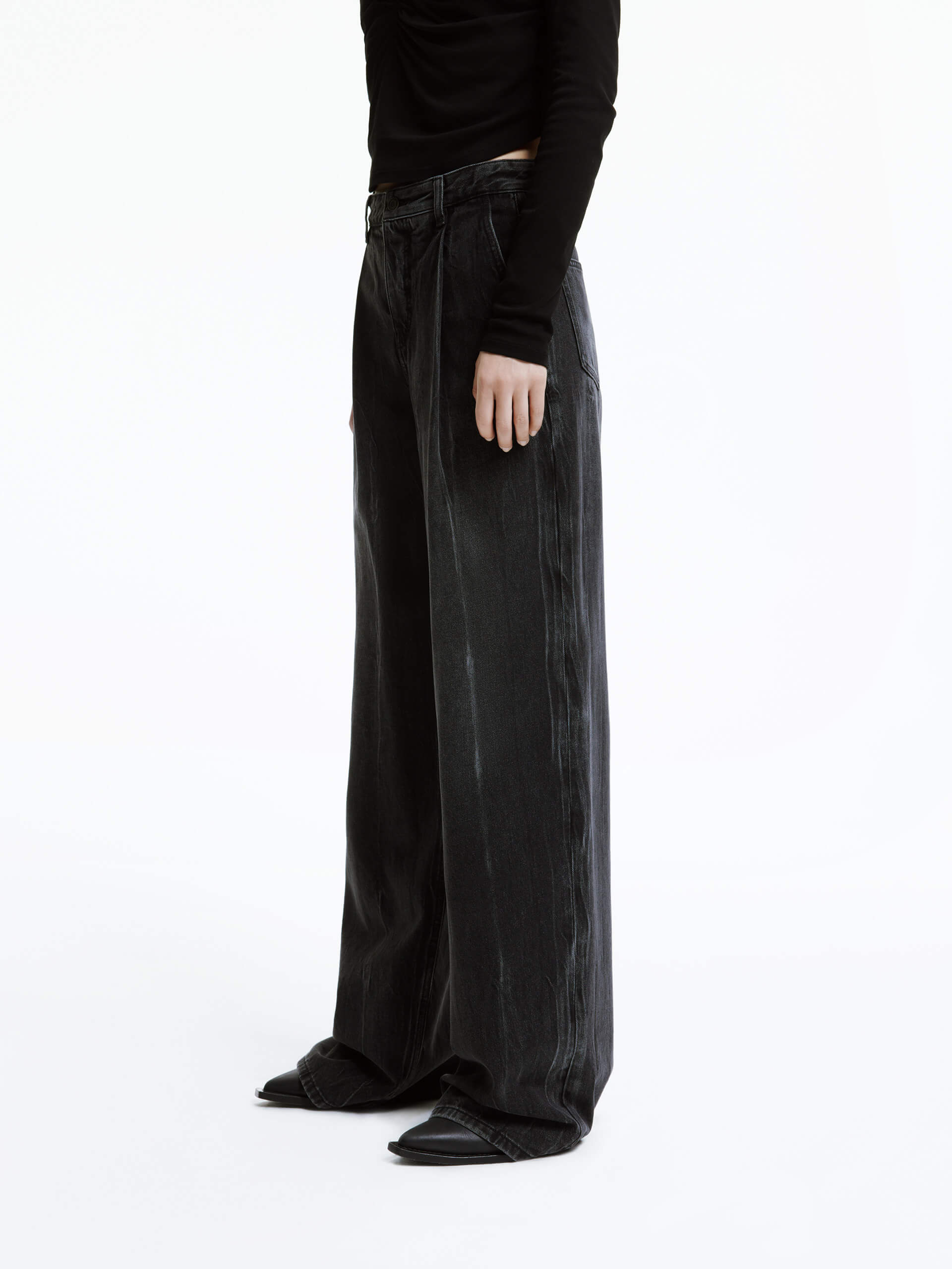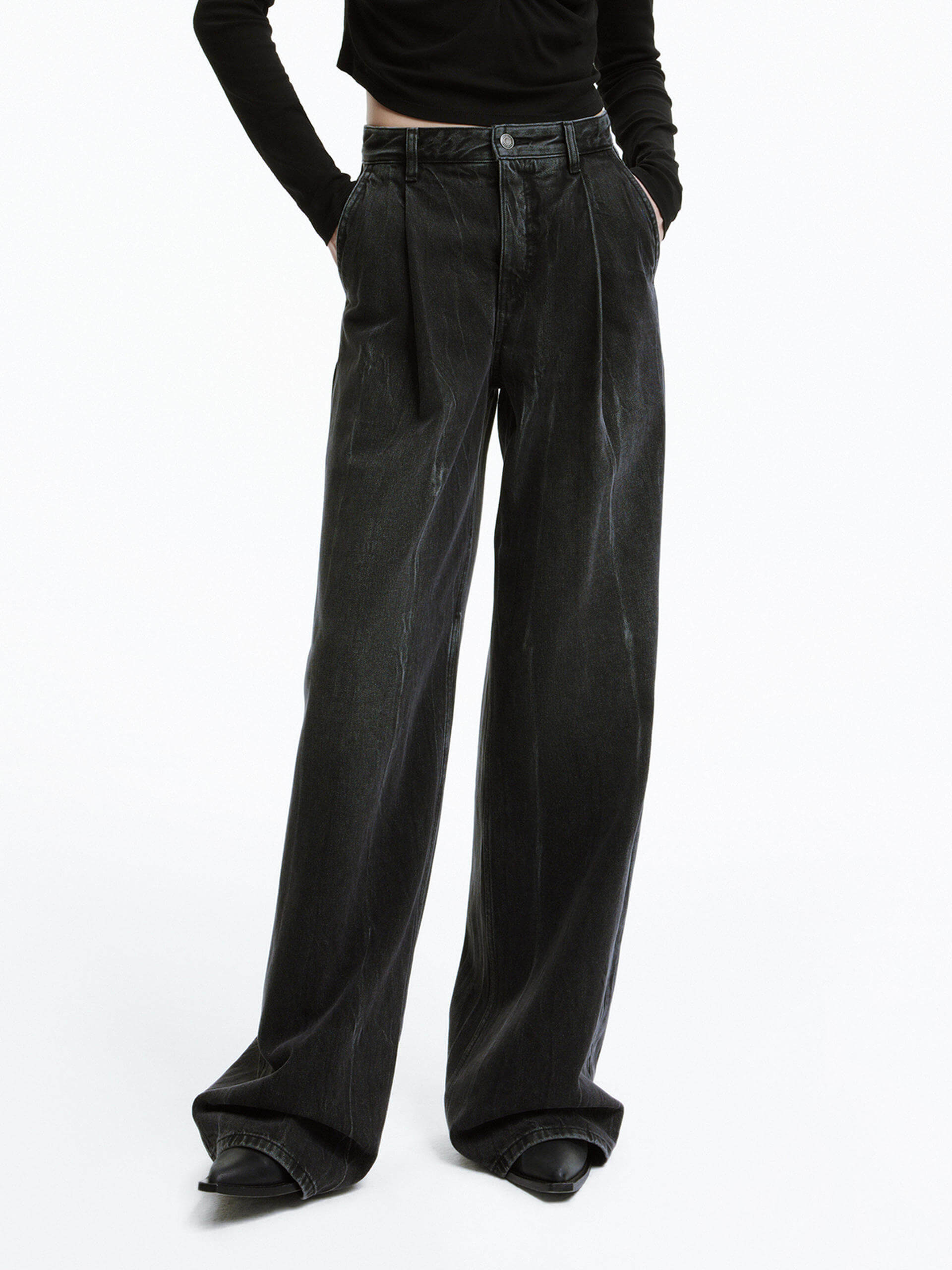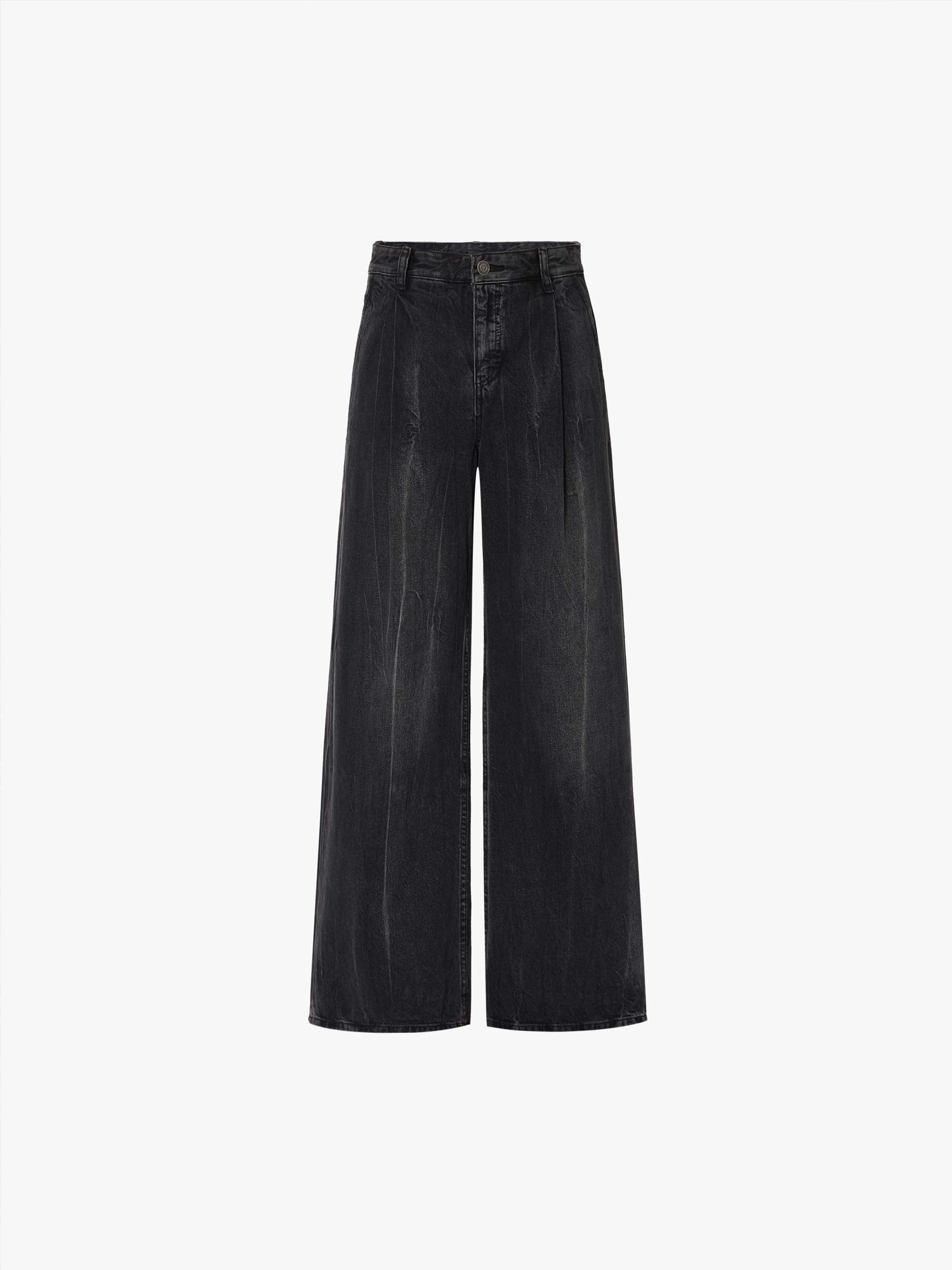 Wide Leg Pleated Jeans