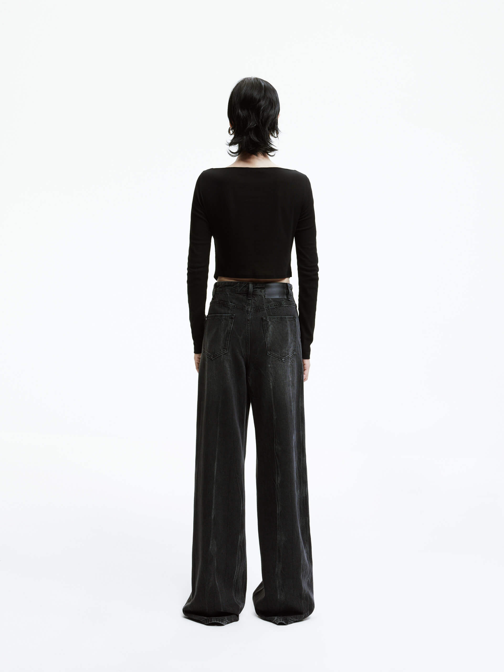 Made from high-quality cotton, these jeans are perfect for a casual yet chic look. The faded black wash adds a touch of edginess while the high waist and wide leg silhouette create a flattering shape. Pair with a fitted top to enhance your long and lean figure.