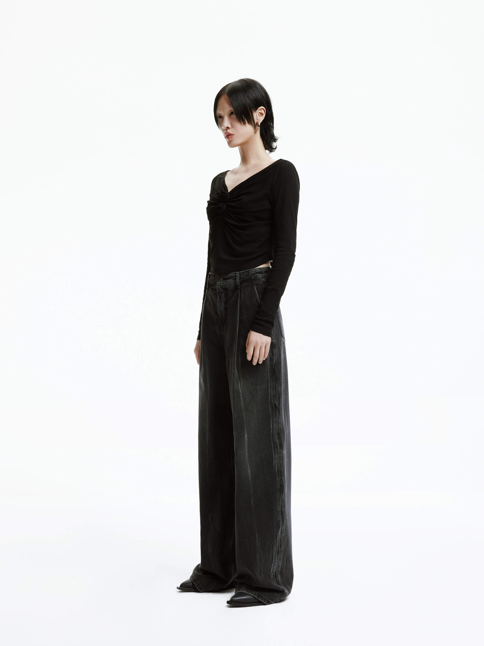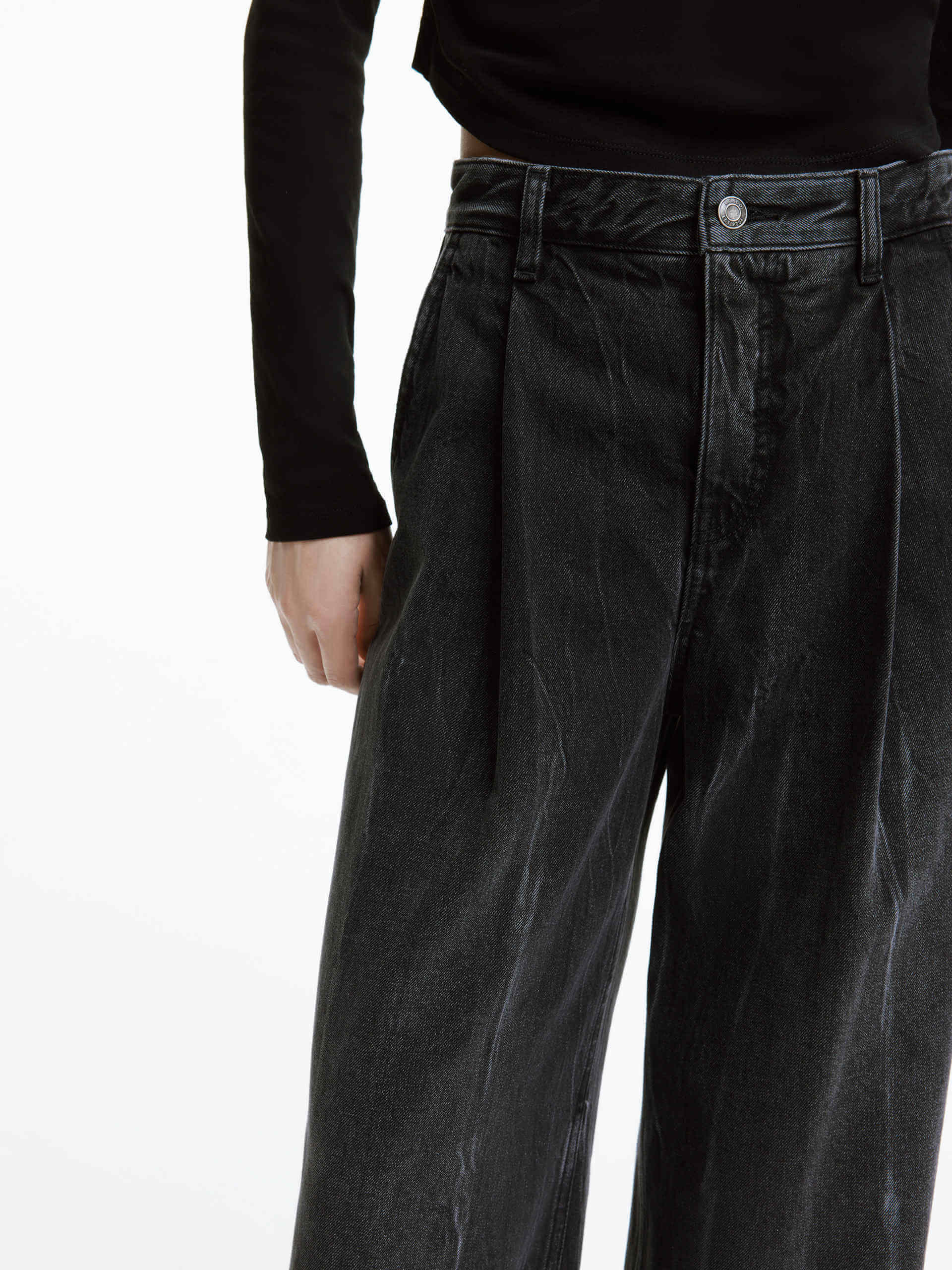 - Vintage washed faded details and pleated