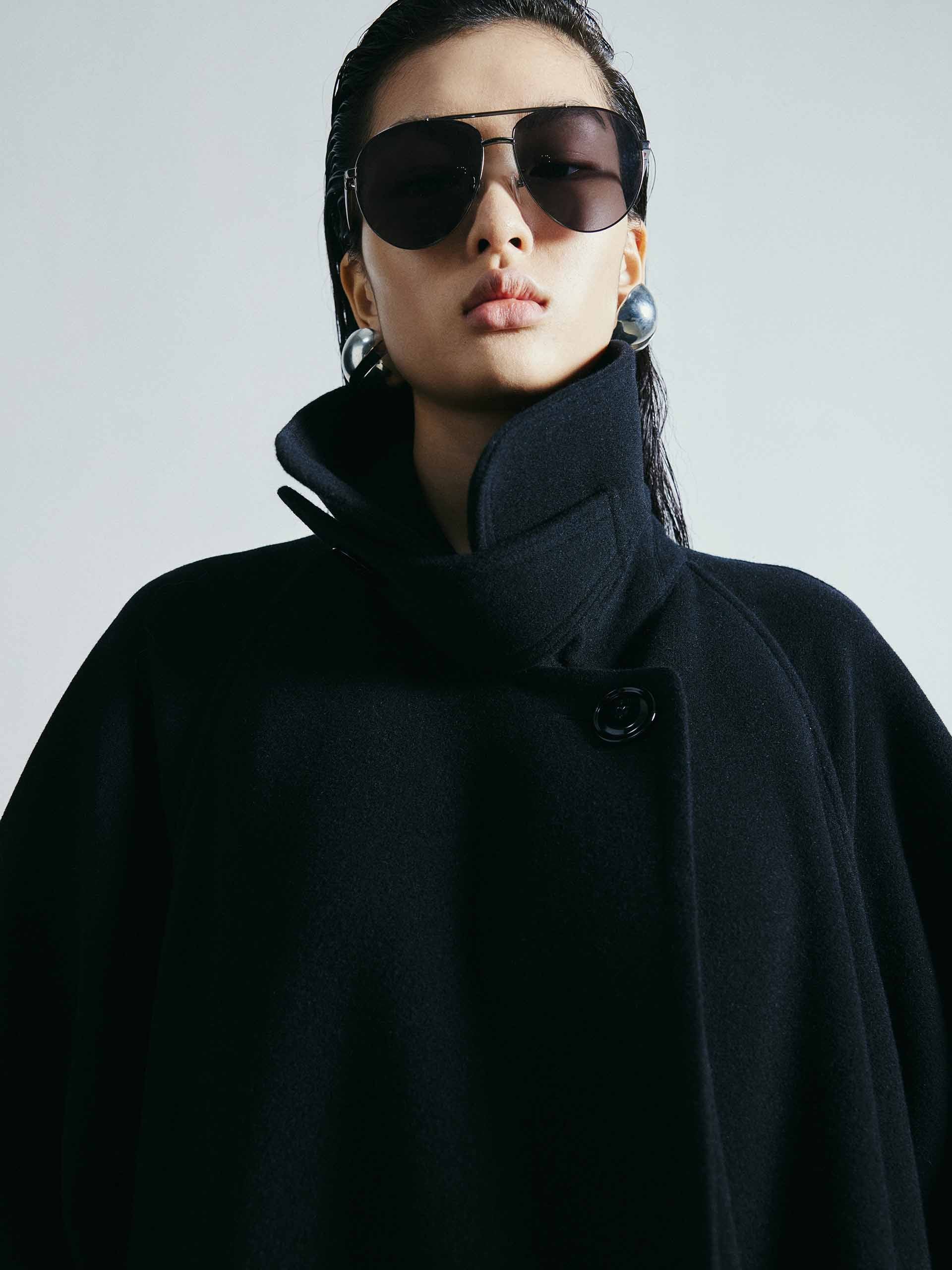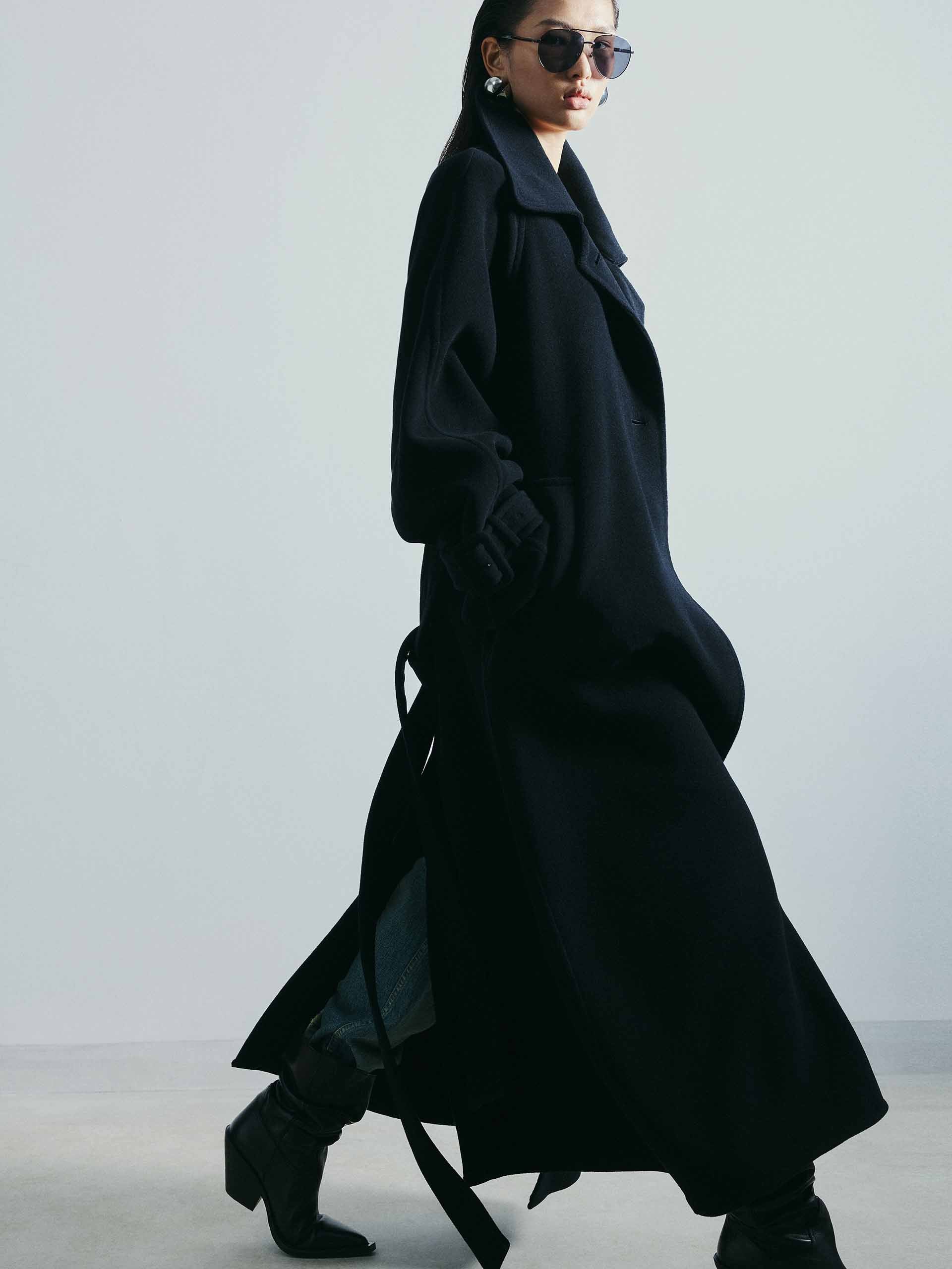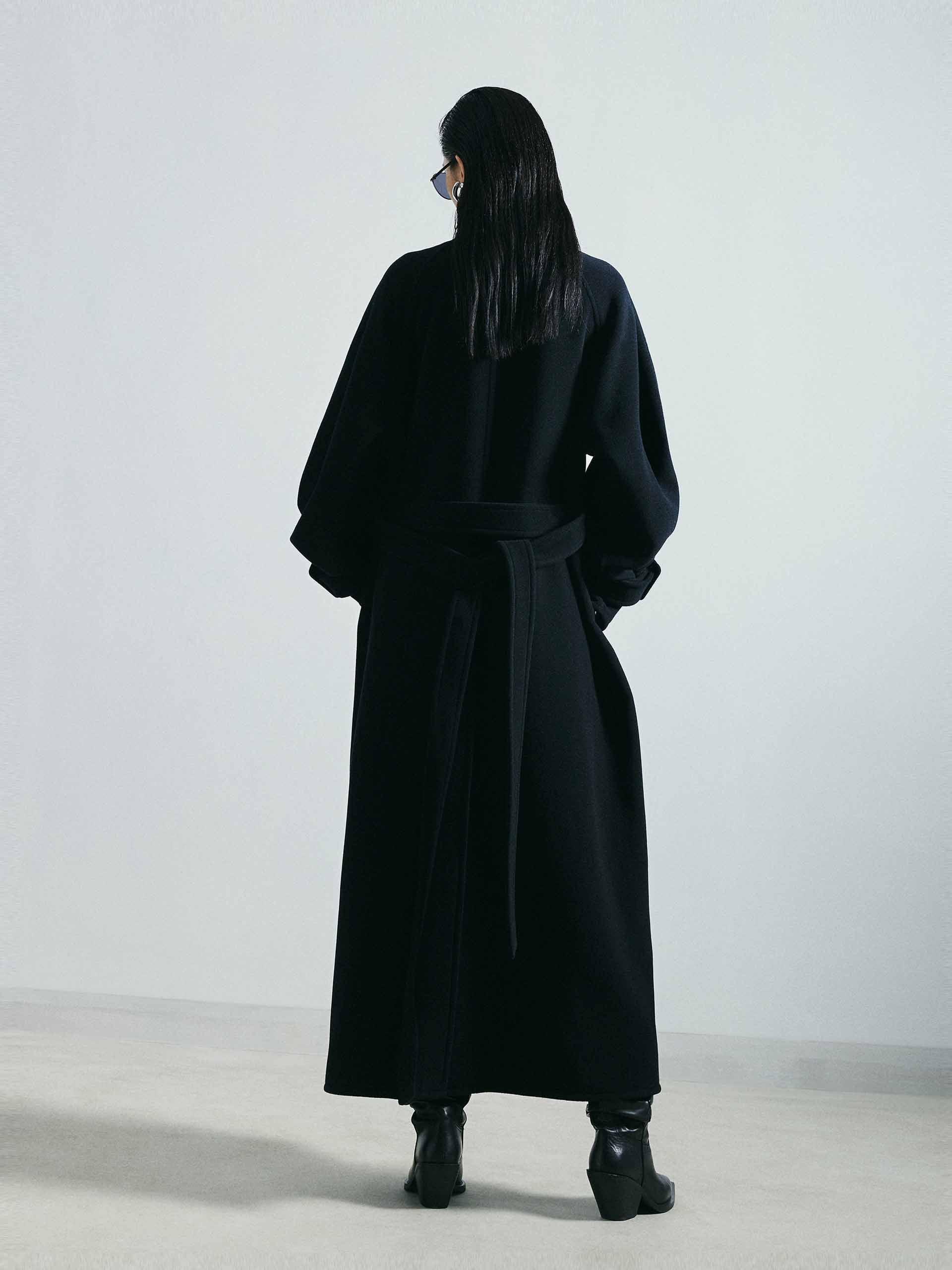 As product experts, our coats are the perfect match for cold weather. Made from wool and yak, it's tailored for a long line shape that's relaxed by the raglan sleeves and designed with wide lapels, wide cuffs with tabs and a detachable belt. With double-faced construction, enjoy both structure and warmth.