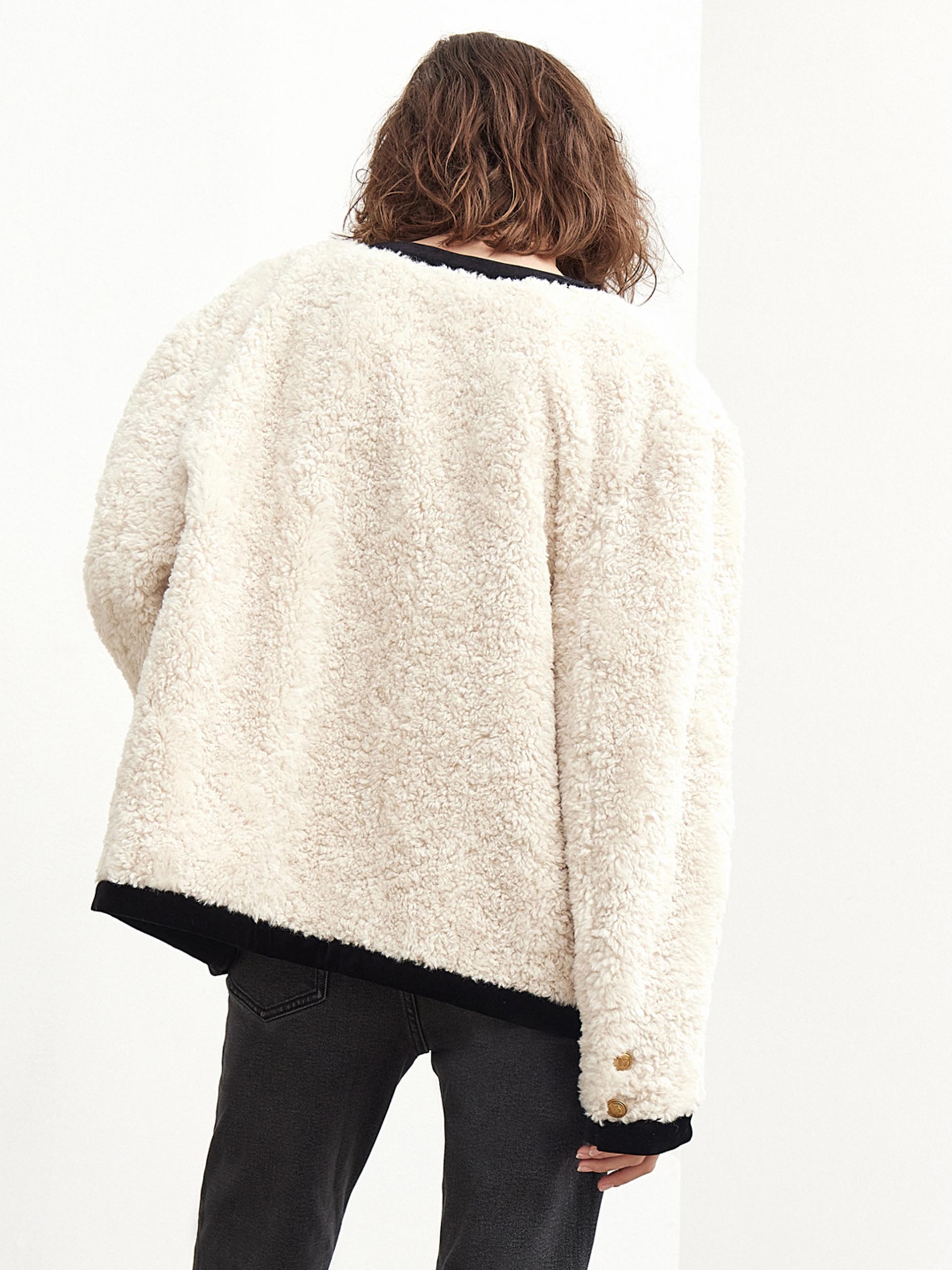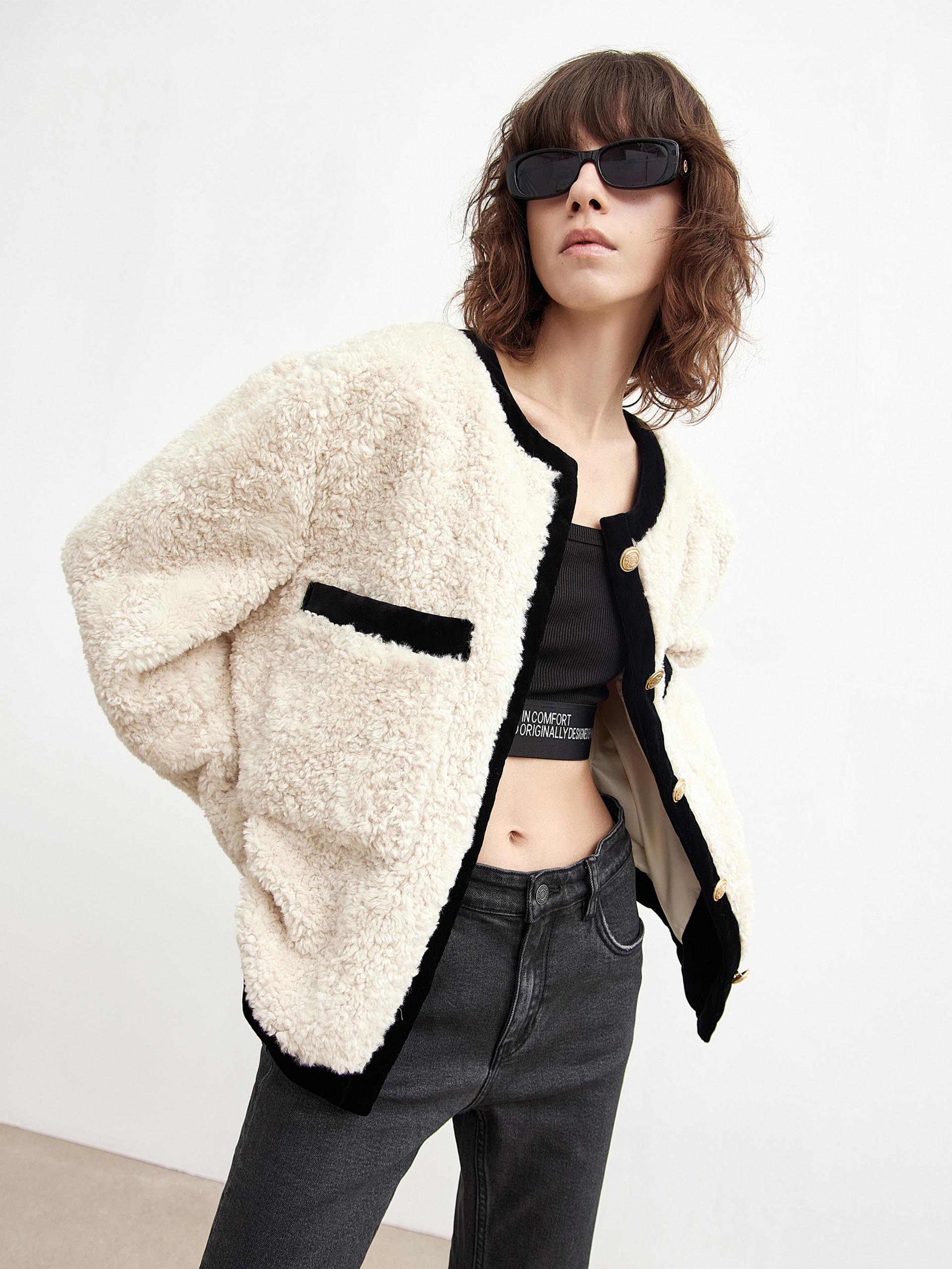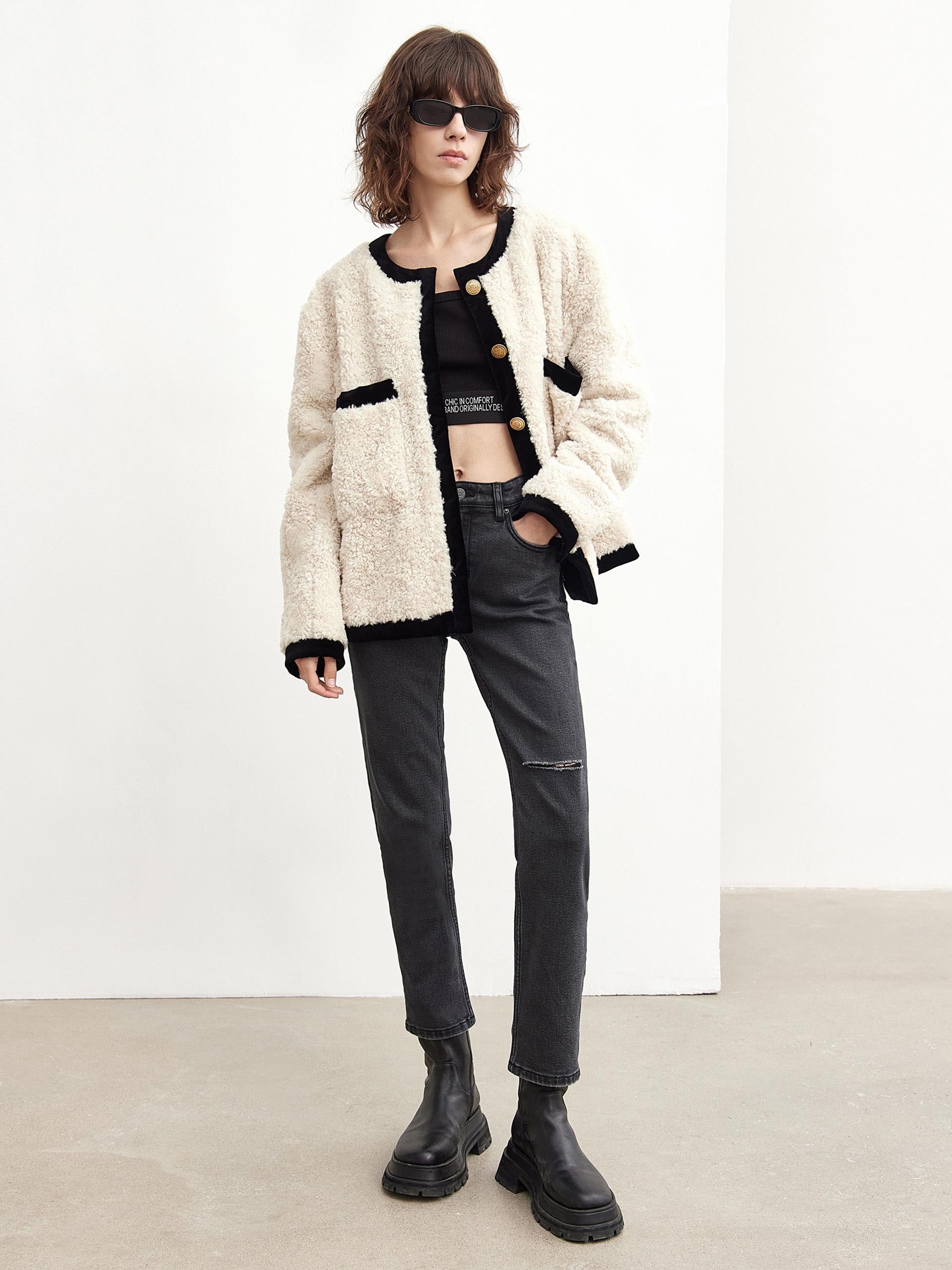MO&Co. Women's Contrast Textured Collarless Jacket