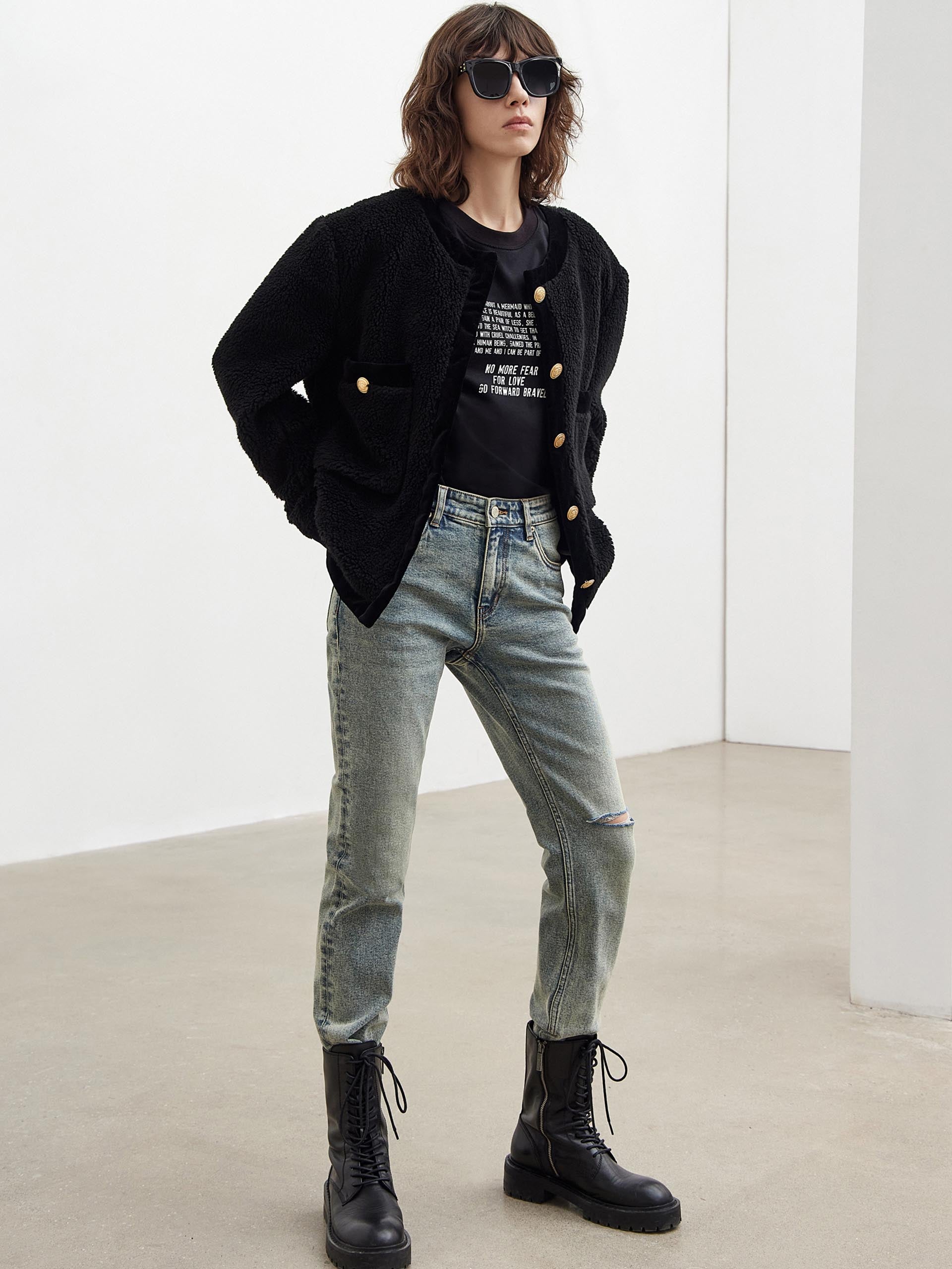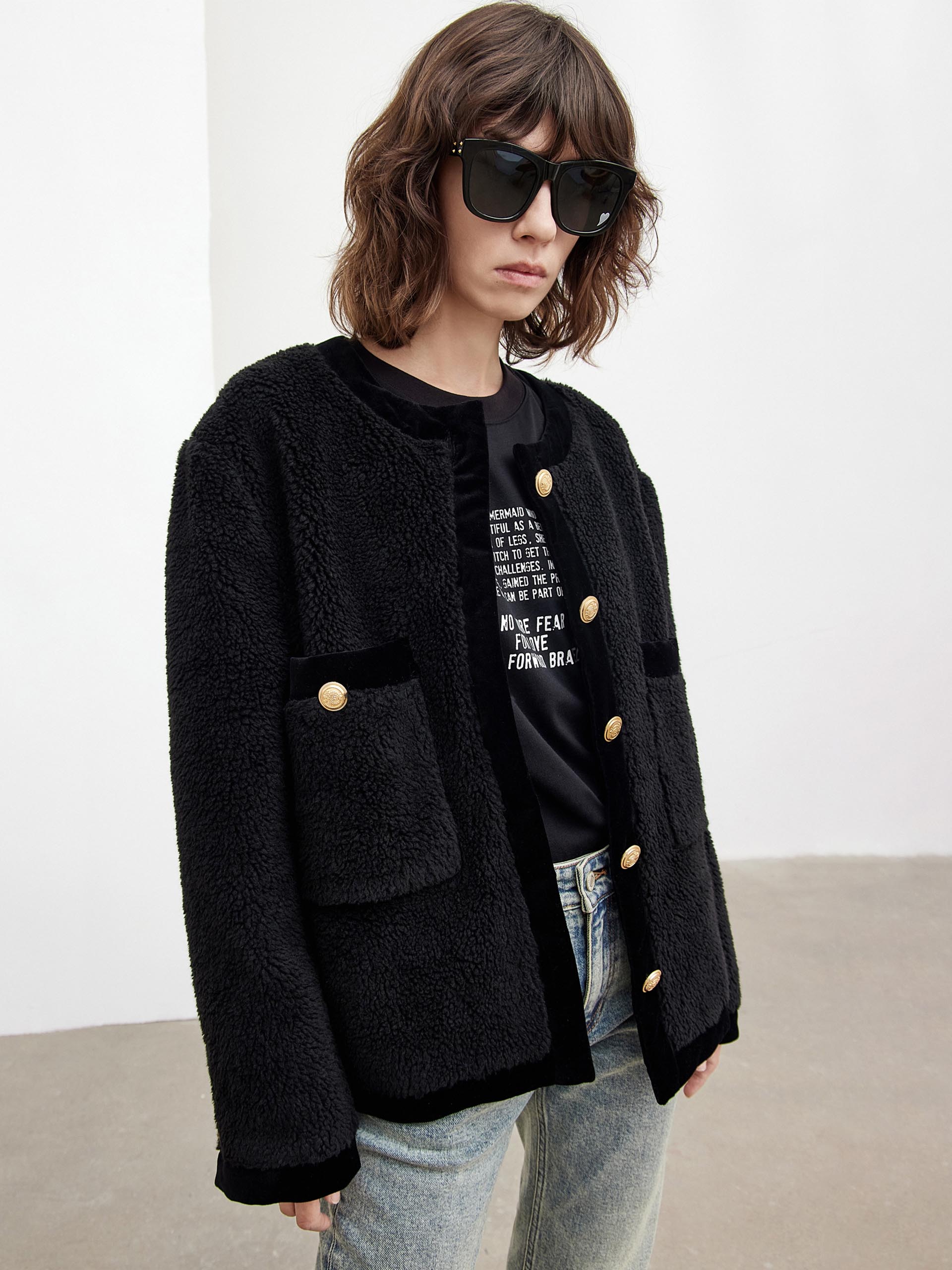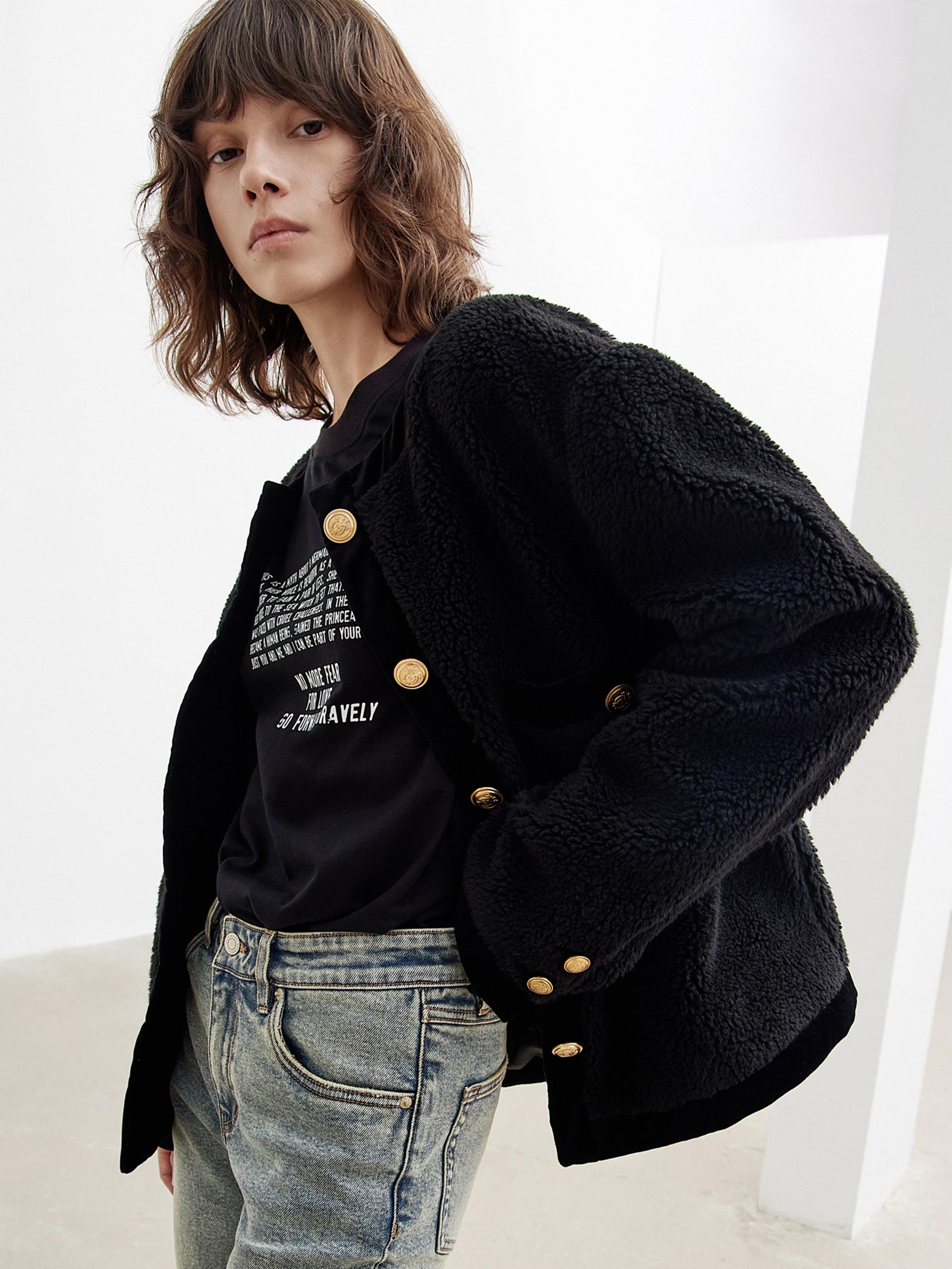 MO&Co. Women's Contrast Textured Collarless Jacket
