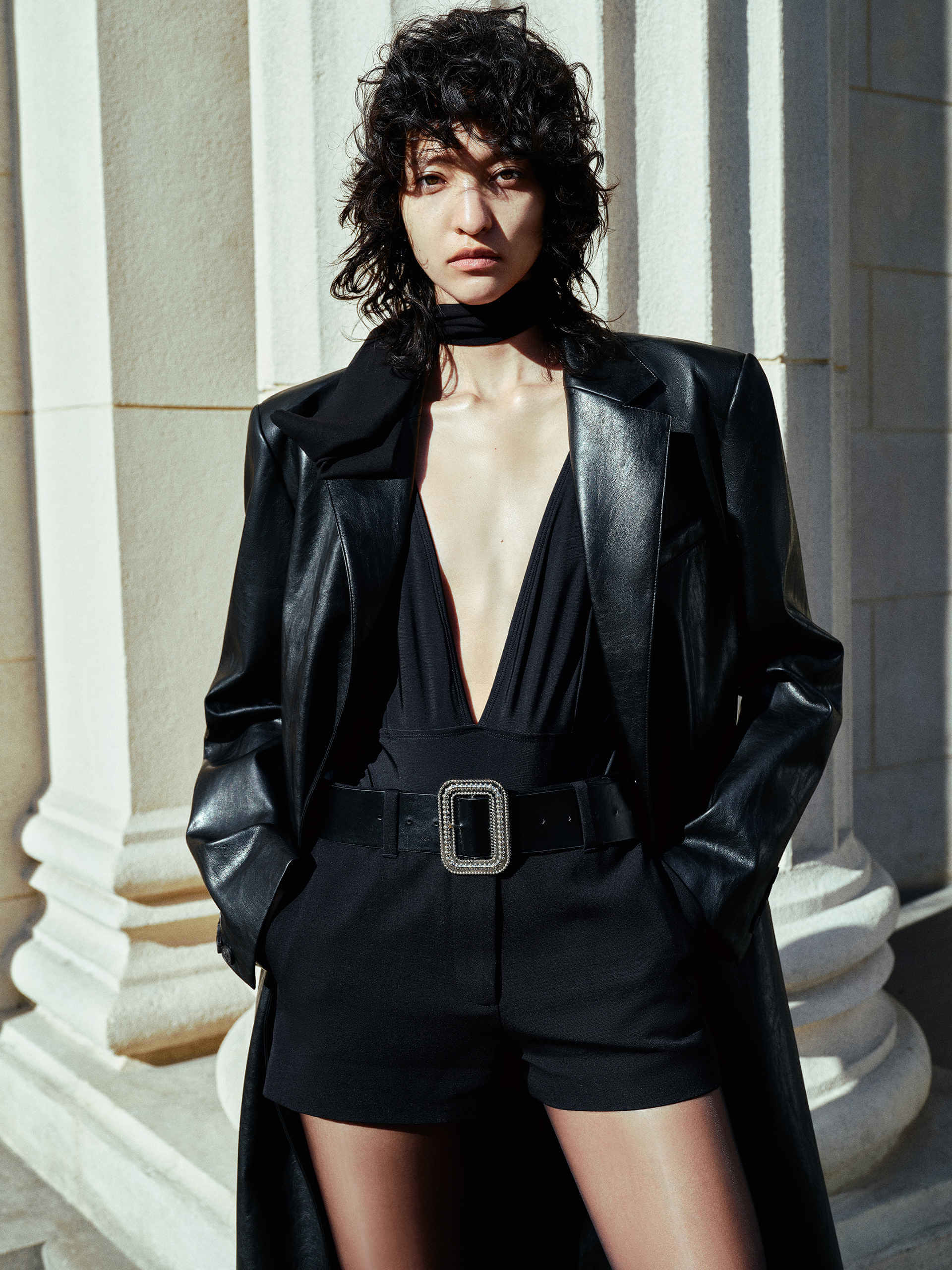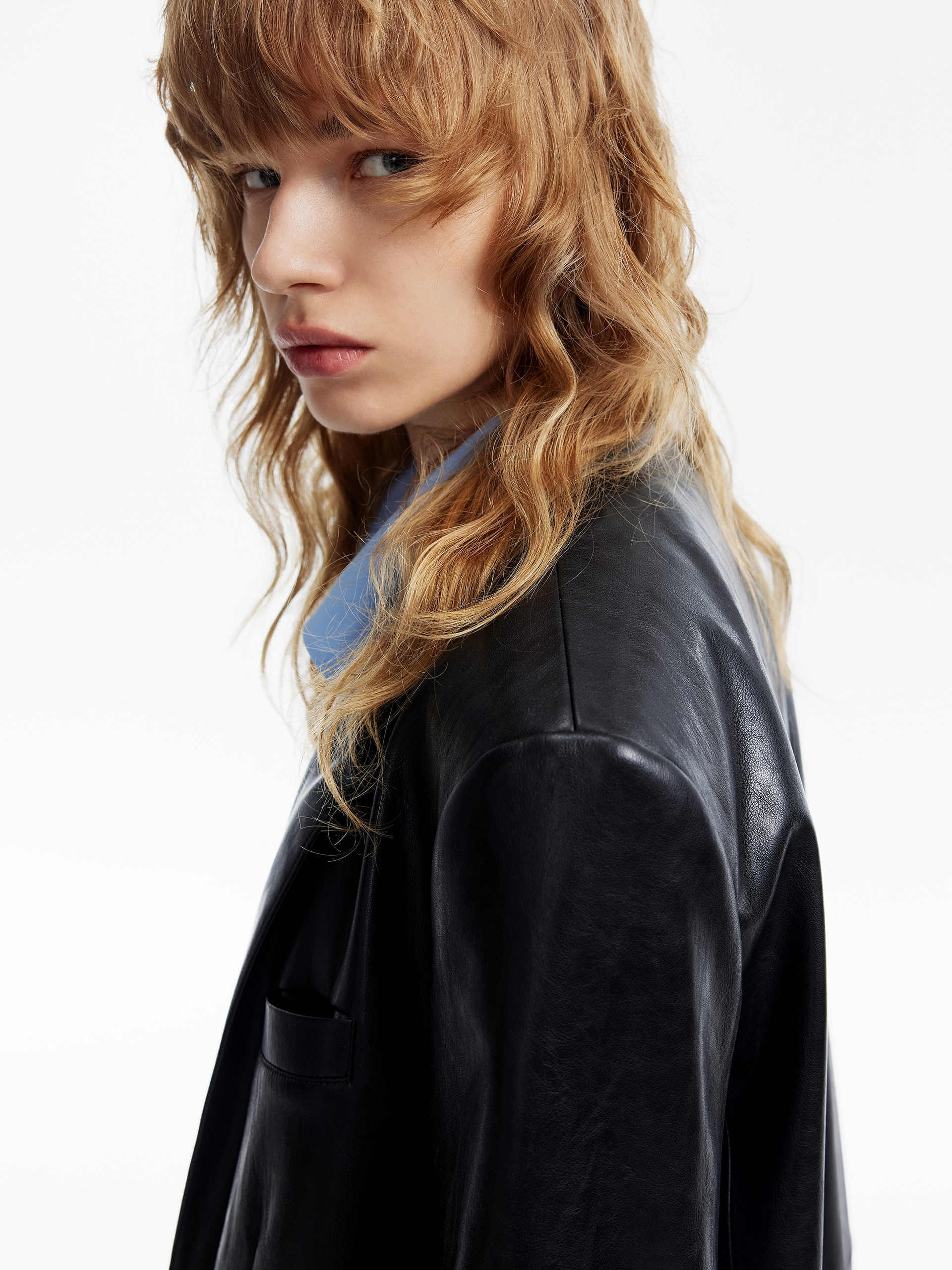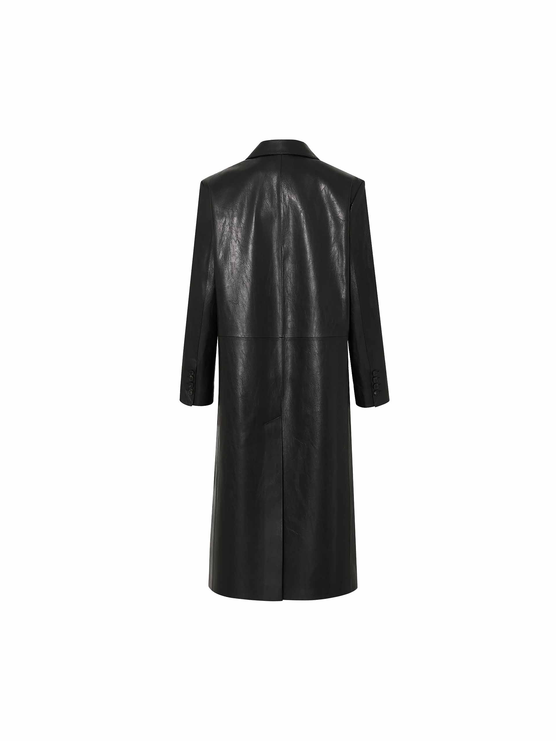 Indulge in luxury with our overcoat. Crafted from comfortable and glossy faux leather, this coat features a straight and structured silhouette with padded shoulders and a single-button closure. With its chic and sophisticated design, it's the epitome of style and elegance.