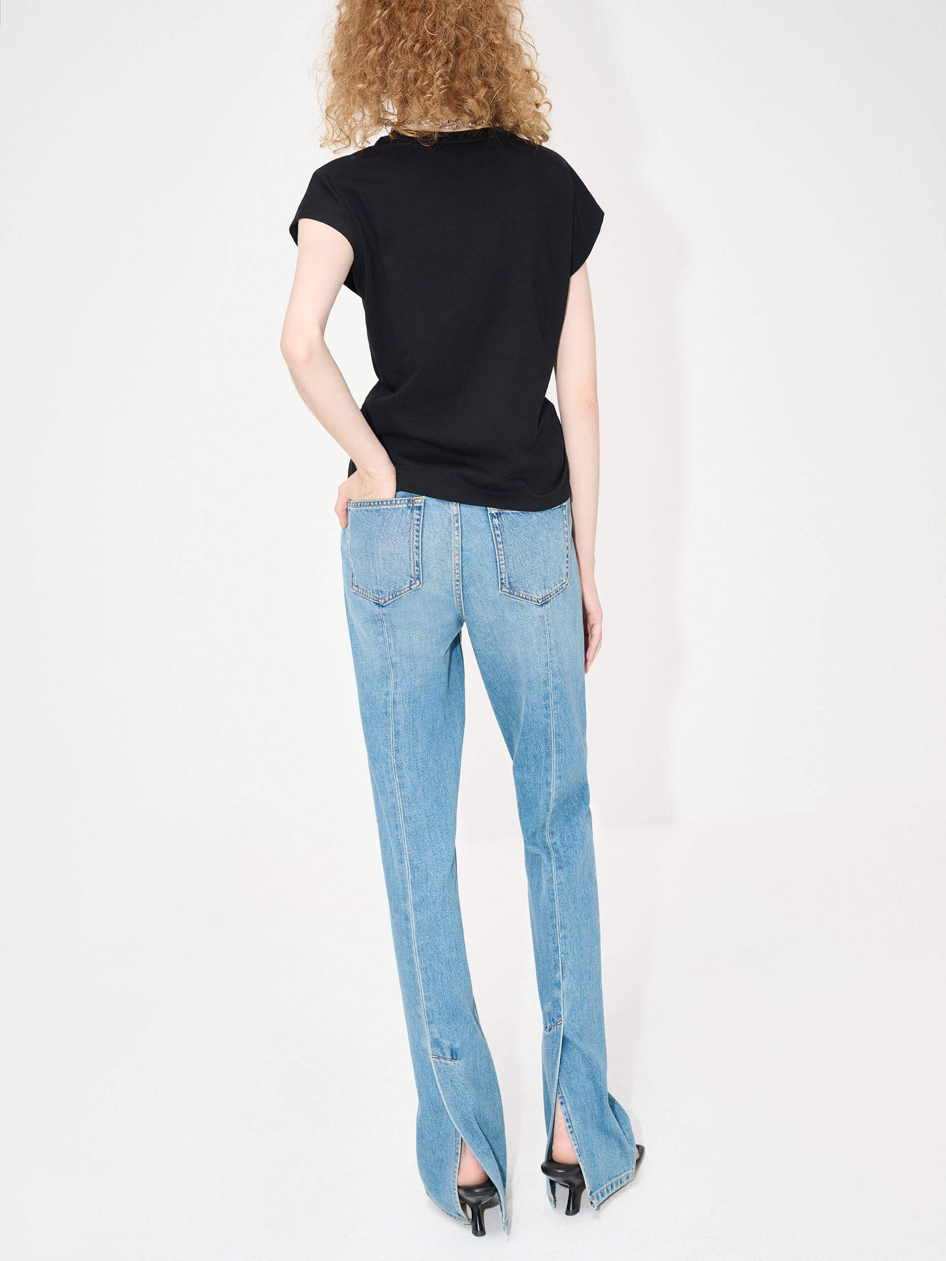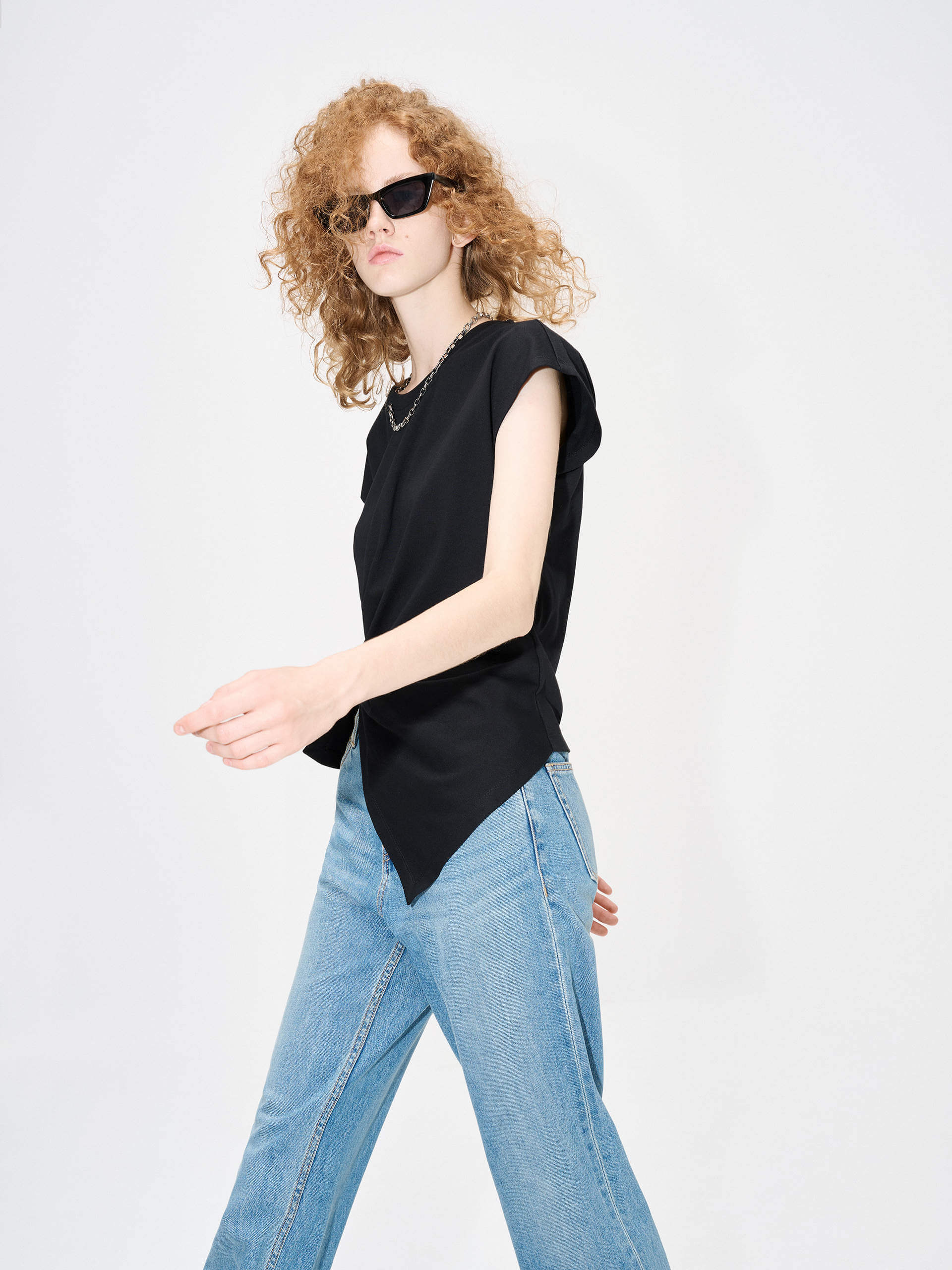 - Round neck with detachable metallic chain details
