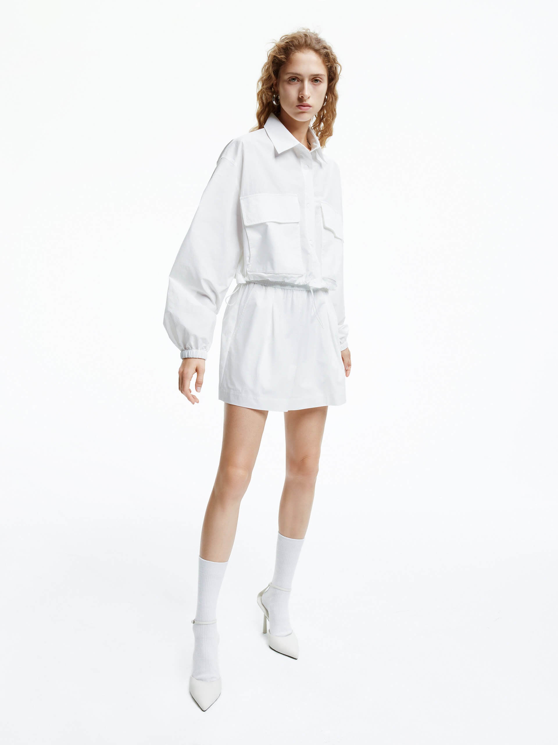 - Loose fit, pleated design