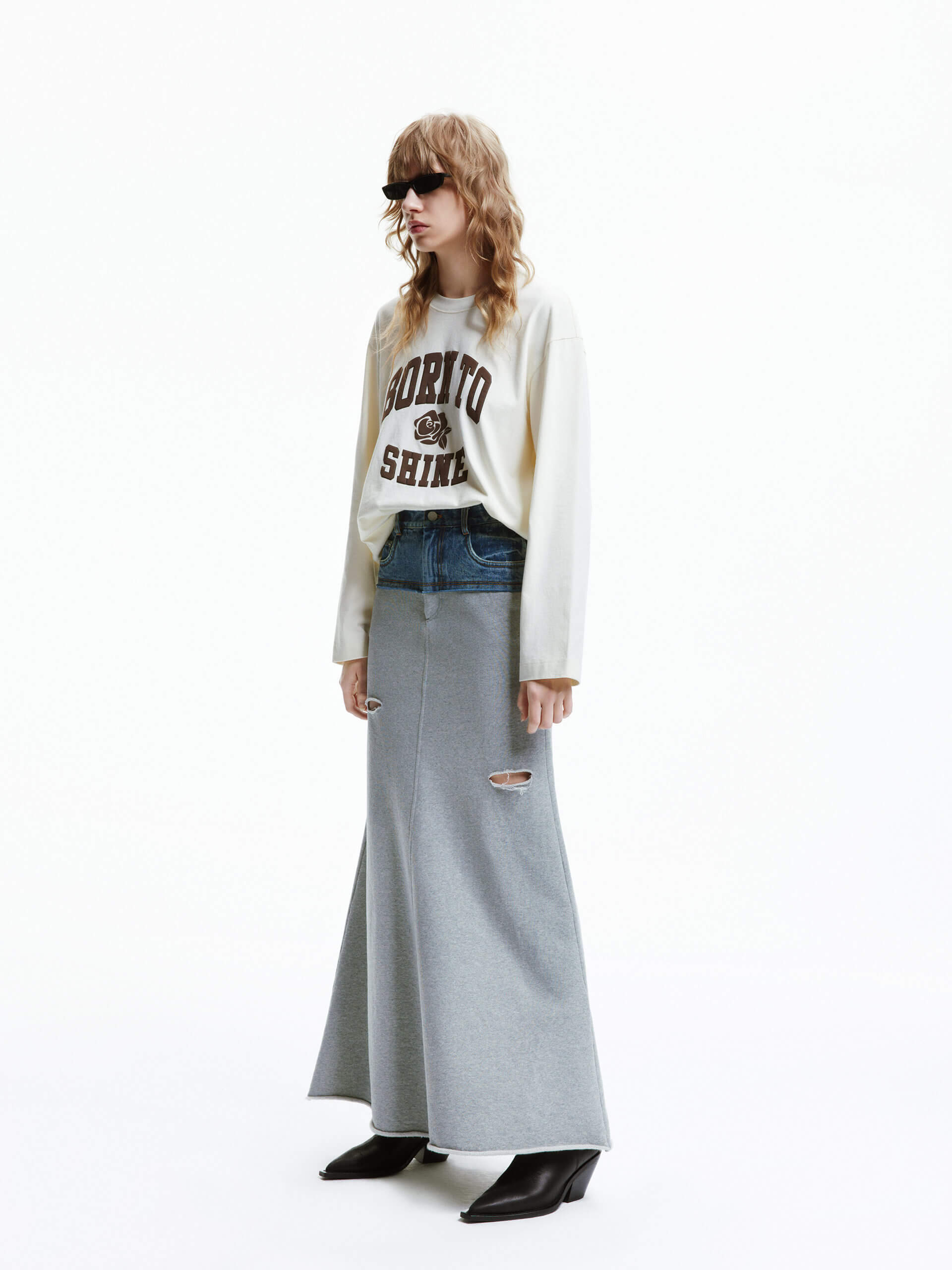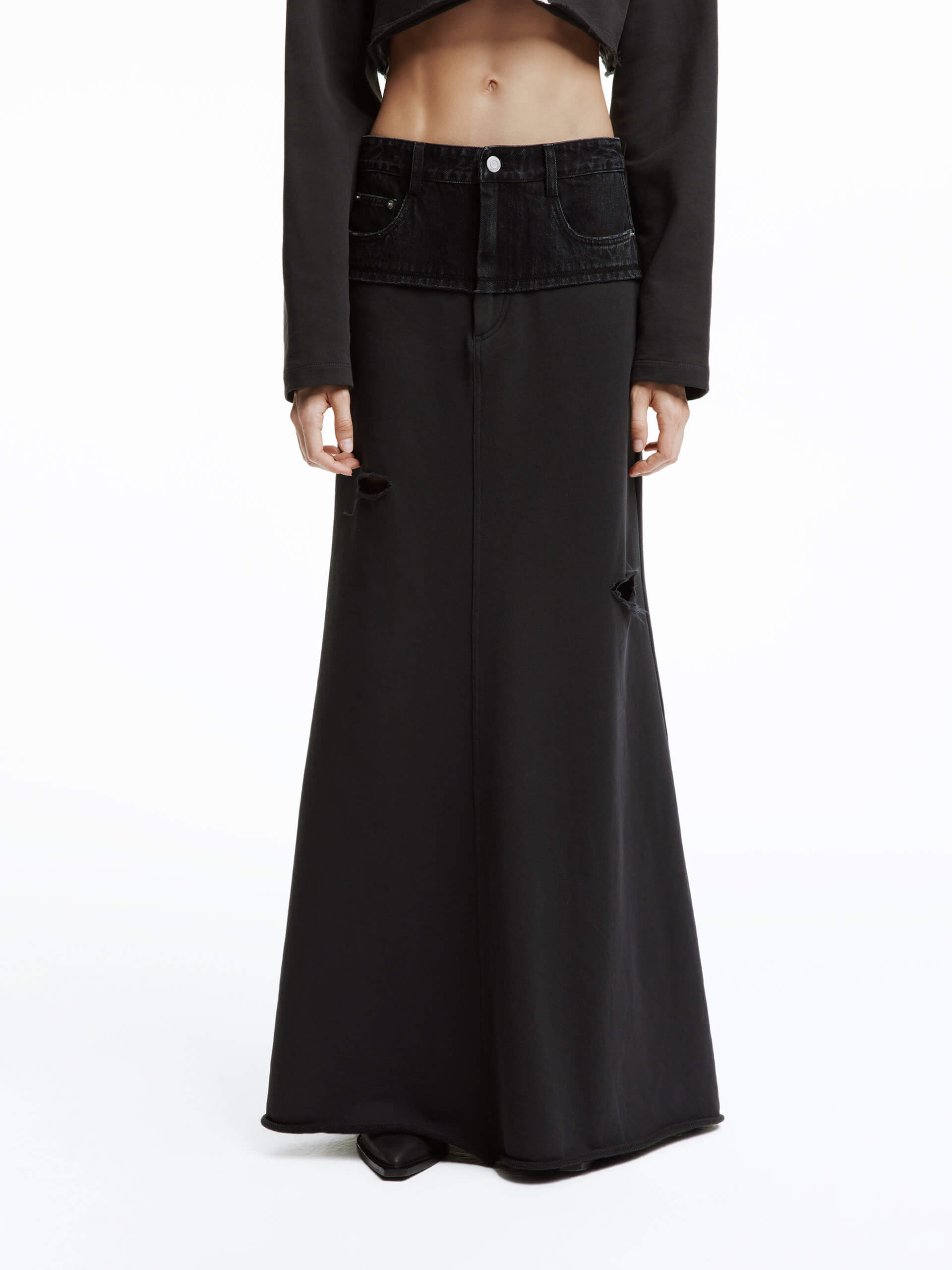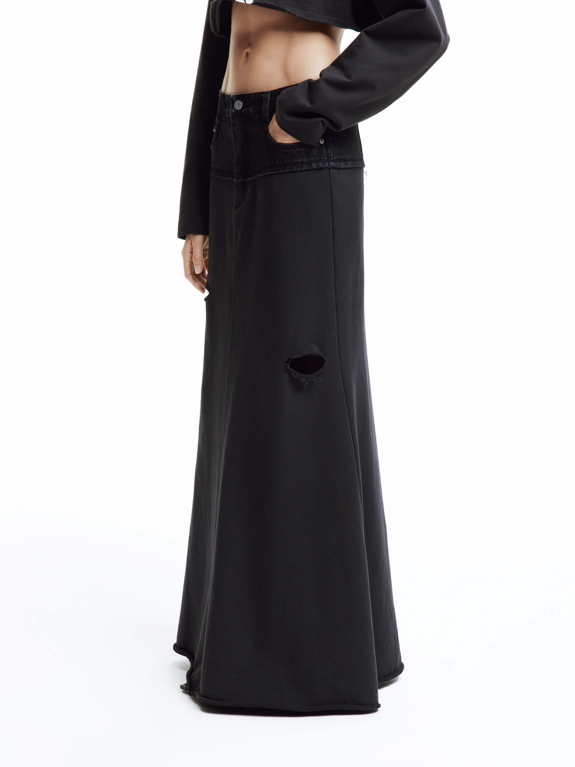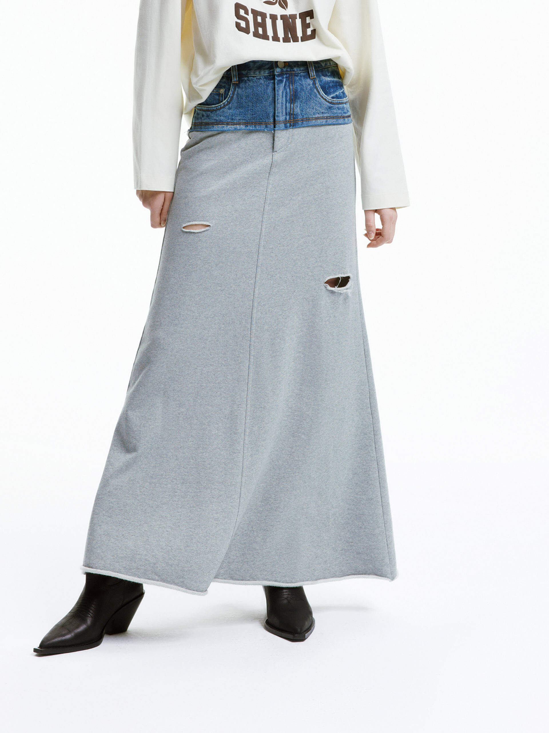 MO&Co. Women's Paneled Ripped Detail Skirt