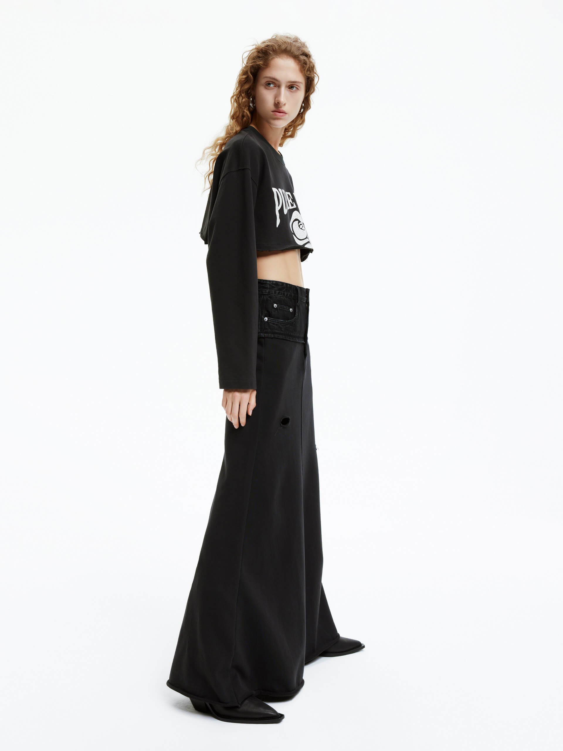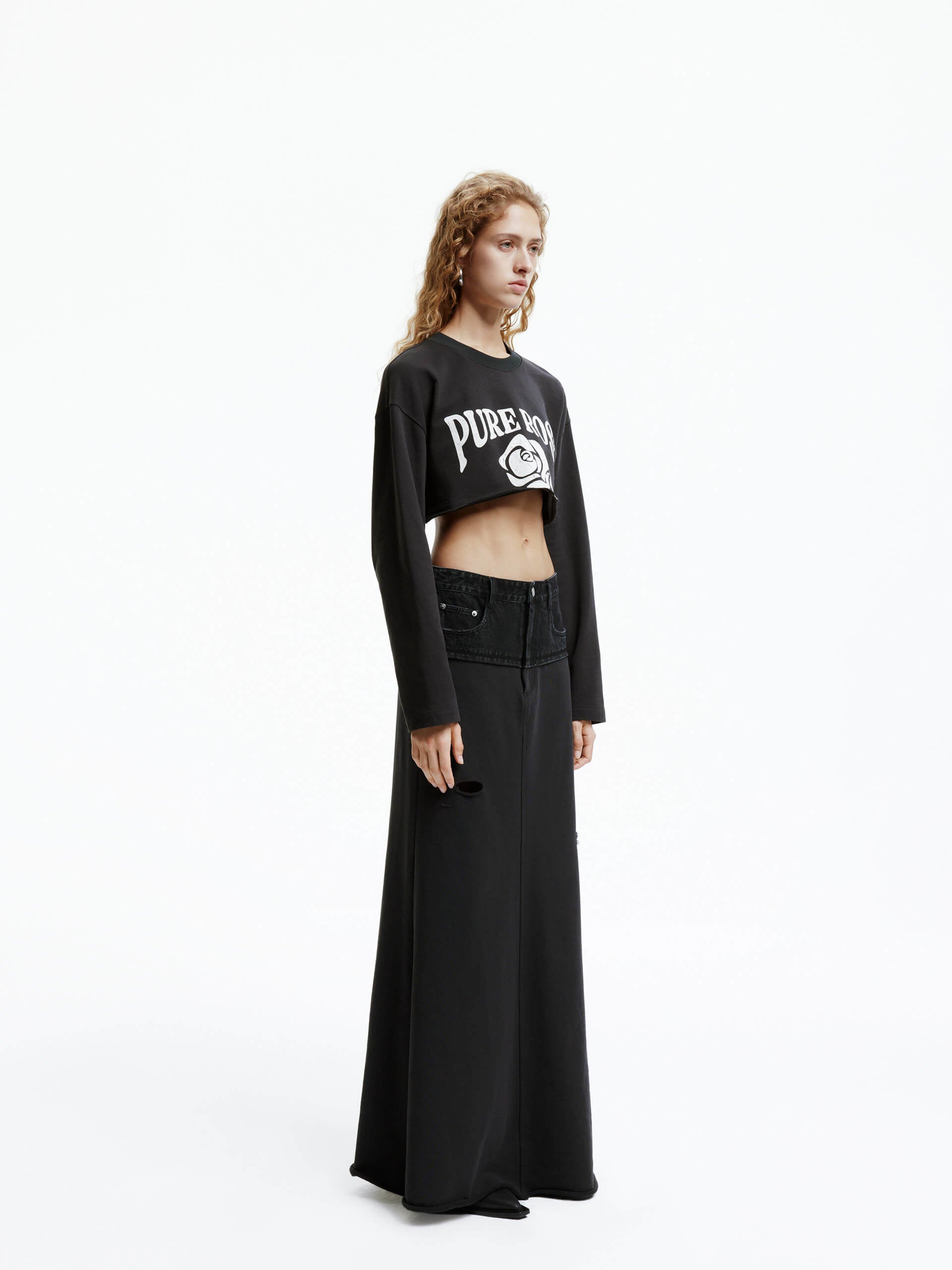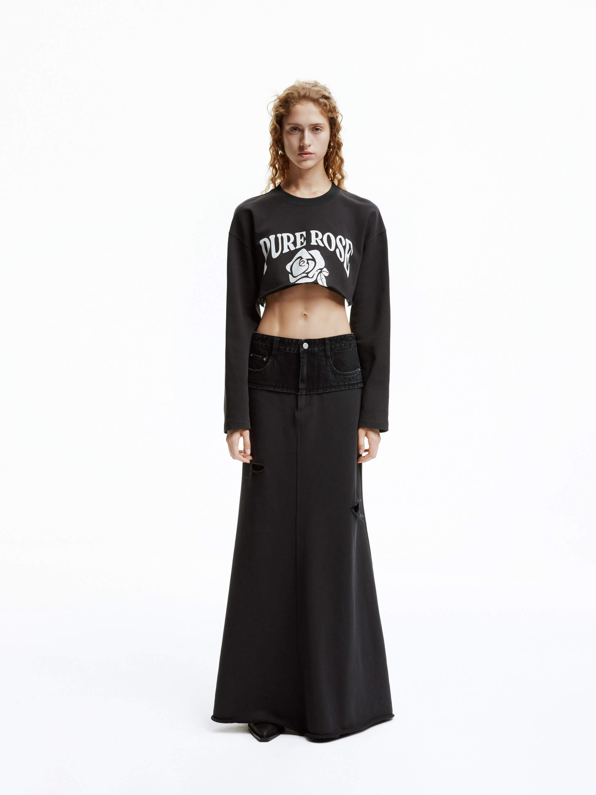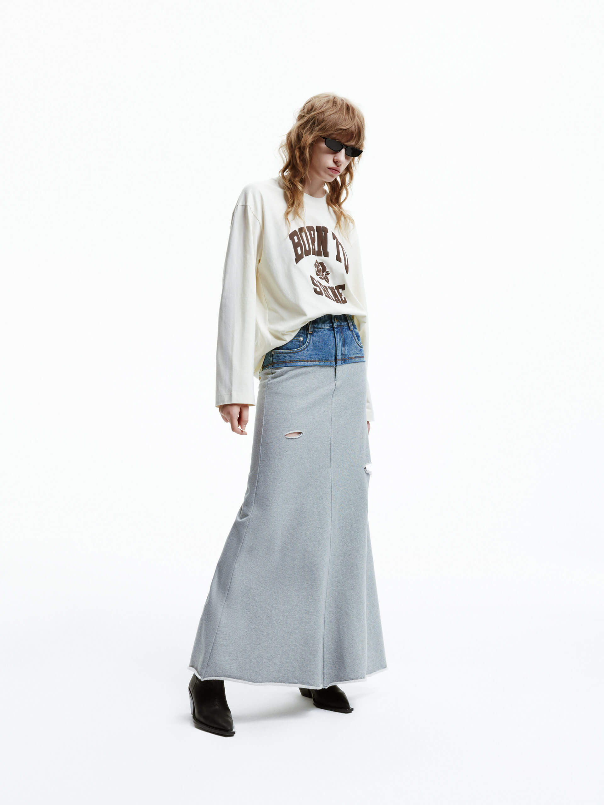 MO&Co. Women's Paneled Ripped Detail Skirt