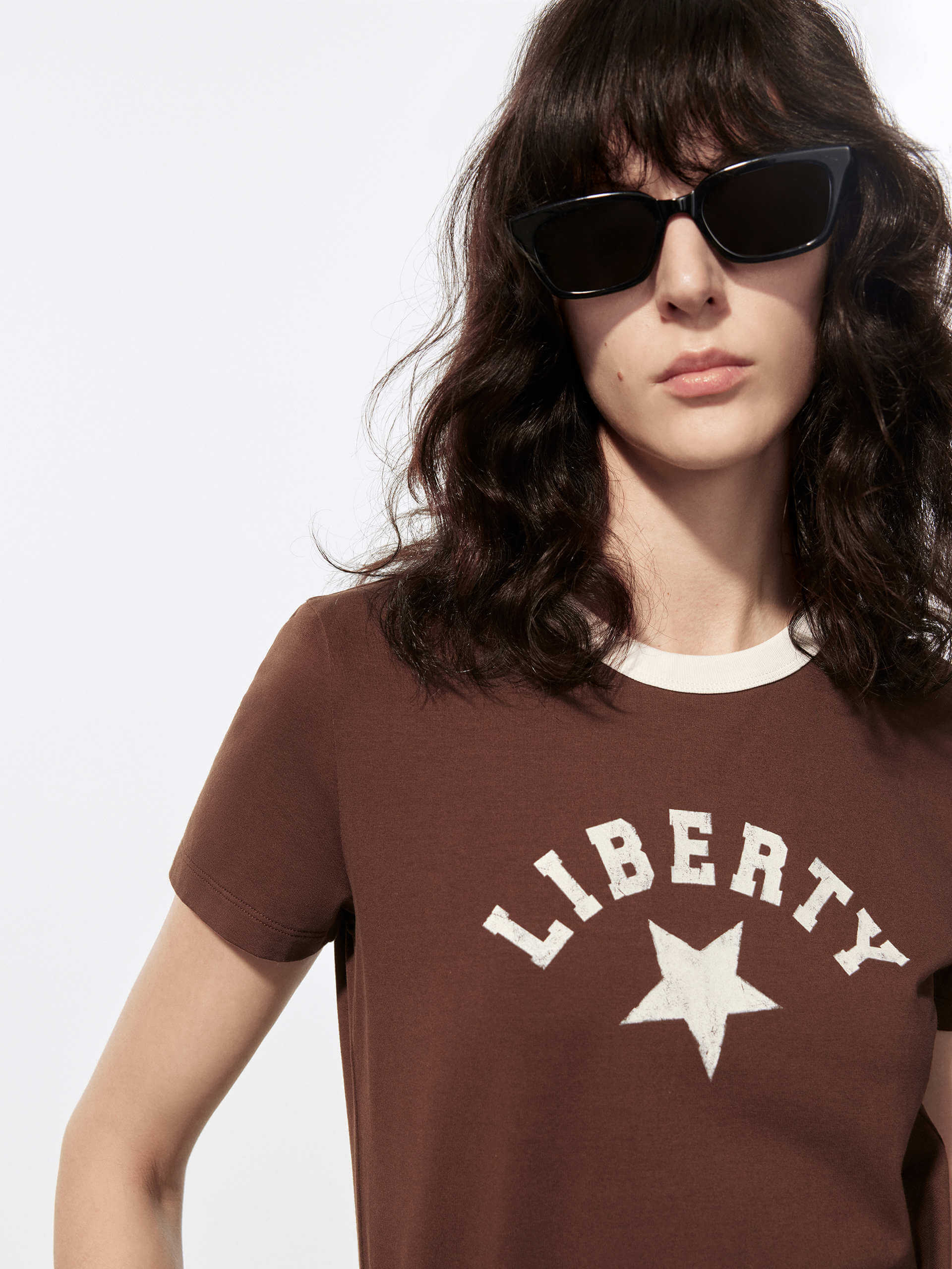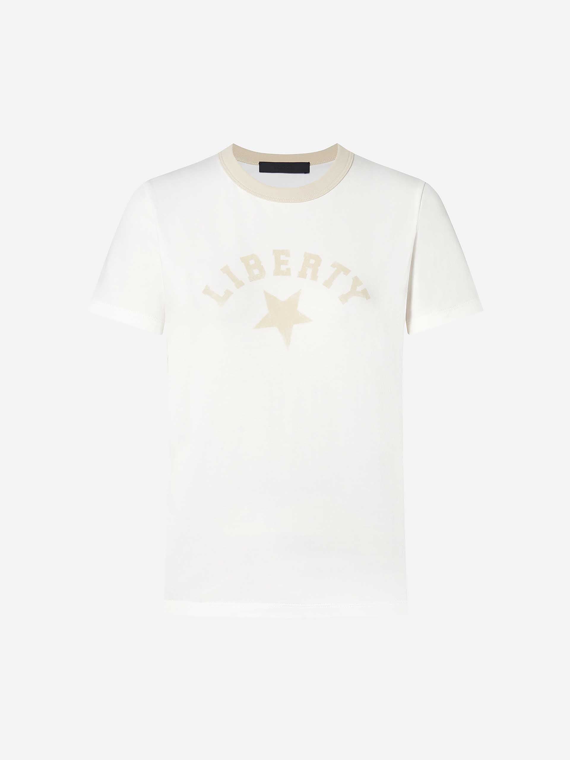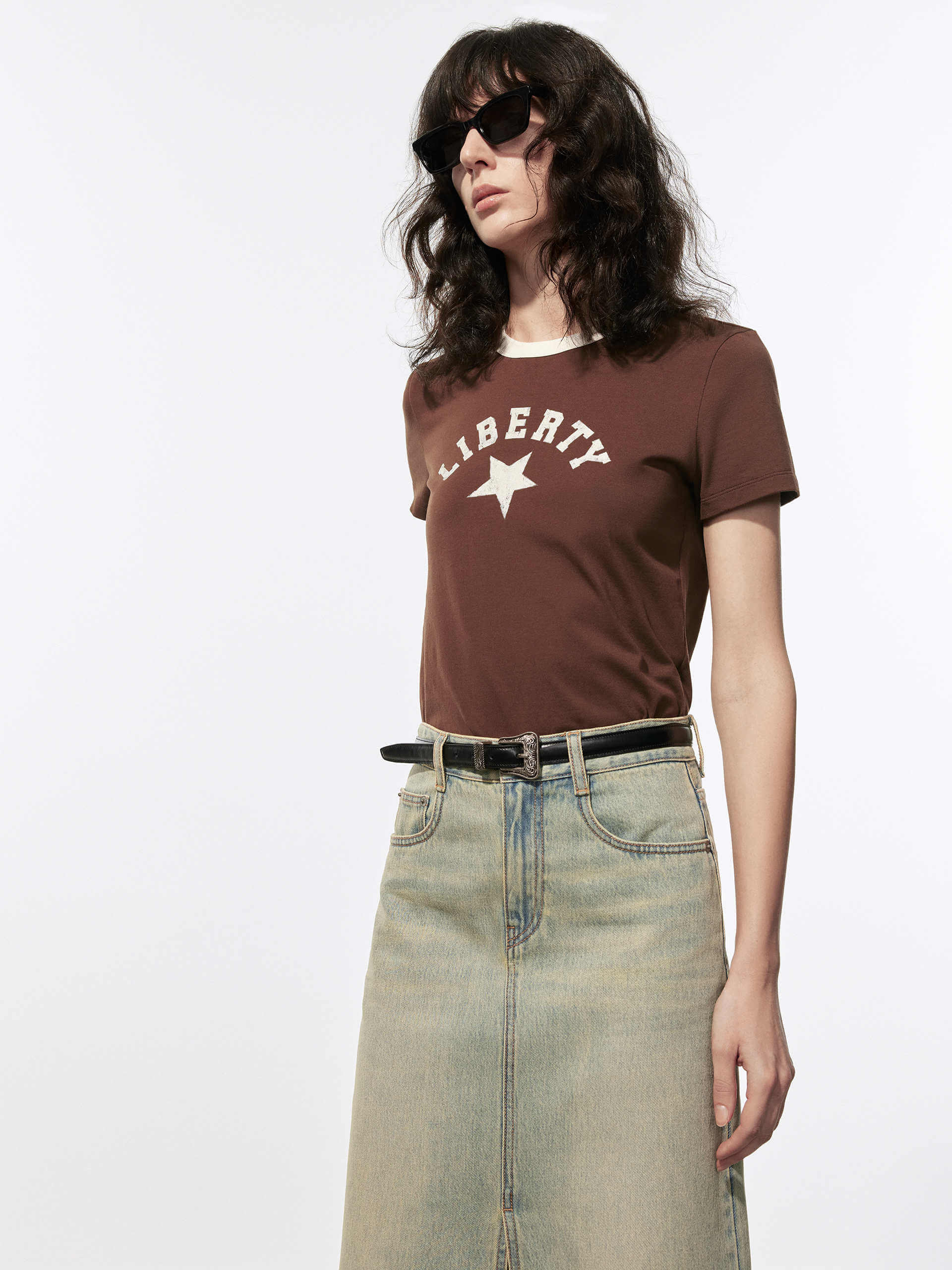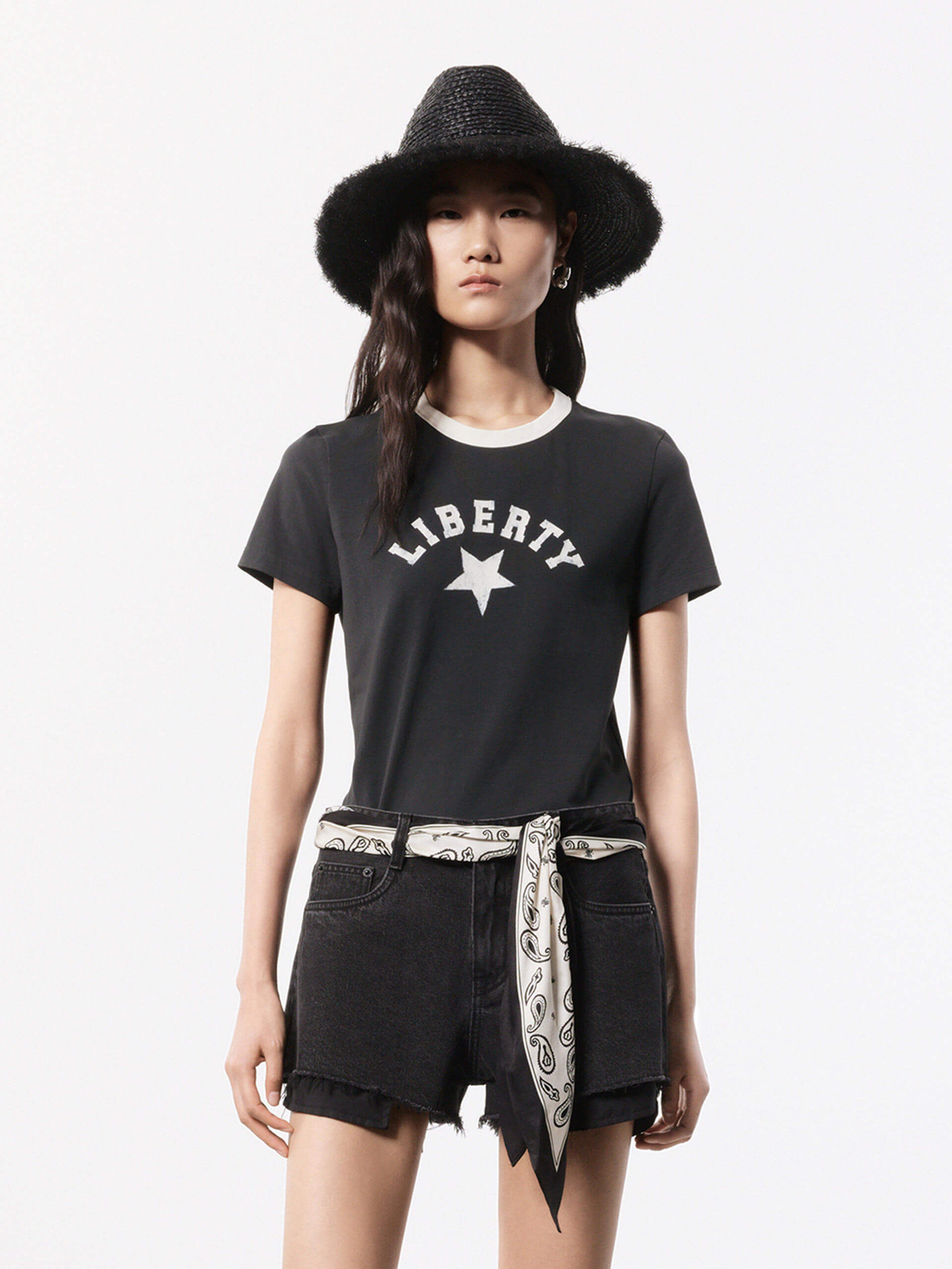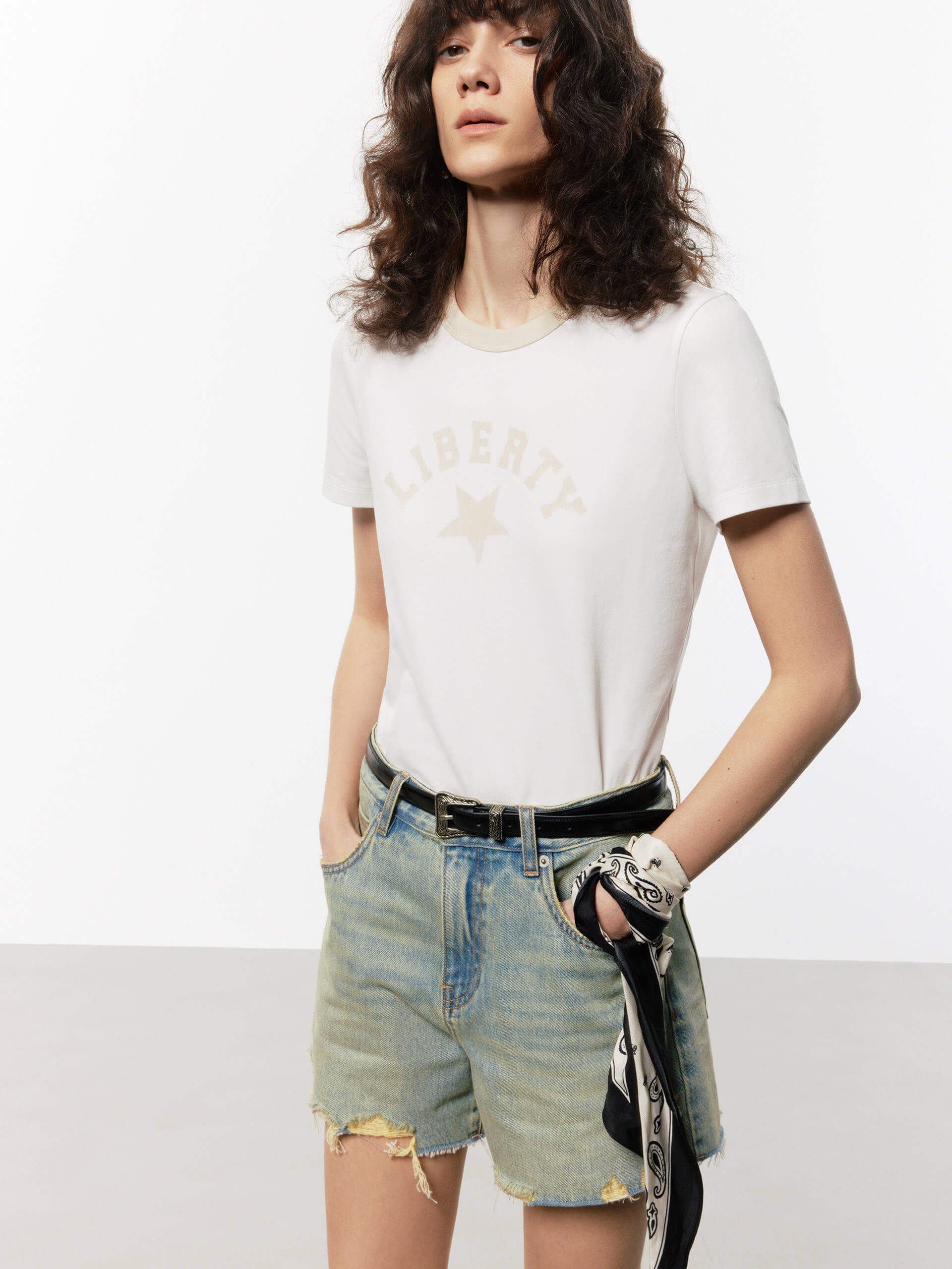 It's hard to overstate the versatility of a classic T-shirt. This cotton blend one is crafted from a premium cotton blend and features a unique print of letters and stars. Wear it with jeans, denim skirts or trousers – just about anything goes.