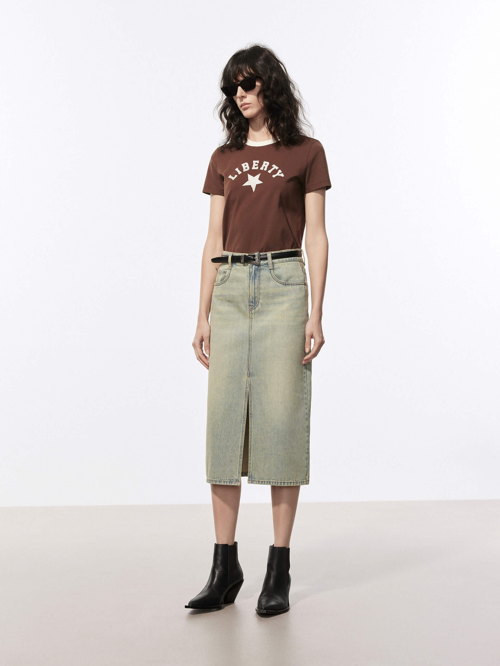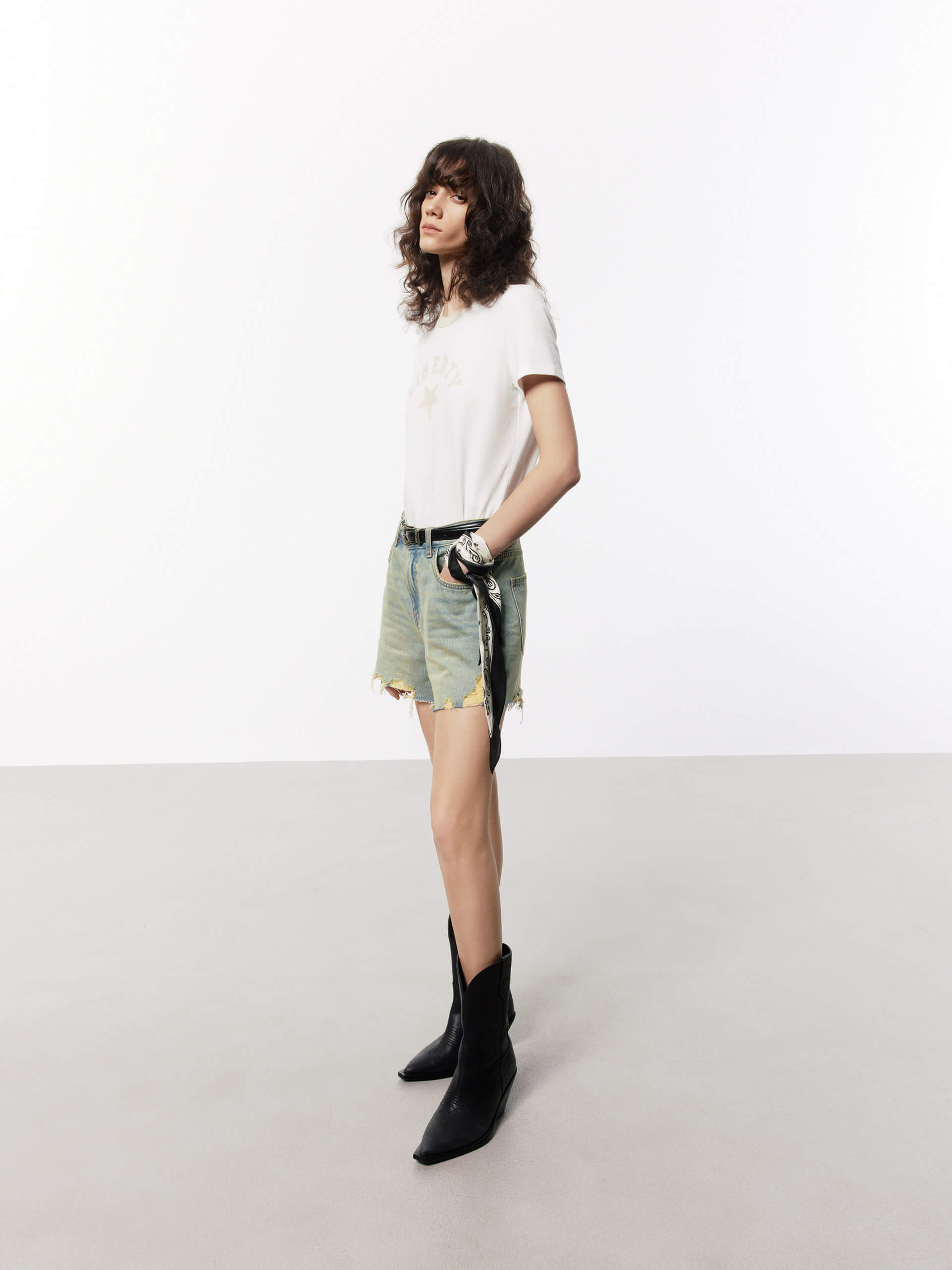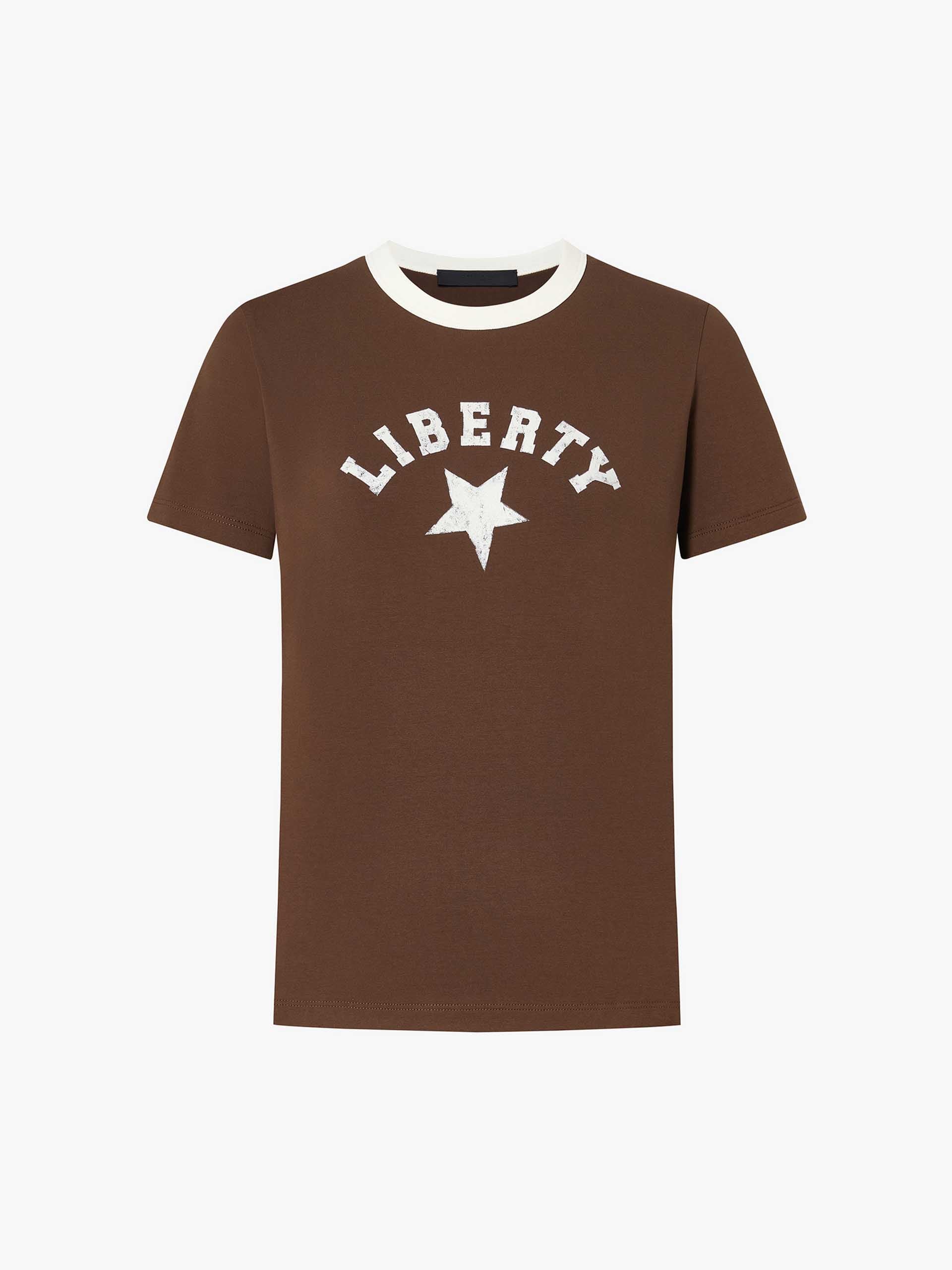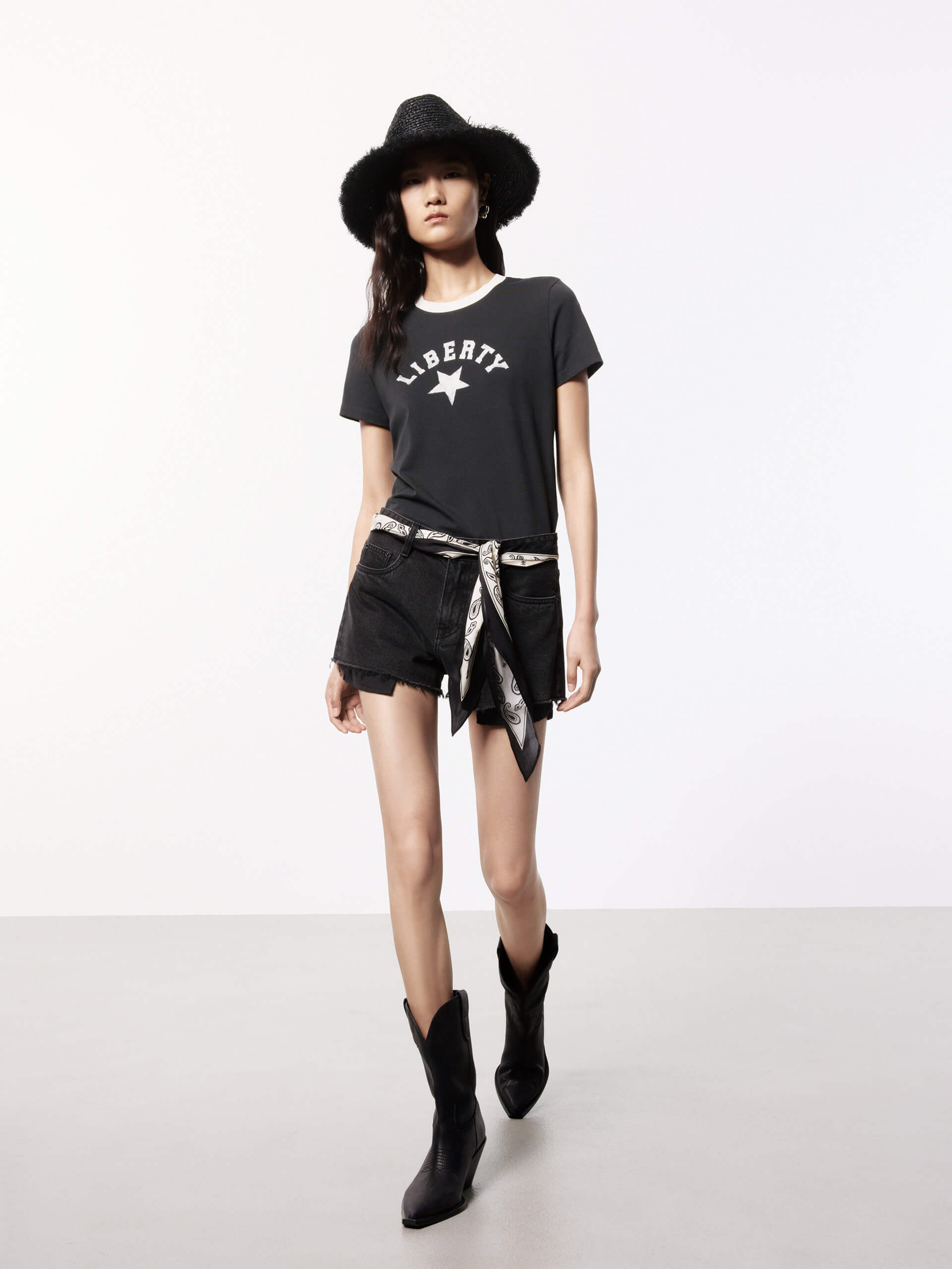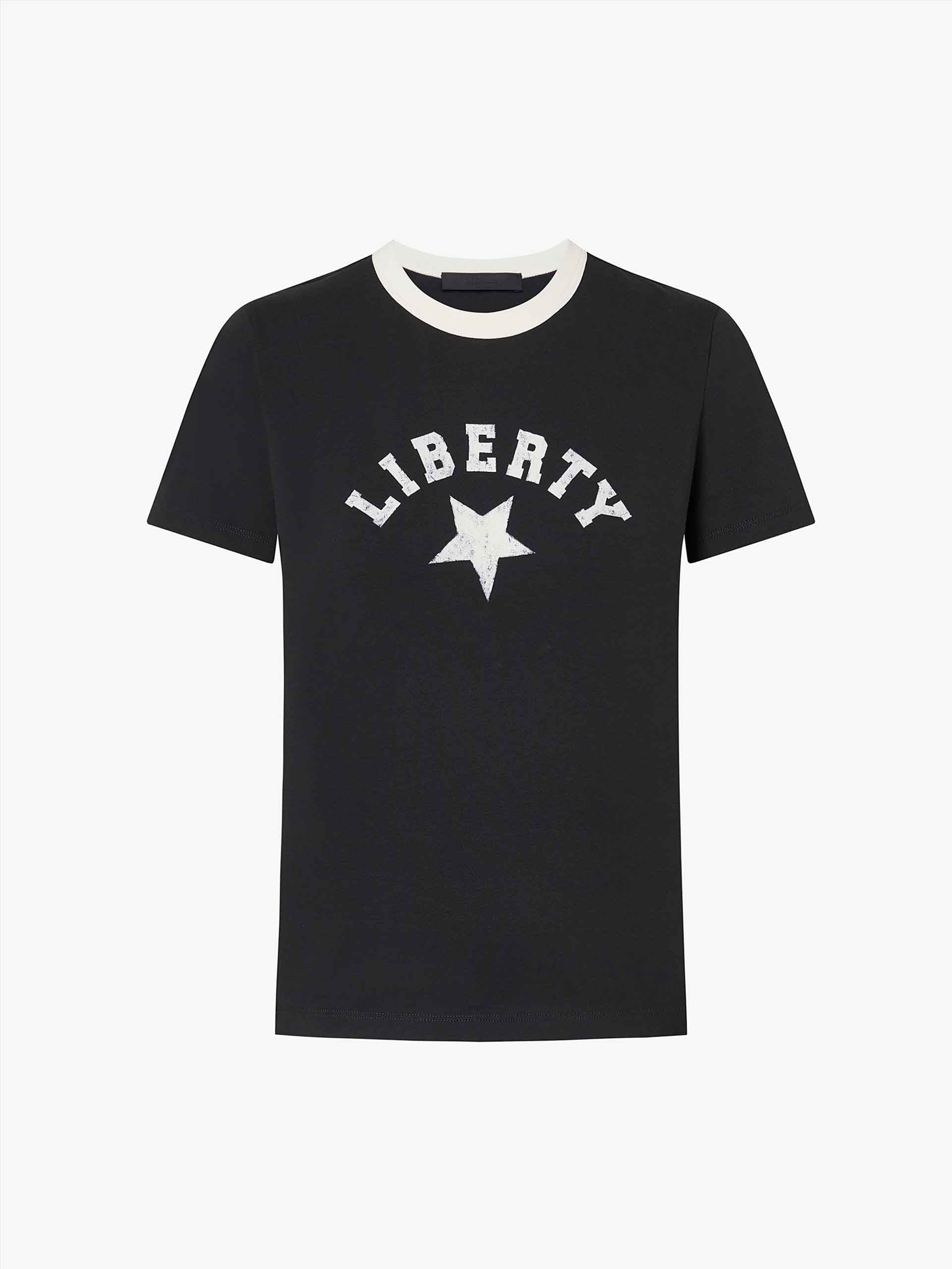 It's hard to overstate the versatility of a classic T-shirt. This cotton blend one is crafted from a premium cotton blend and features a unique print of letters and stars. Wear it with jeans, denim skirts or trousers – just about anything goes.