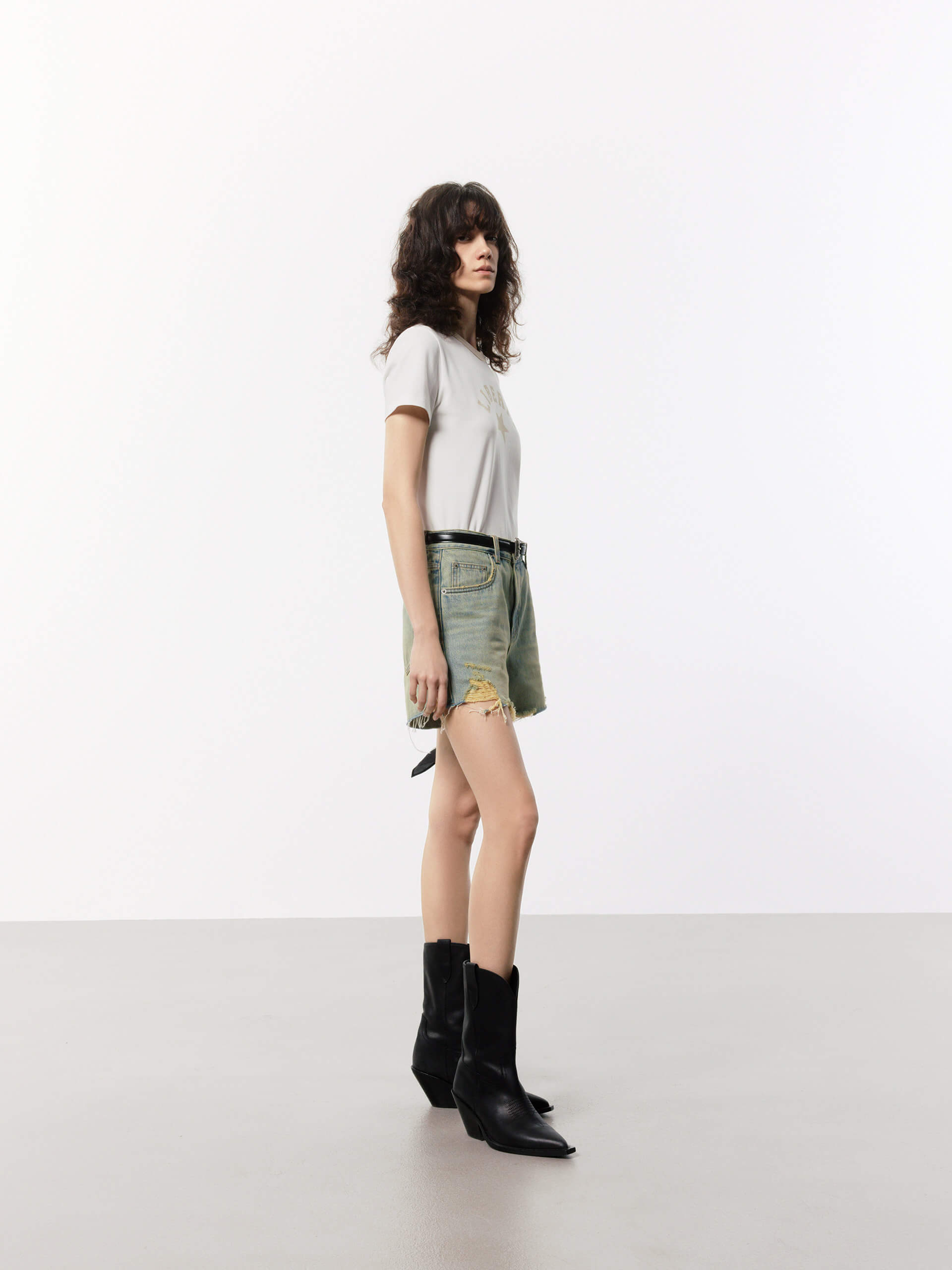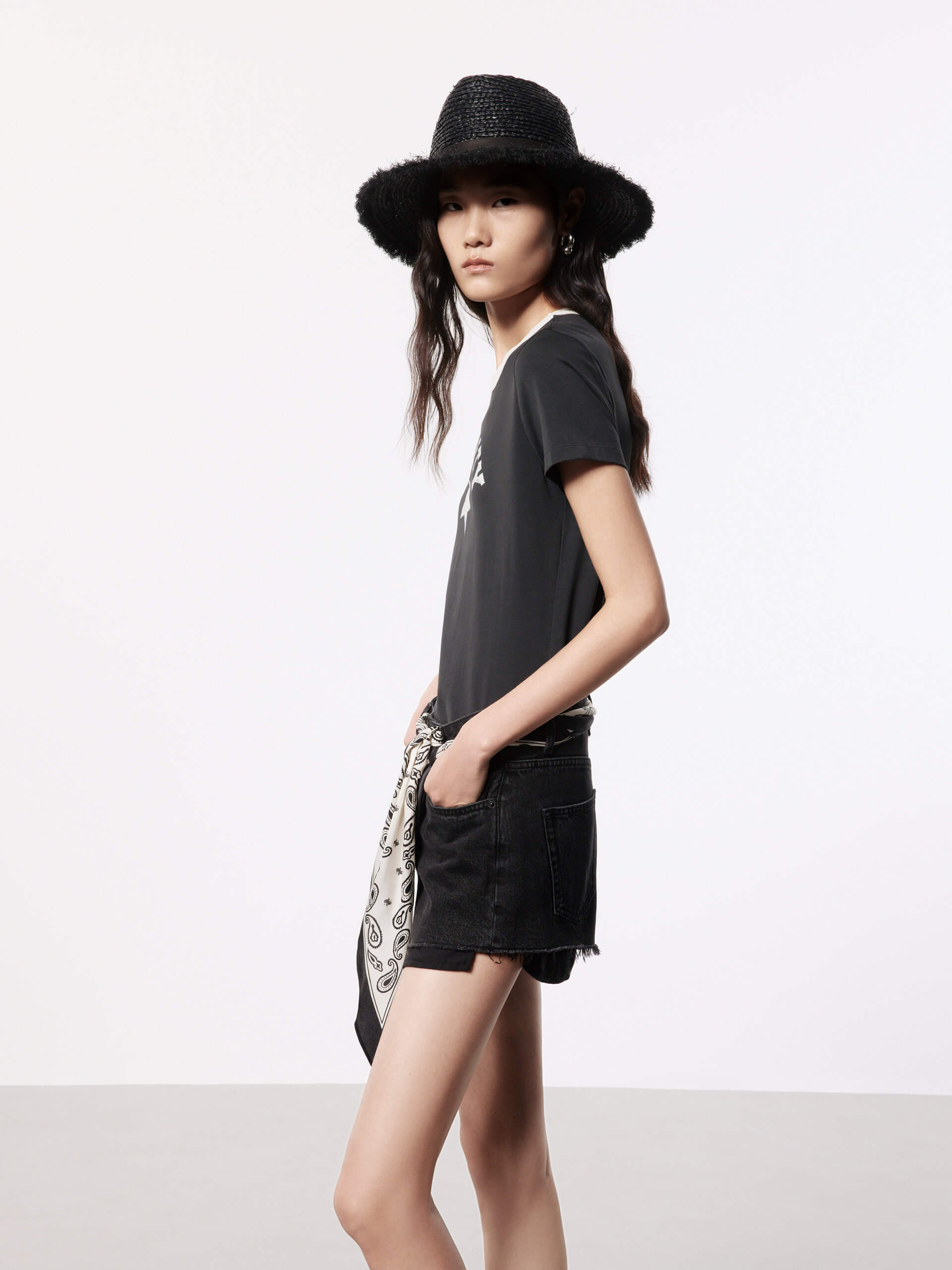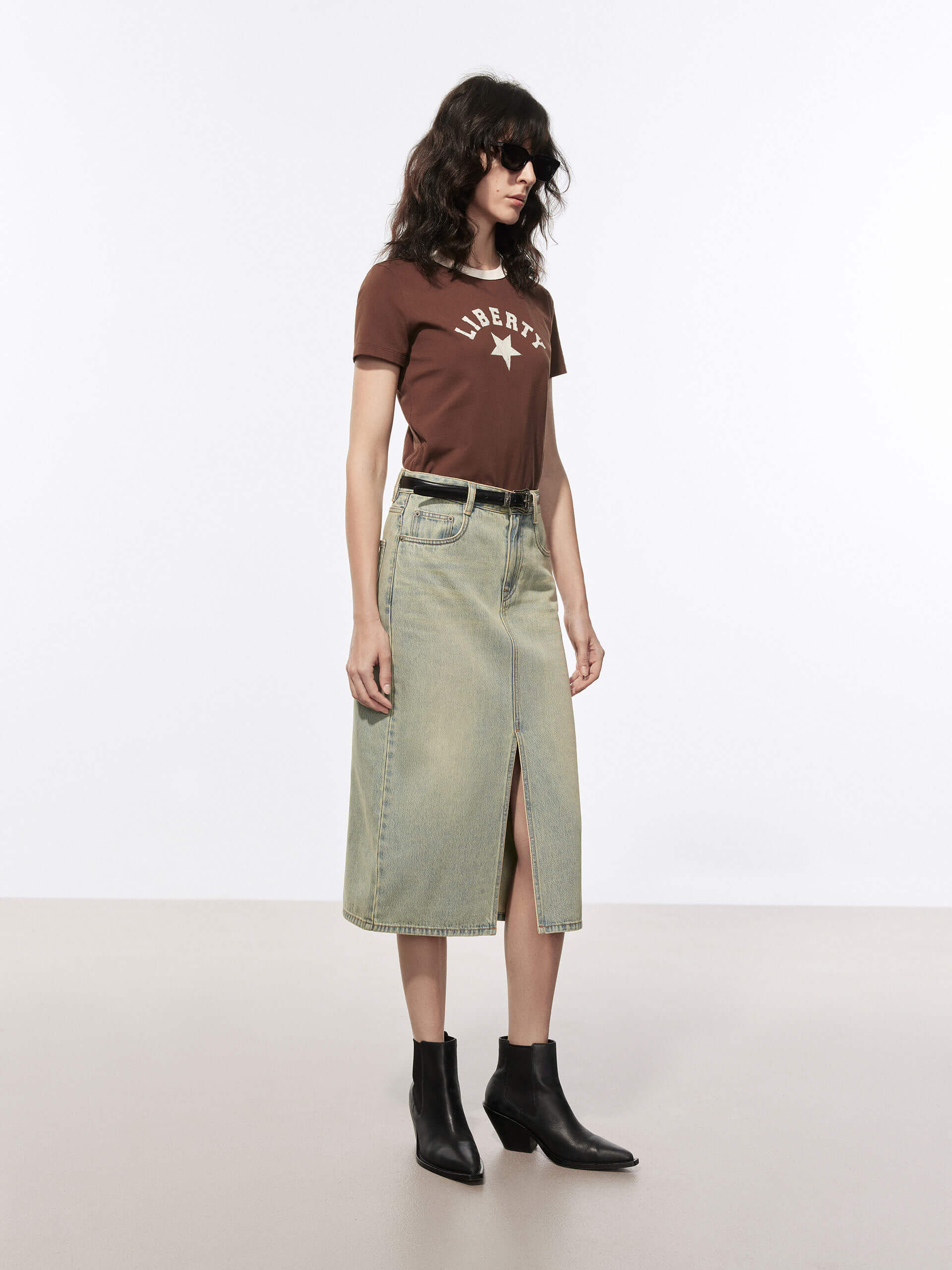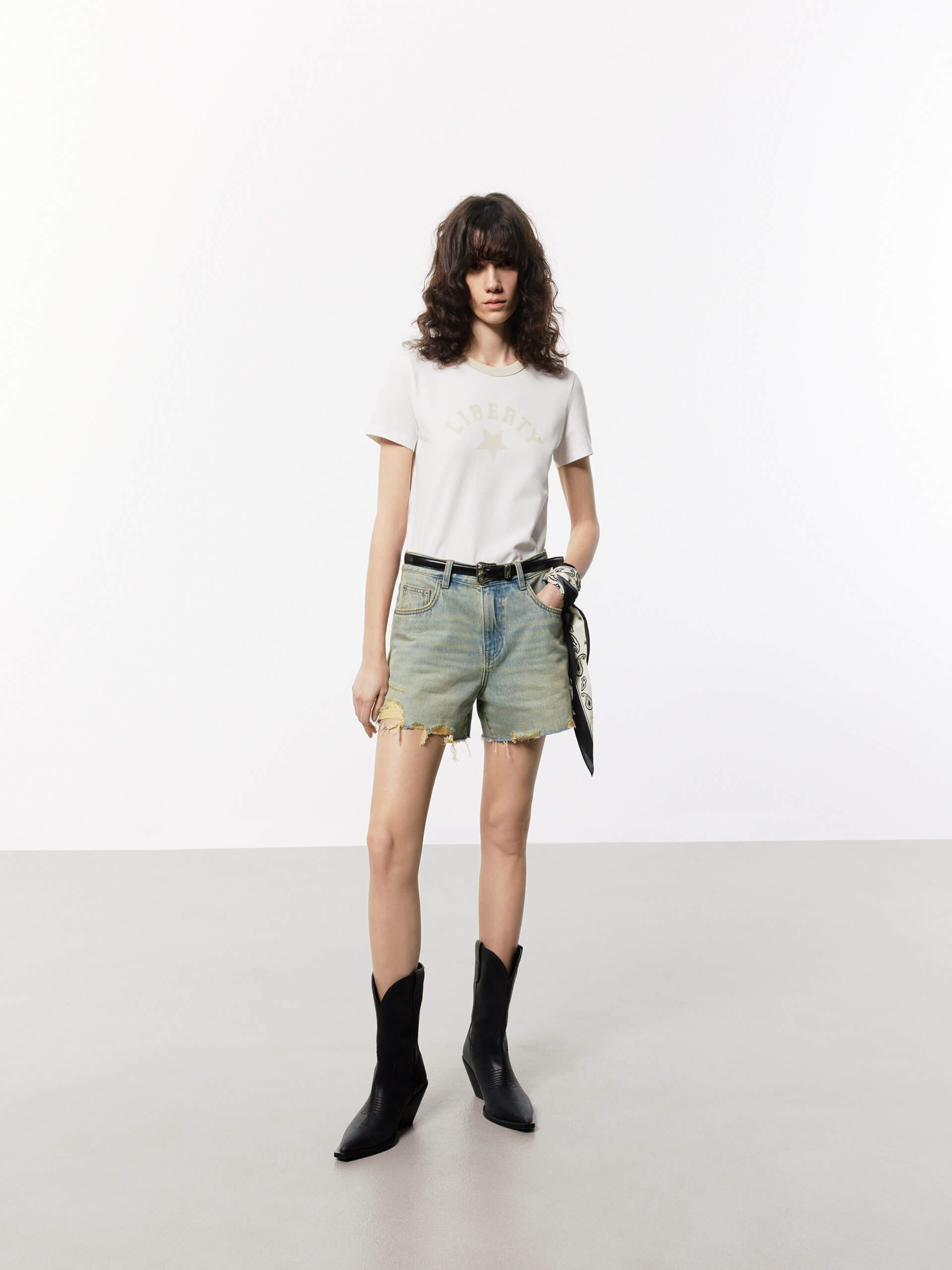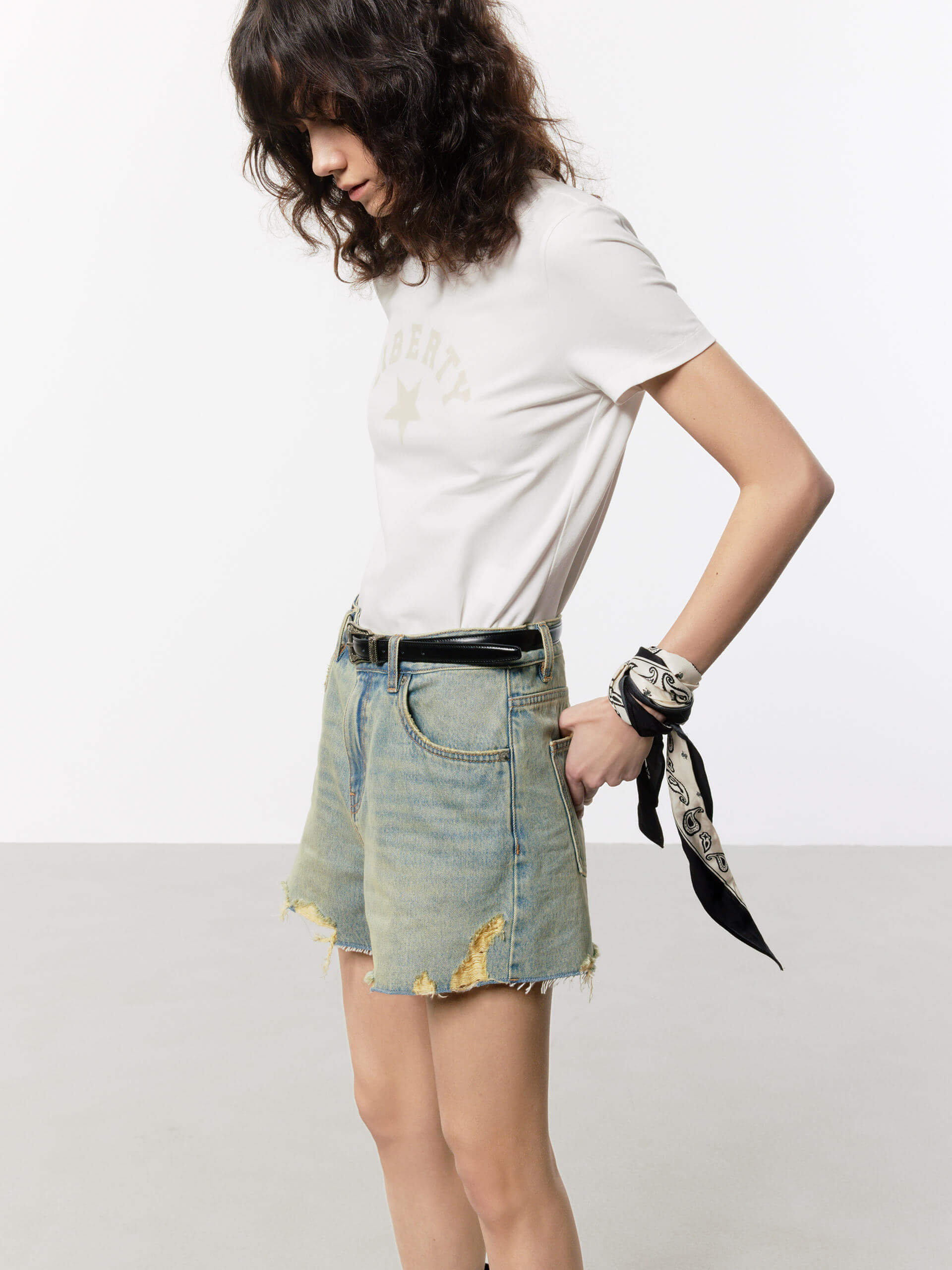 It's hard to overstate the versatility of a classic T-shirt. This cotton blend one is crafted from a premium cotton blend and features a unique print of letters and stars. Wear it with jeans, denim skirts or trousers – just about anything goes.