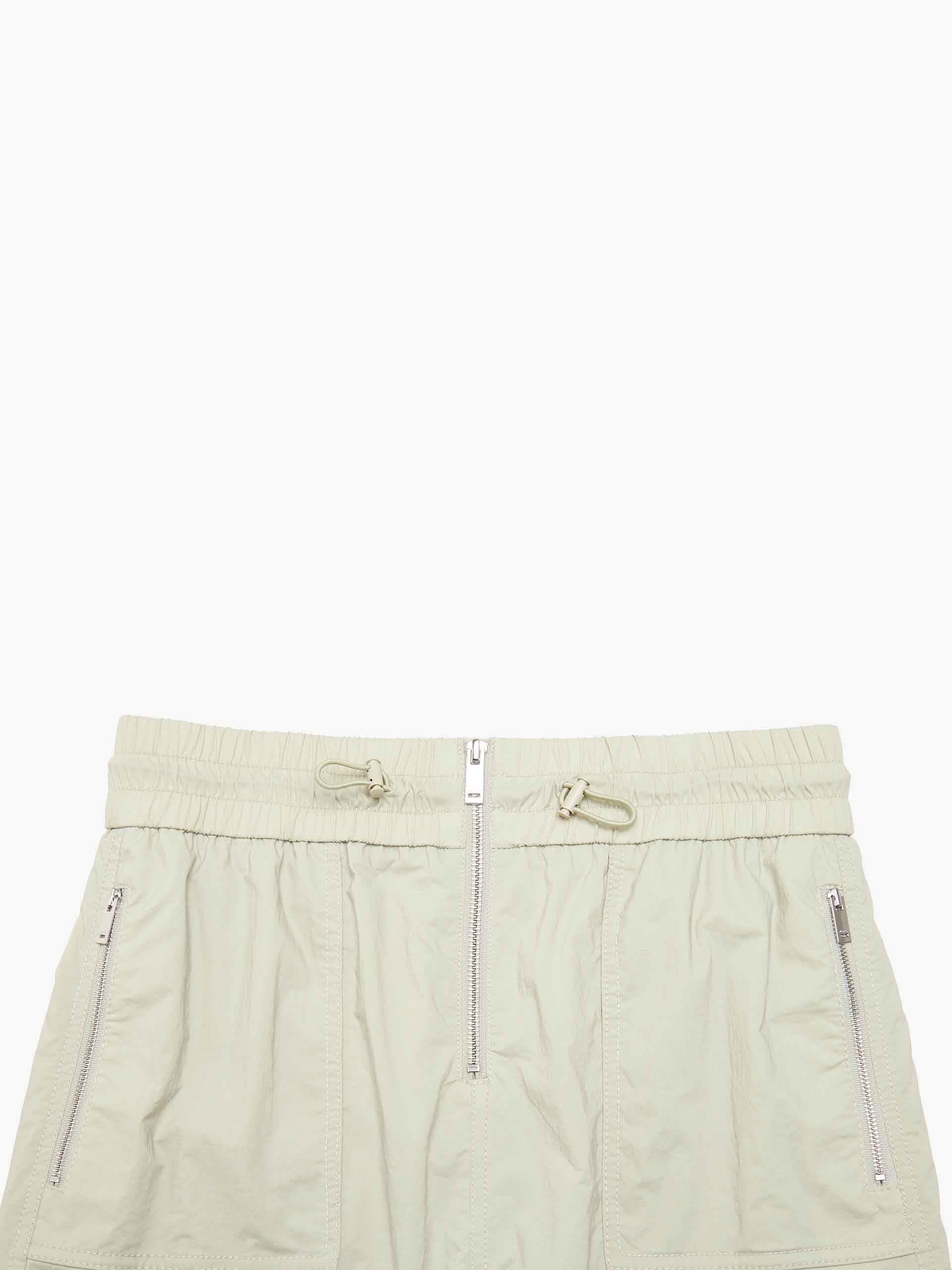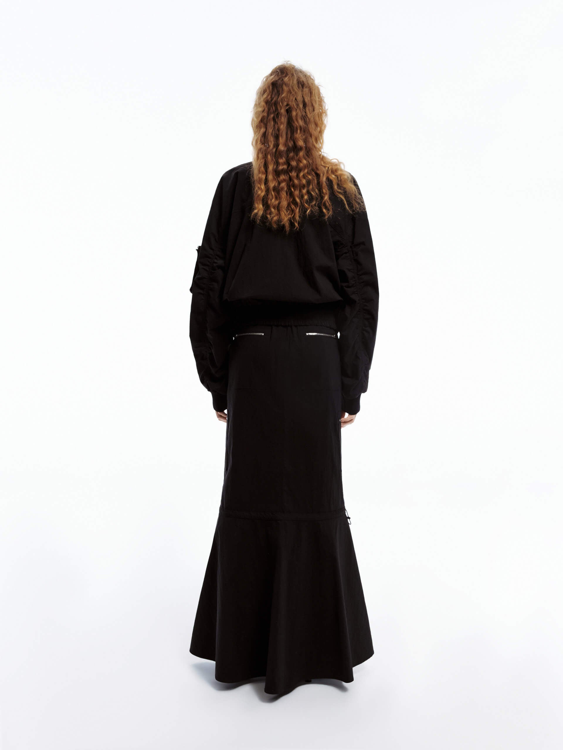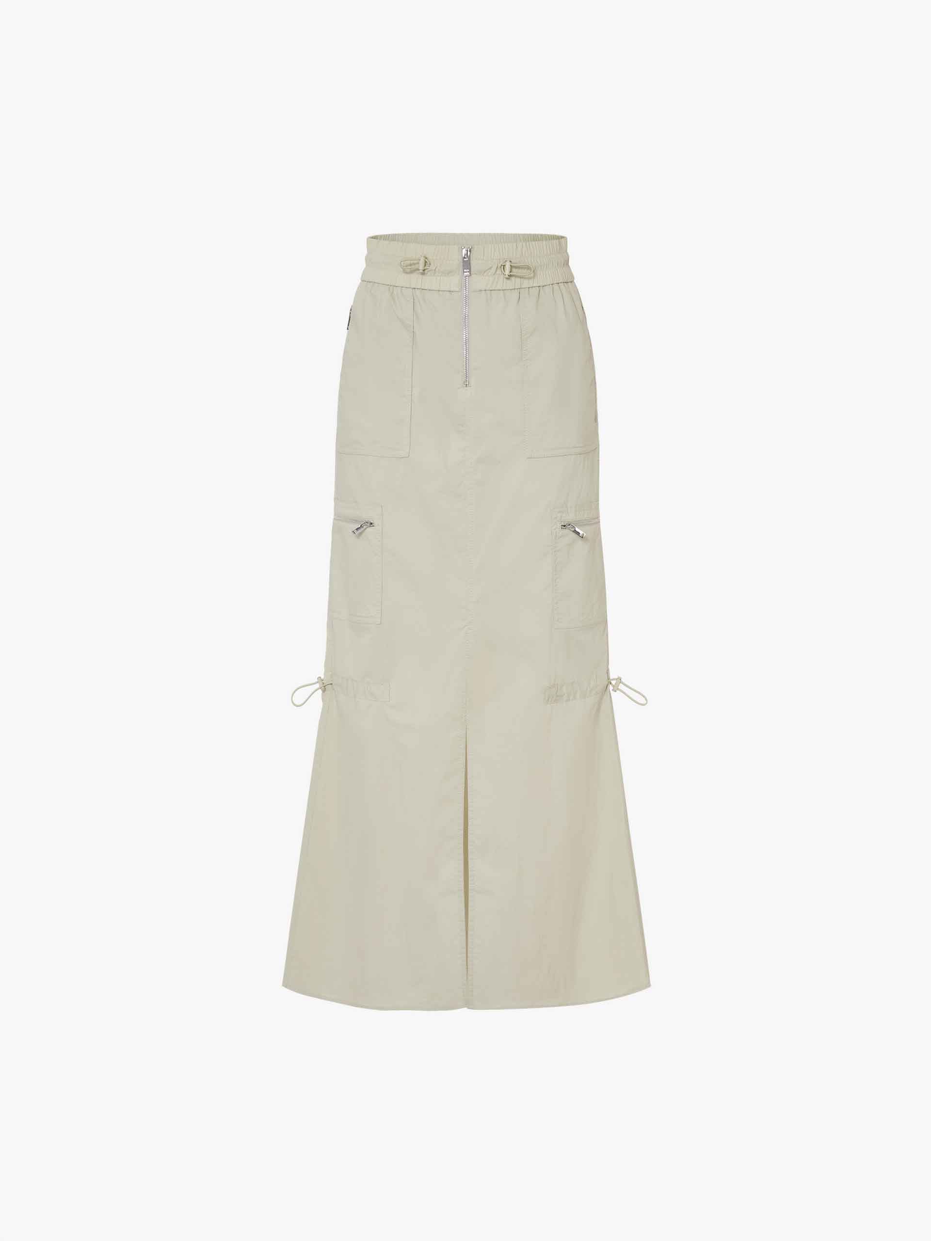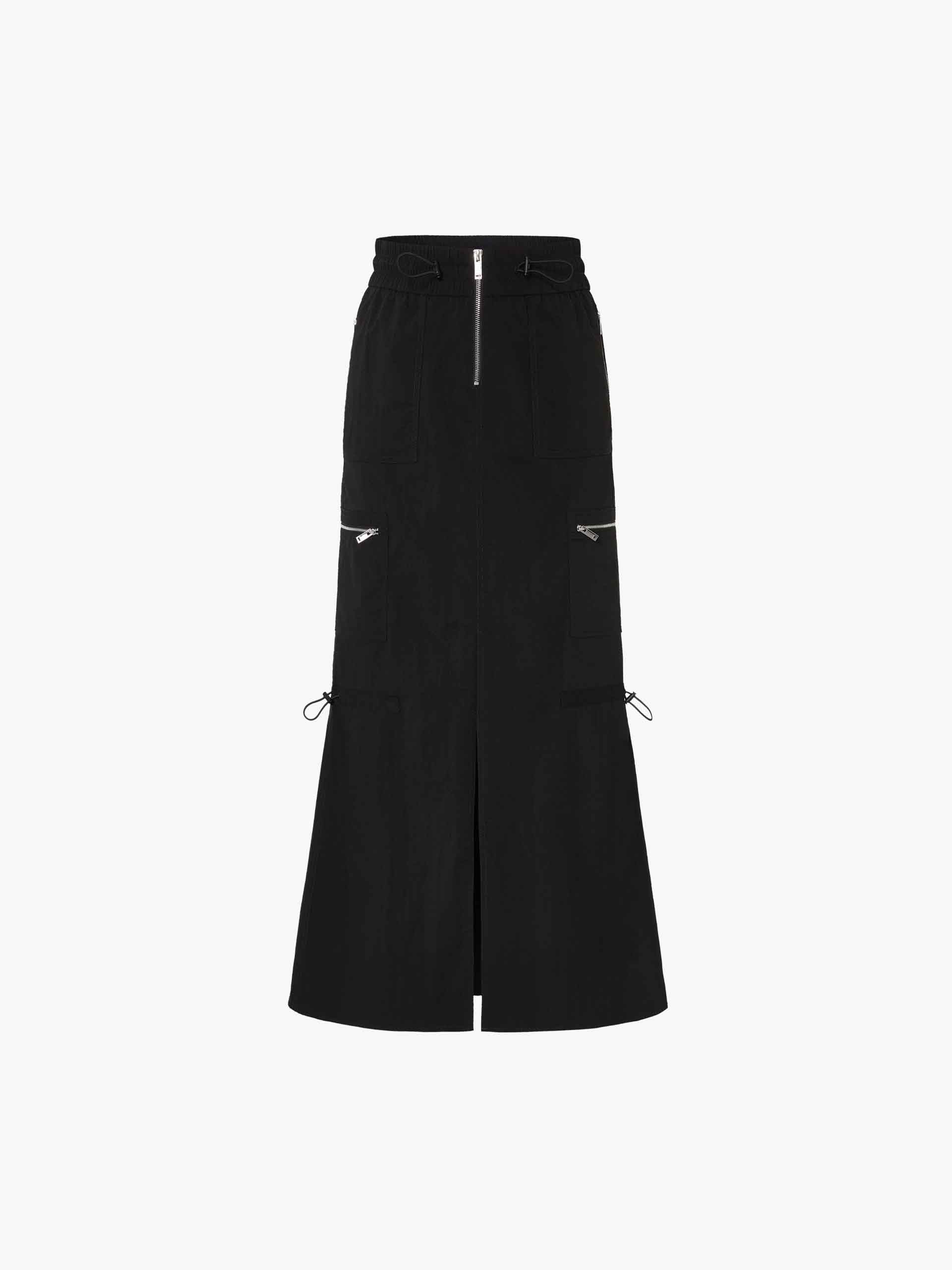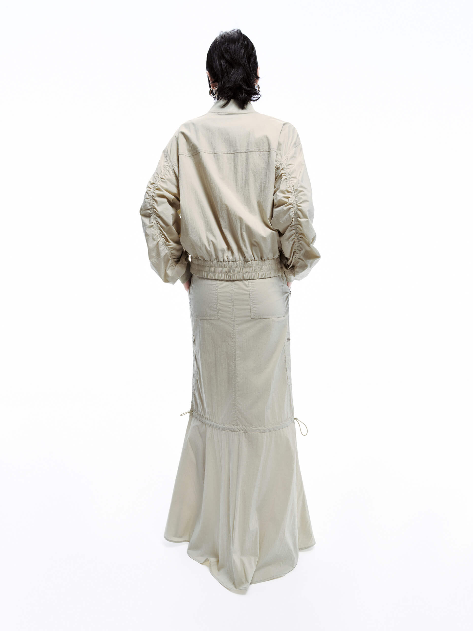 This skirt is crafted from a comfortable and lightweight fabric. Features multiple pockets and a long silhouette with a front slit and a fishtail hem. Pair it with the matching jacket for a relaxed yet stylish look. Please note that the gray one is different from regular gray, and may appear light green under different lighting conditions.