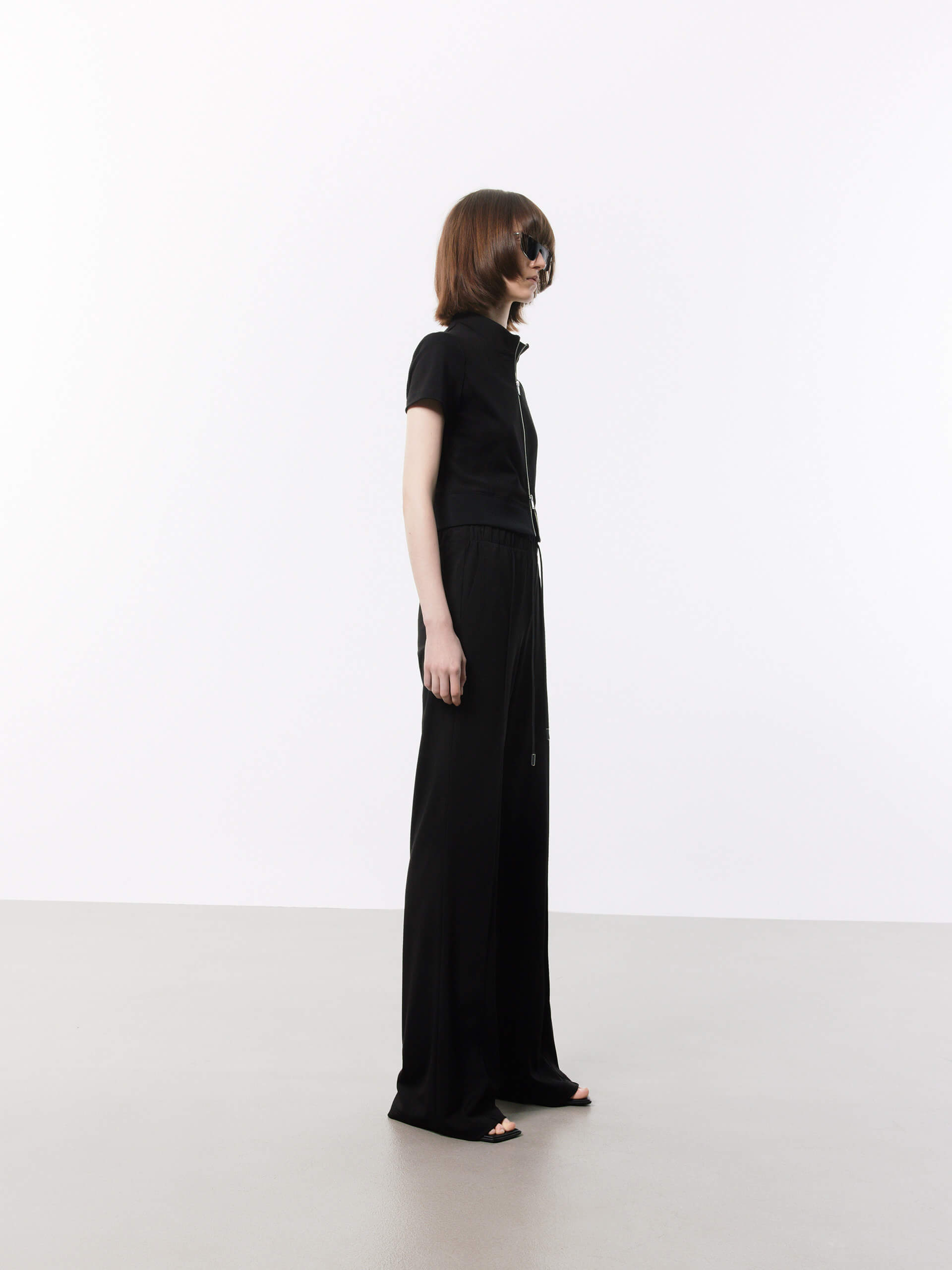 Indulge in ultimate comfort and style with our pants. Made from well-made fabric, these pants feature an elastic waistband with a drawstring for the perfect fit. The side pockets add convenience while the matching short top completes the chic look.