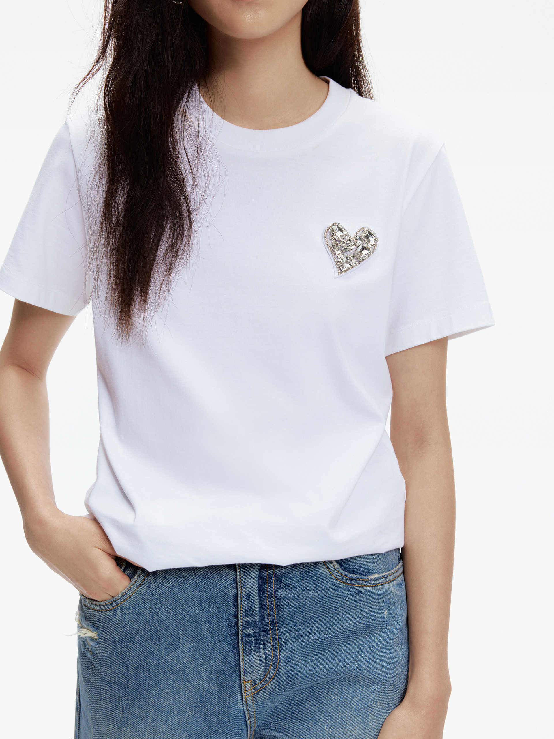 Heart Detail Cotton T-shirt