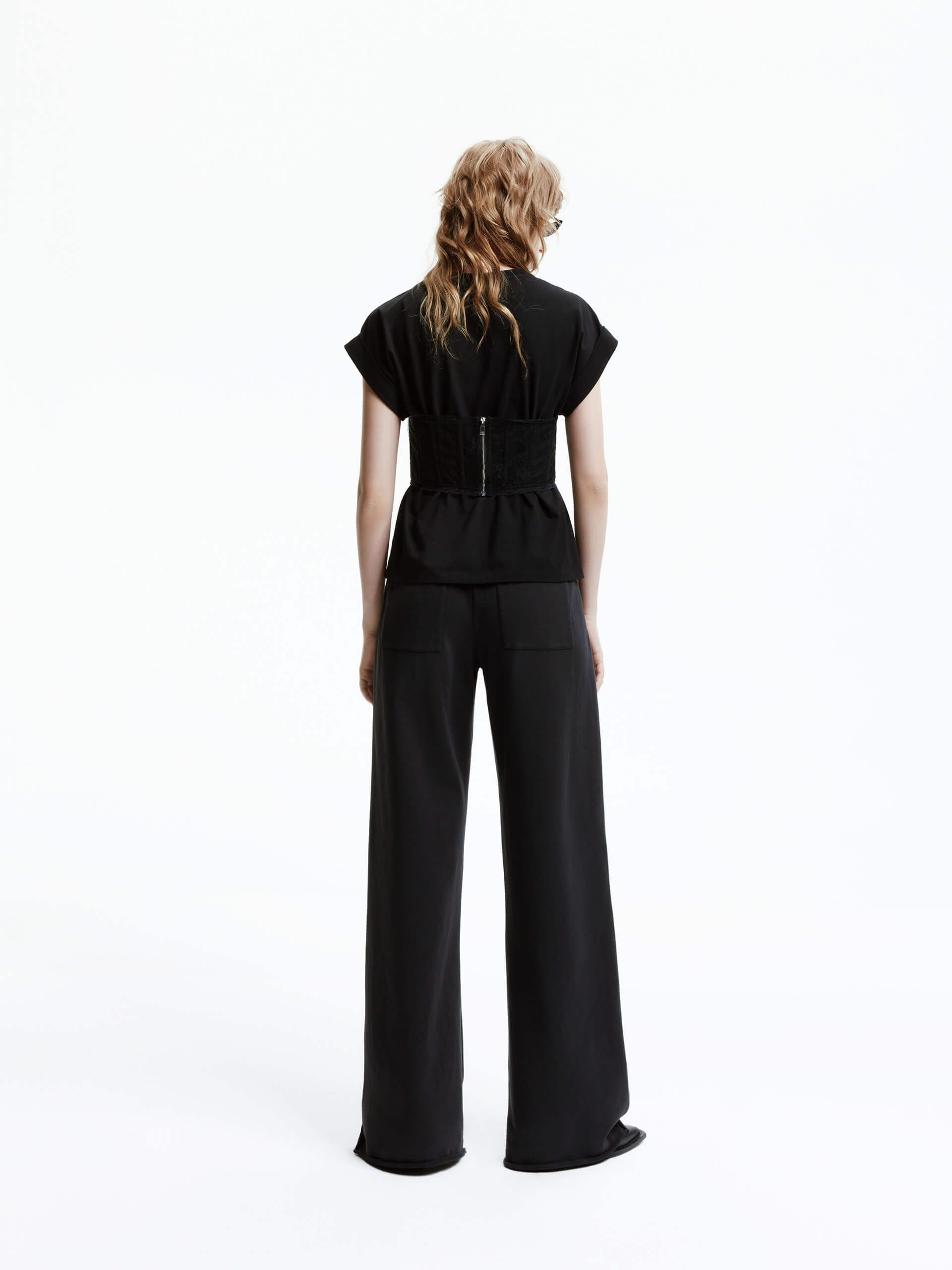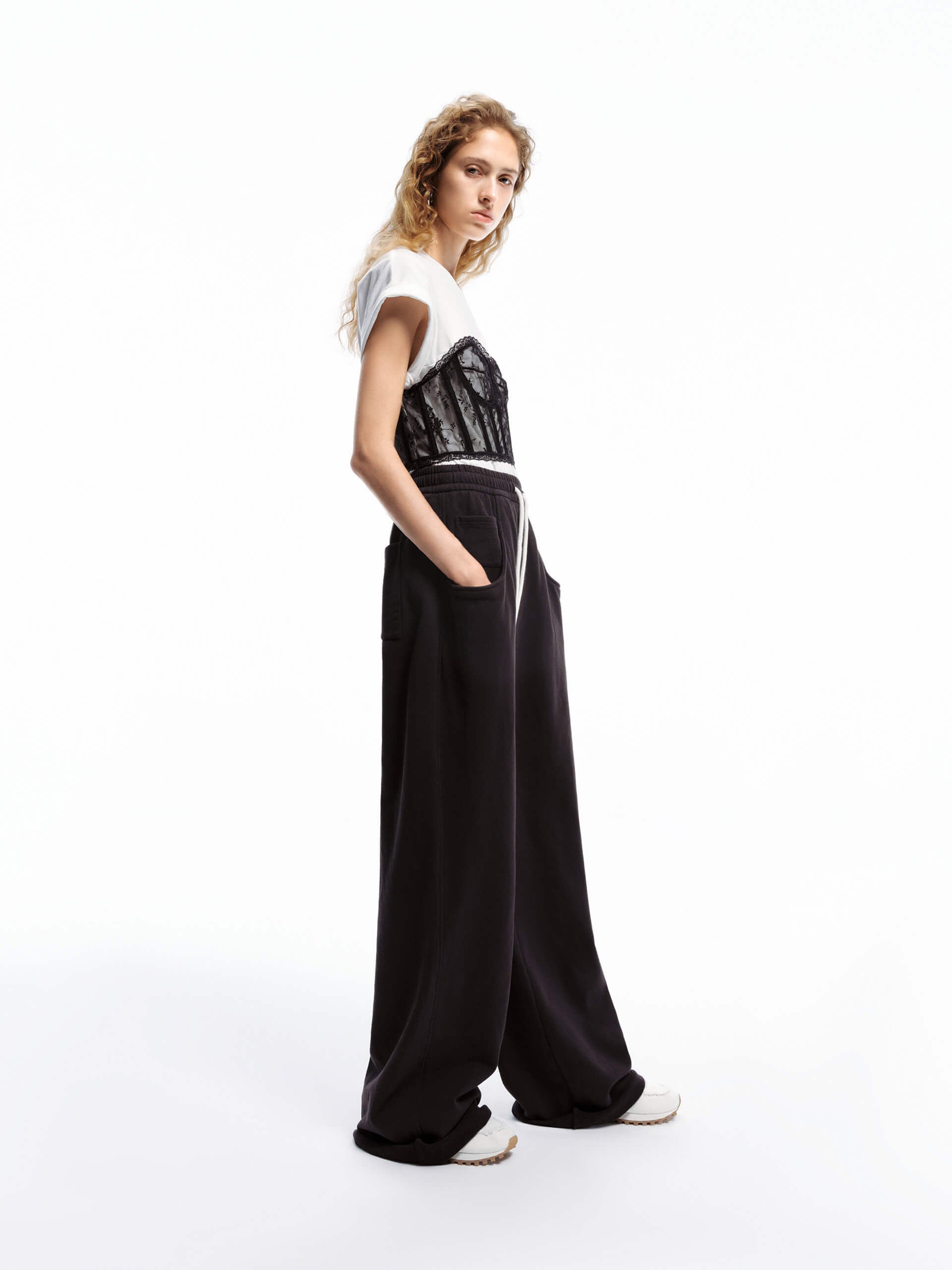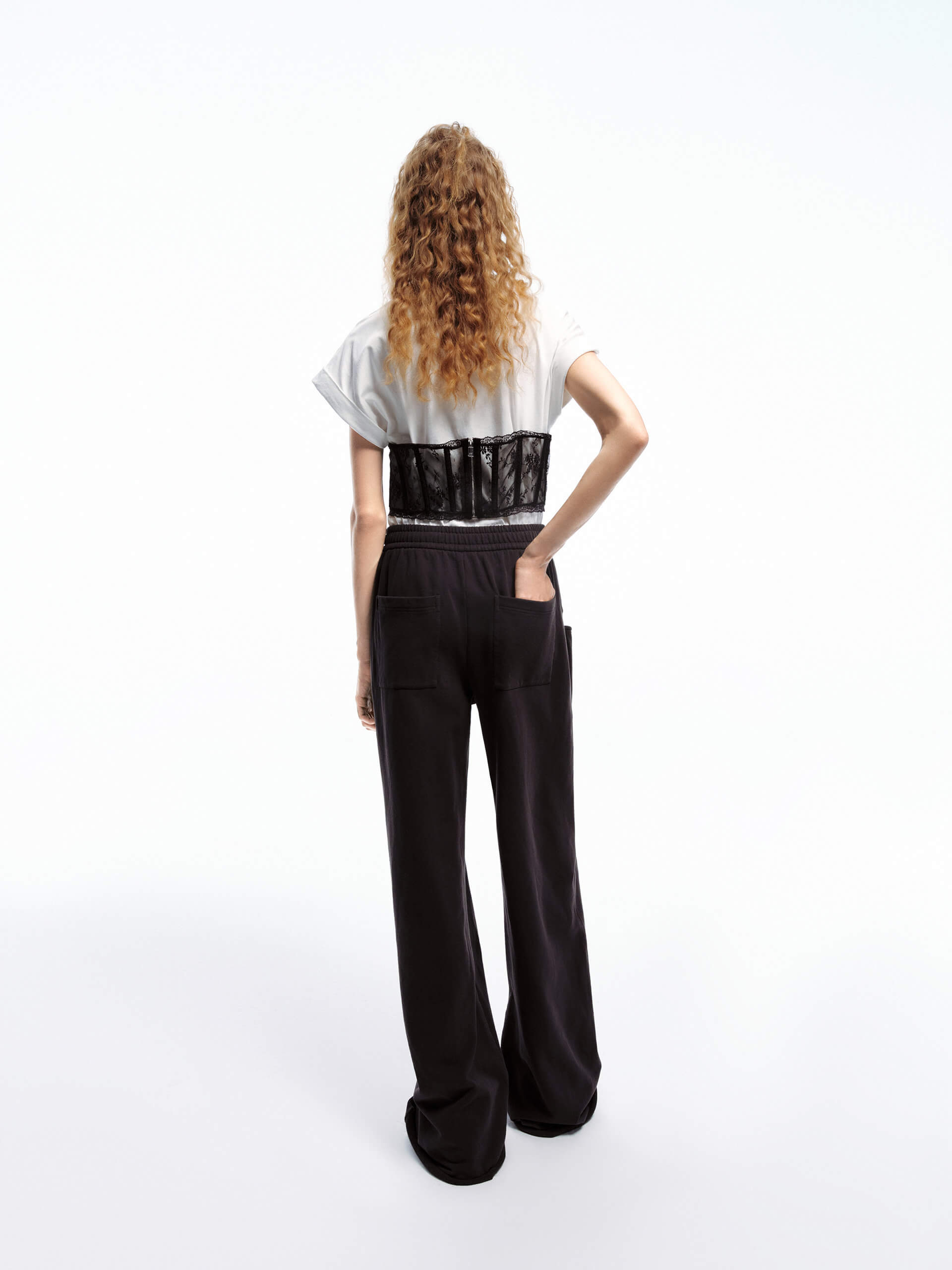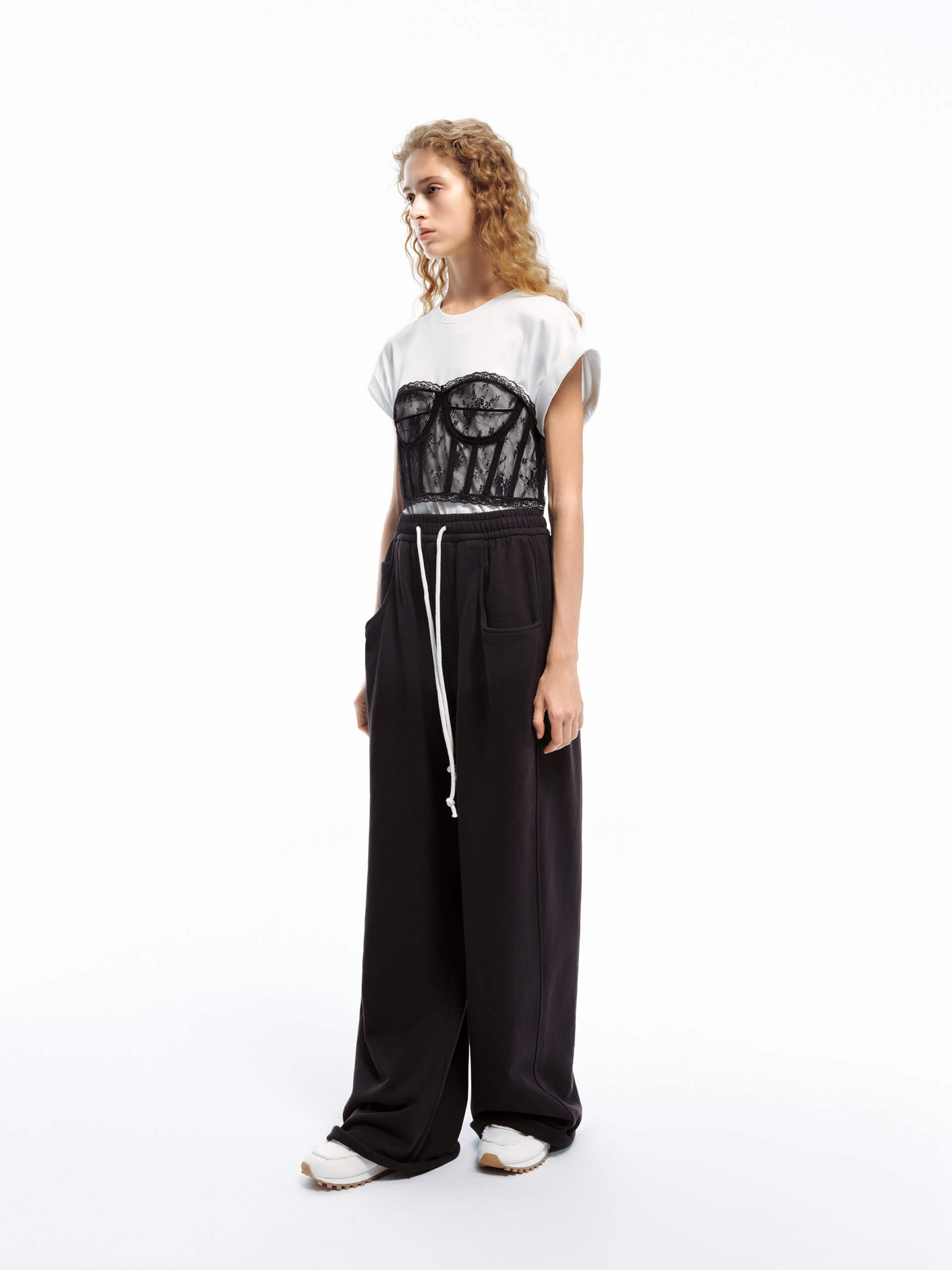 Quality T-shirts have been a cornerstone of the MO&Co collection since day one. A simple essential, this tee is made from cotton with a soft jersey quality and comes in a classic white and black hue that'll slot seamlessly into your wardrobe. It has a fitting cut and a removable black lace bra for a statement look.