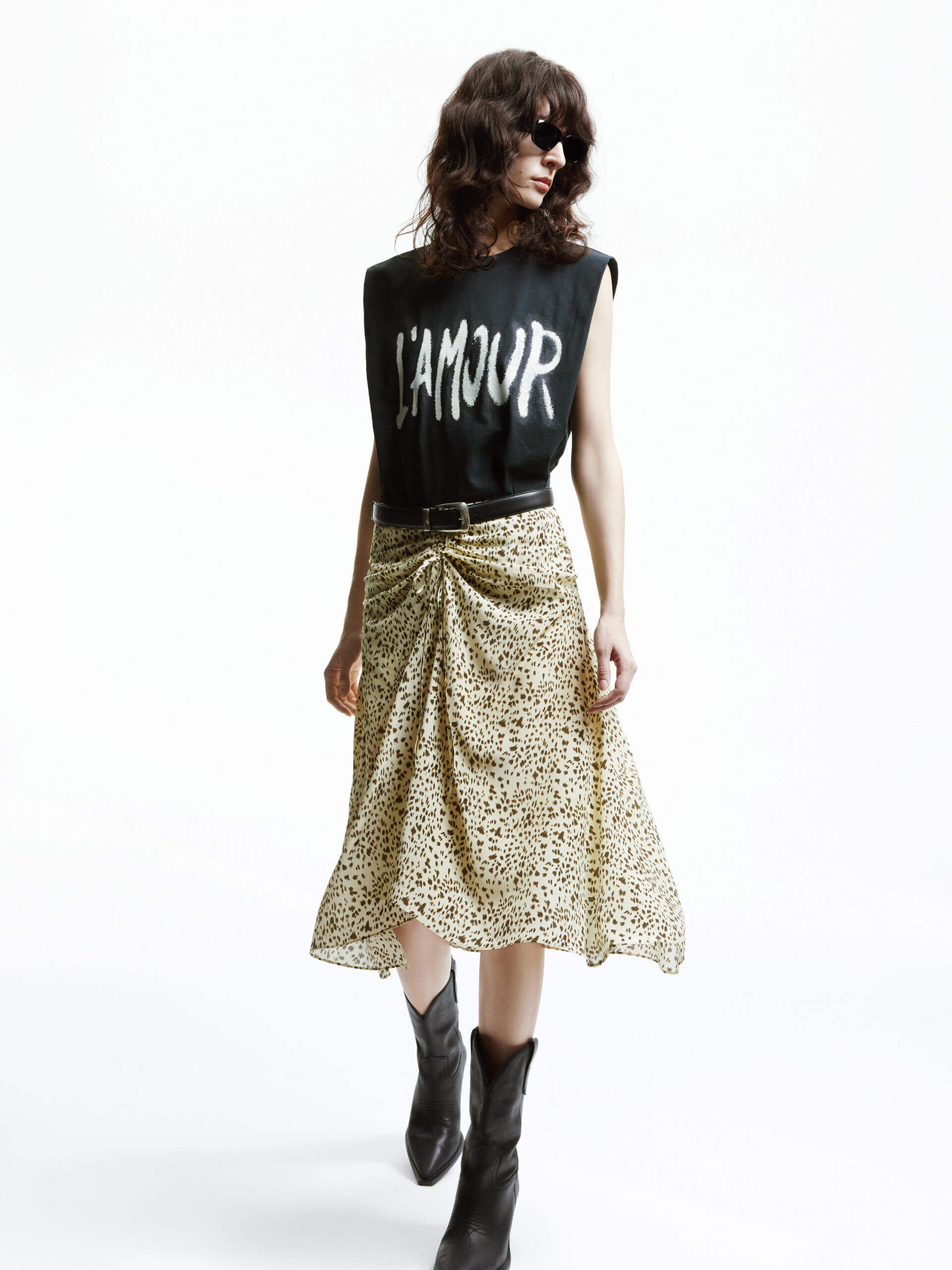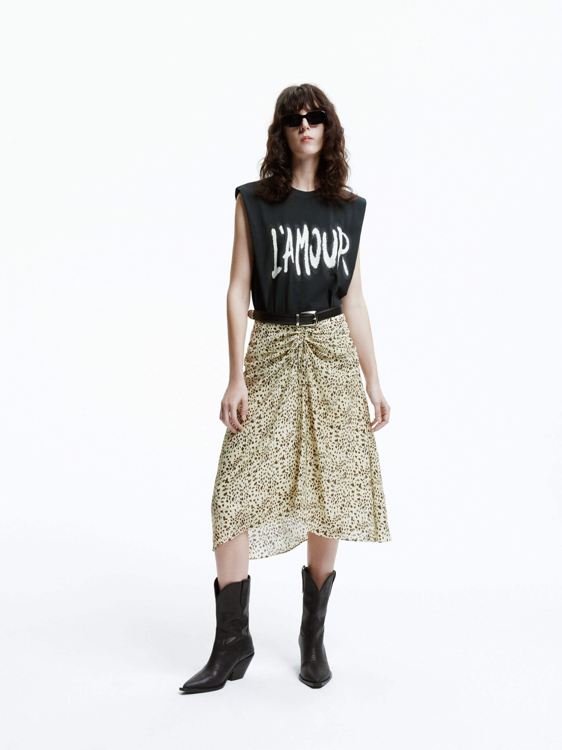 Our team has been creating premium essentials since the beginning. This T-shirt features a clever wide shoulder design with padded shoulders for a strong, stylish look. The chest letter graffiti detail adds a cool touch.