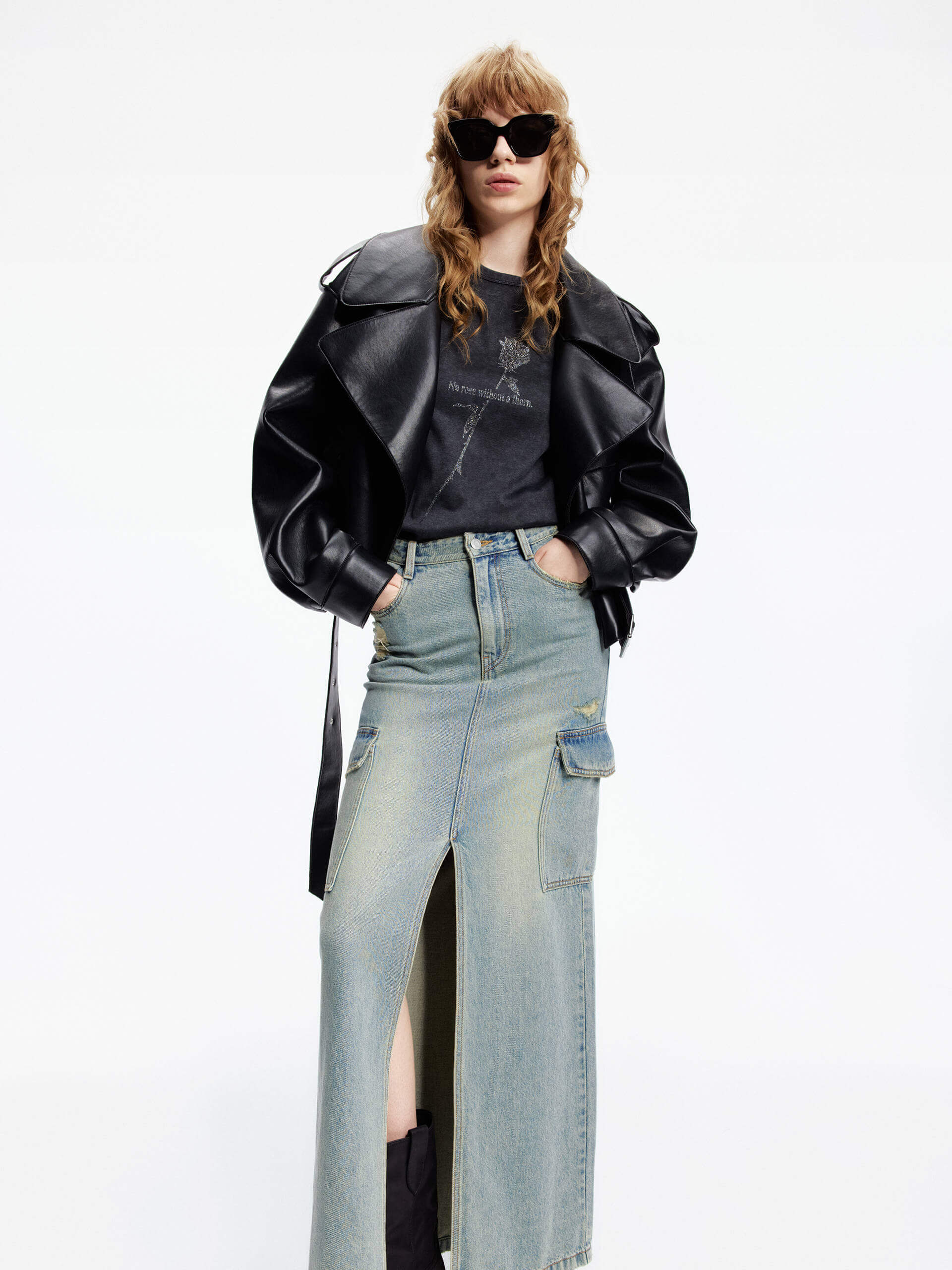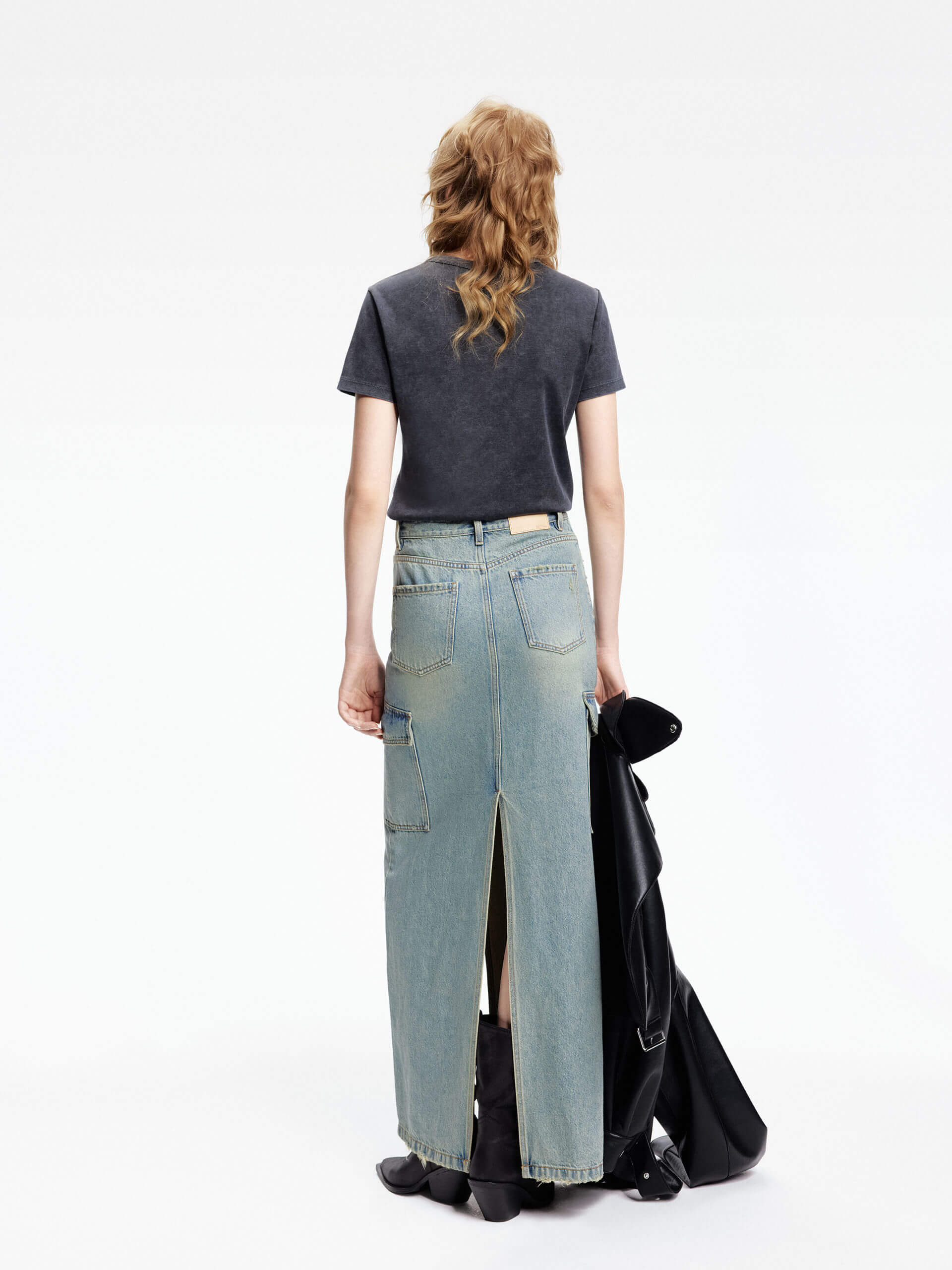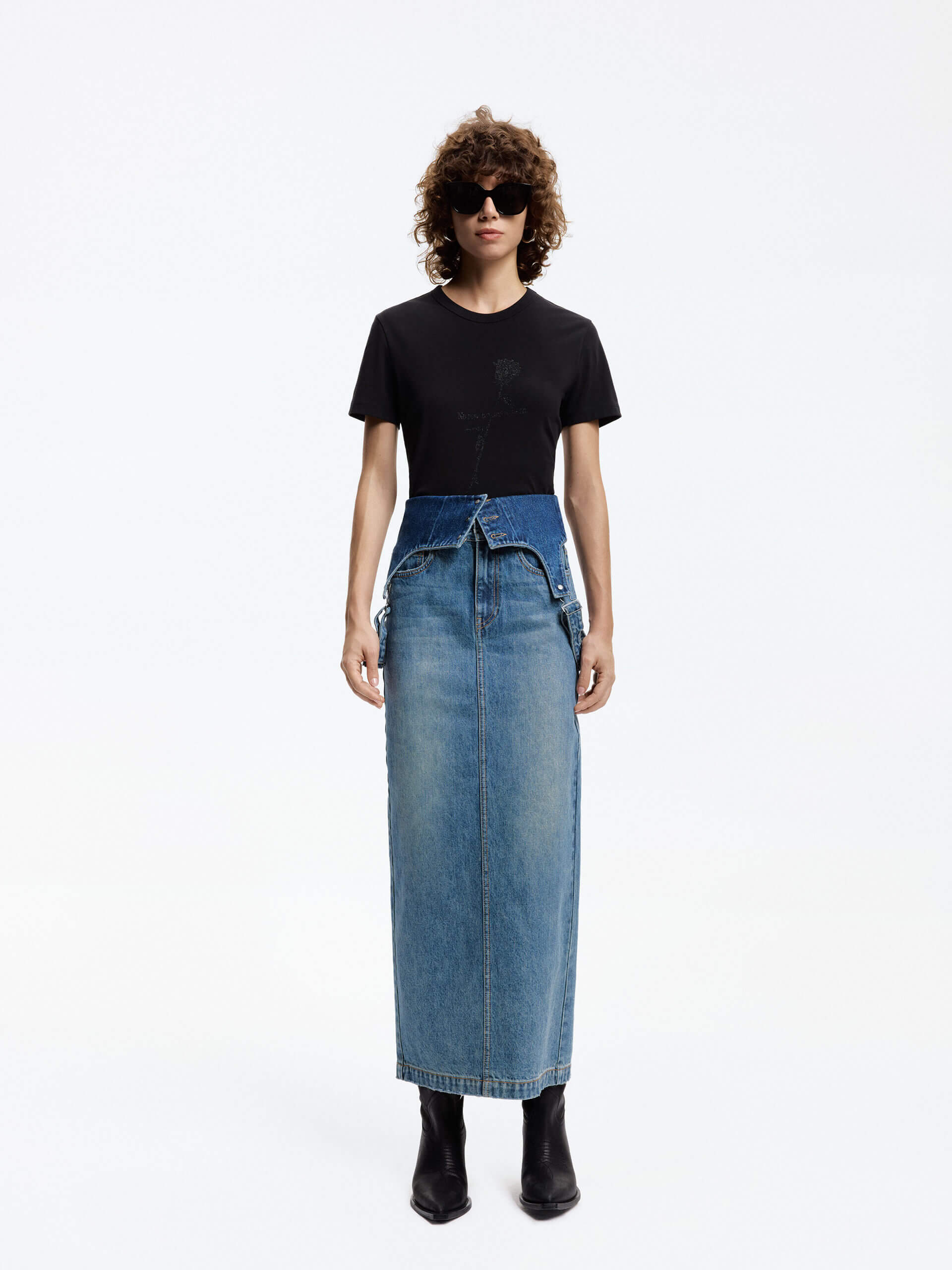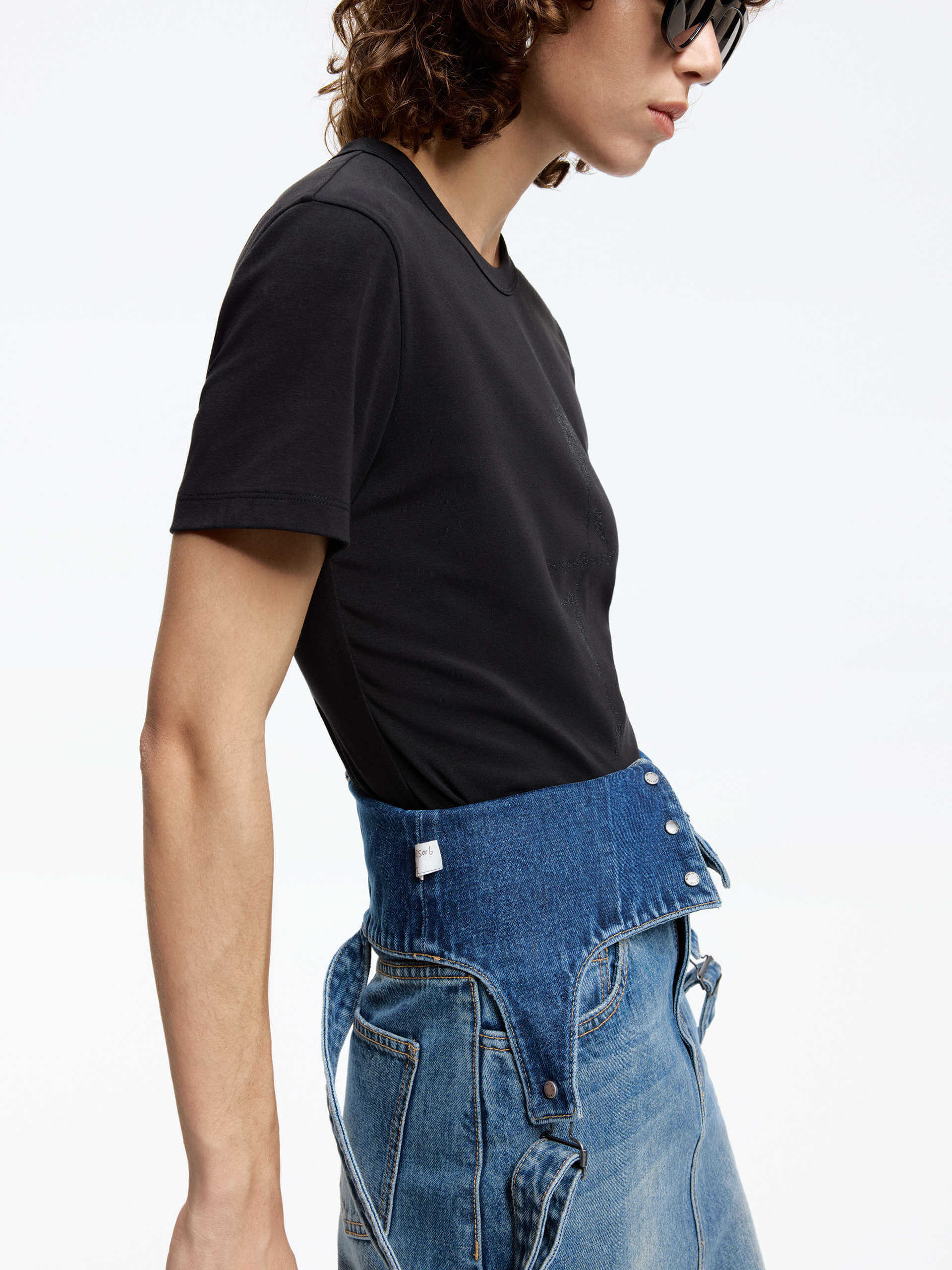 This staple tee is crafted from premium cotton jersey and shaped for a neat fit that has slight definition. The front rose and letter print with glitter details, gray hue with vintage frosted design. Pair it with a denim skirt or casual pants to create a fashionable look with a simple T-shirt.