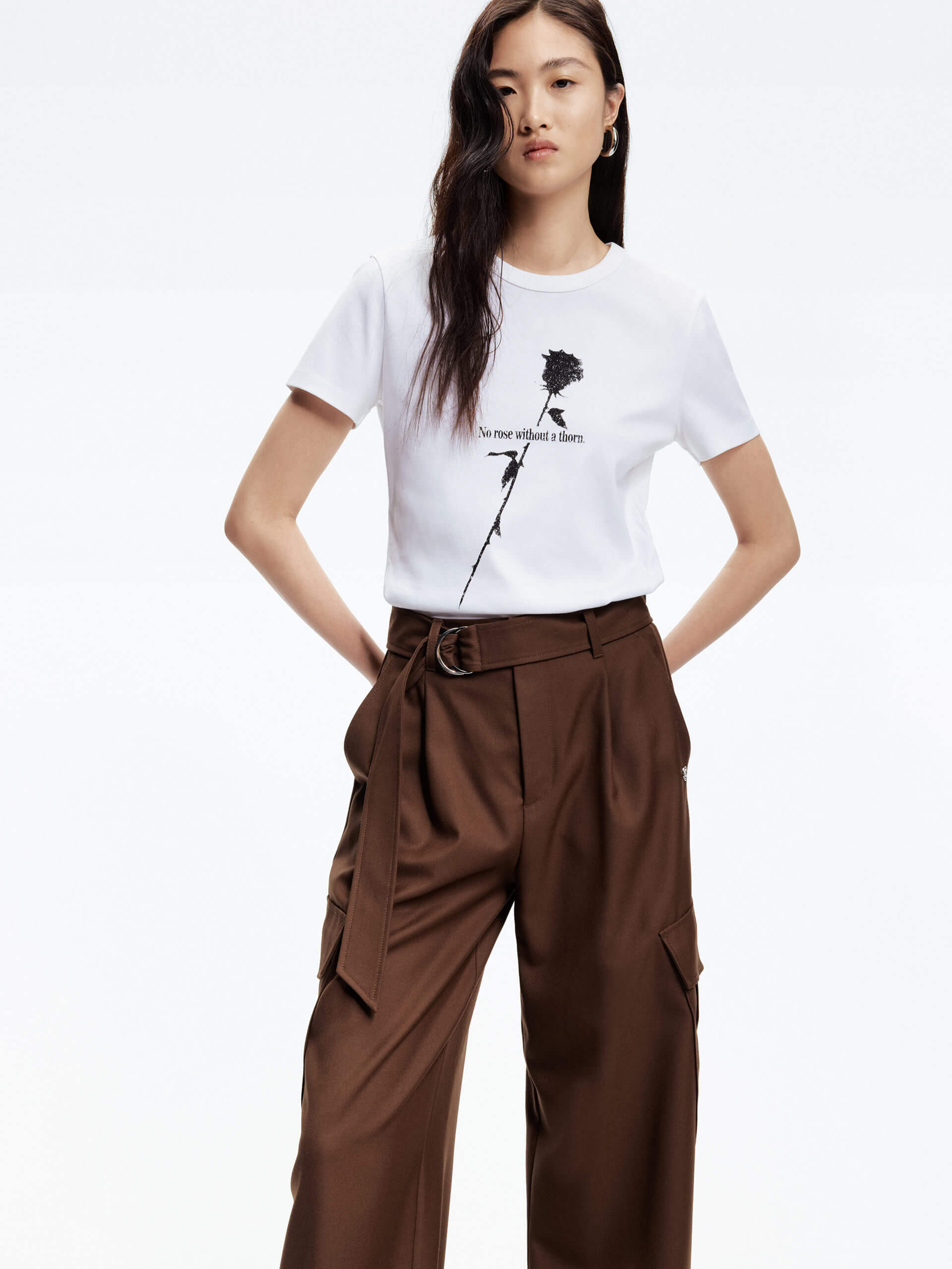 MO&Co. Women's Rose Pattern Cotton T-shirt