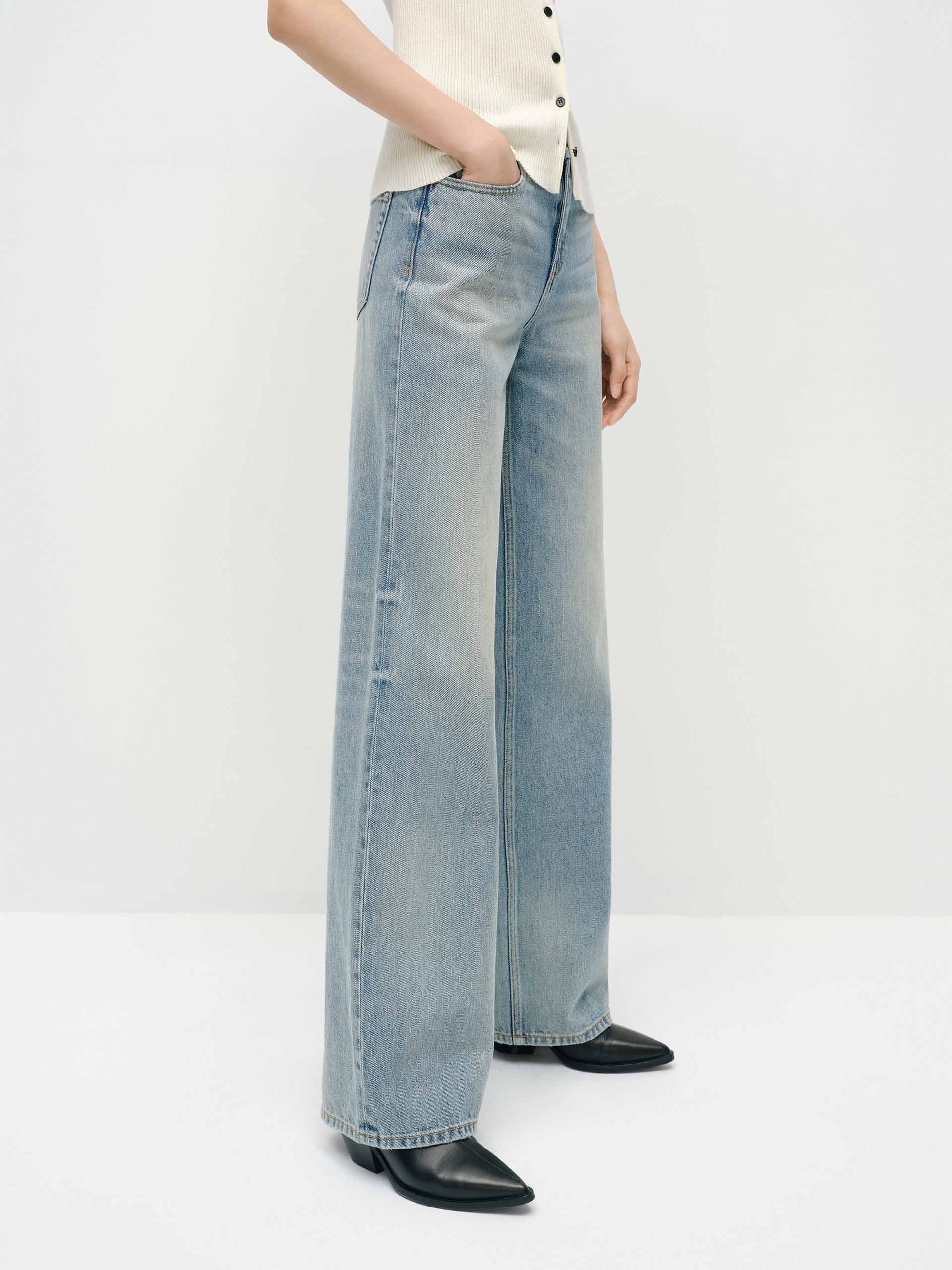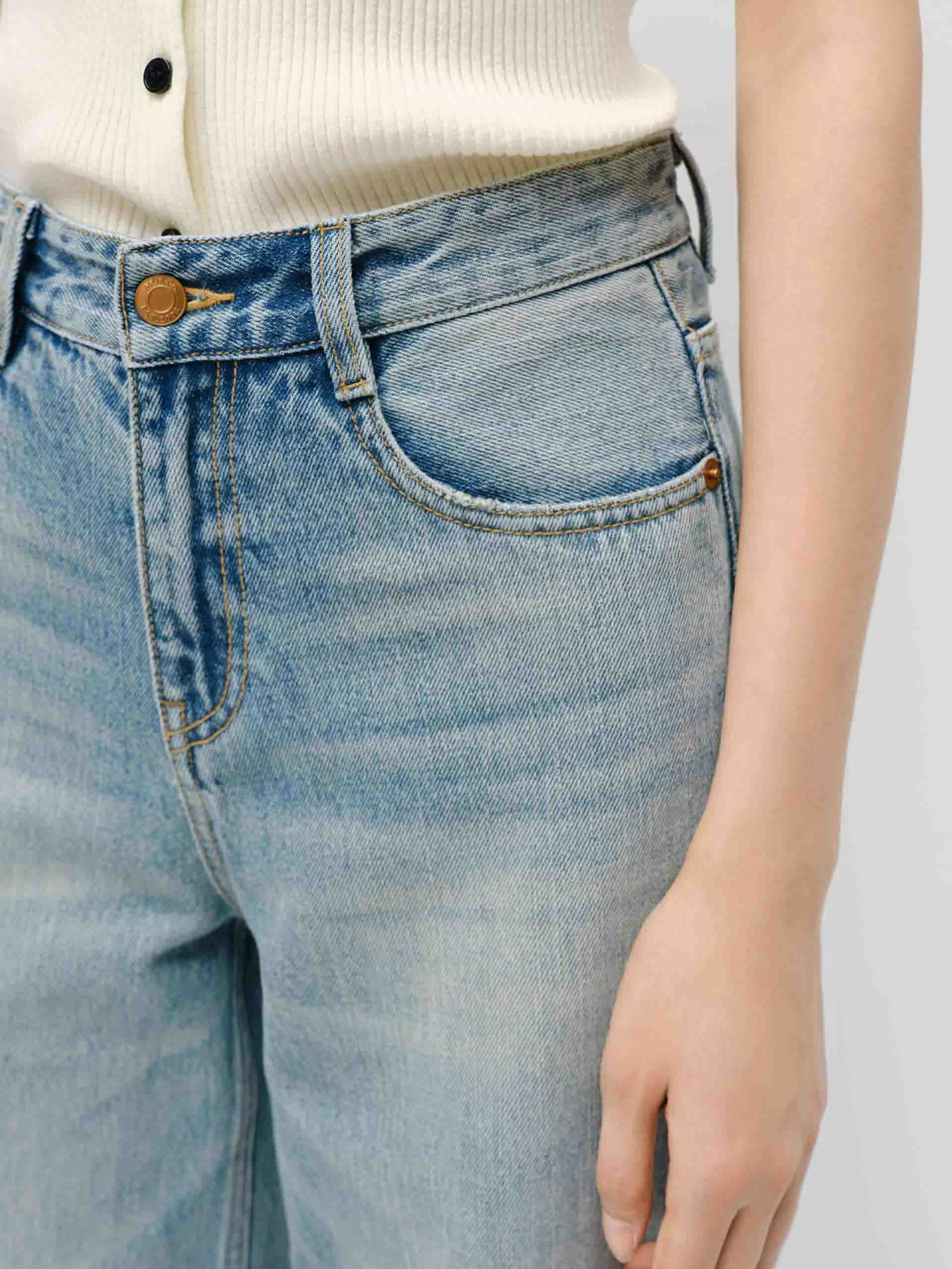 - High waist, relaxed straight cut