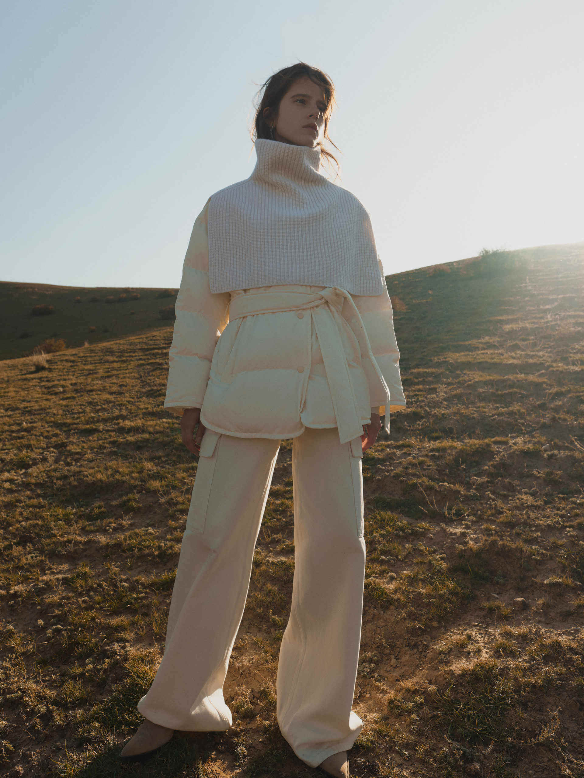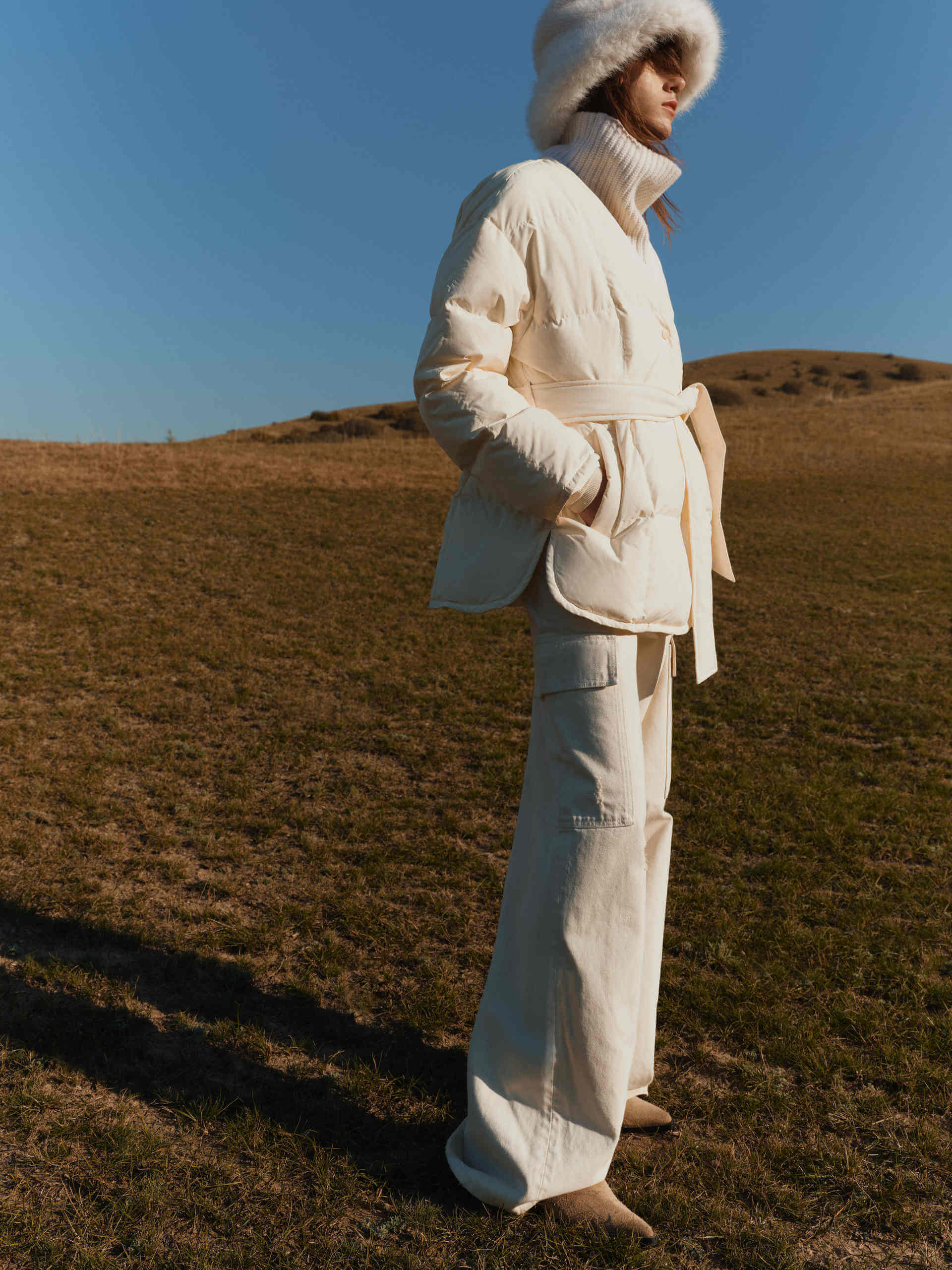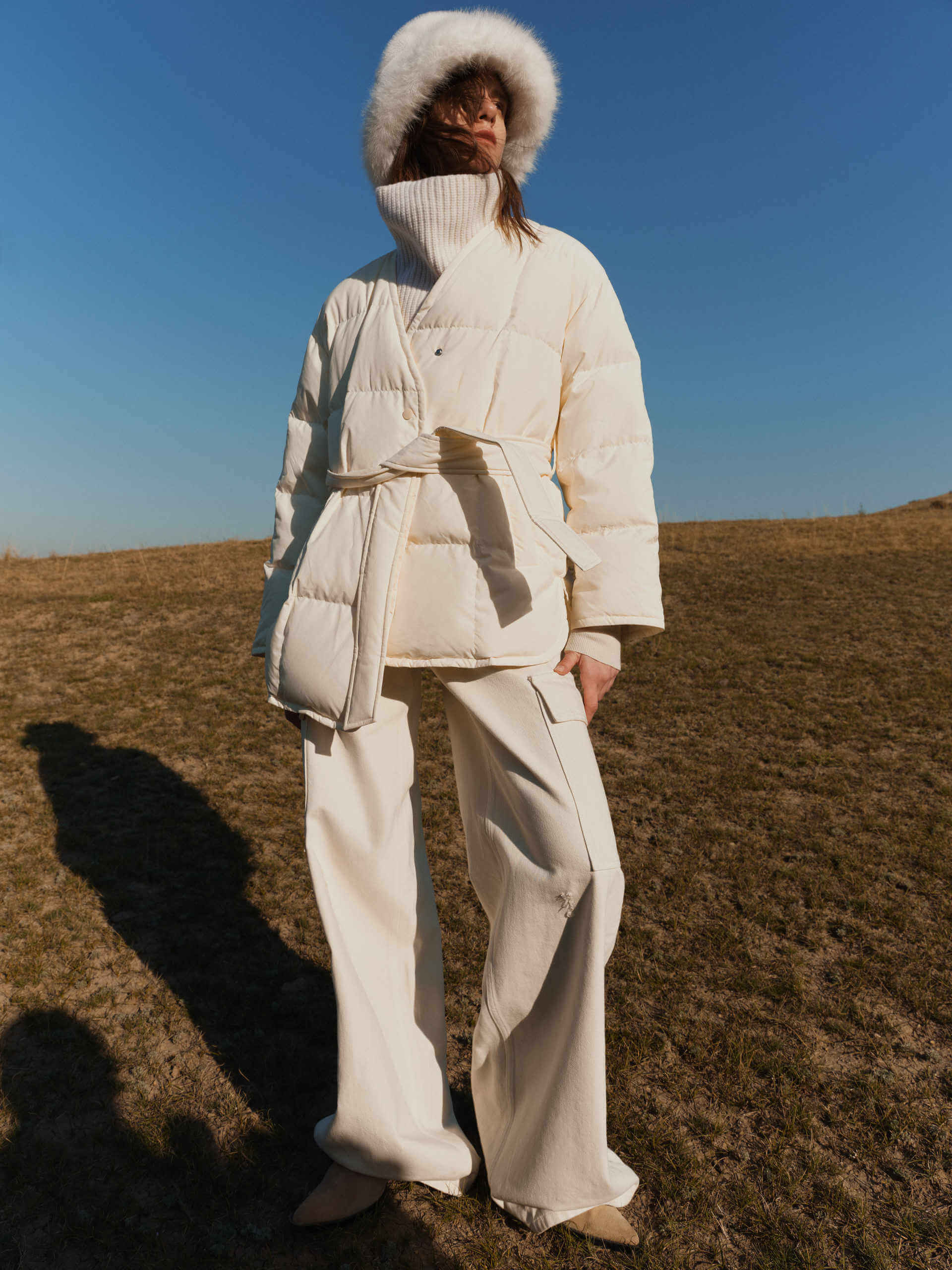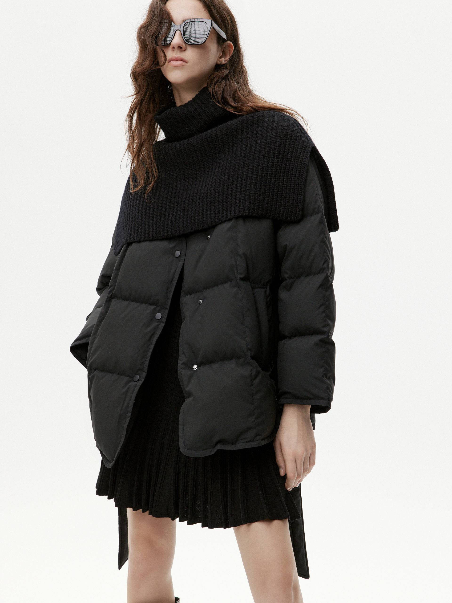 Stay warm and stylish in our down jacket. The comfortable and loose fit keeps you cozy, while the shawl design adds versatility for different looks. Experience comfort and versatility in one exquisite piece.