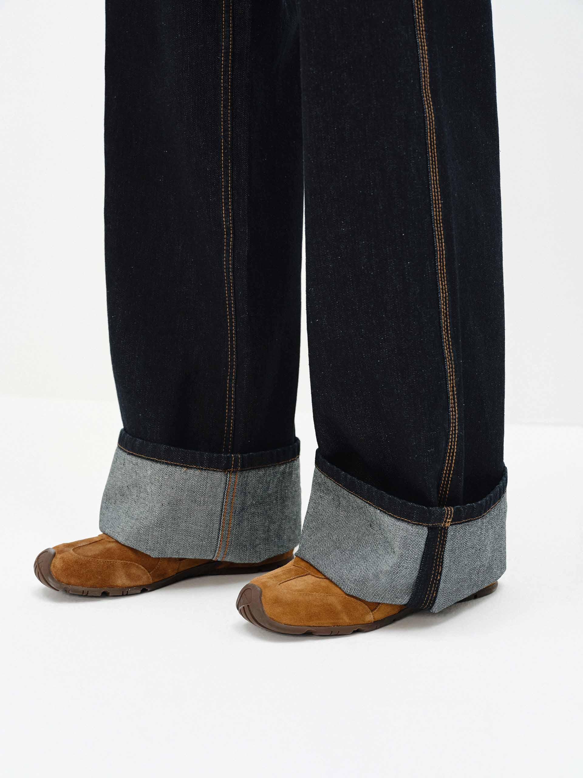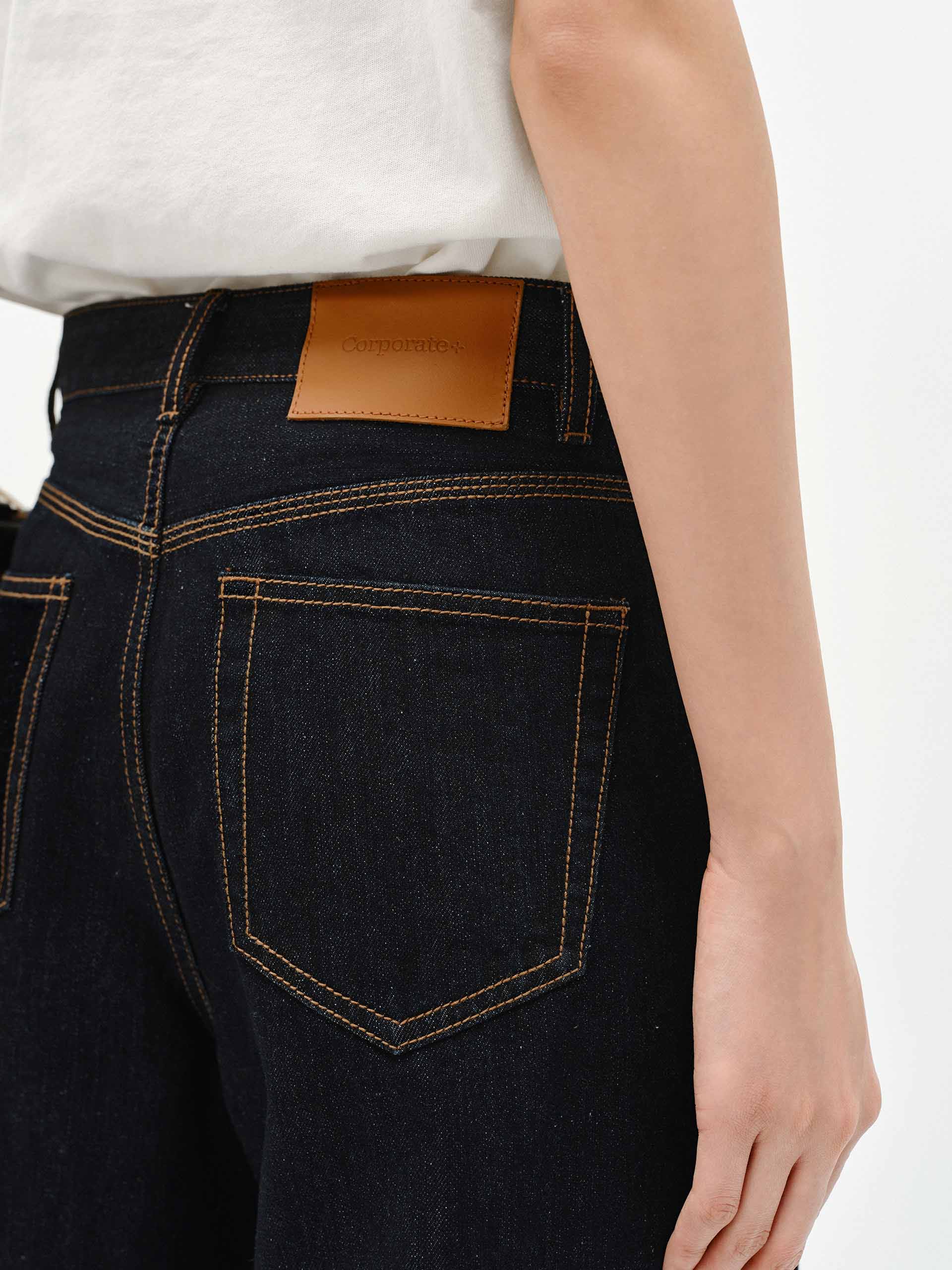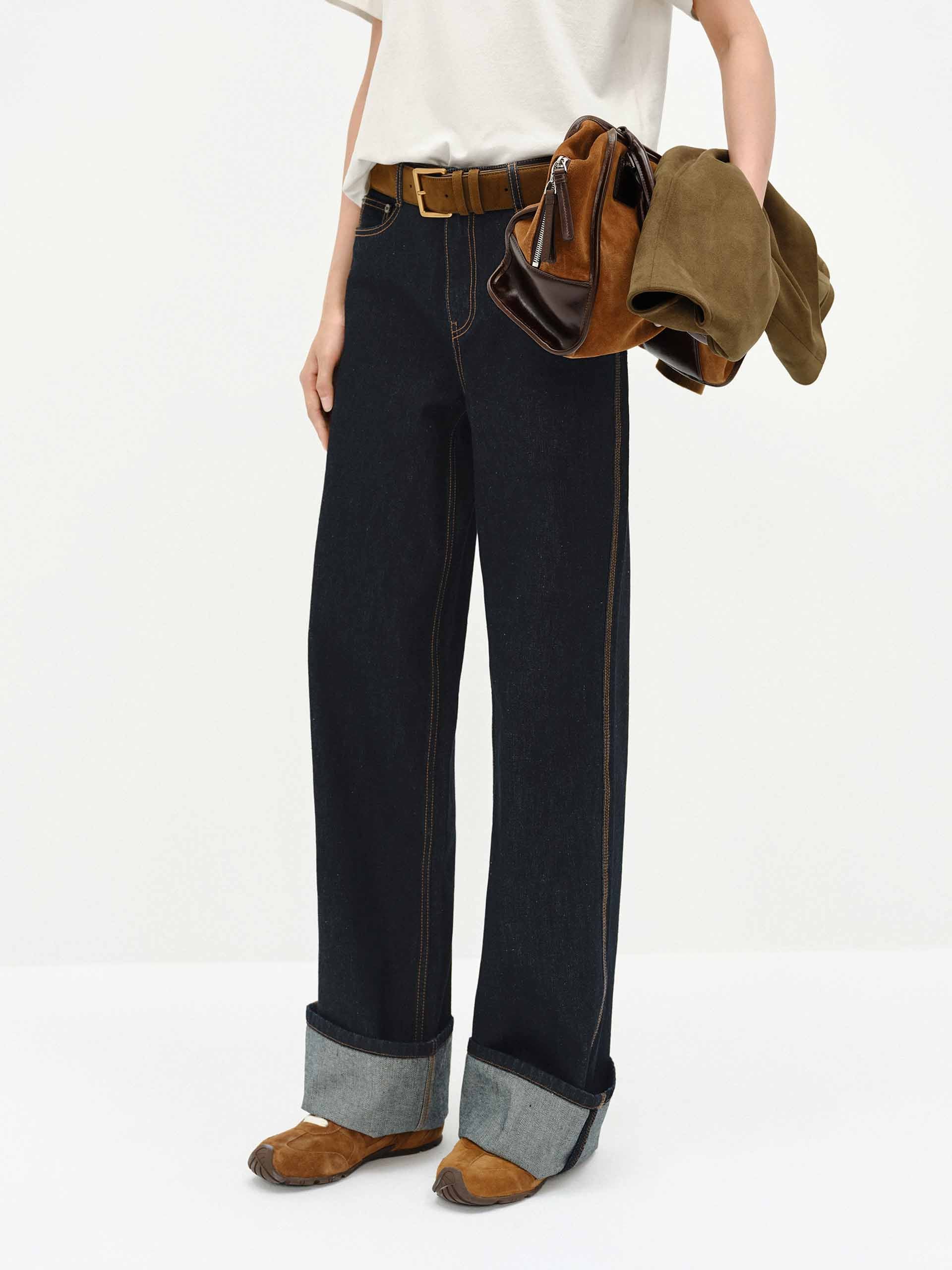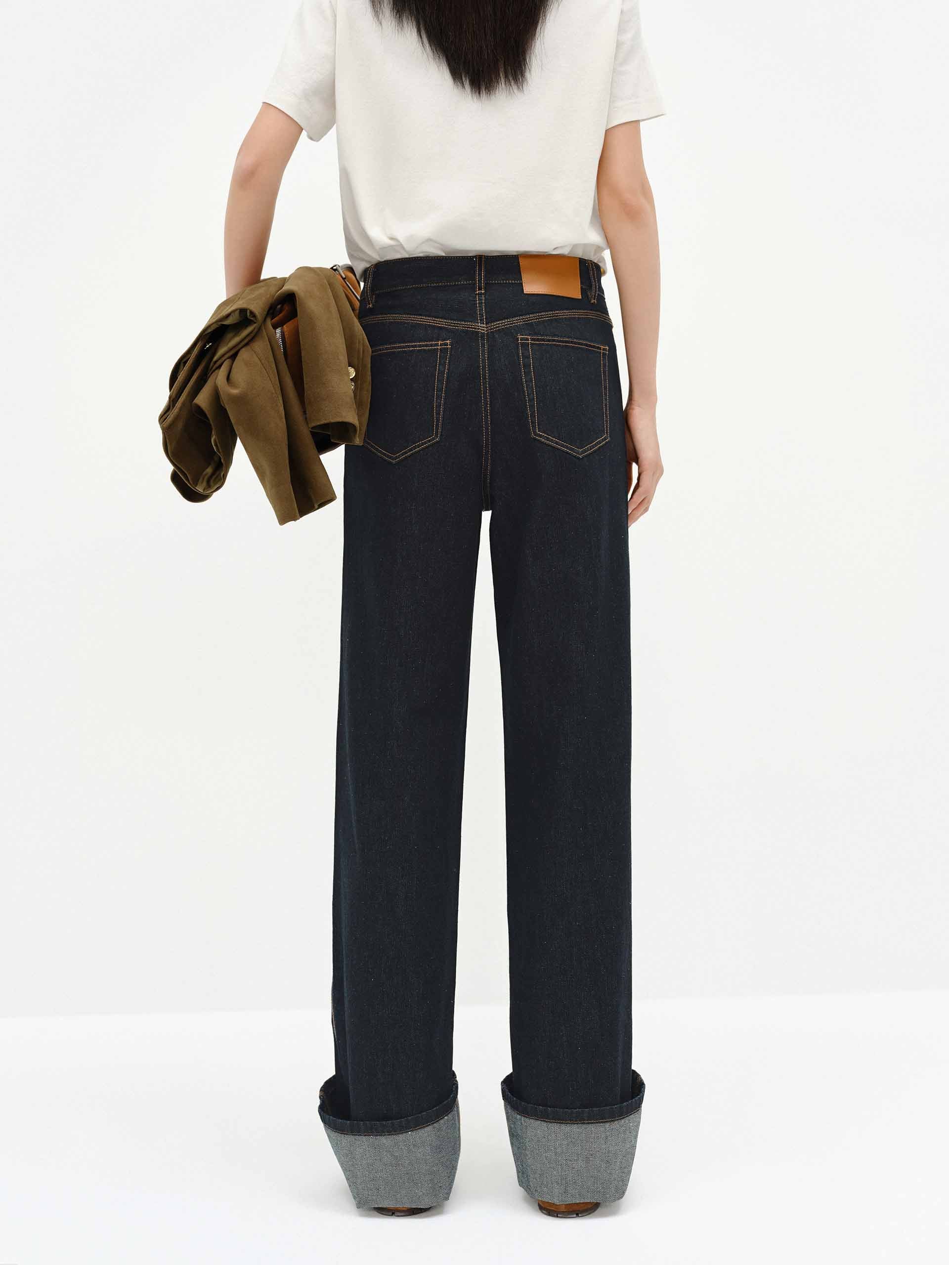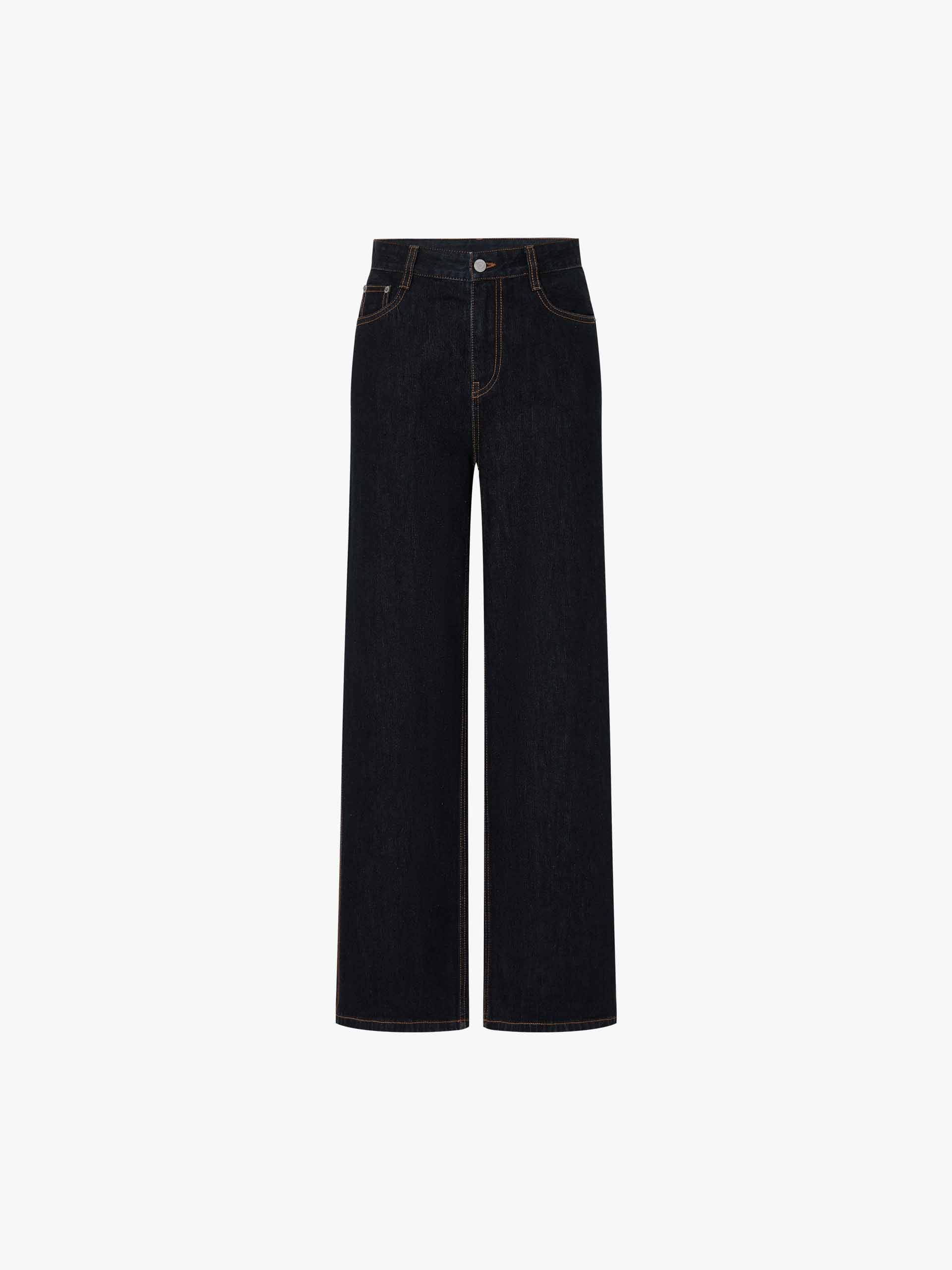 Expertly crafted with a cotton blend and a deep blue wash. Shaped with a mid-waist, these jeans feature contrast topstitching and extra long straight legs, giving you a polished look that effortlessly elongates your silhouette.