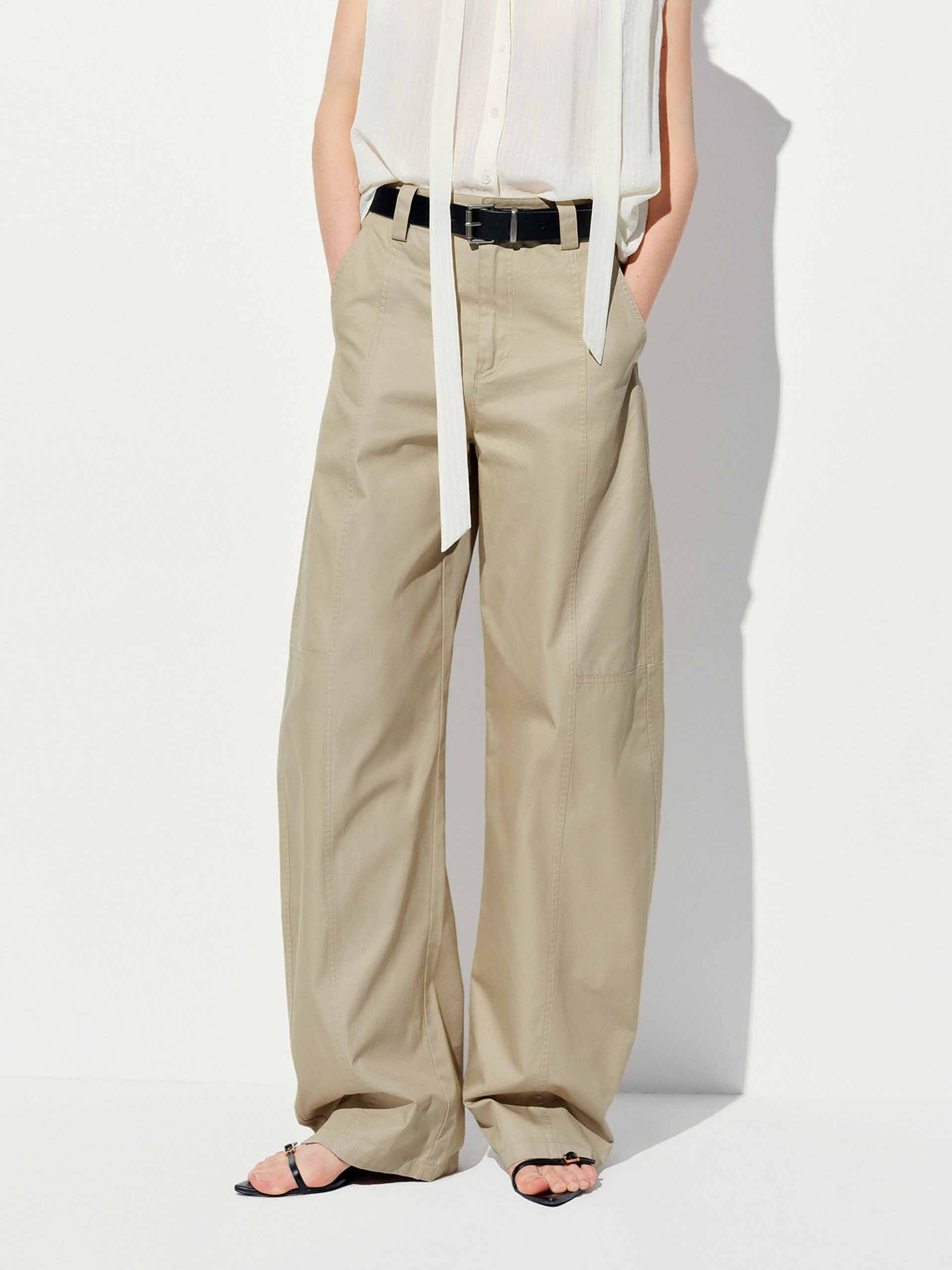 Cotton Barrel Leg Trousers