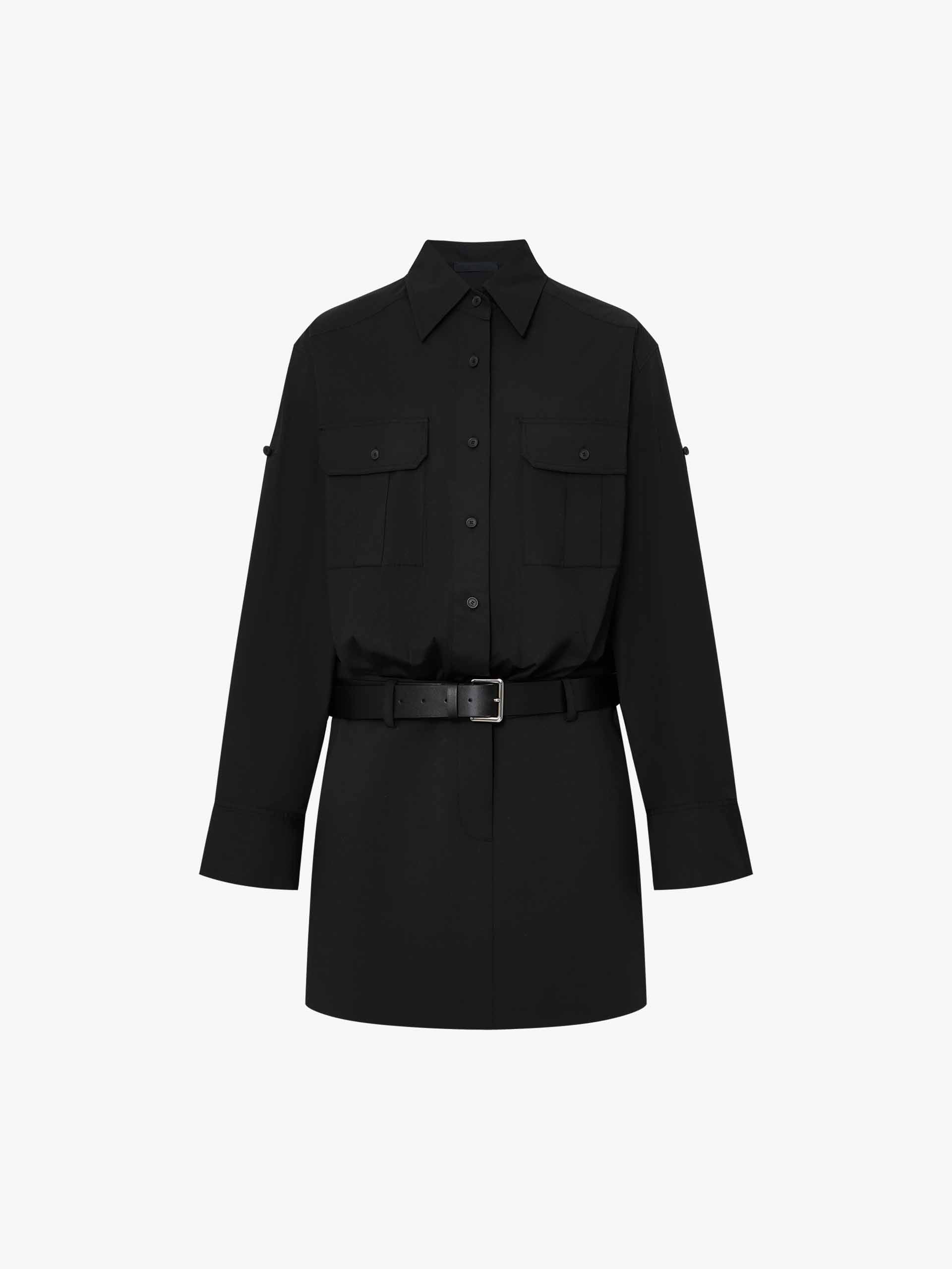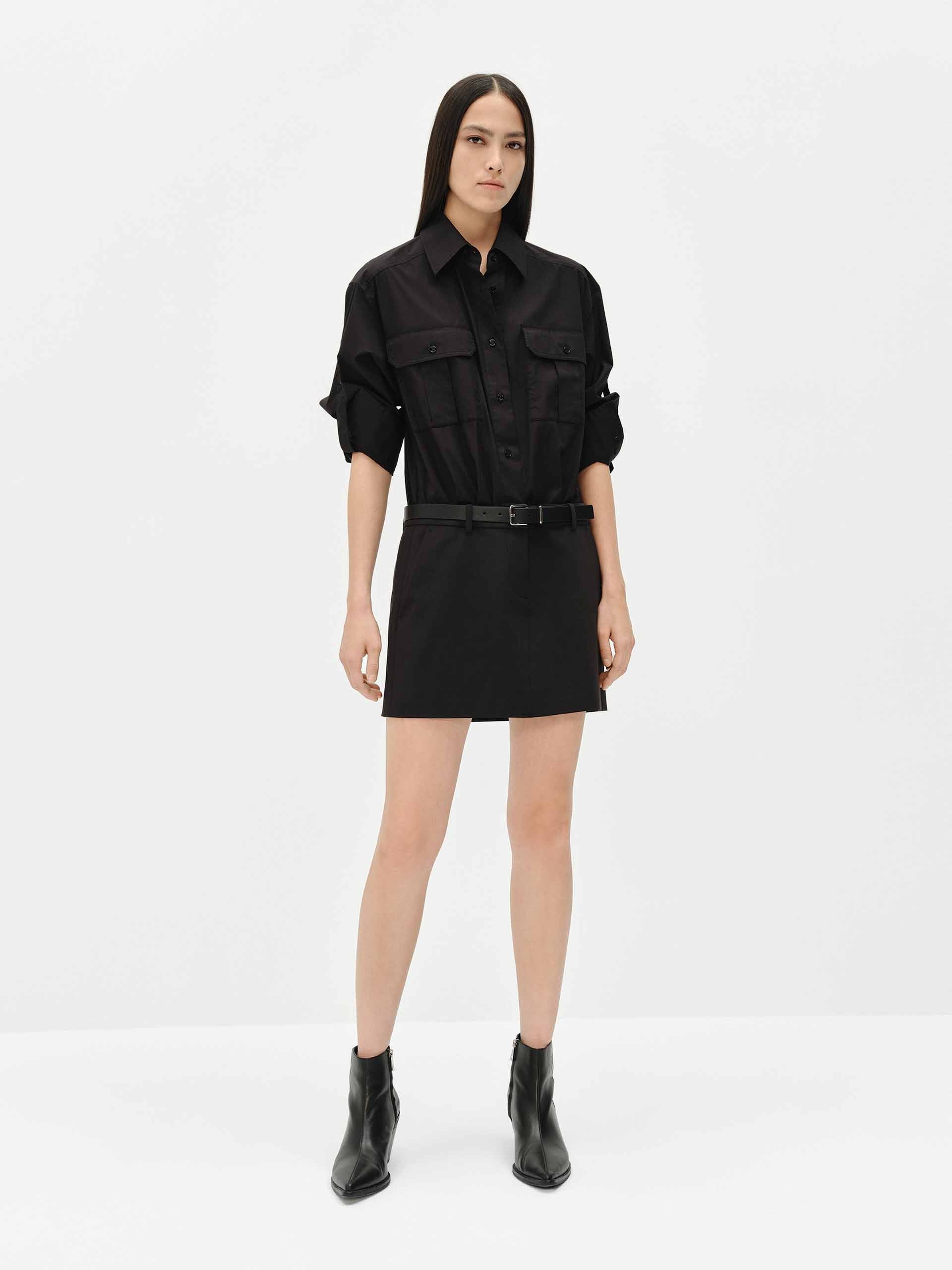 This dress combines comfort and style with its cotton blend fabric and shirt silhouette. Featuring a mini length and multiple pockets for functional and trendy. The matching belt accentuates the waistline for a flattering fit.