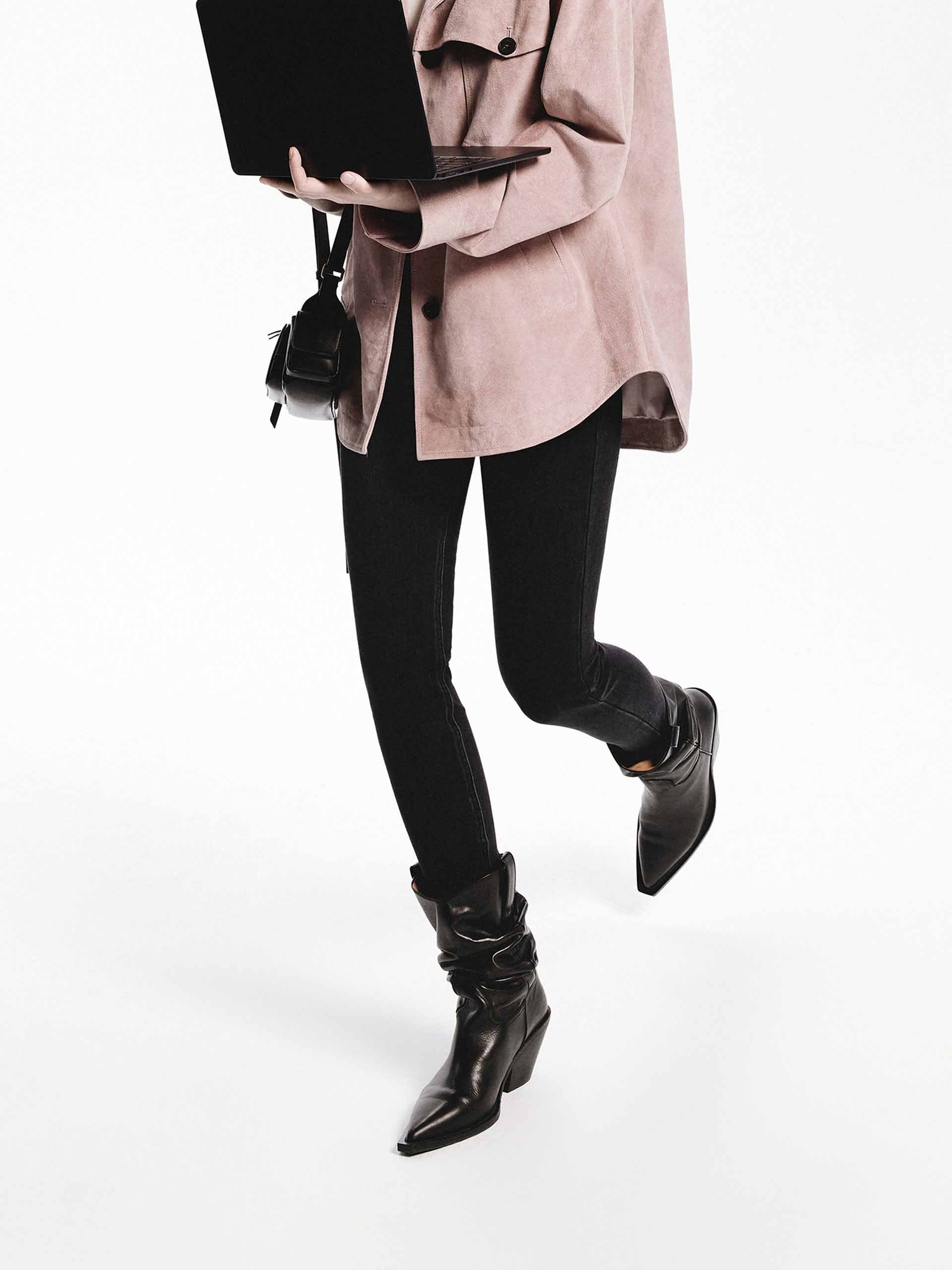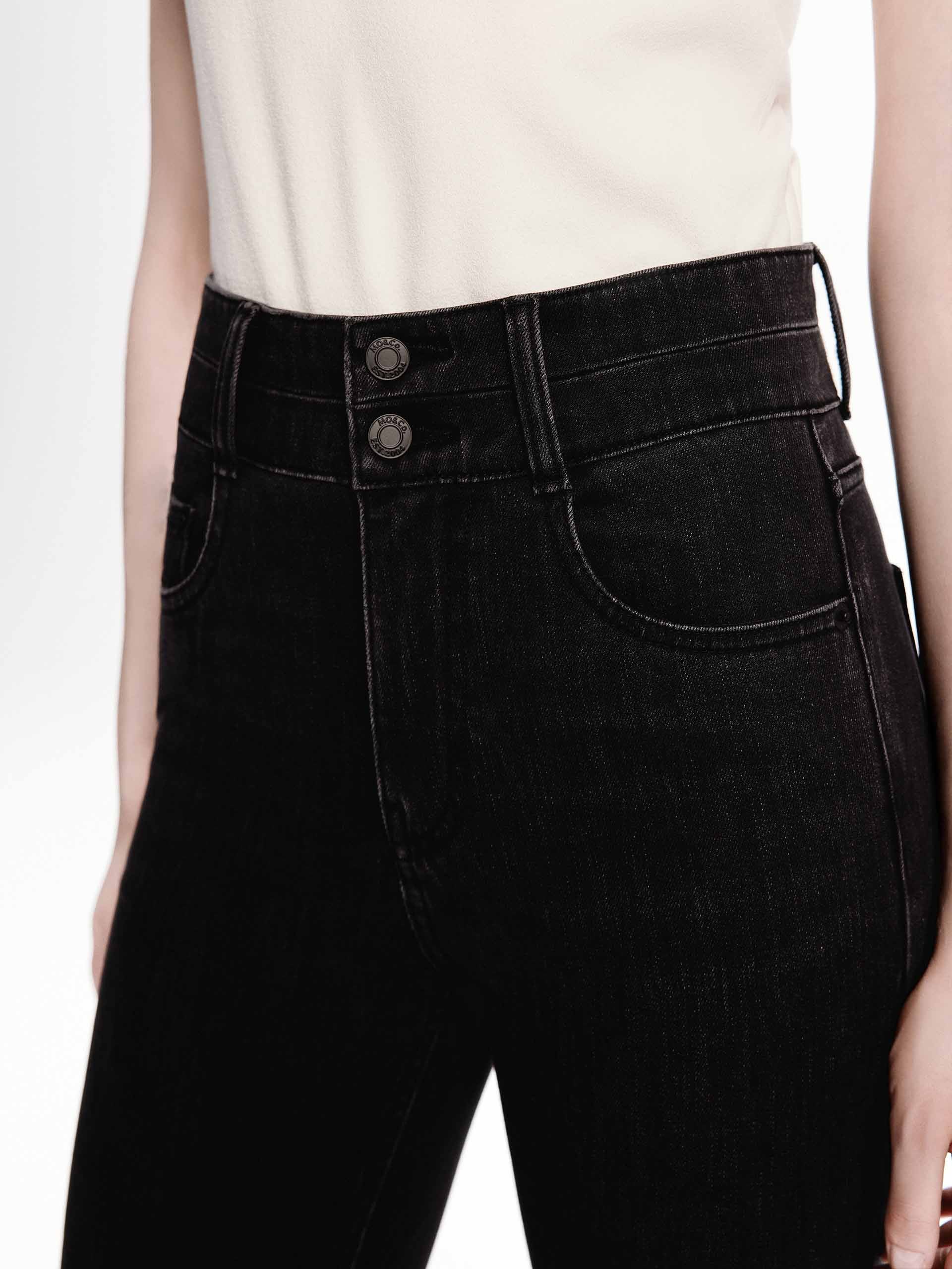 These skinny jeans are made from a cotton blend with hints of cashmere for added softness and comfort. They feature a classic five-pocket design, high-waisted and have a comfortable stretch for ease of movement. Pair it with a T-shirt and boots for a stylish look.