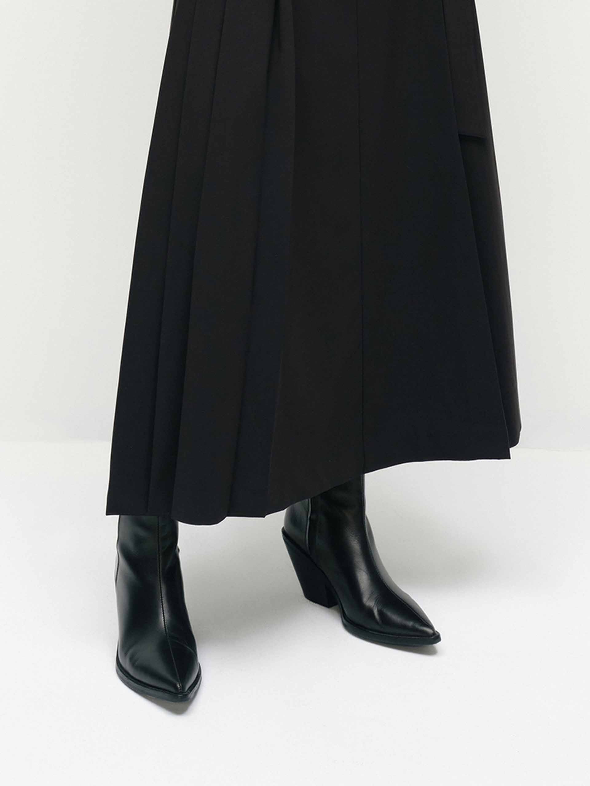 This skirt is made from comfortable fabric, providing style and comfort. It's cut in a flowy A-line silhouette with a pleated design and side pocket. Perfect pair it with boots for a stylish look.