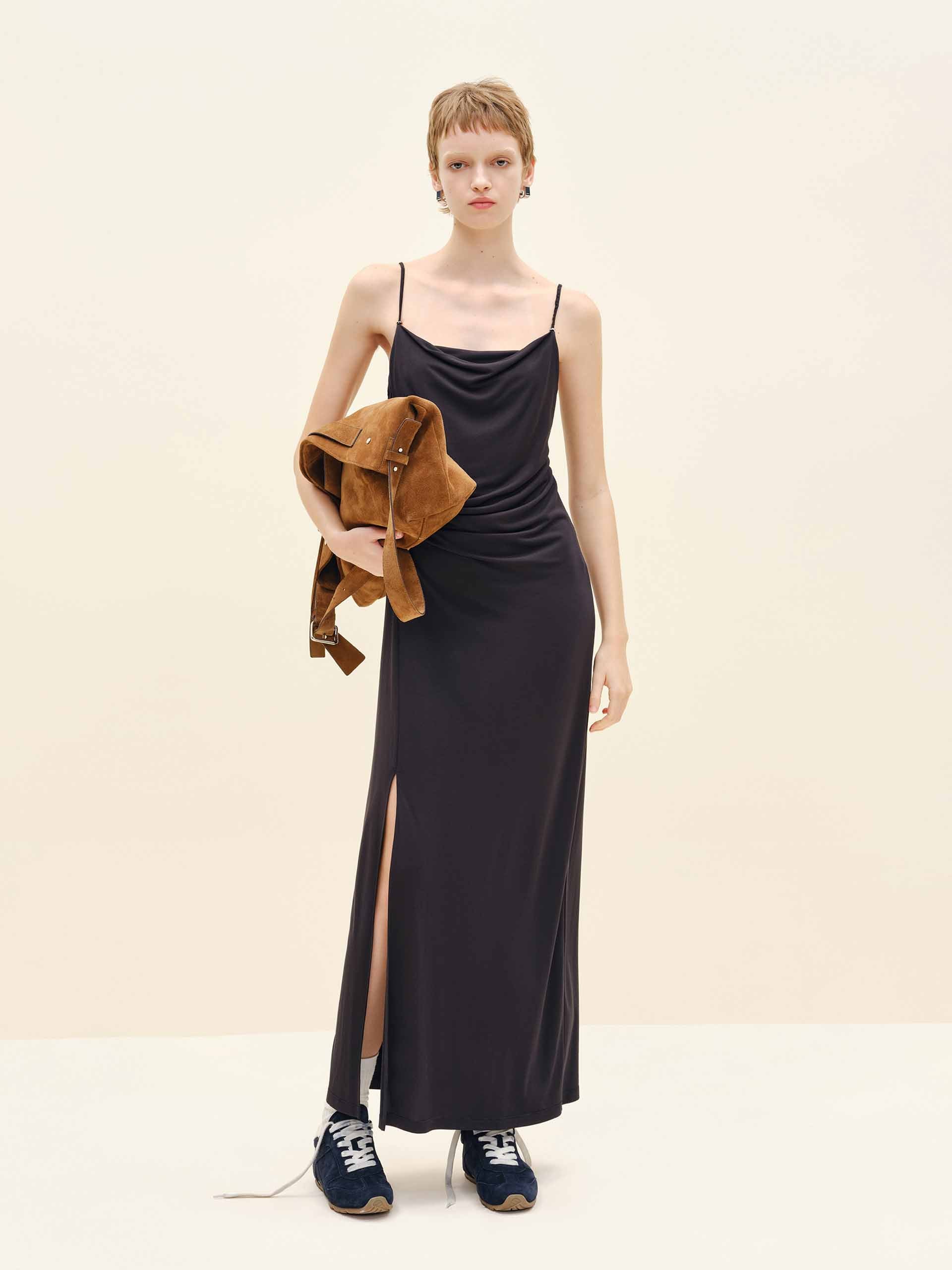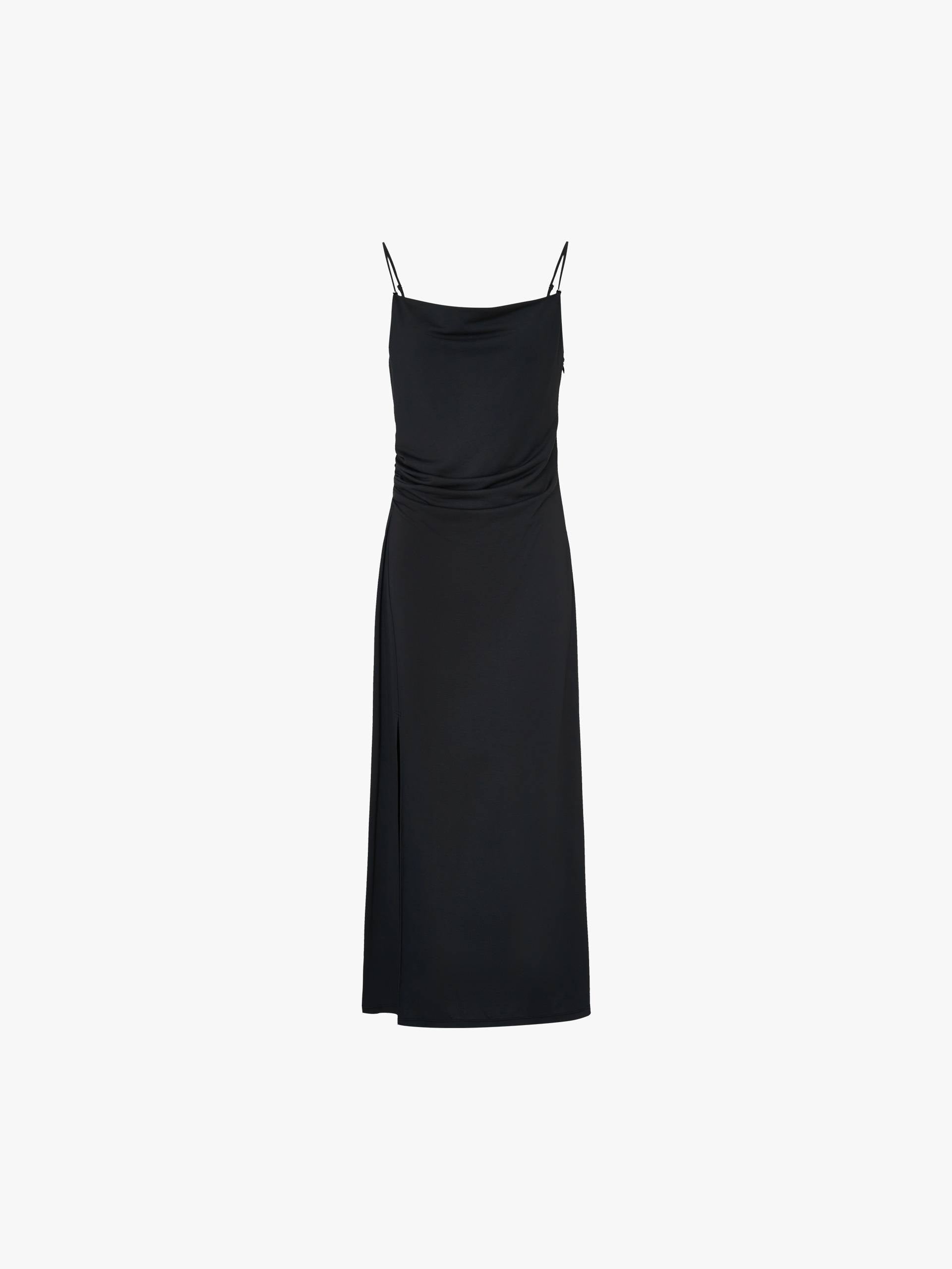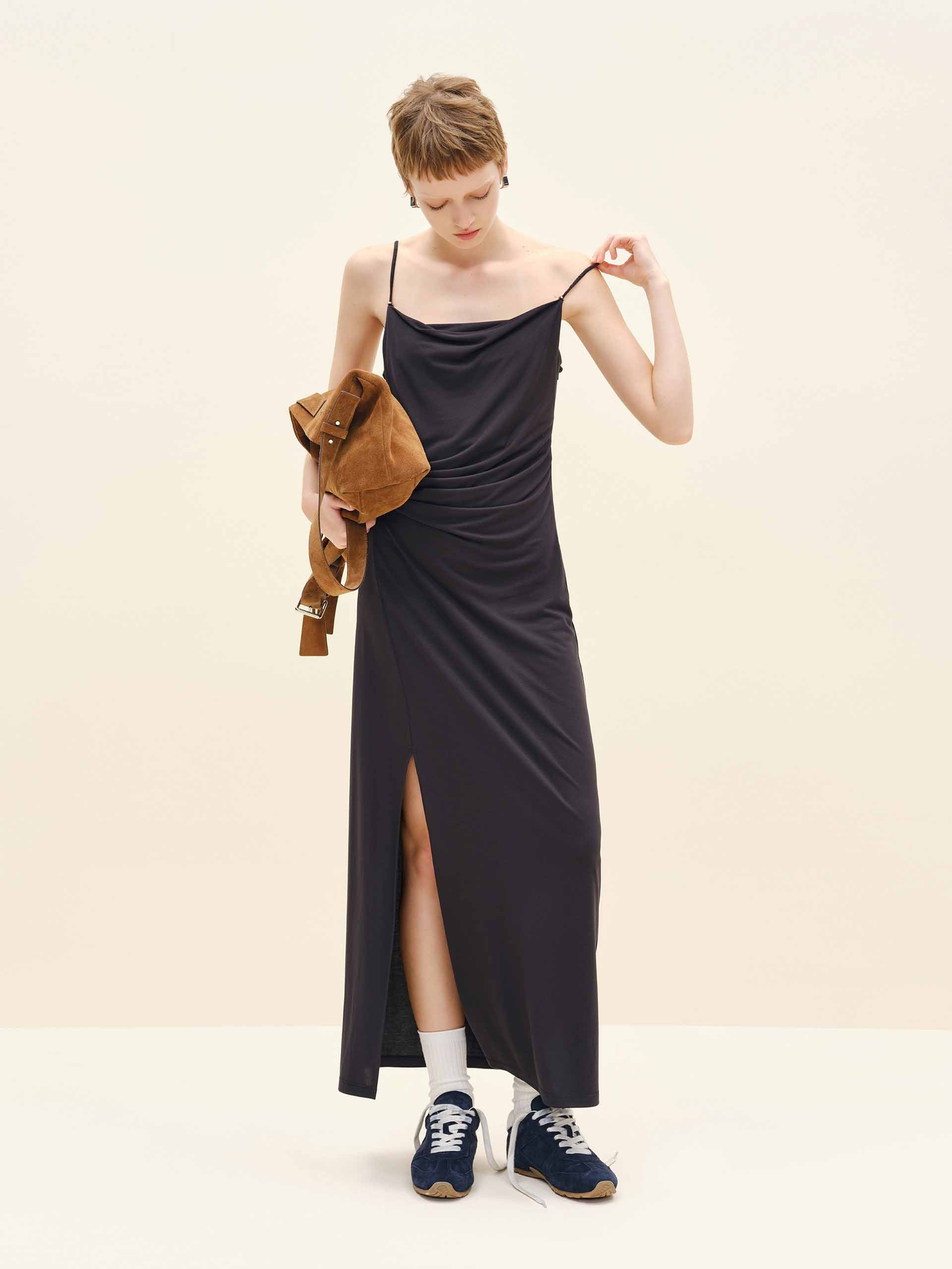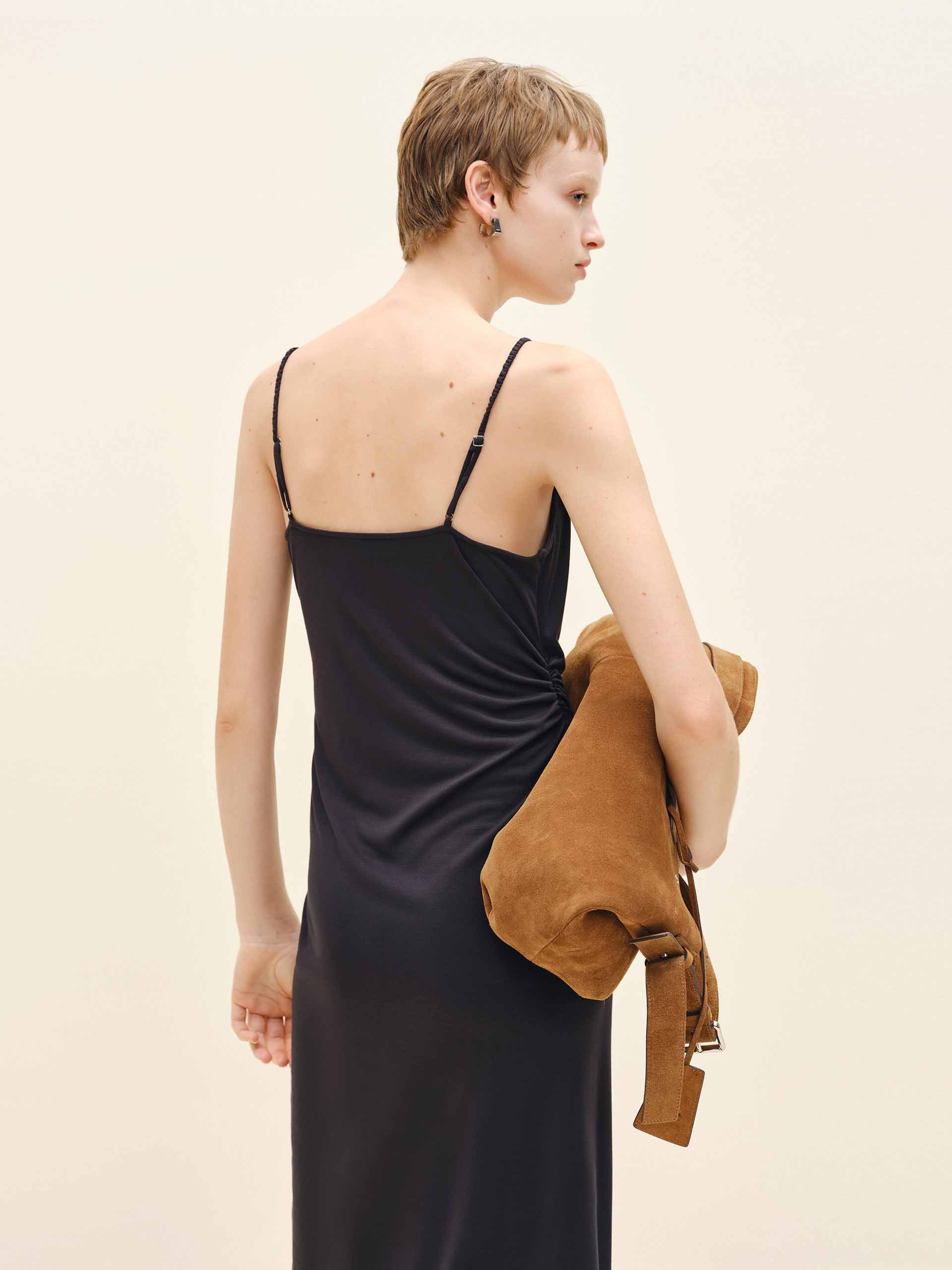 Effortlessly elegant and endlessly flattering, this cami dress is designed to turn heads. Featuring a side pleated design, this dress accentuates your waist with delicate draping, creating a feminine and refined shape. The sleeveless cut and adjustable spaghetti straps offer a customizable fit, ensuring both comfort and style.