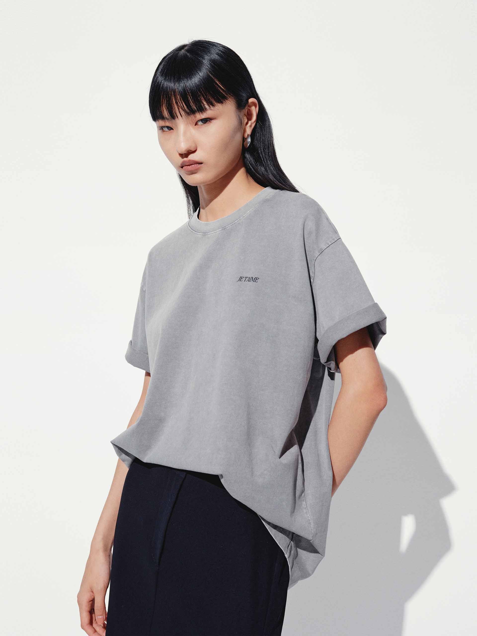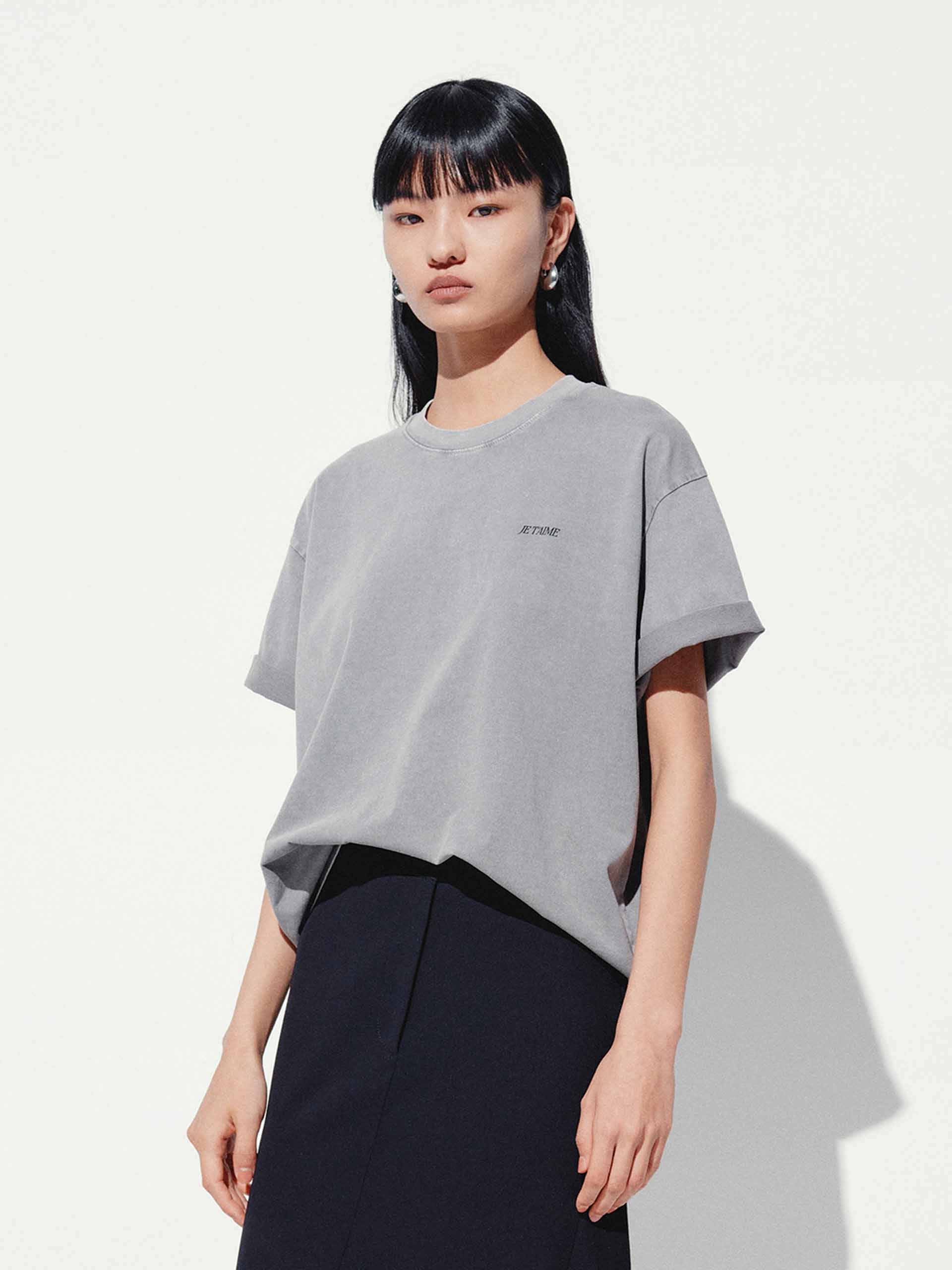 This tee features an adorable back cat print that adds instant personality to your look. With its dropped shoulders and soft, roomy cut, this shirt delivers effortless streetwear vibes. The classic round neckline gets an edgy update with a faded wash detail, while short sleeves keep it breezy for any occasion.