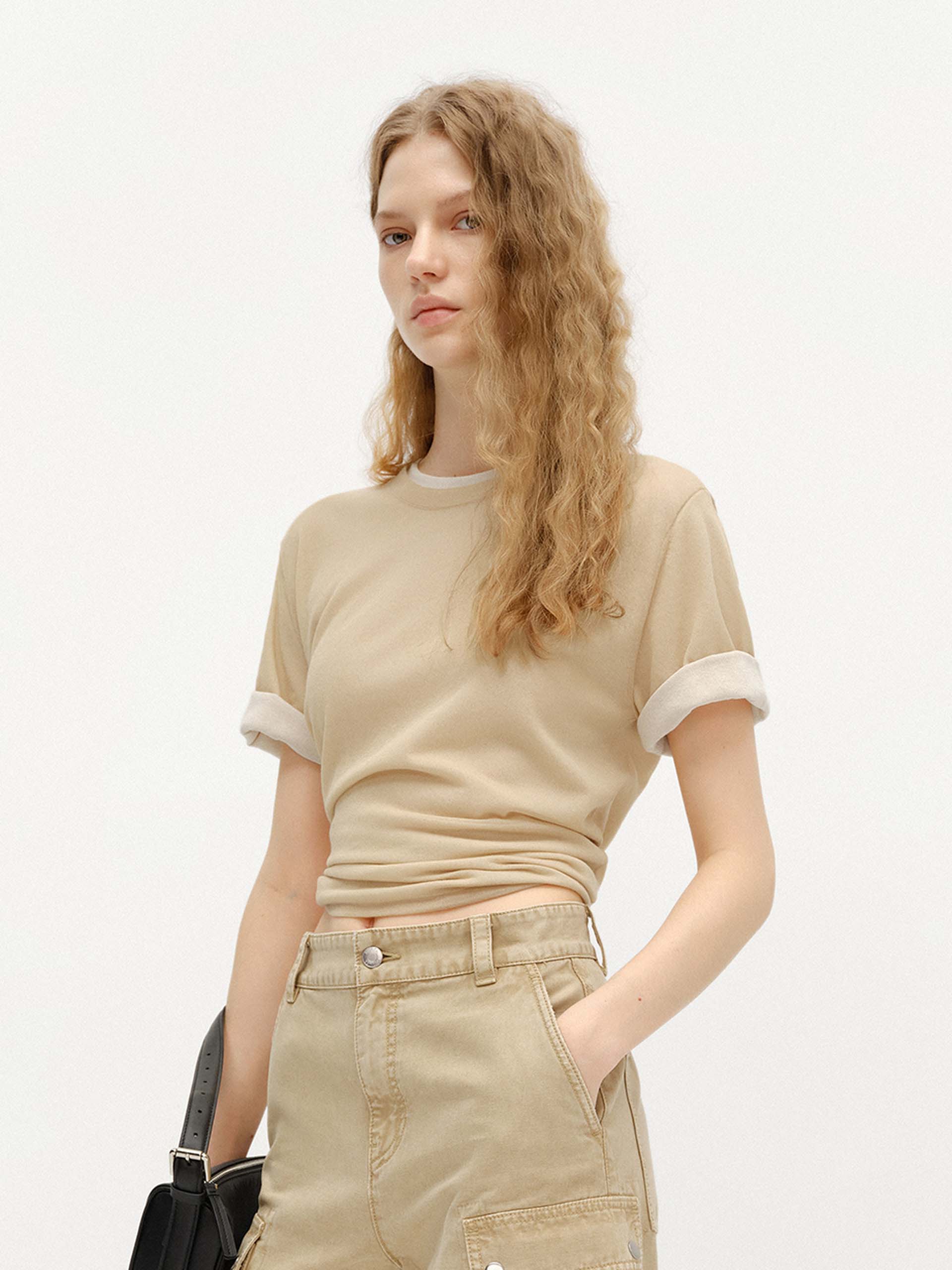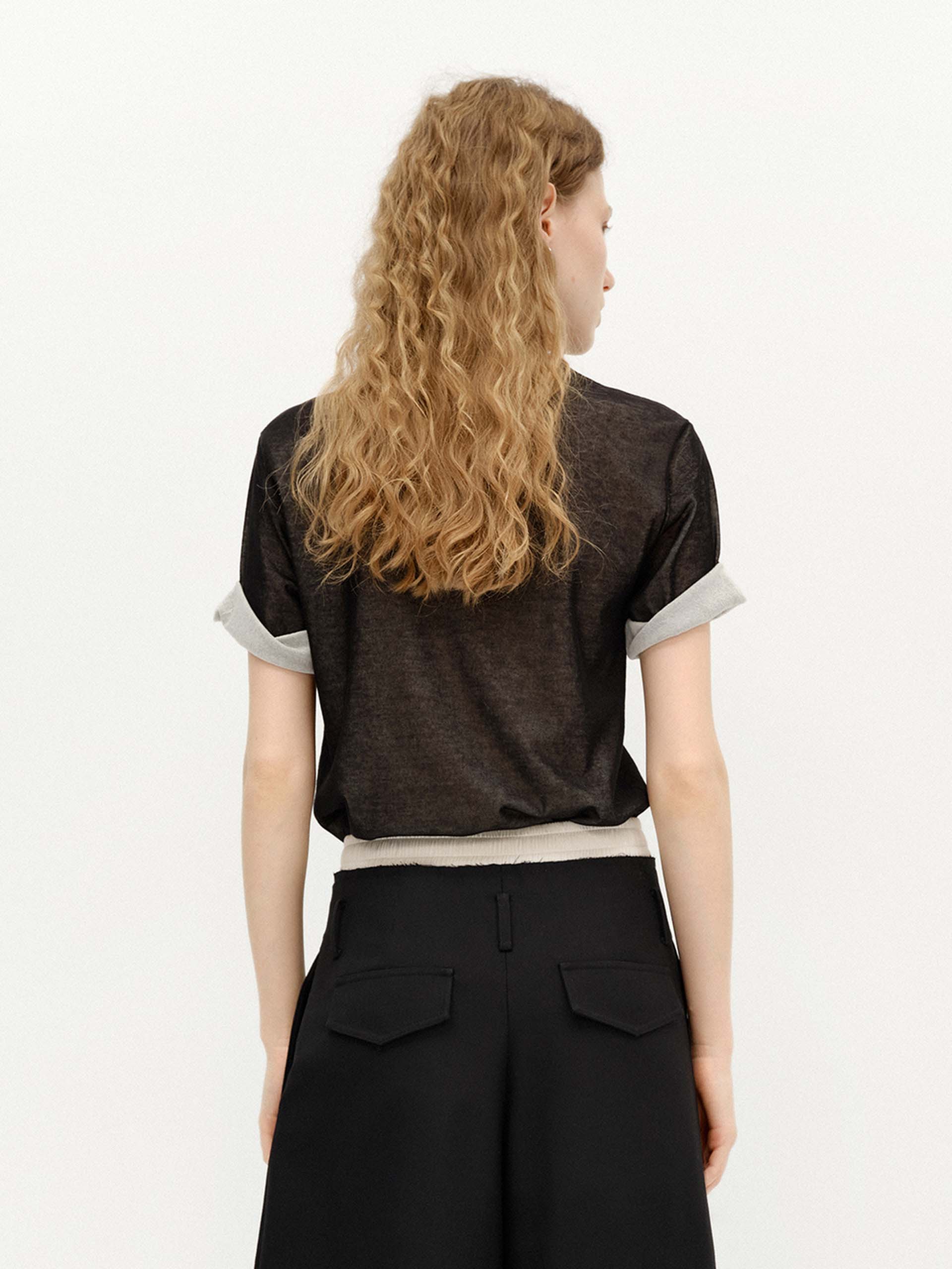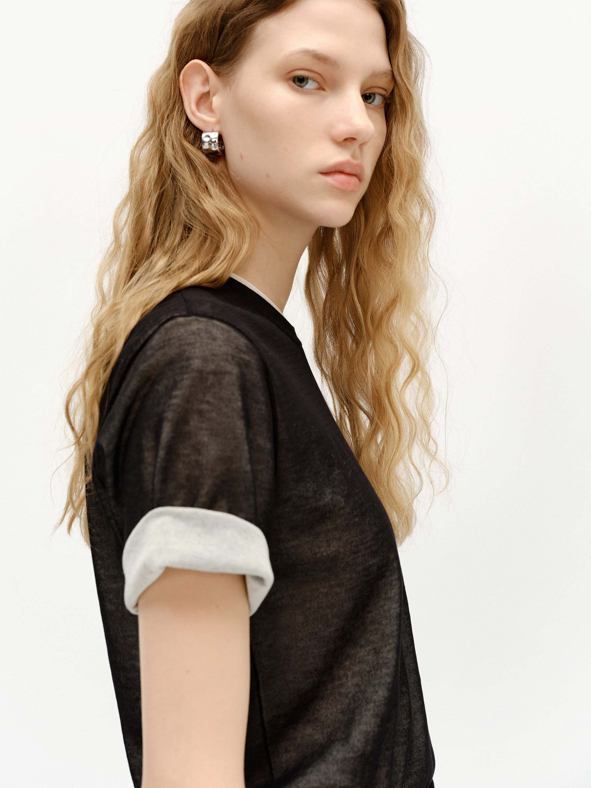 This cotton blend top features a crew neck, layered design, and turn up cuffs, creating a versatile and stylish knit top suitable for any occasion. Made from a comfortable and durable cotton blend, it offers functionality and fashion.