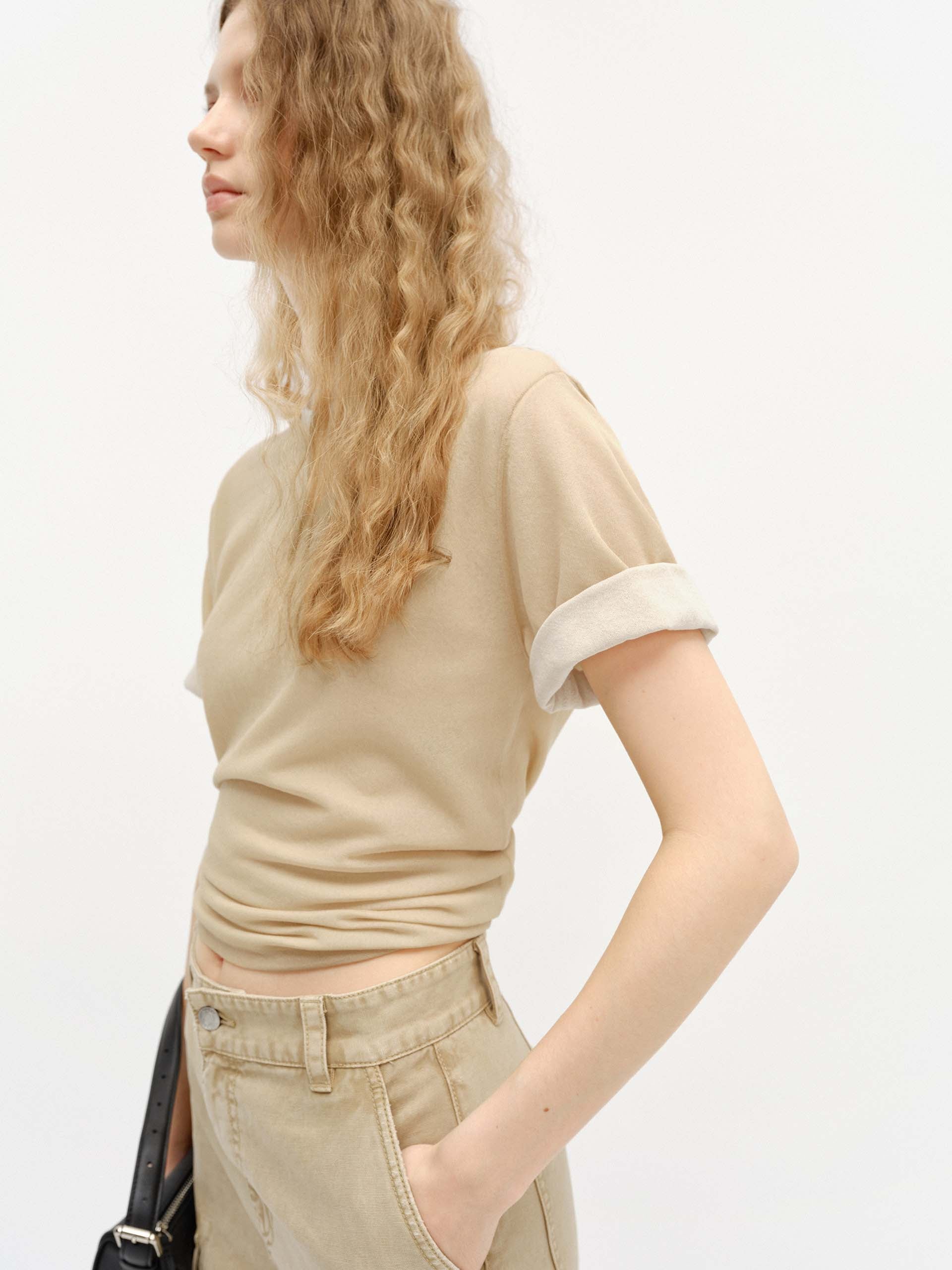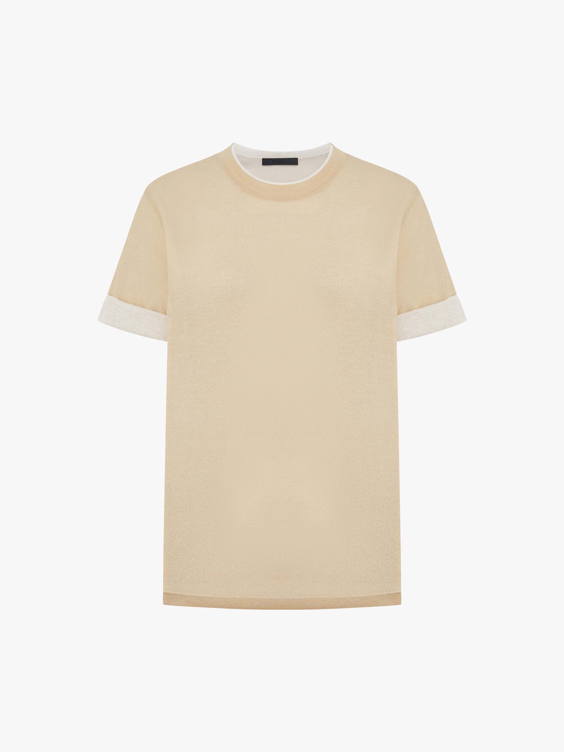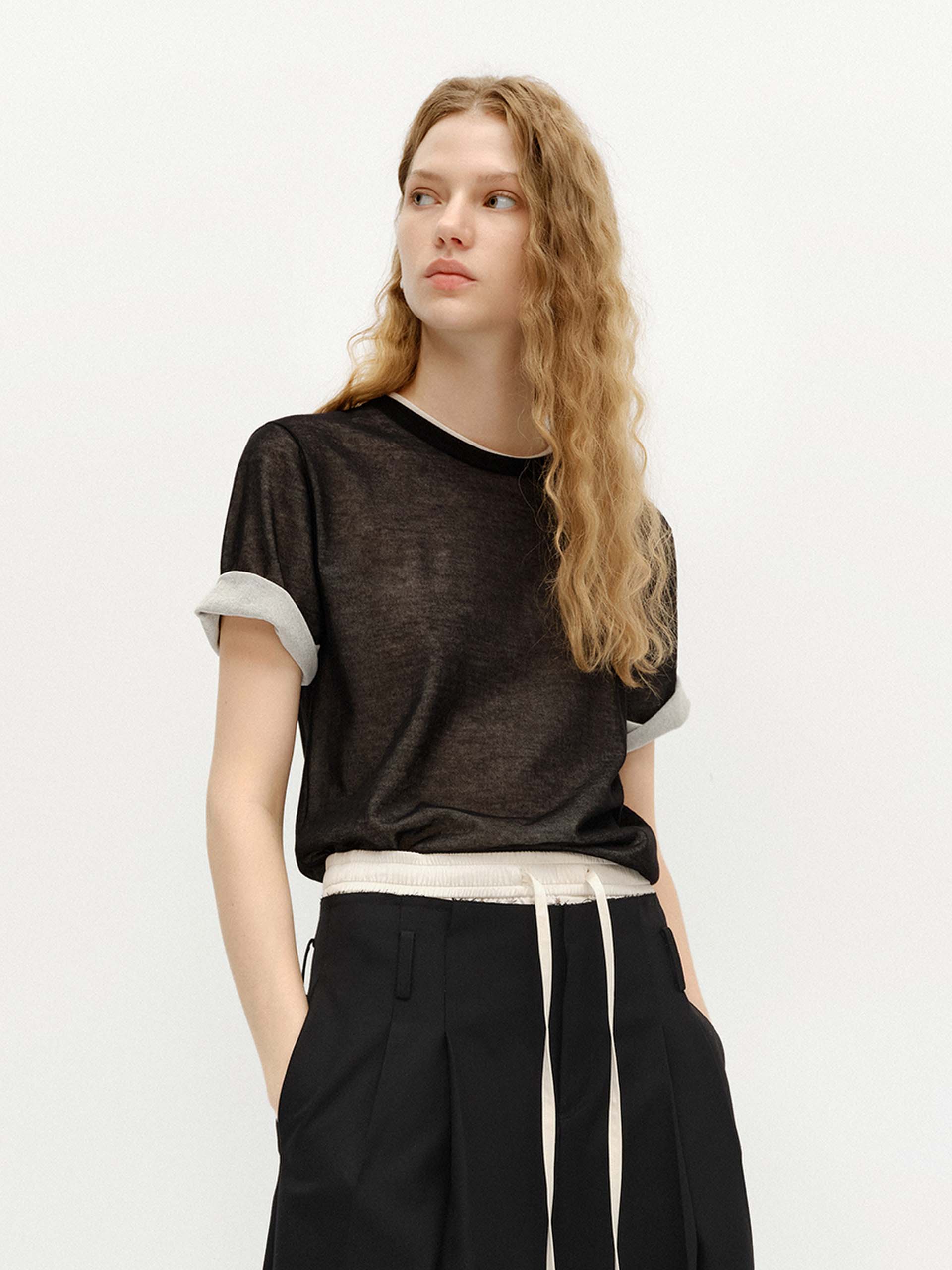 This cotton blend top features a crew neck, layered design, and turn up cuffs, creating a versatile and stylish knit top suitable for any occasion. Made from a comfortable and durable cotton blend, it offers functionality and fashion.