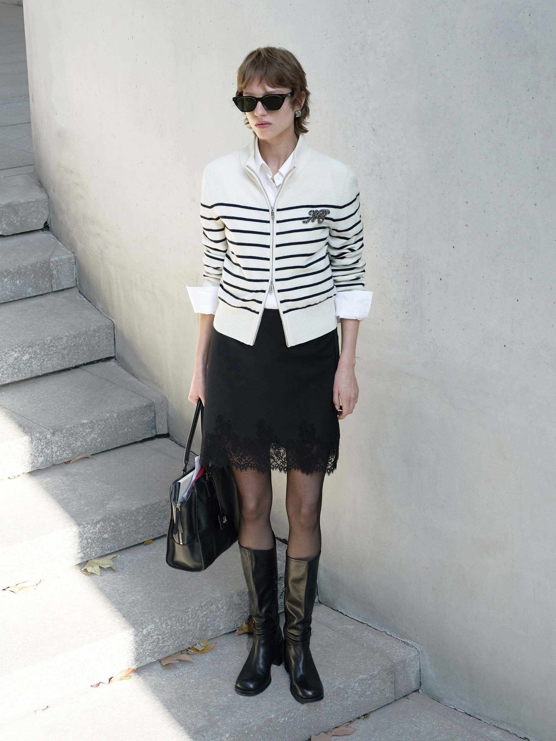 - Side zip closure and lace hem