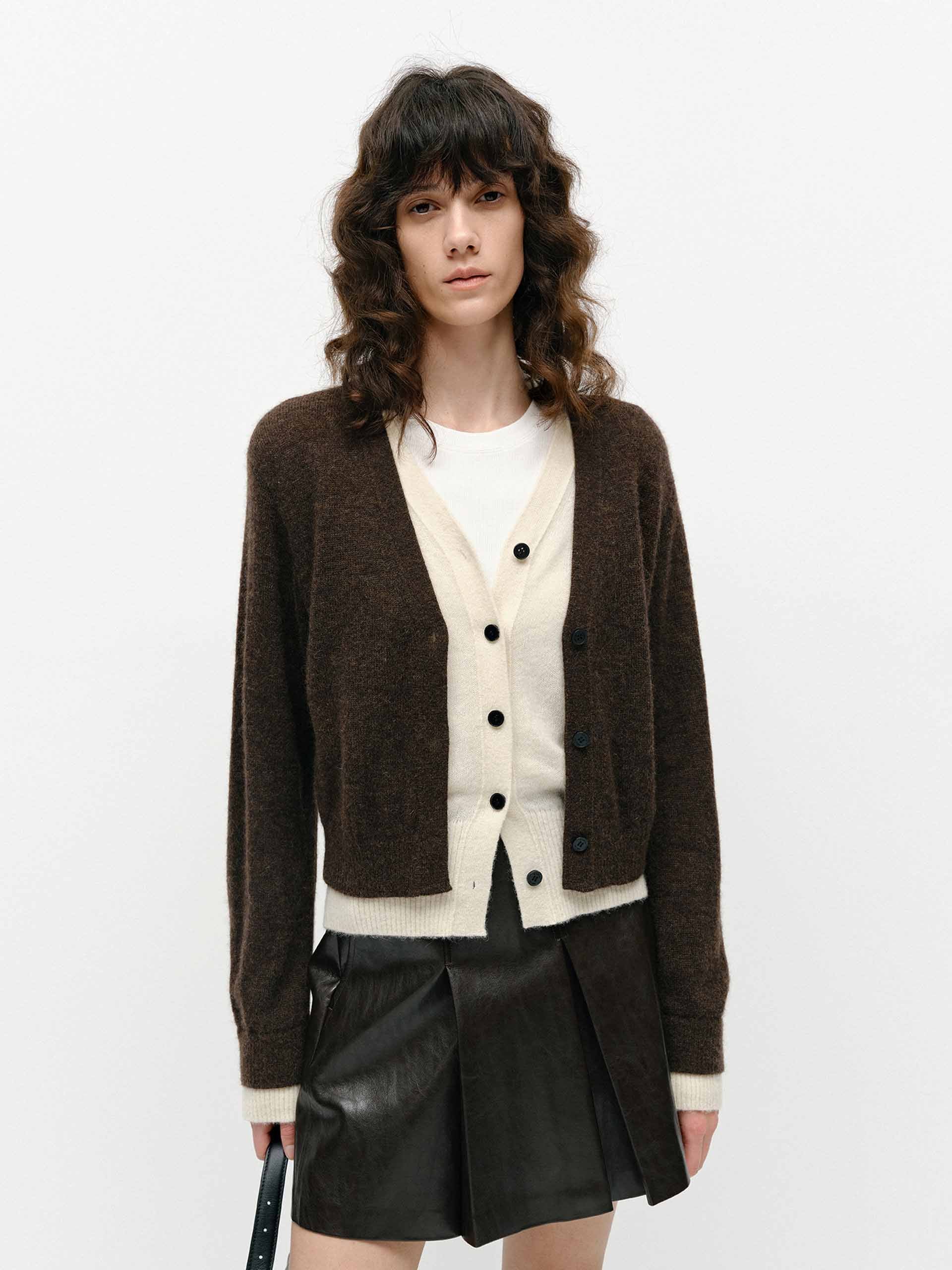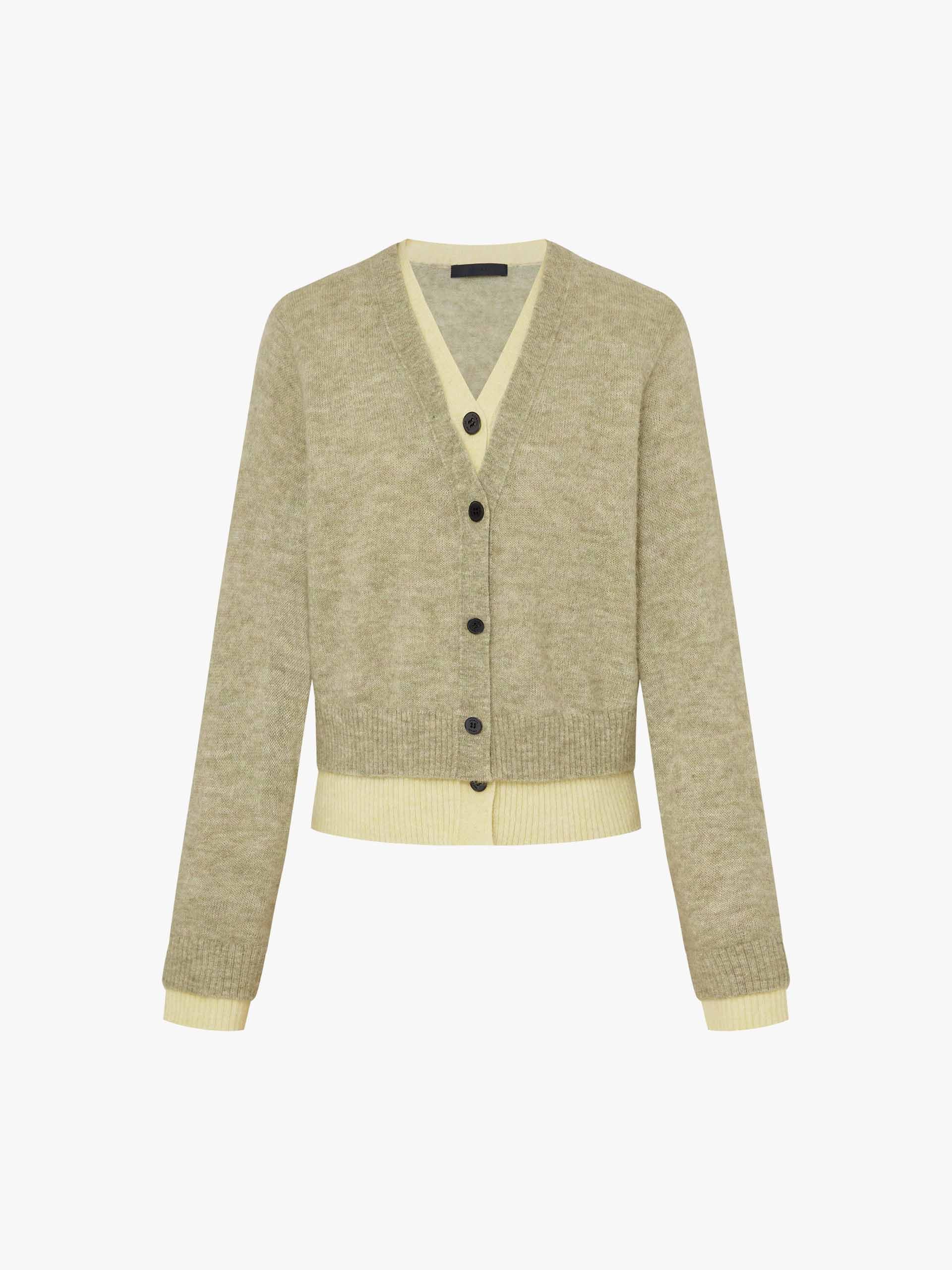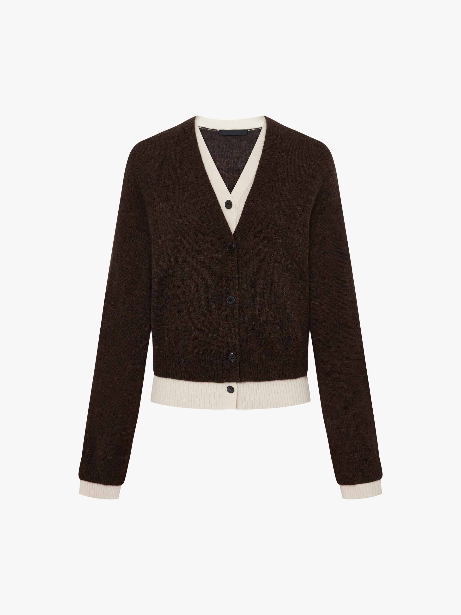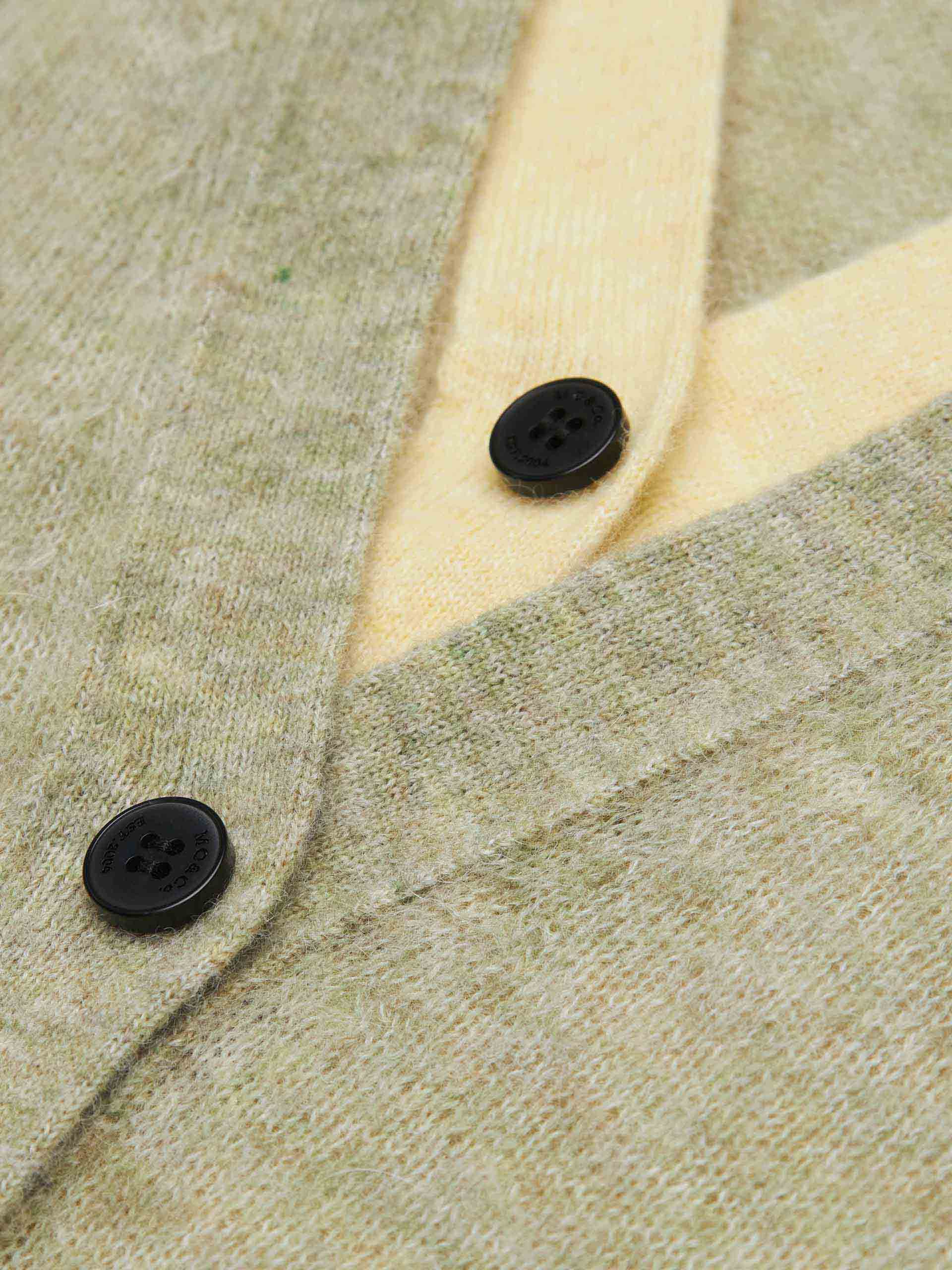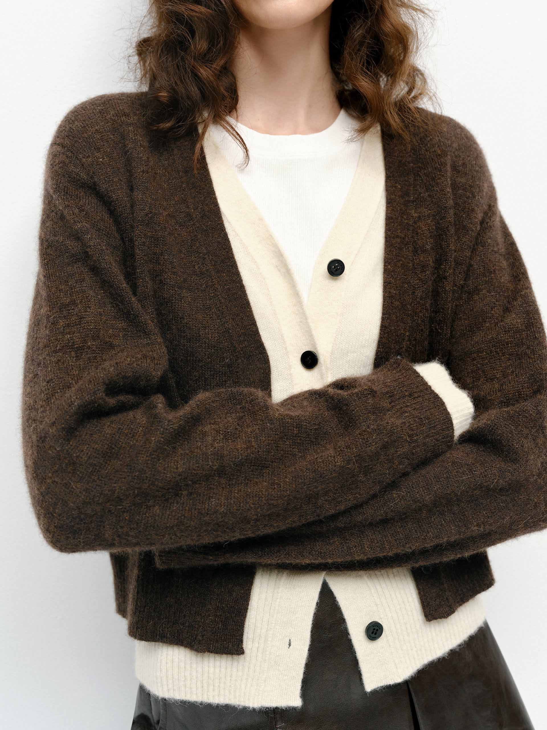 This cardigan adds subtle color-blocking to your wardrobe. Crafted from Alpaca, wool, and other fibers, it offers a slim fit and a V-neckline. Pair it with high-waisted jeans for a chic look.