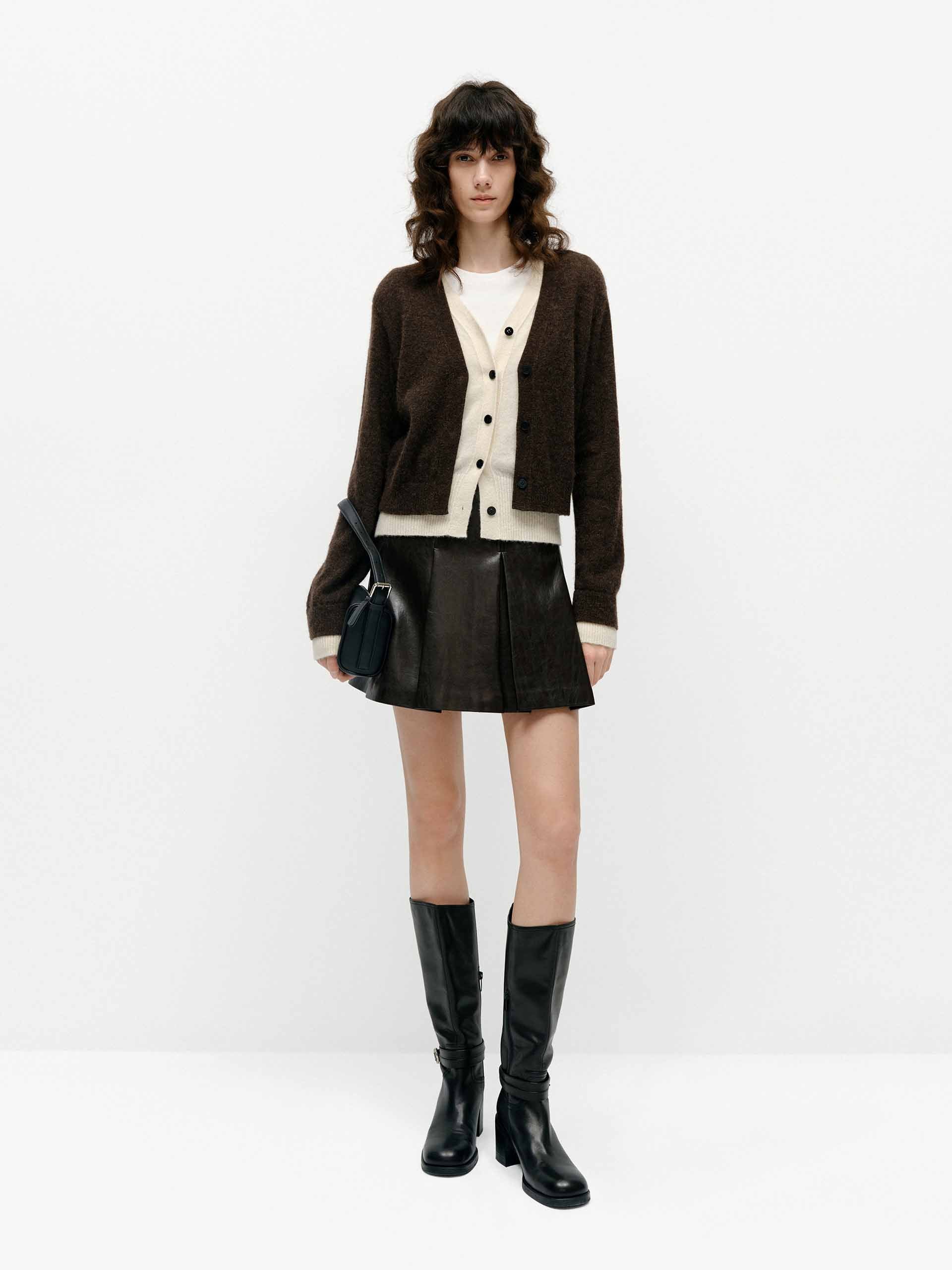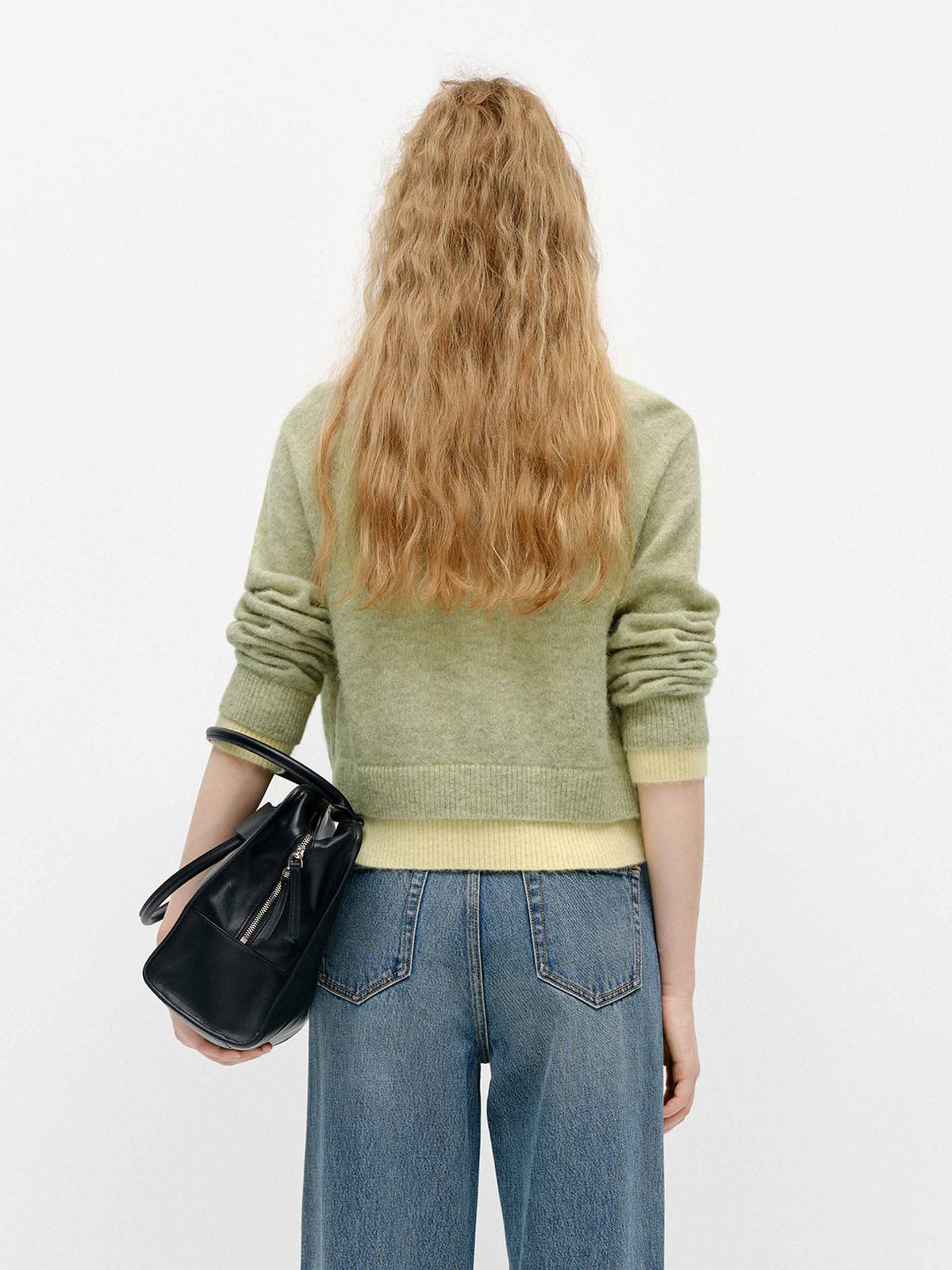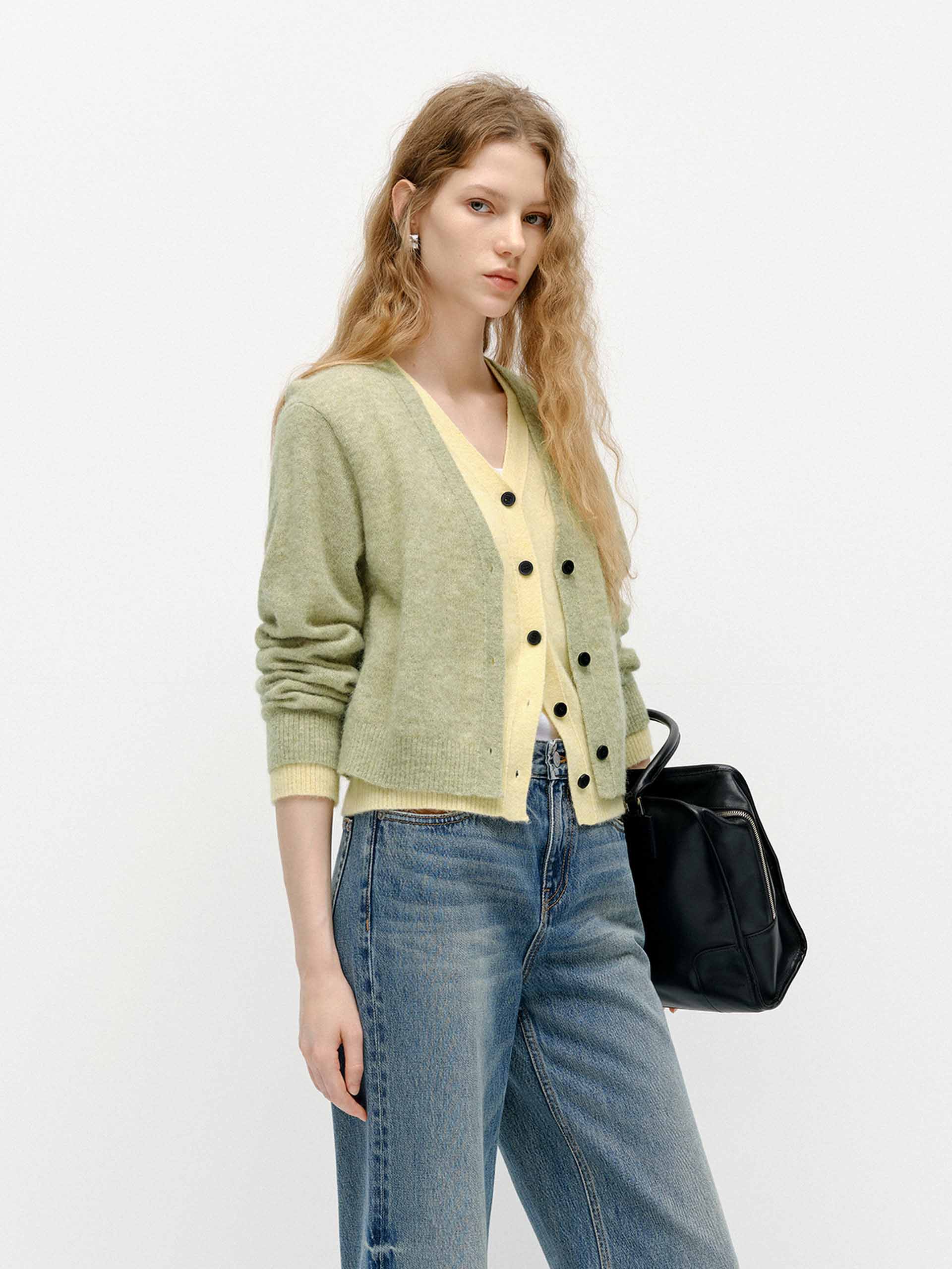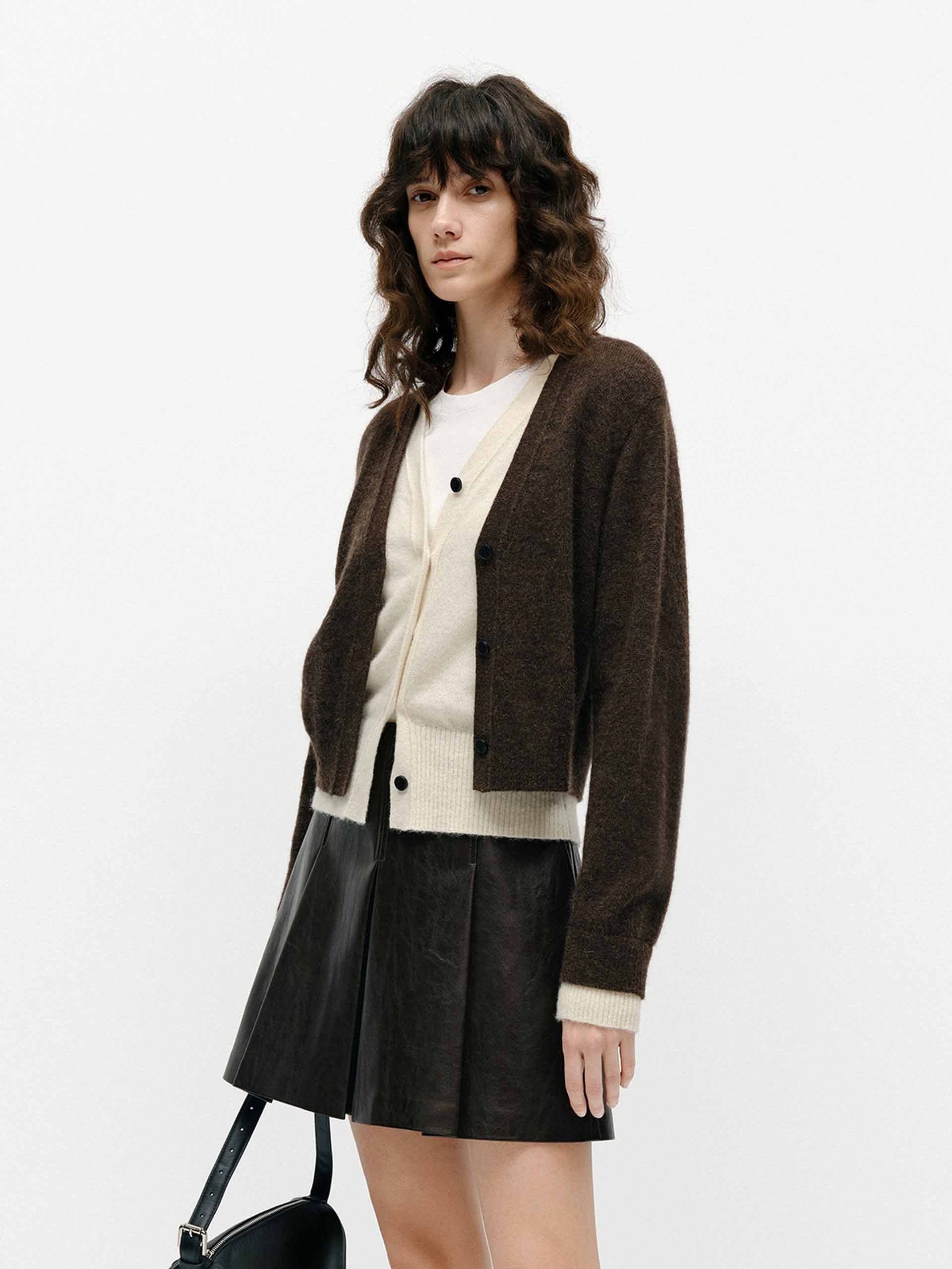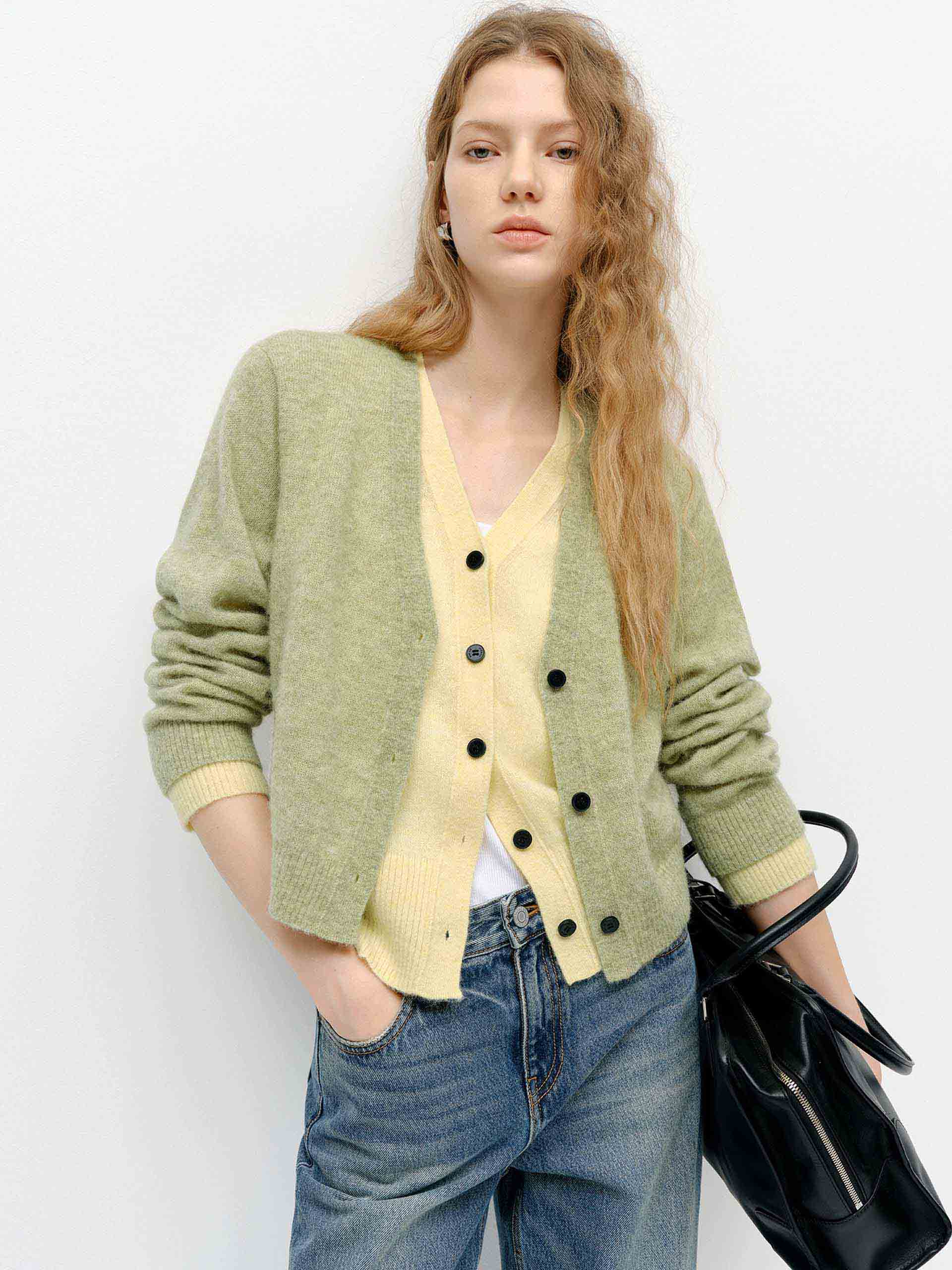 This cardigan adds subtle color-blocking to your wardrobe. Crafted from Alpaca, wool, and other fibers, it offers a slim fit and a V-neckline. Pair it with high-waisted jeans for a chic look.