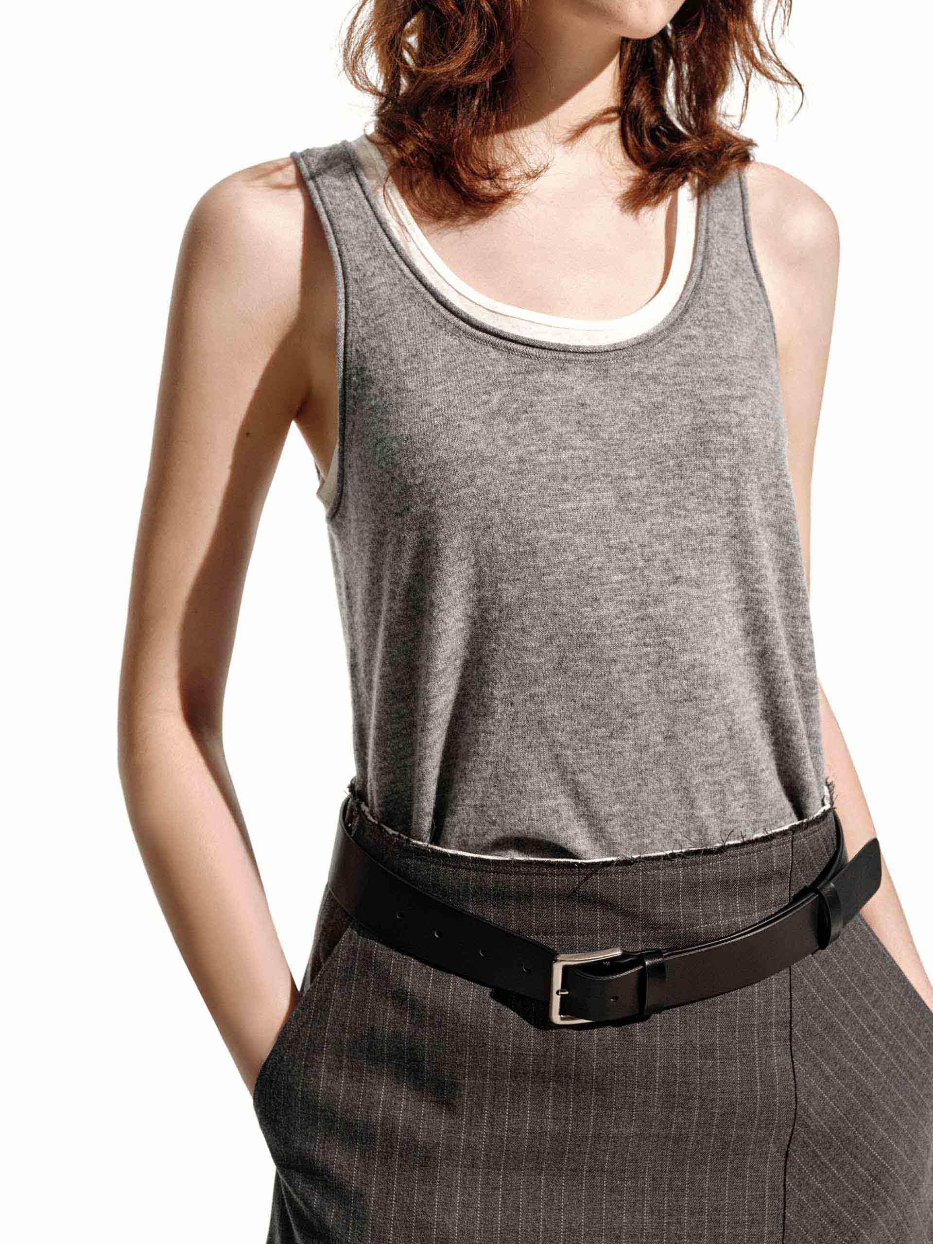 Introducing the Tank, a stylish piece crafted from the finest comfy wool and cashmere. This exquisite garment features a sleek slim fit that effortlessly flatters your silhouette. The contrast layered design adds a modern and sophisticated touch, making it a perfect blend of comfort and elegance.