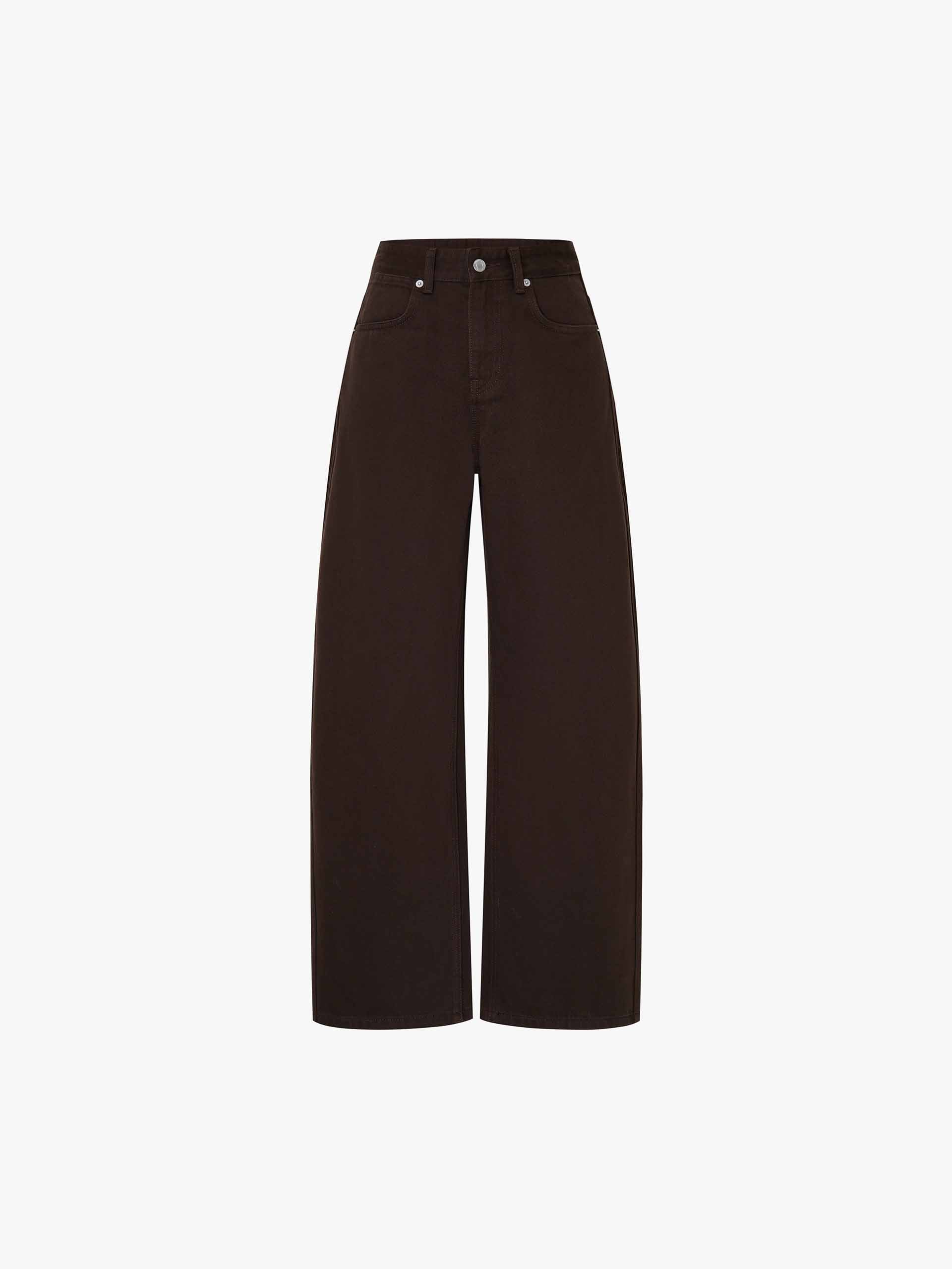 Revive retro charm with these jeans, featuring a distinctive barrel leg silhouette that adds volume and character from the thigh to the hem. Designed with a classic zip-button fly and a functional five-pocket layout, they offer both timeless style and everyday practicality. Finished with a leather logo patch at the back waistband, these jeans deliver understated branding and a premium touch.